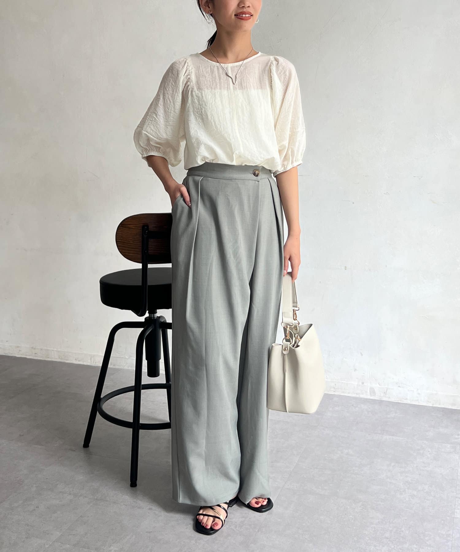 Chez toi(シェトワ) ランタンスリーブセミシアーブラウス