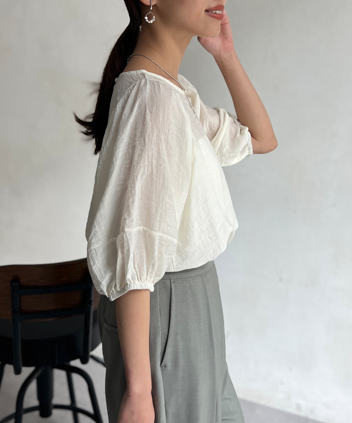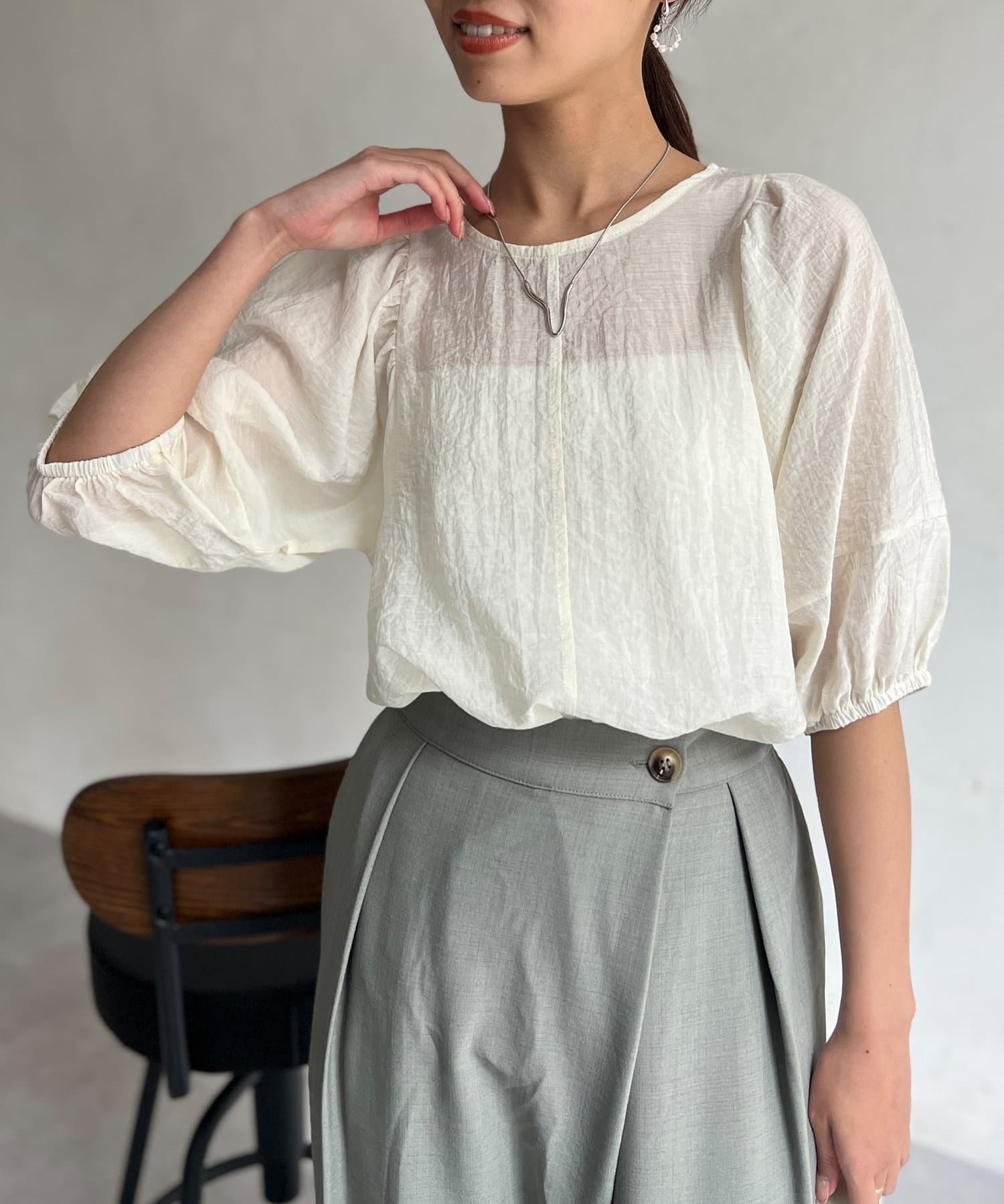 • Chez toi(シェトワ) ランタンスリーブセミシアーブラウス