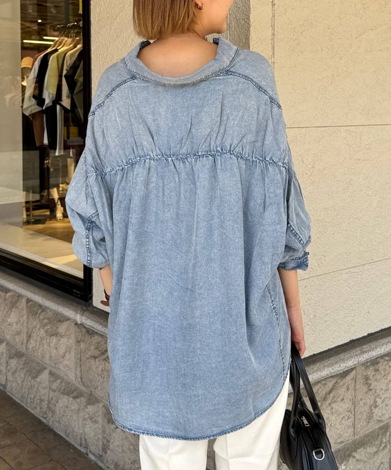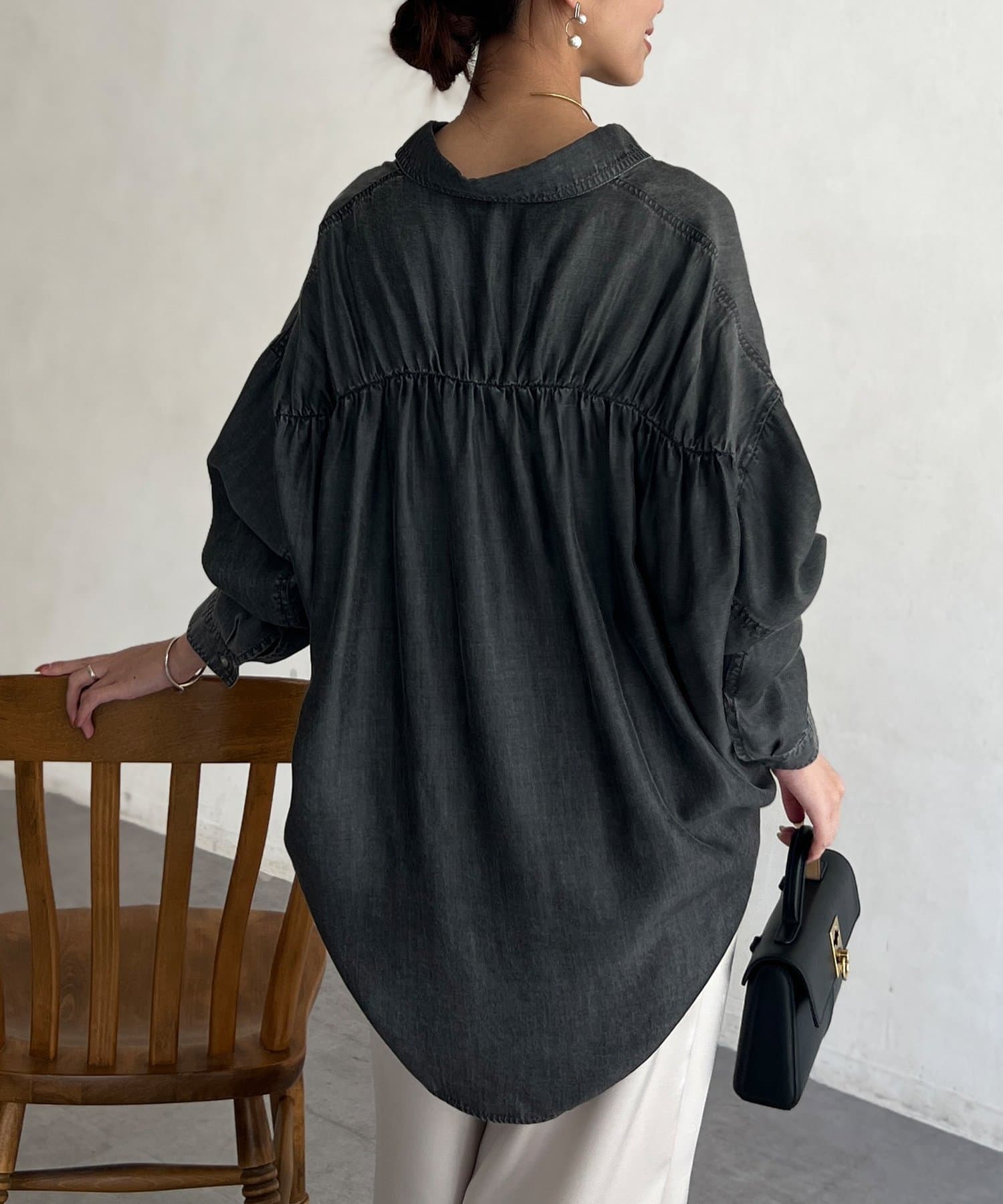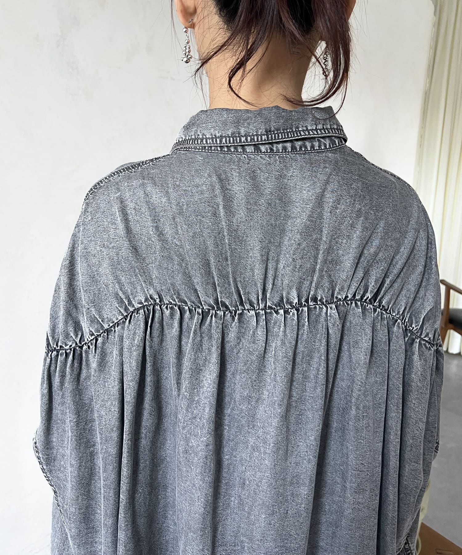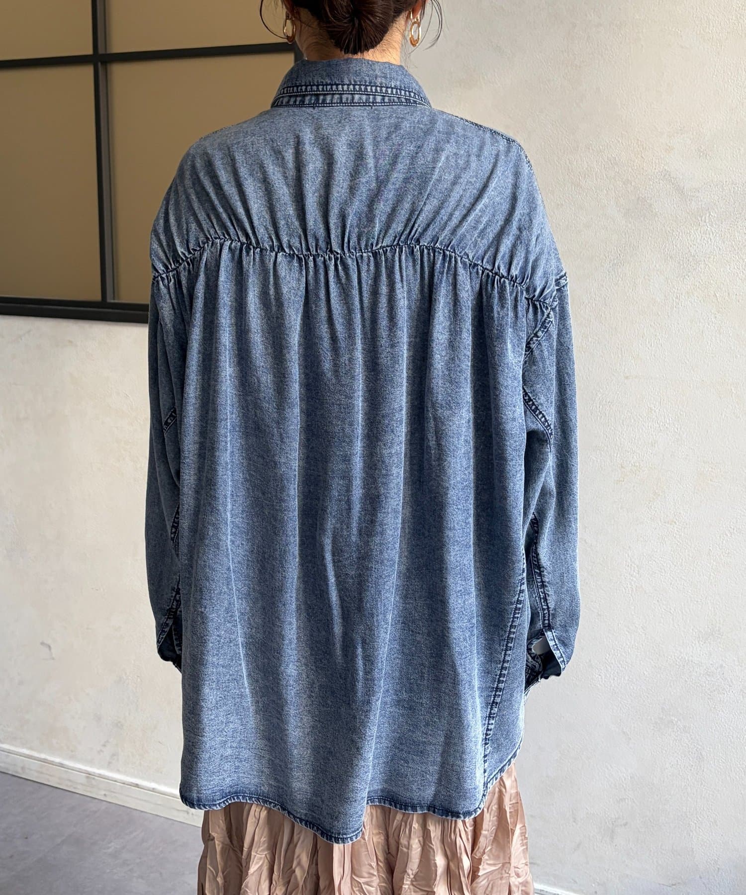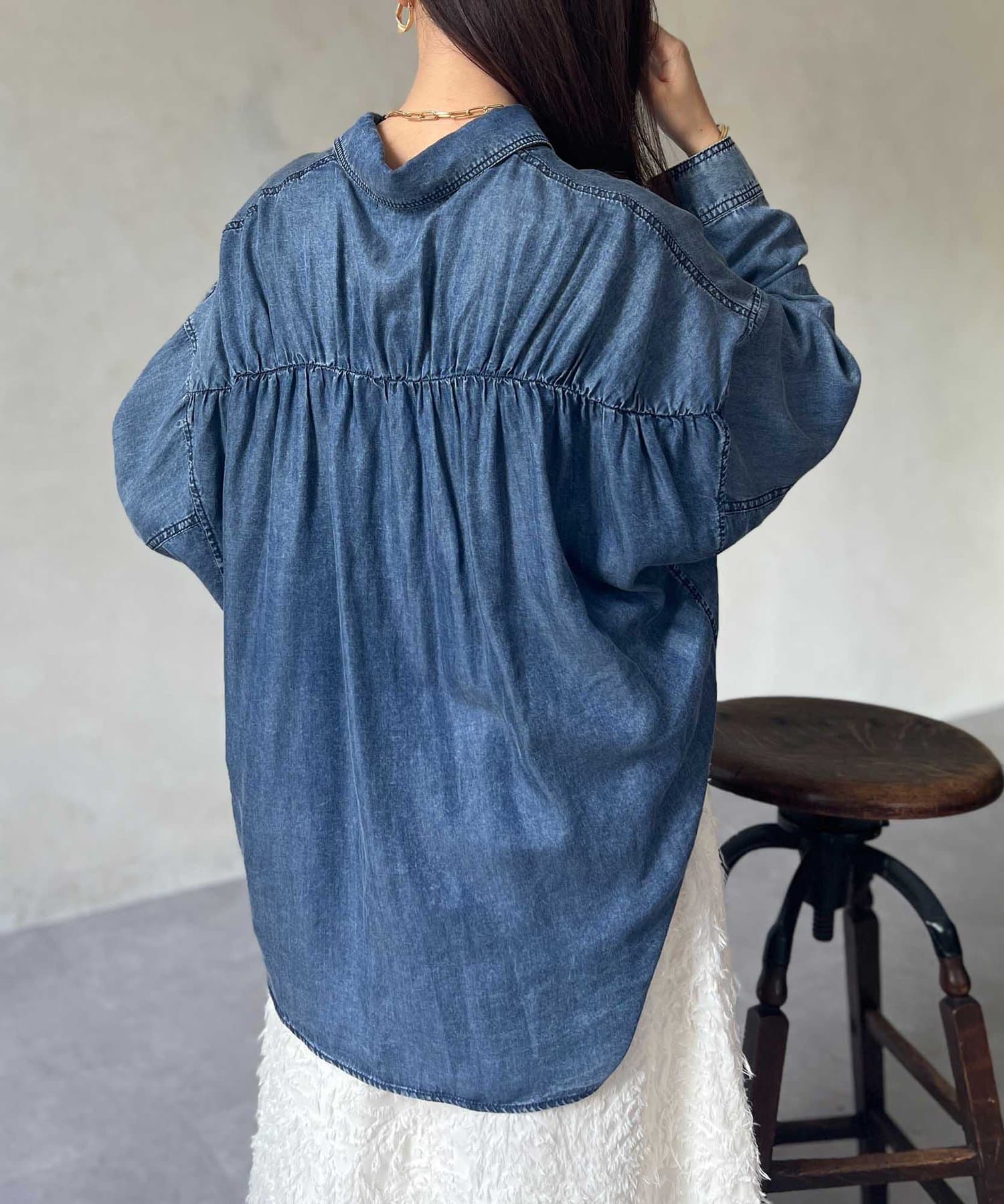 【軽くて柔らかい】【シーズンレス】BACKギャザーパウダー加工デニムシャツ