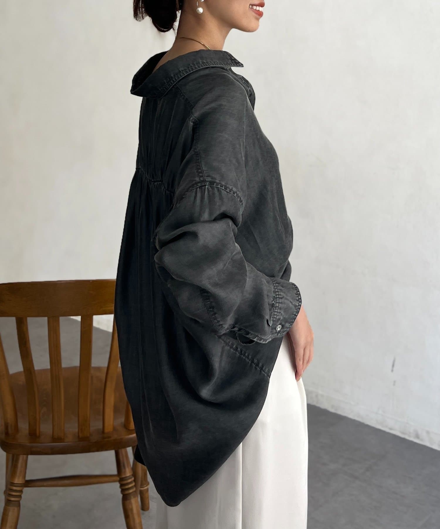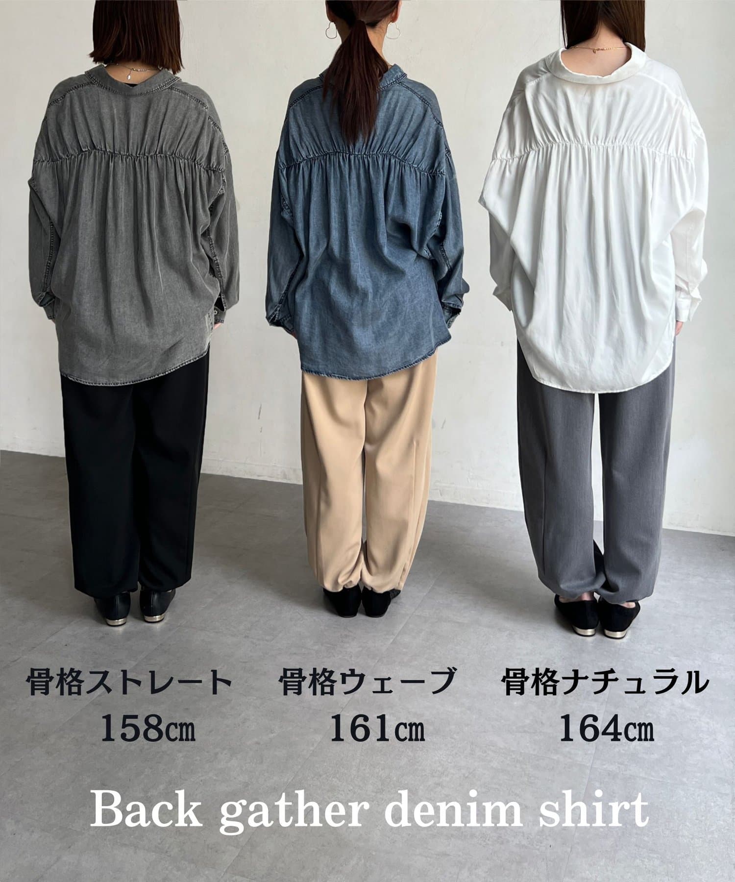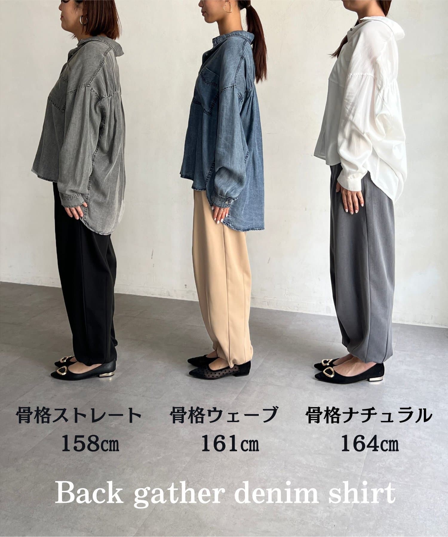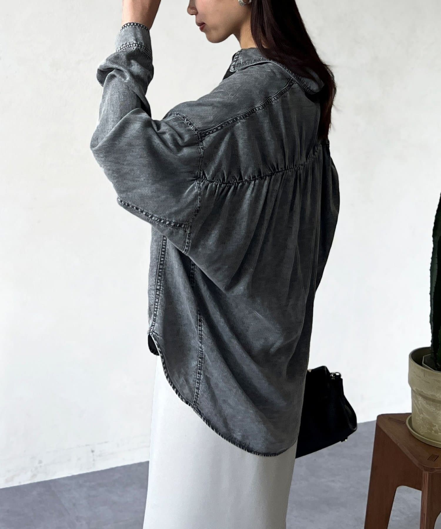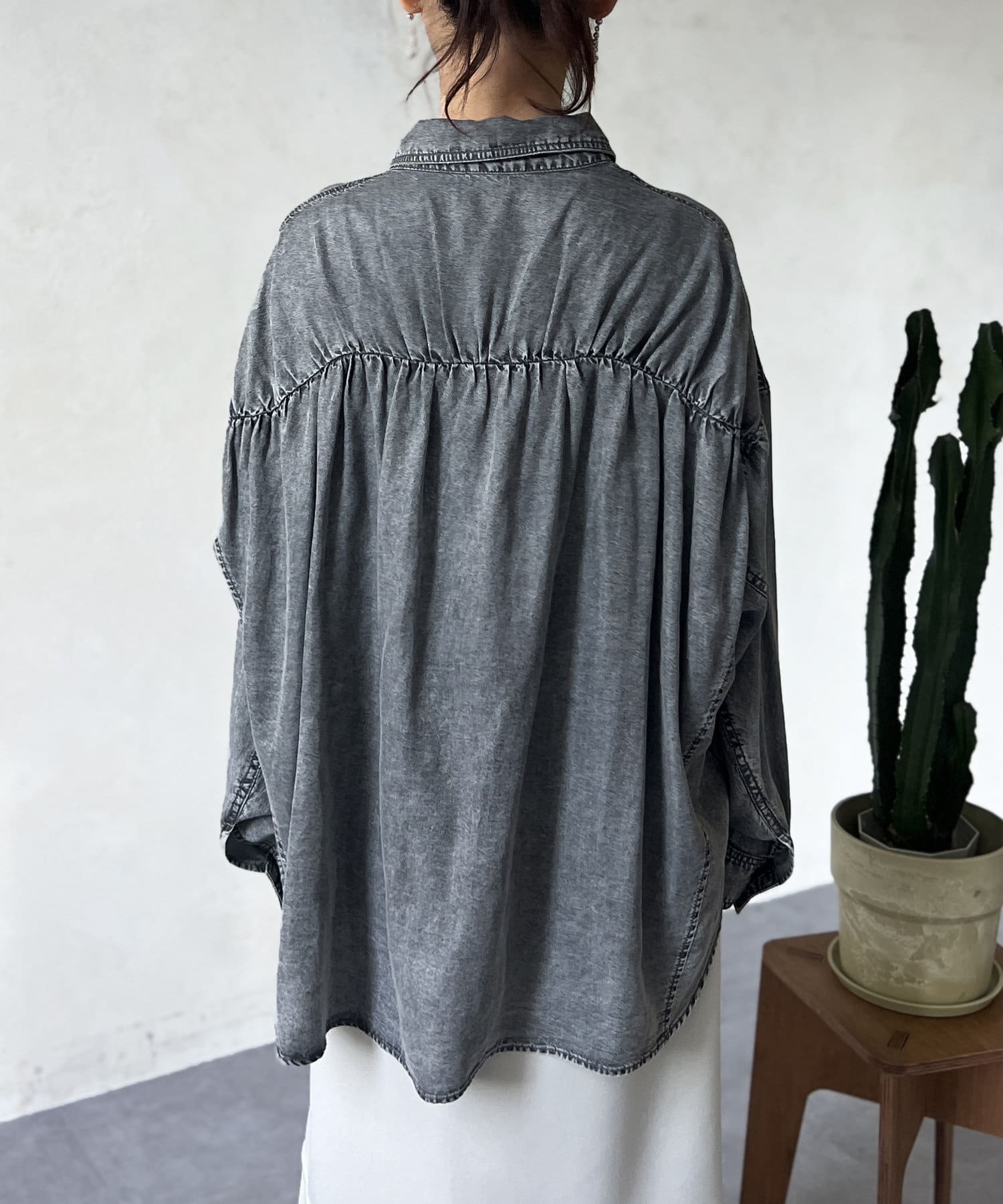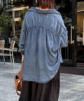 【軽くて柔らかい】【シーズンレス】BACKギャザーパウダー加工デニムシャツ