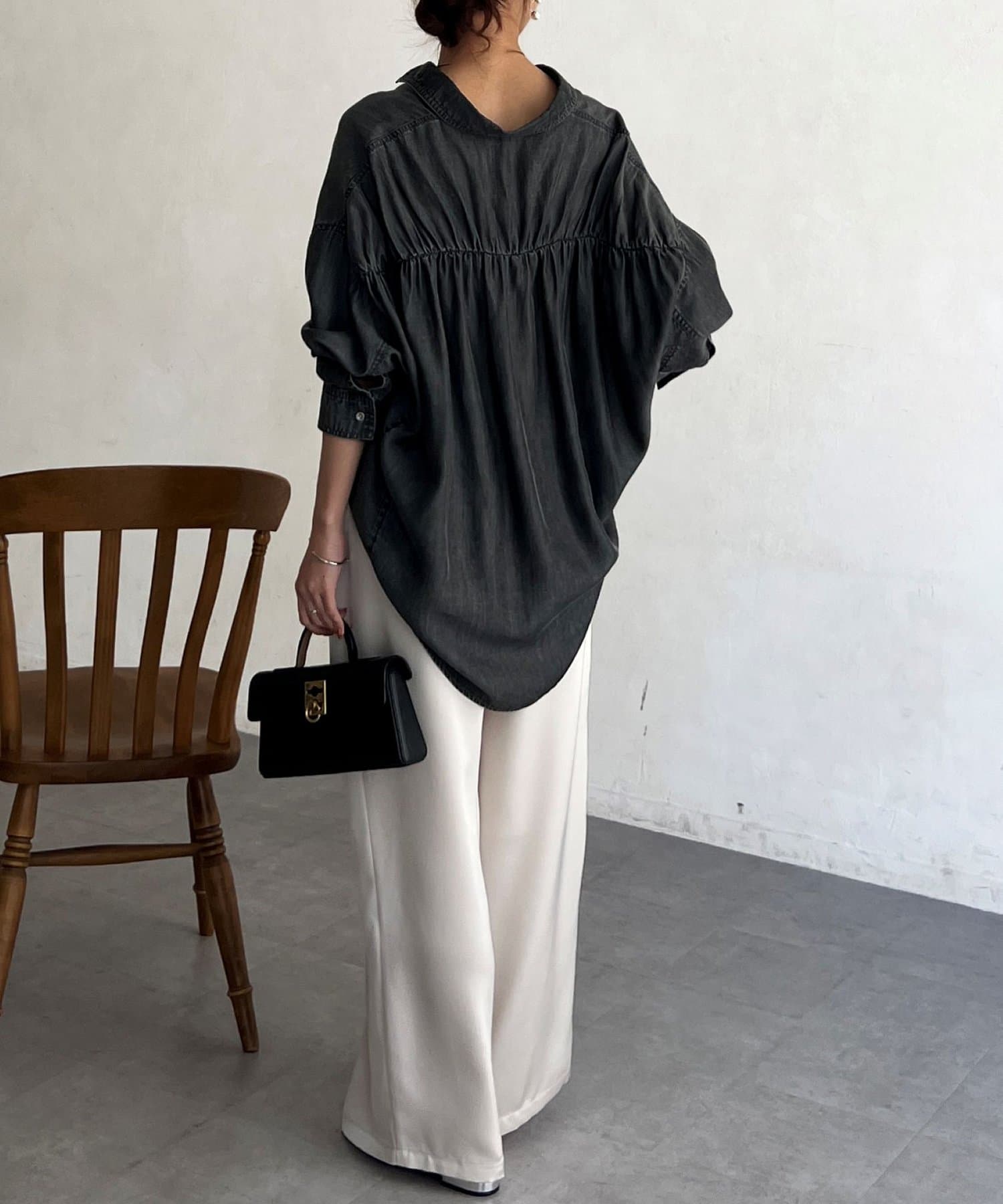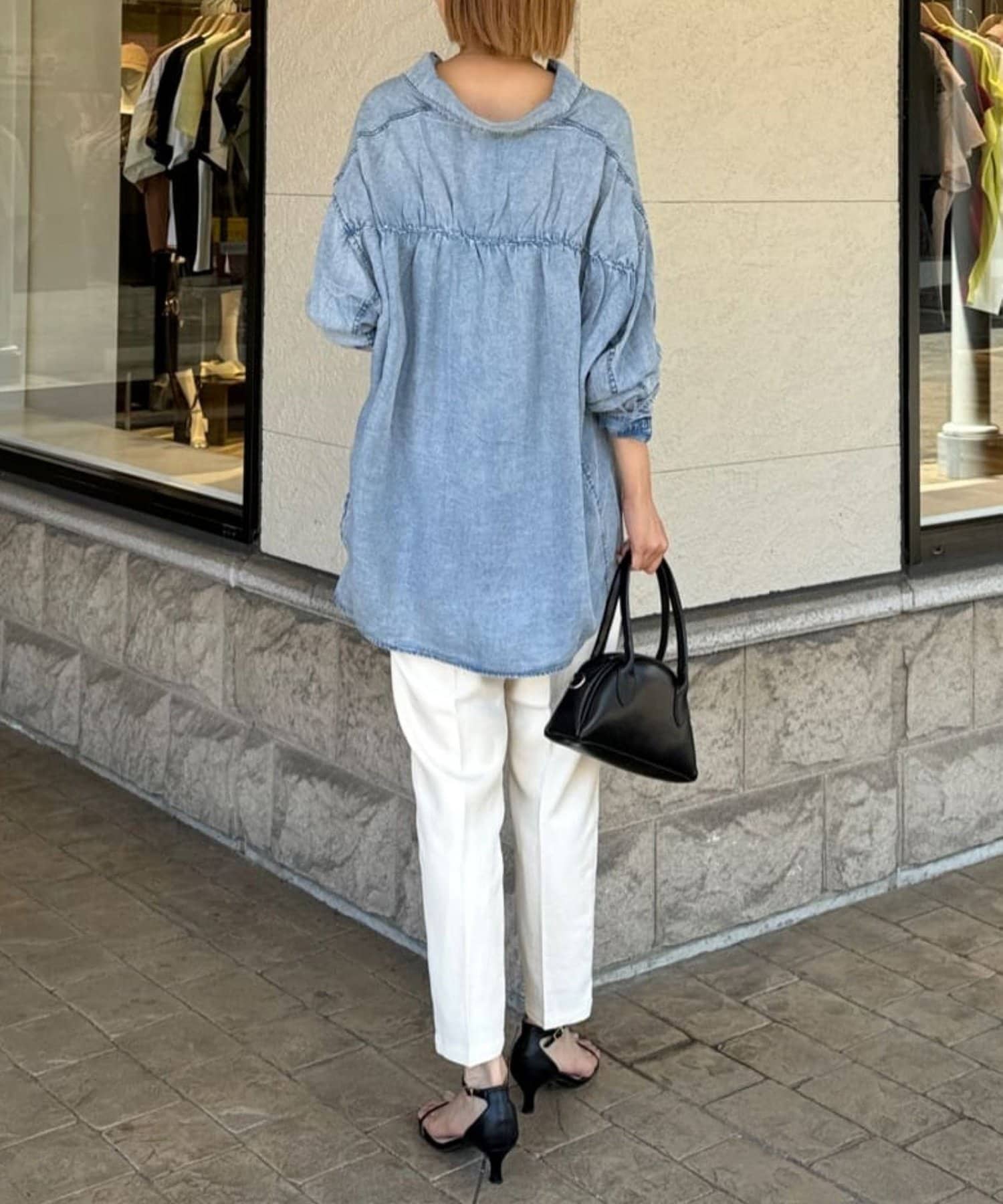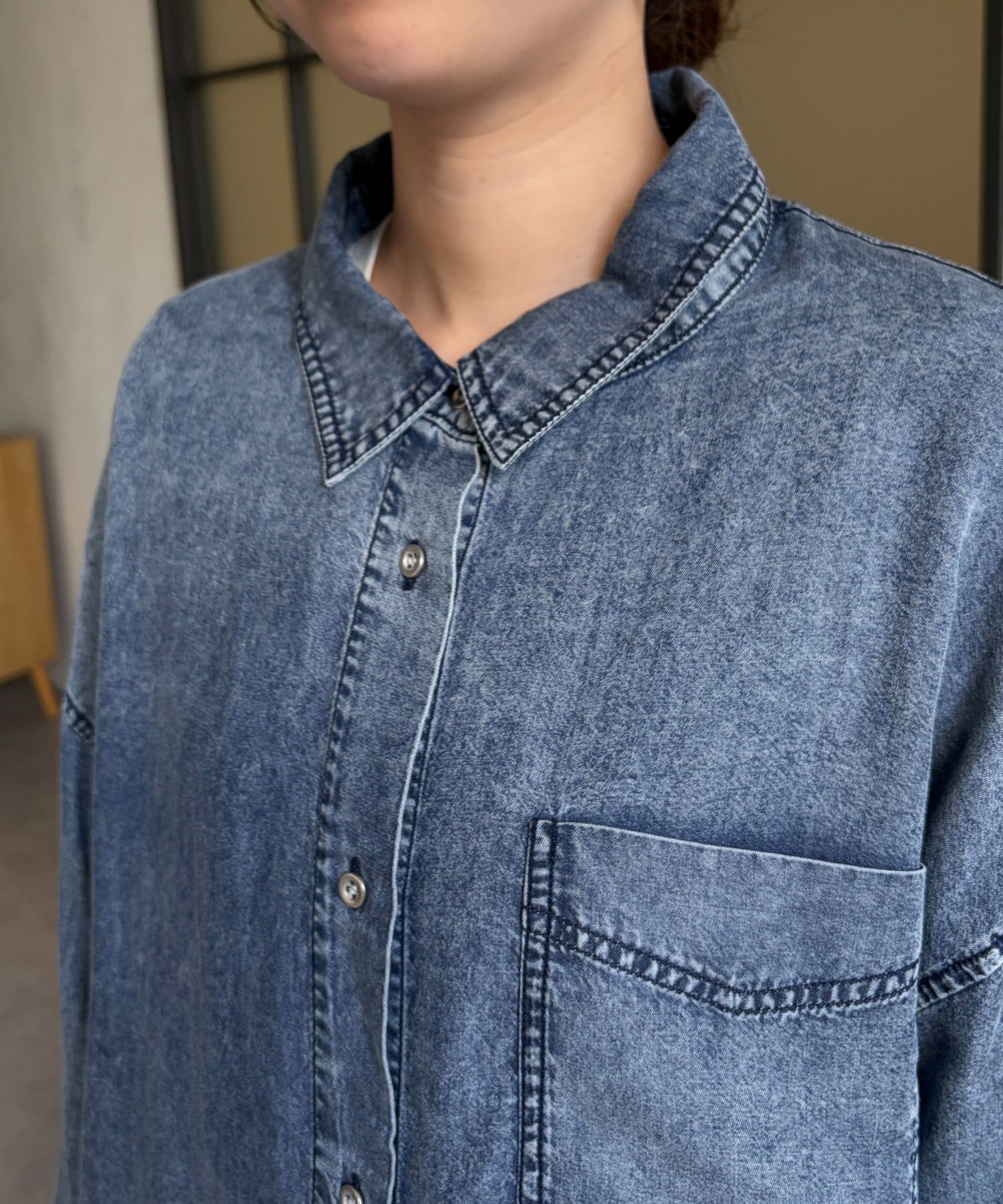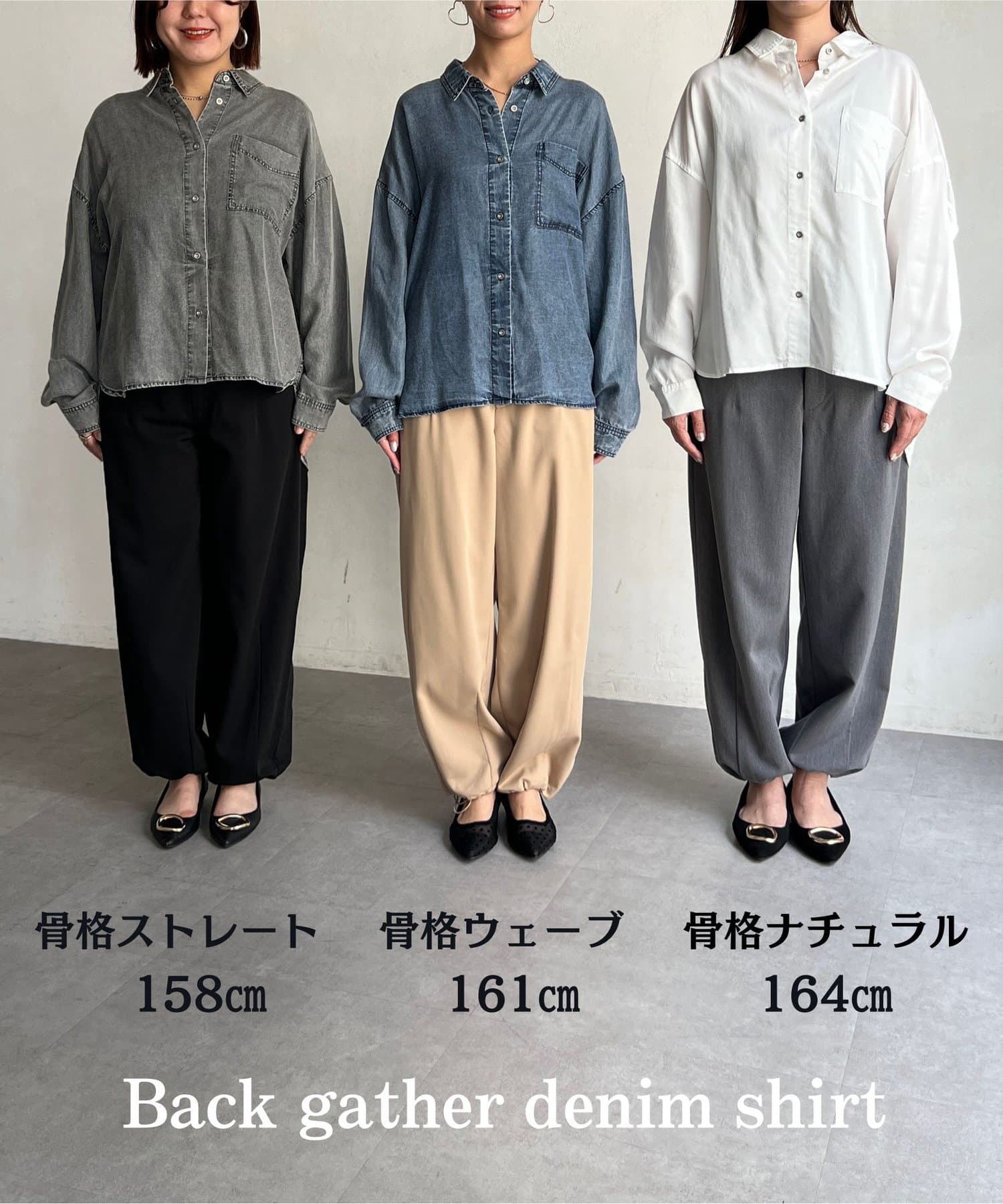 【軽くて柔らかい】【シーズンレス】BACKギャザーパウダー加工デニムシャツ
