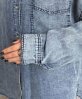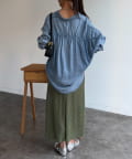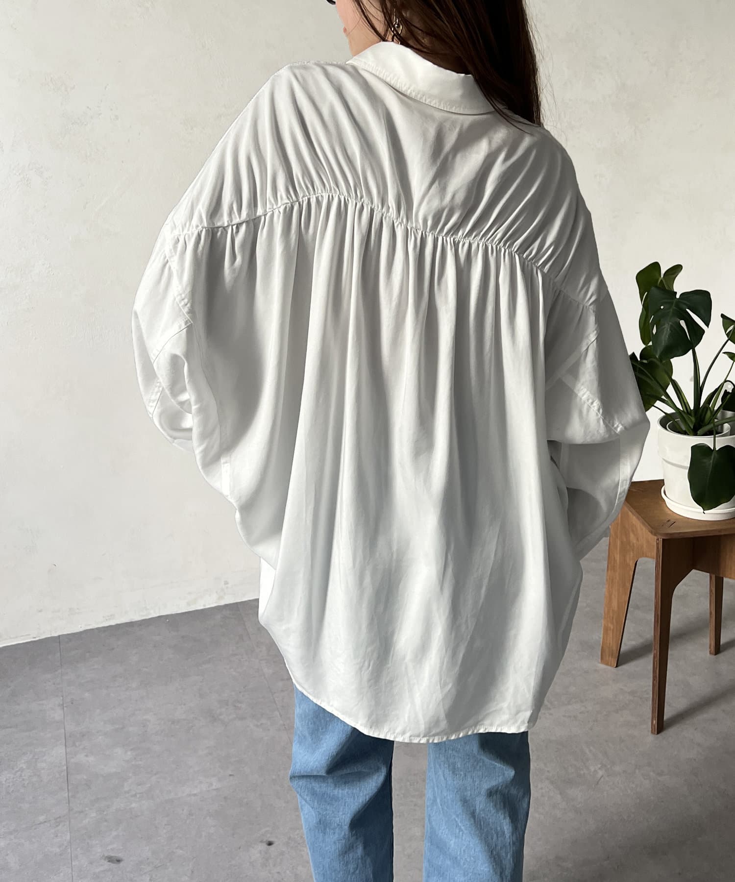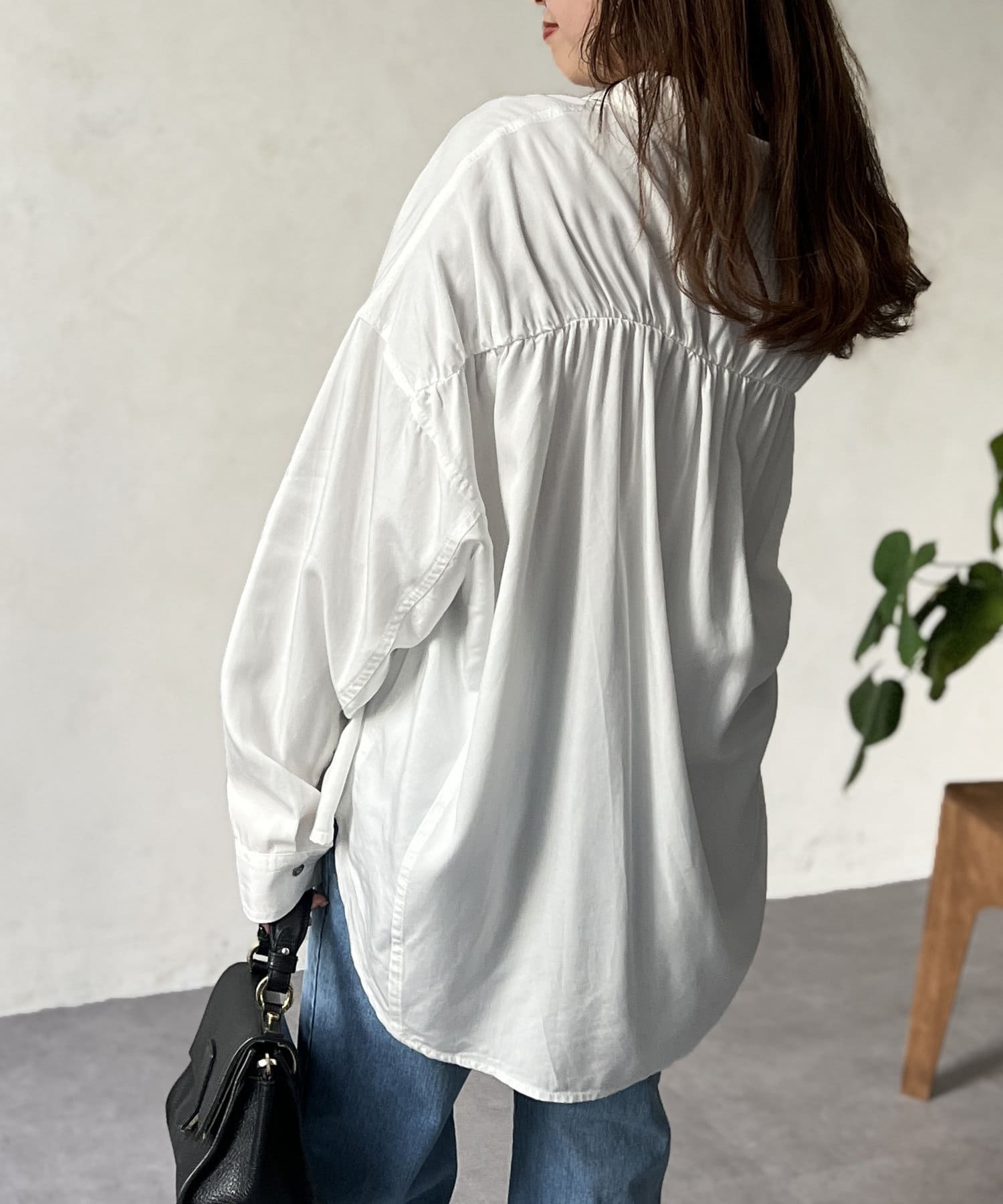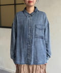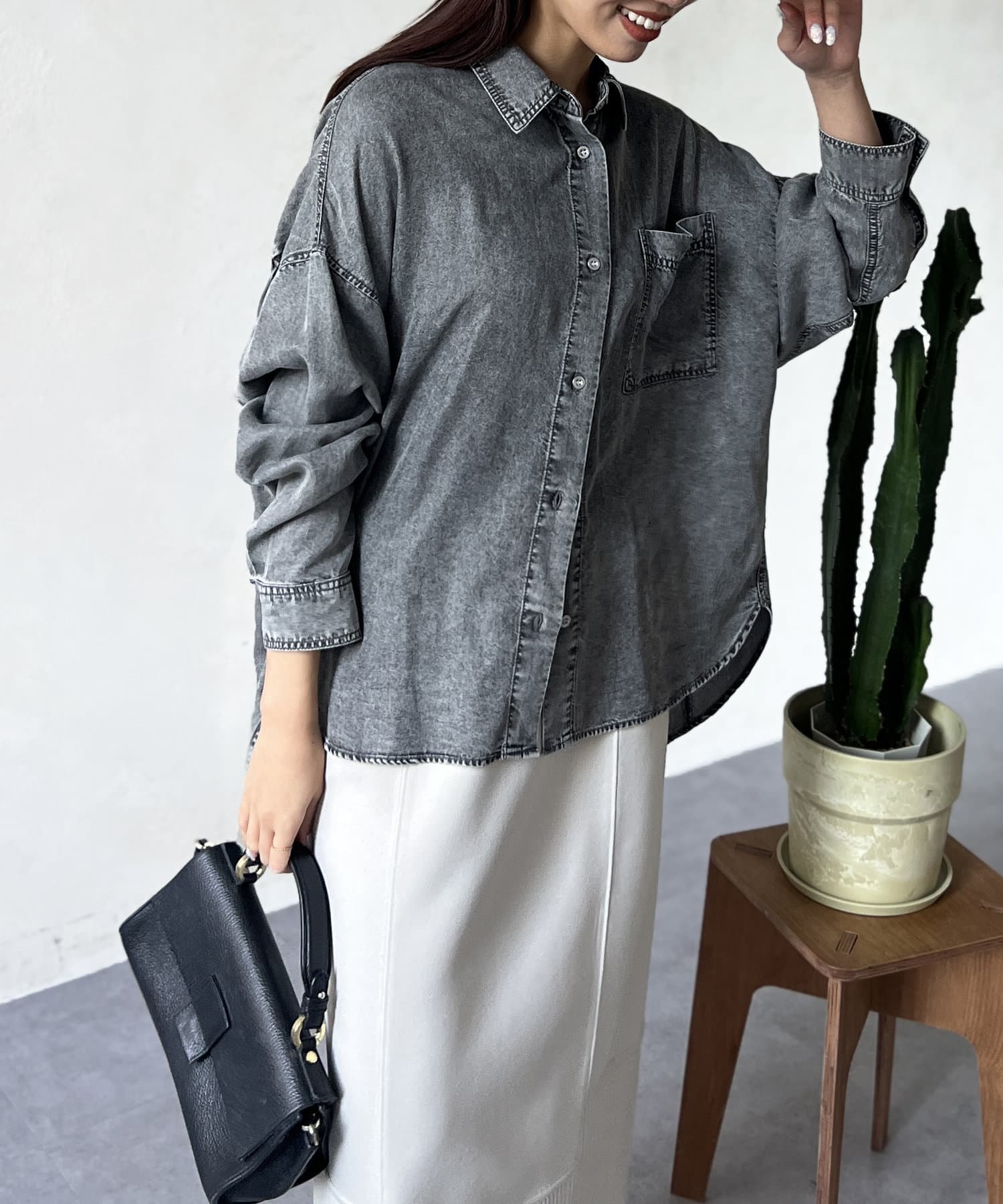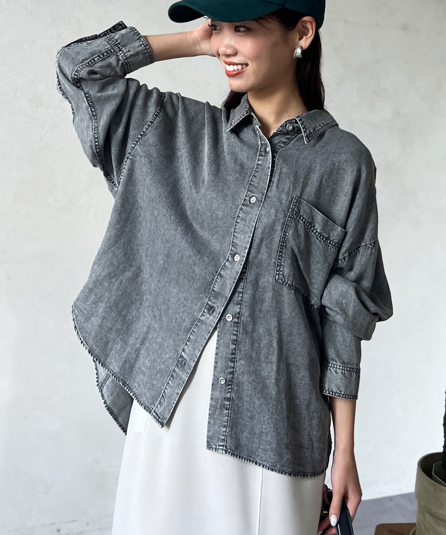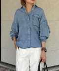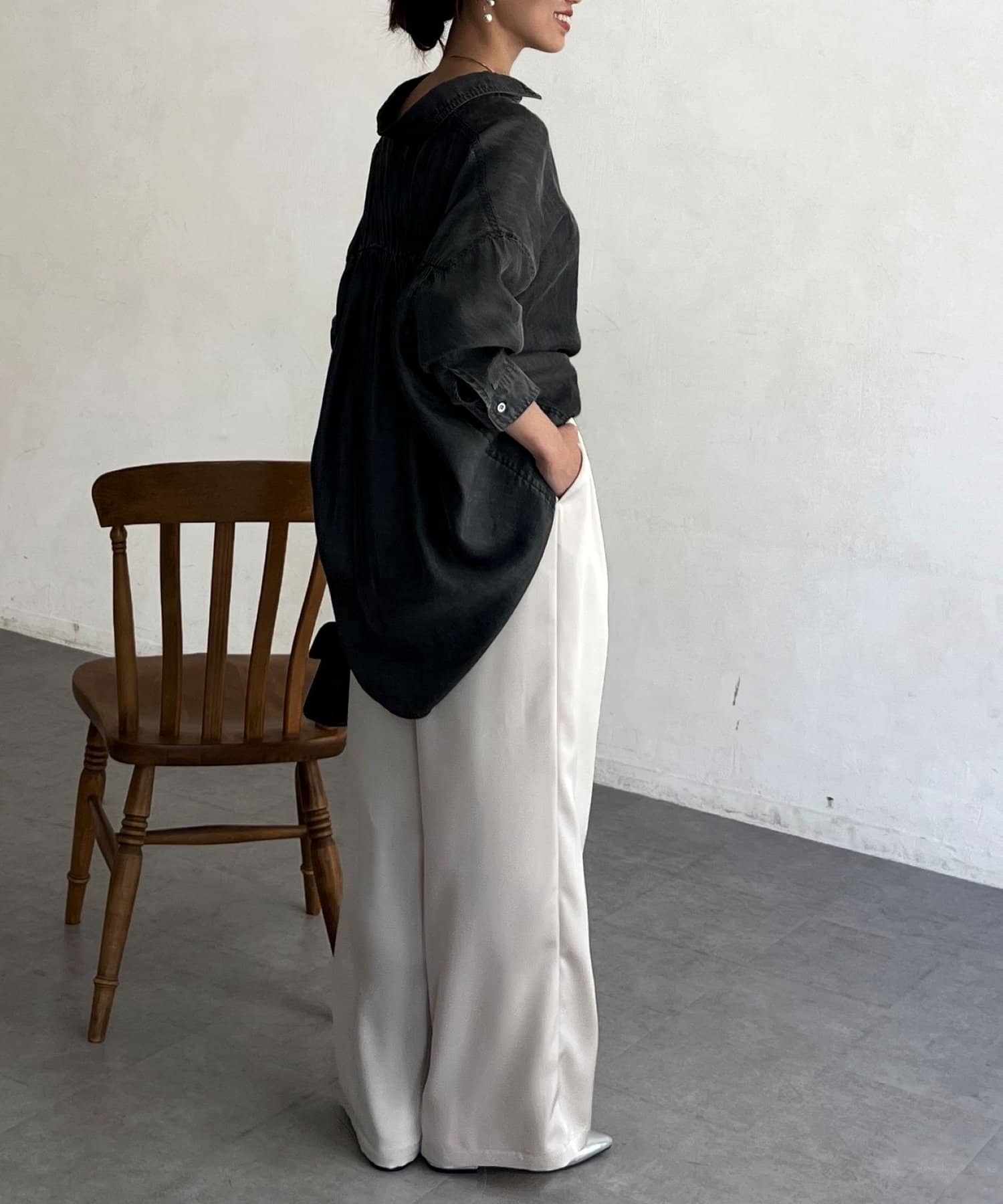 【軽くて柔らかい】【シーズンレス】BACKギャザーパウダー加工デニムシャツ