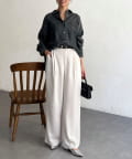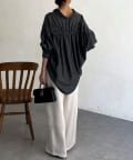 ストレスフリーな着心地。またやや光沢感のある生地が高見え