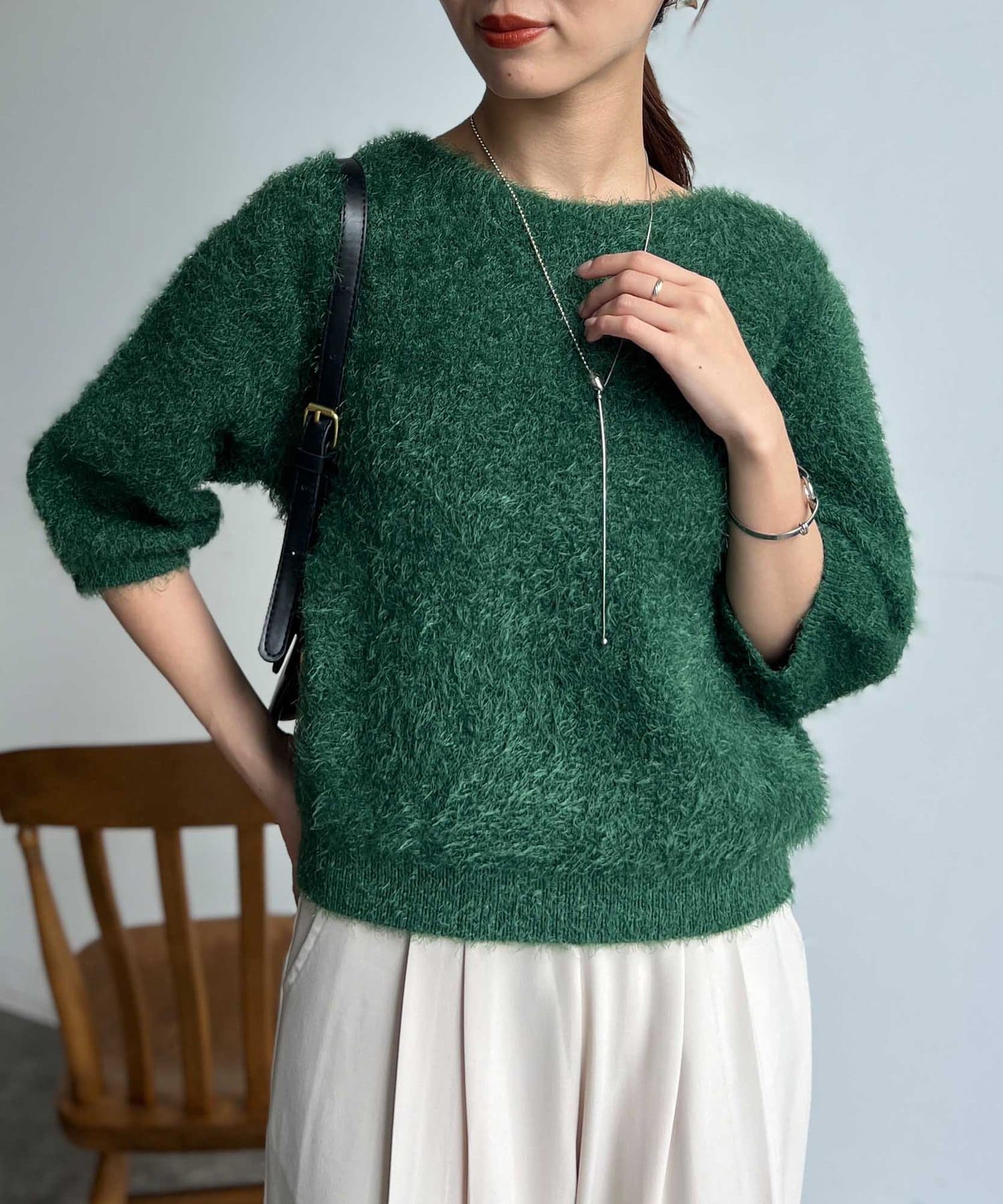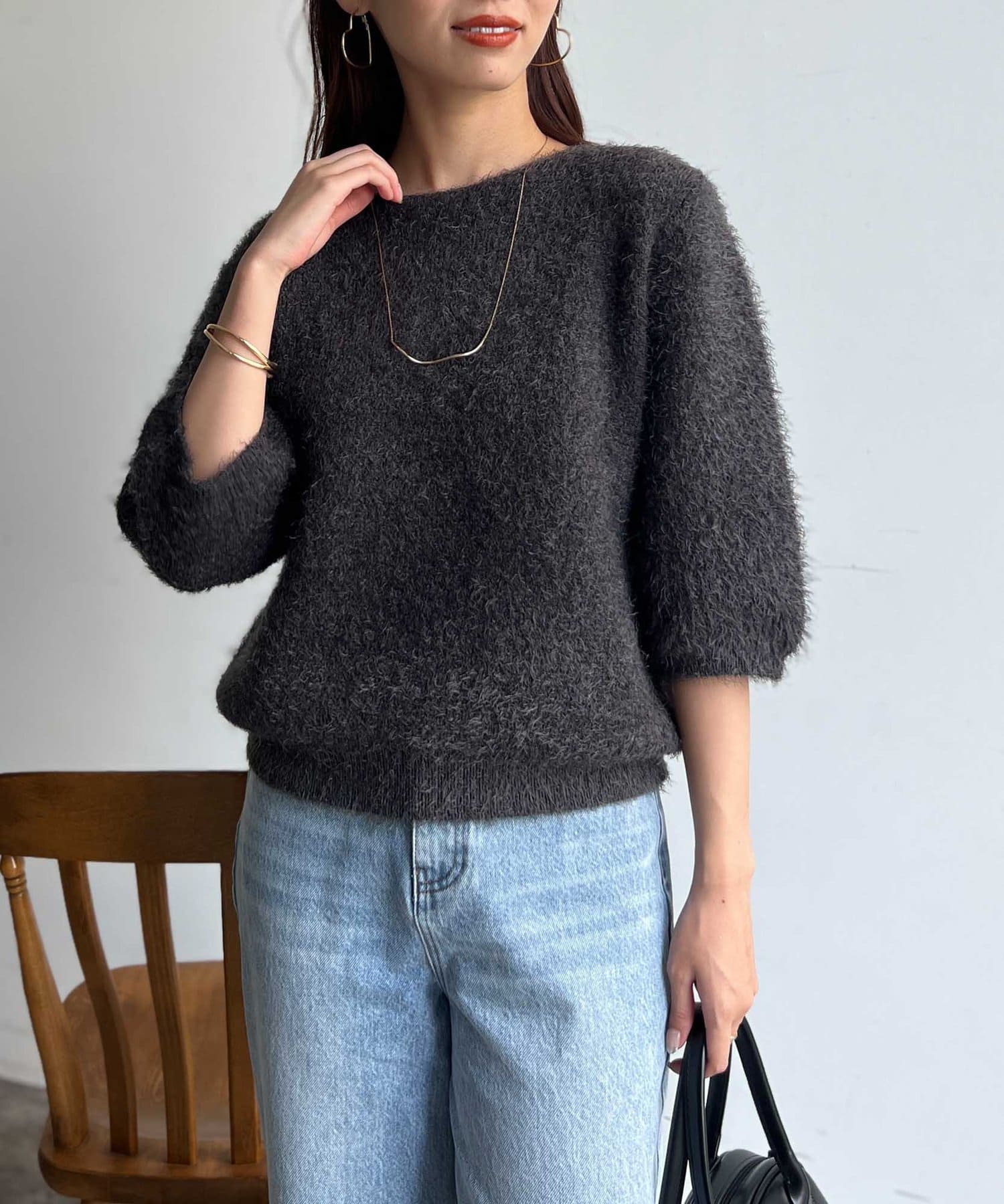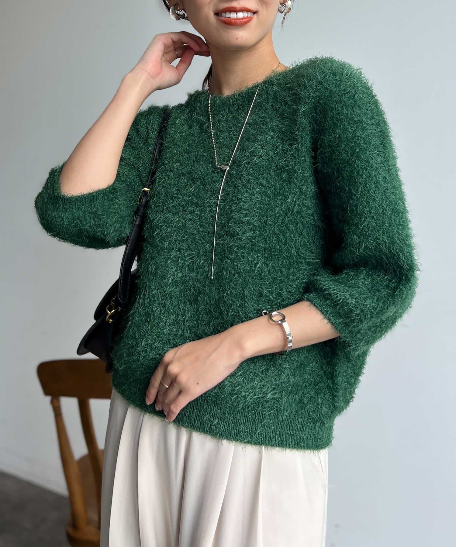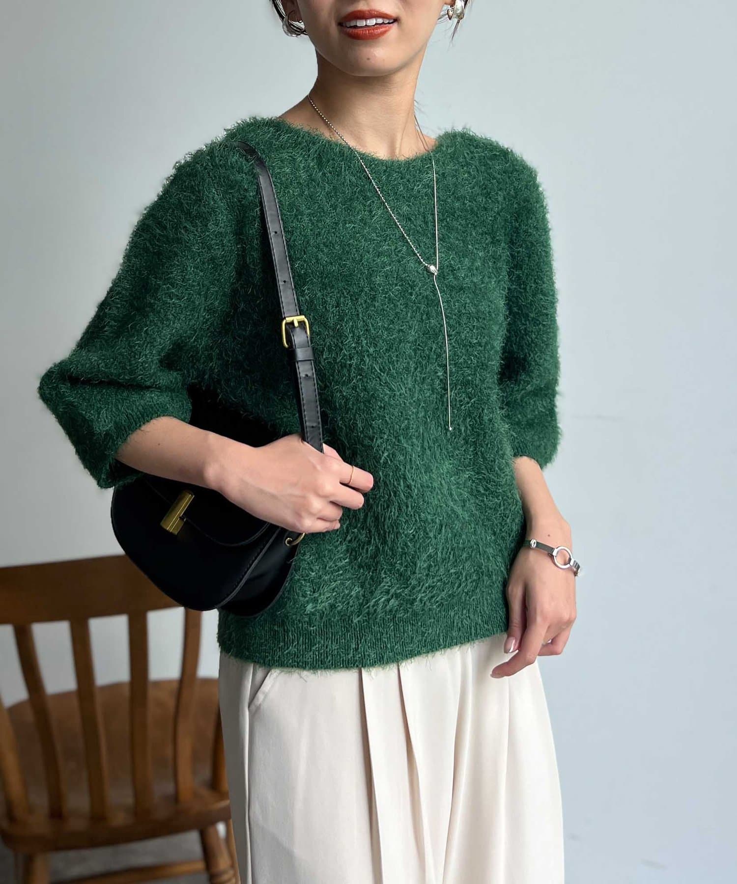 今季注目のシャギーニットプルオーバーが6分袖で登場