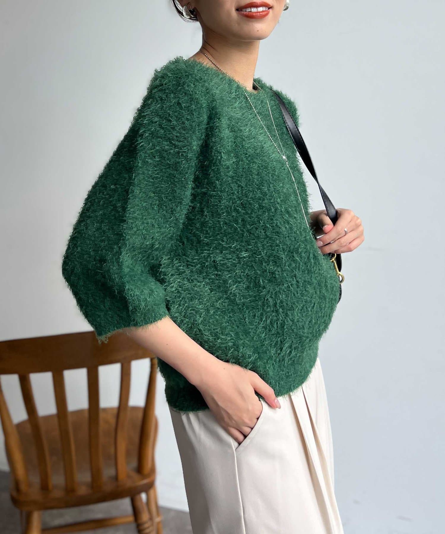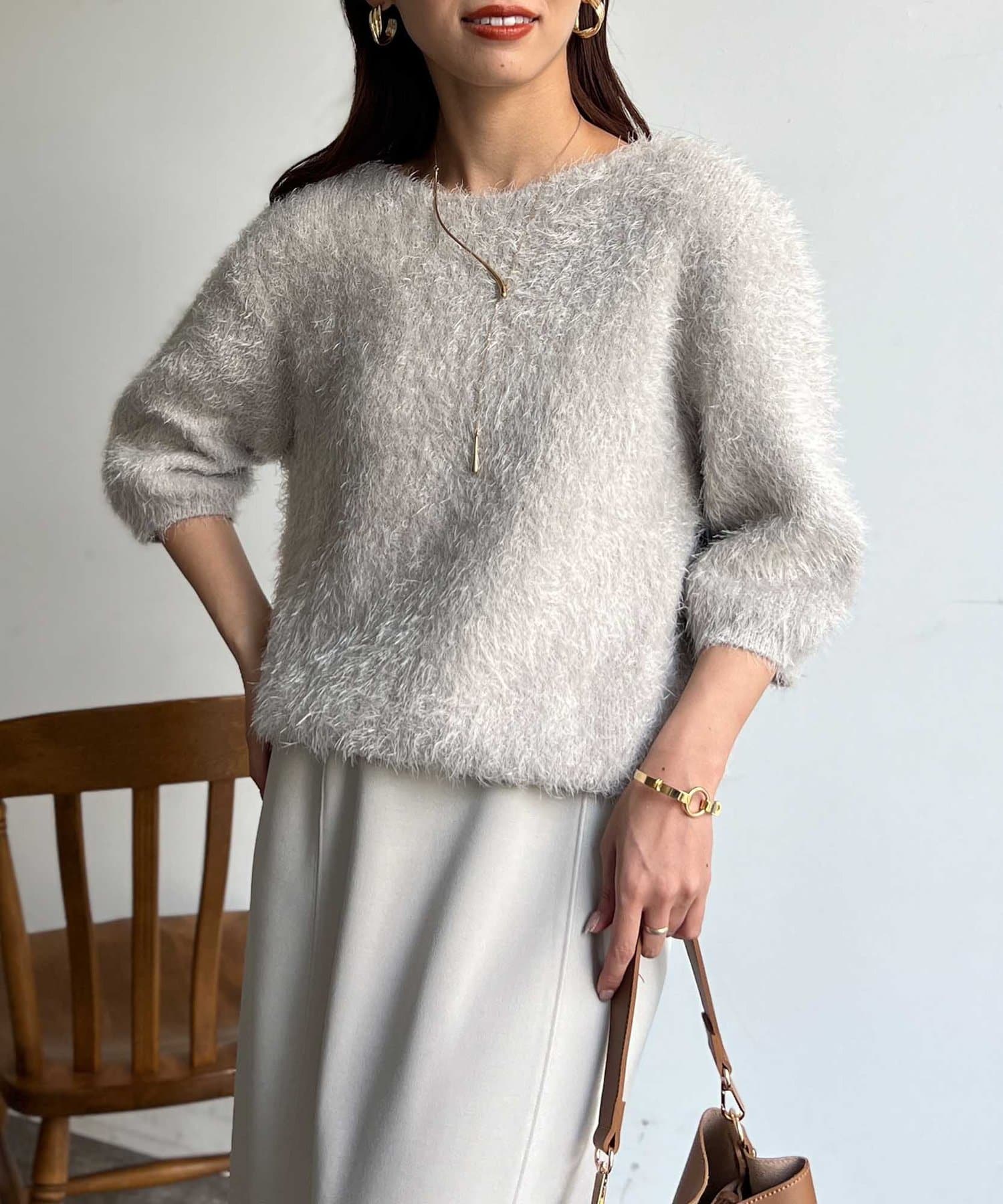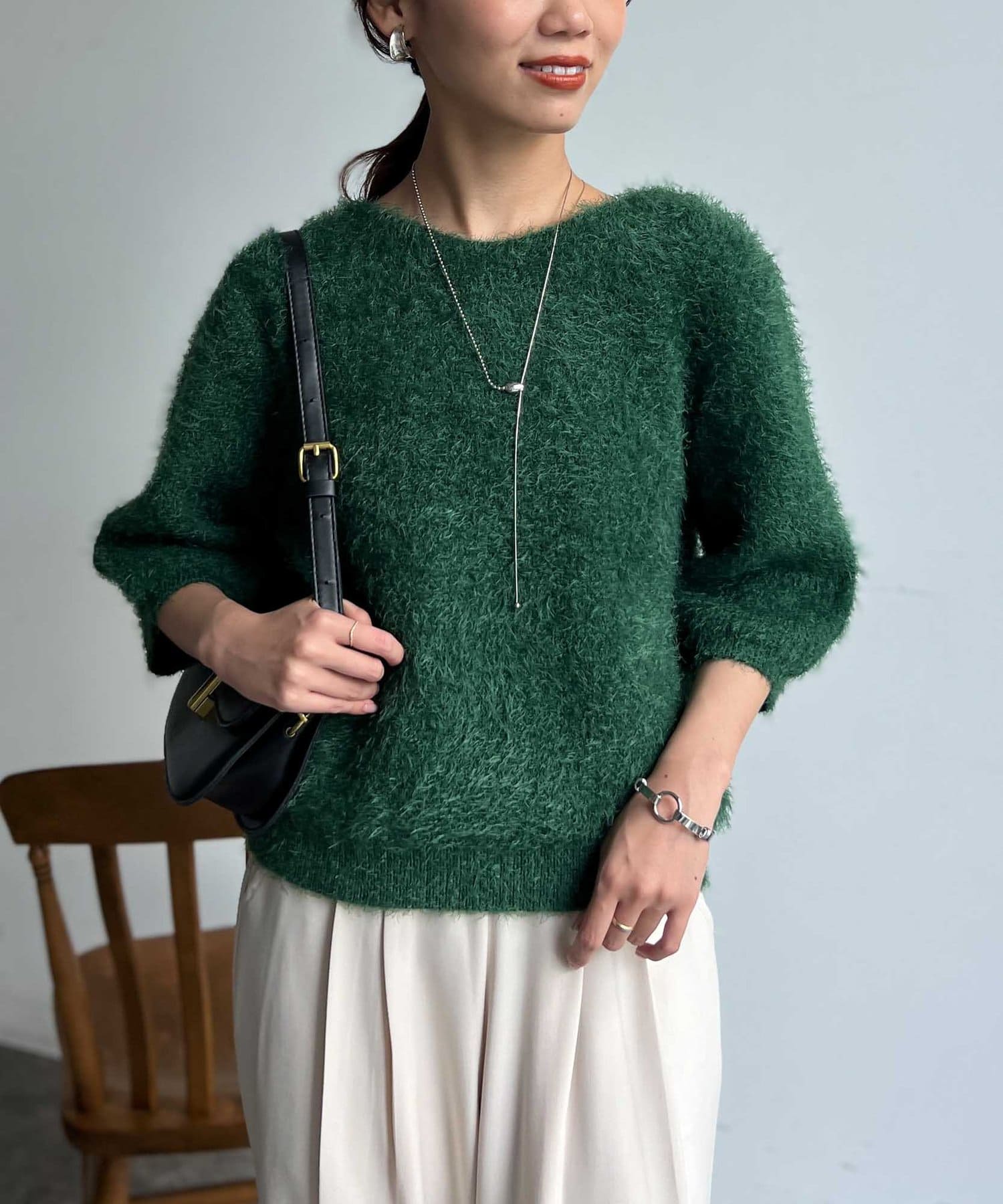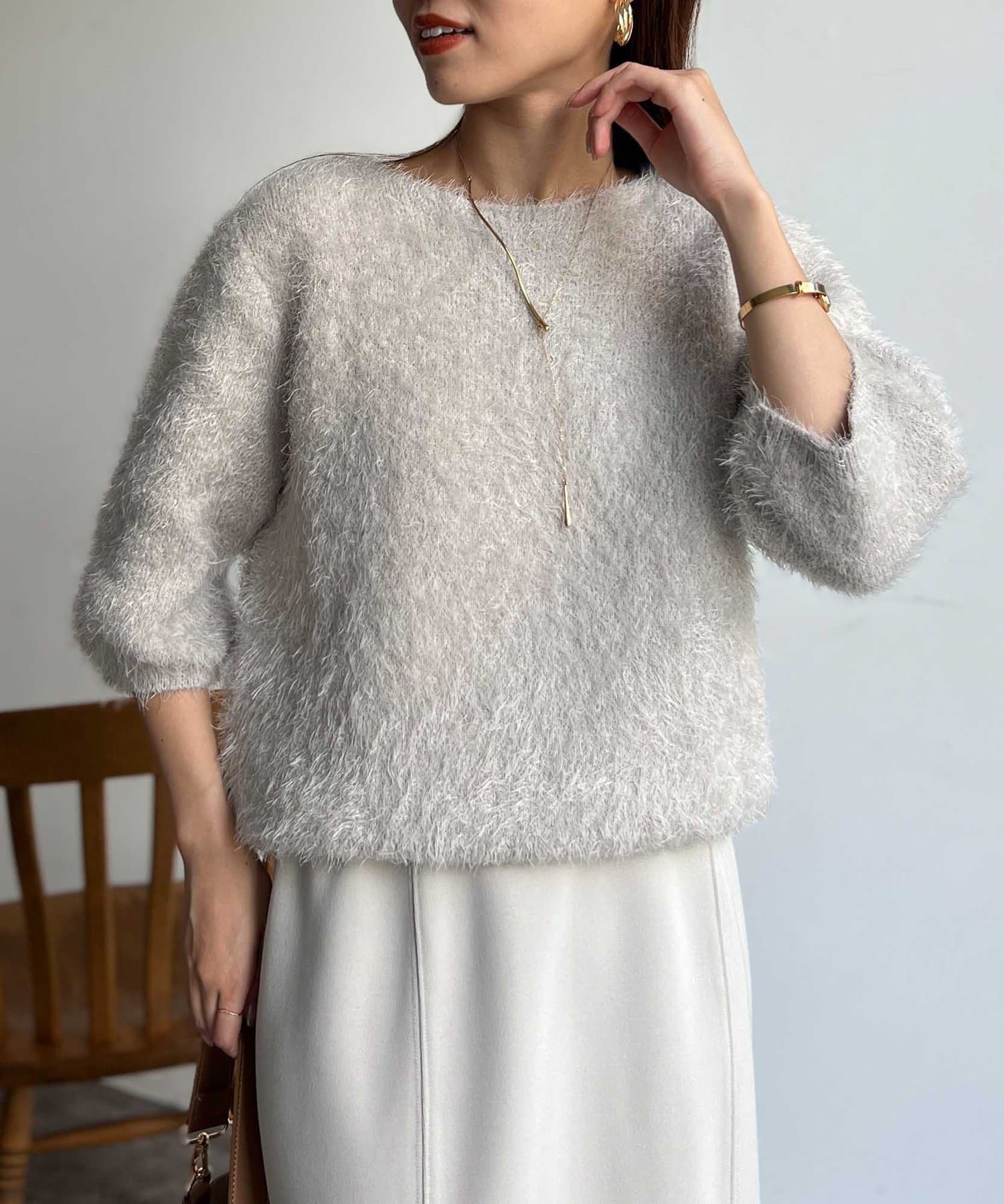 今季注目のシャギーニットプルオーバーが6分袖で登場