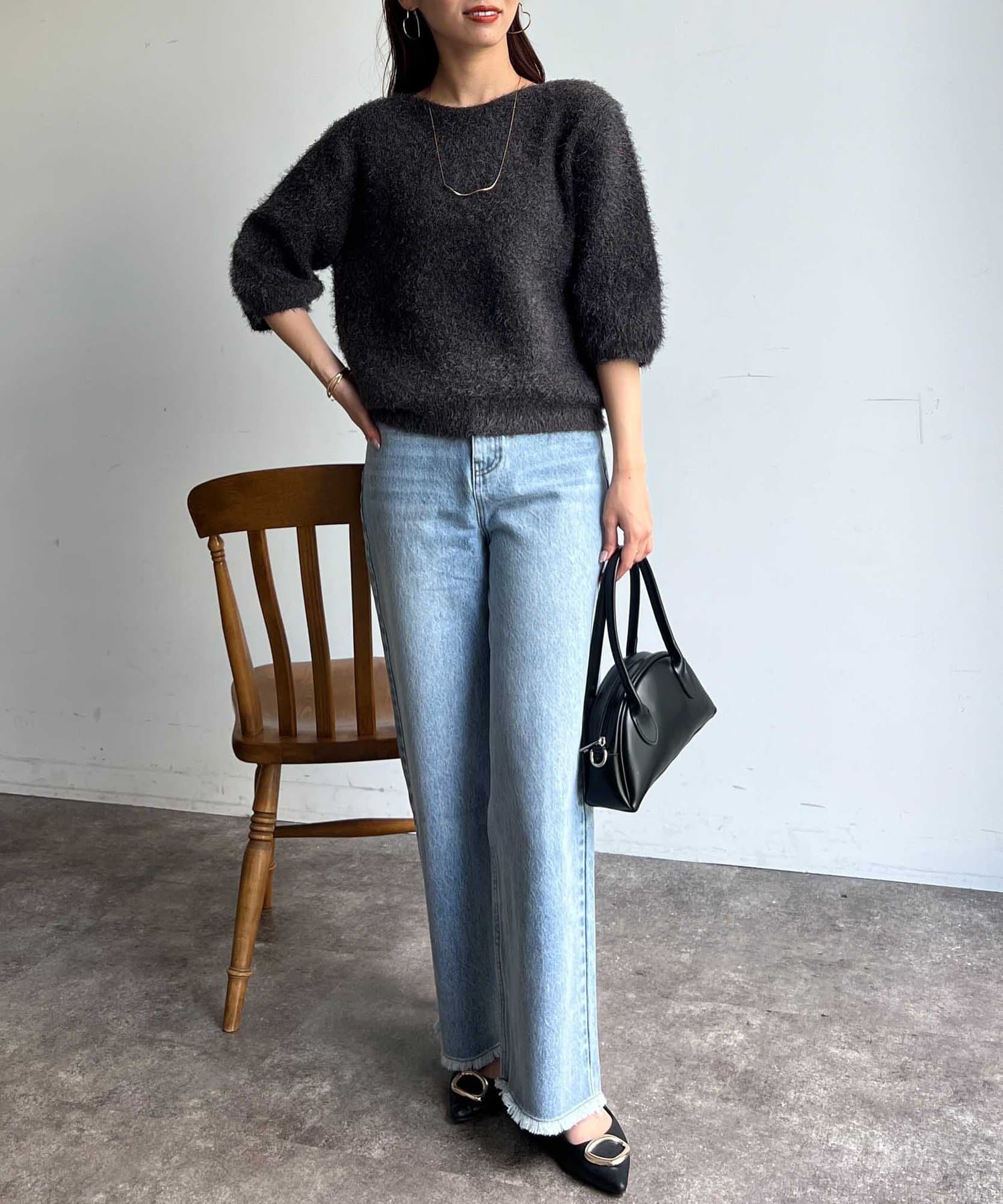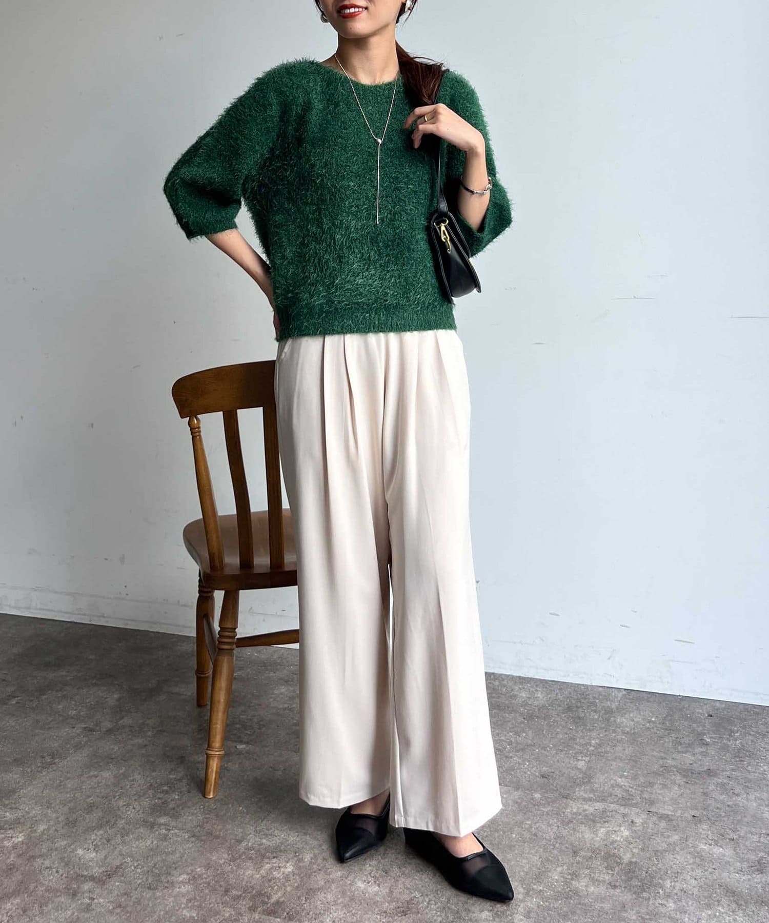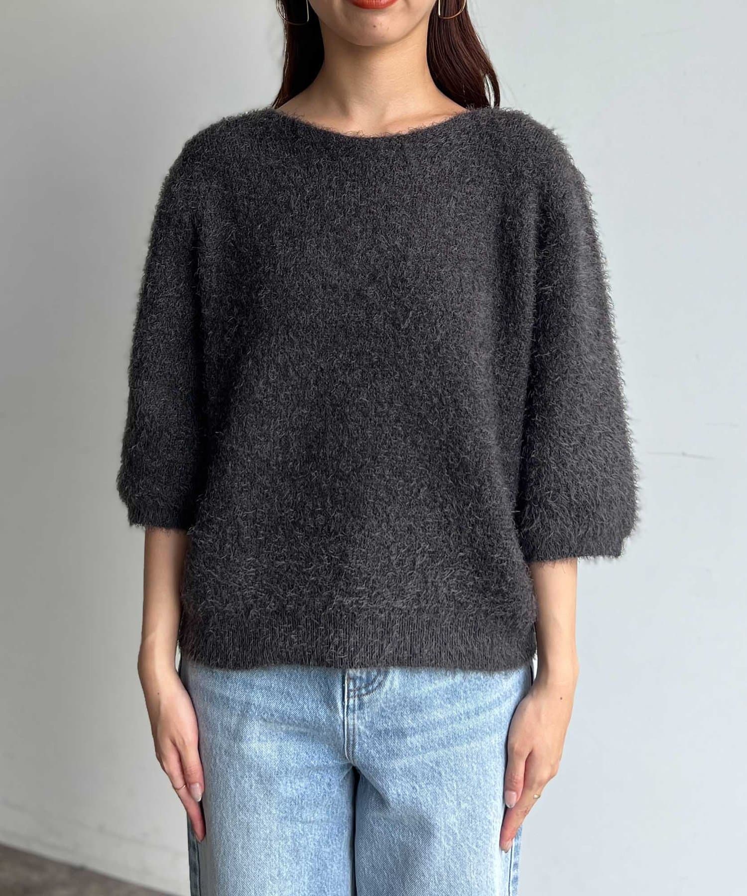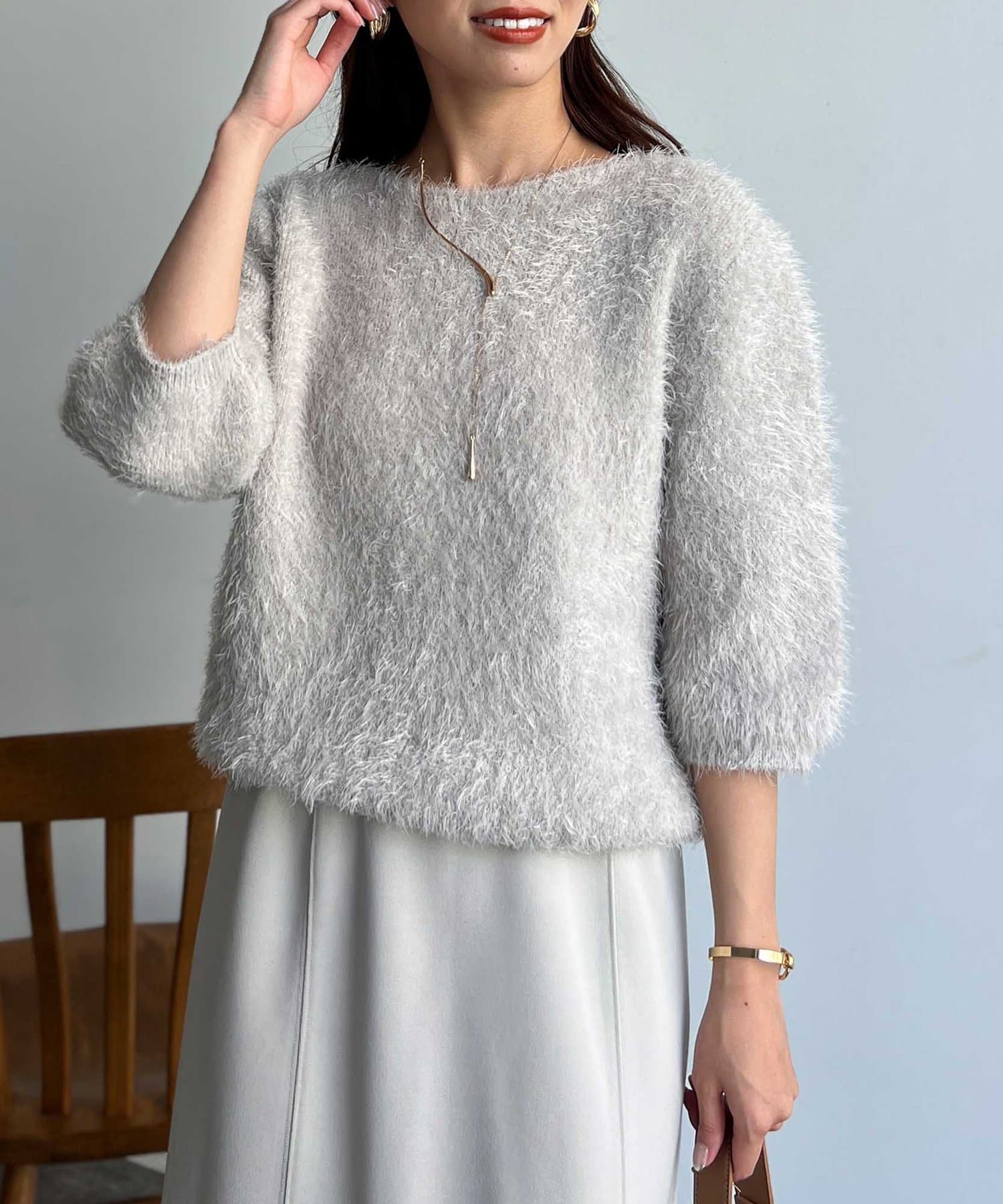 今季注目のシャギーニットプルオーバーが6分袖で登場