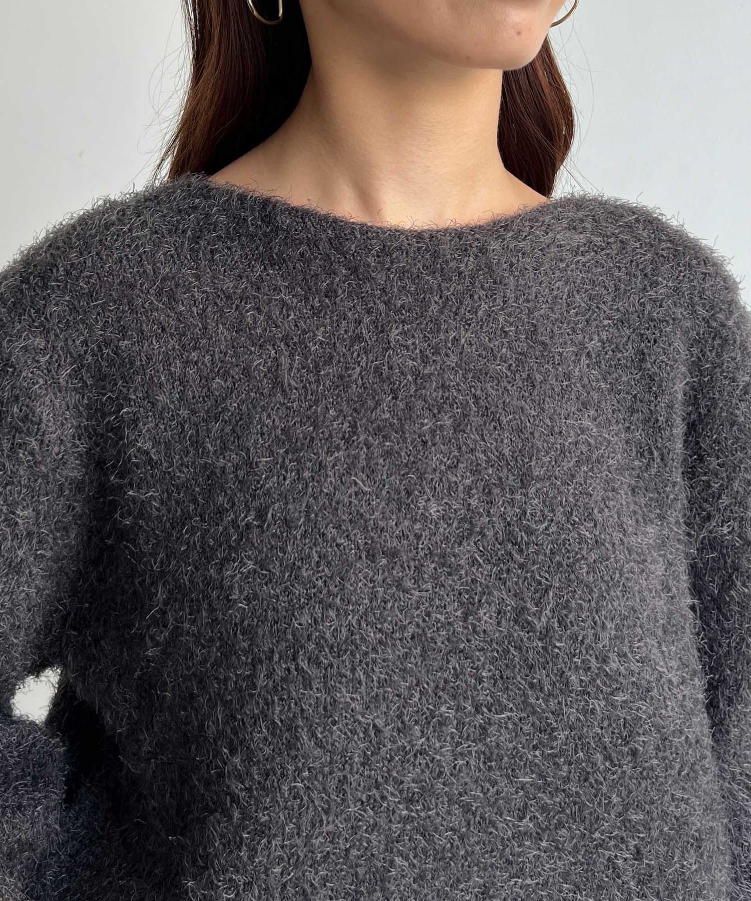 今季注目の毛足の長いシャギーニットプルオーバー。