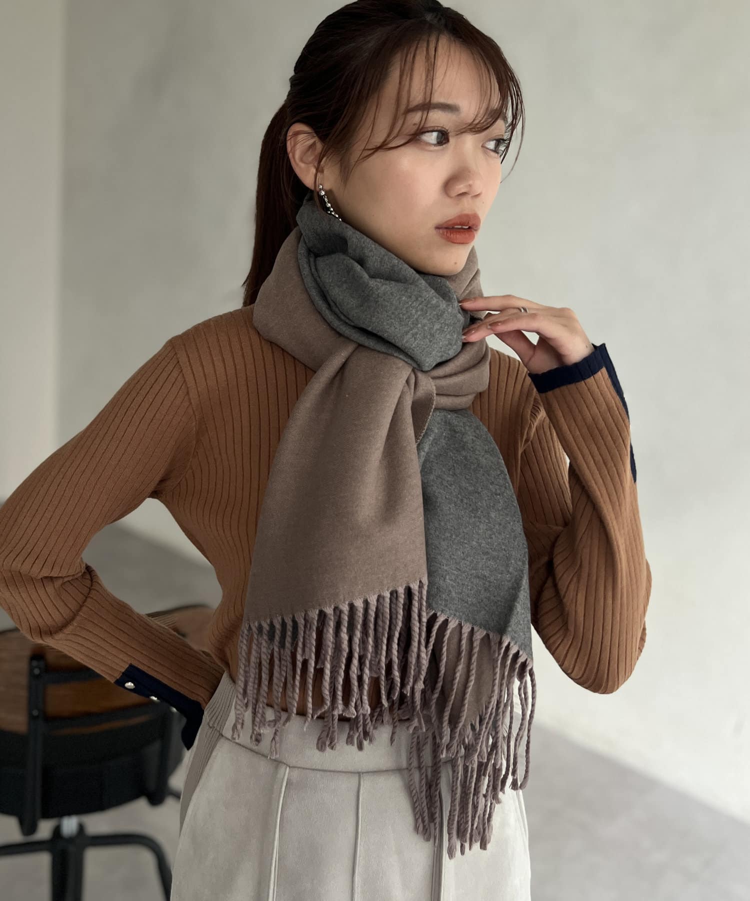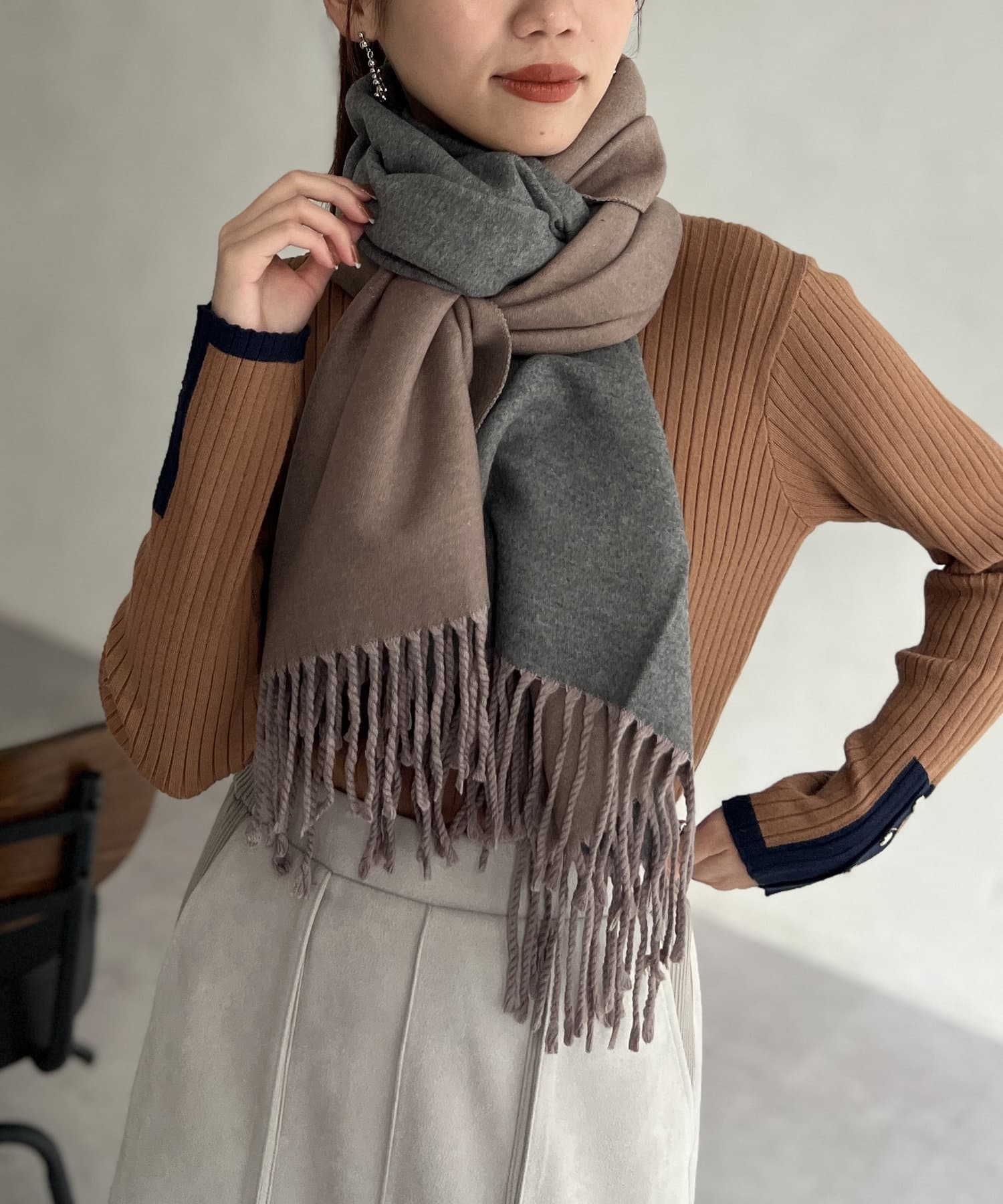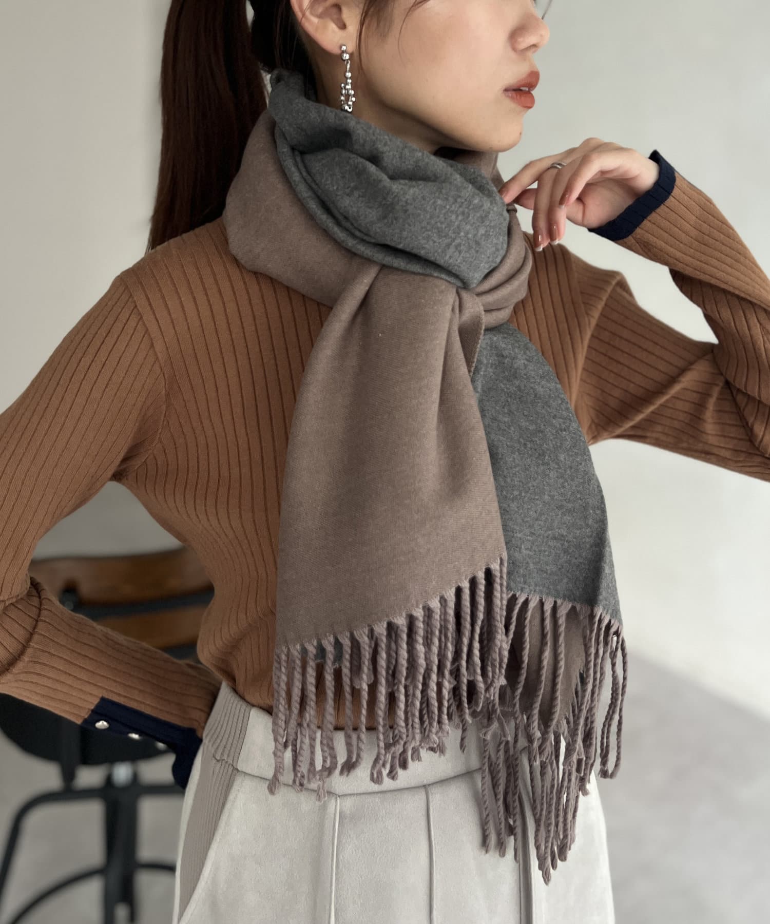 リバーシブルでカラーを使い分けできる万能ストール