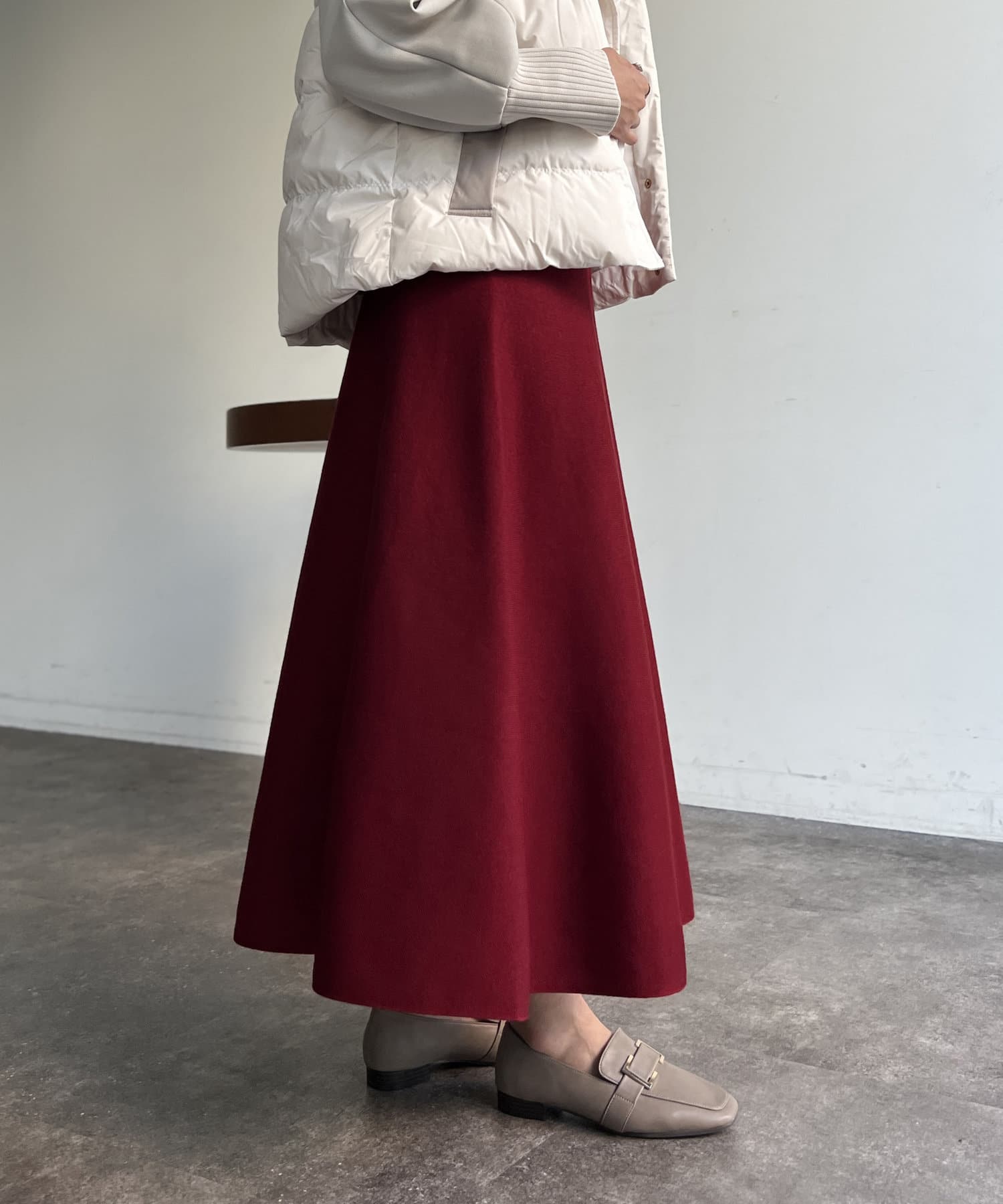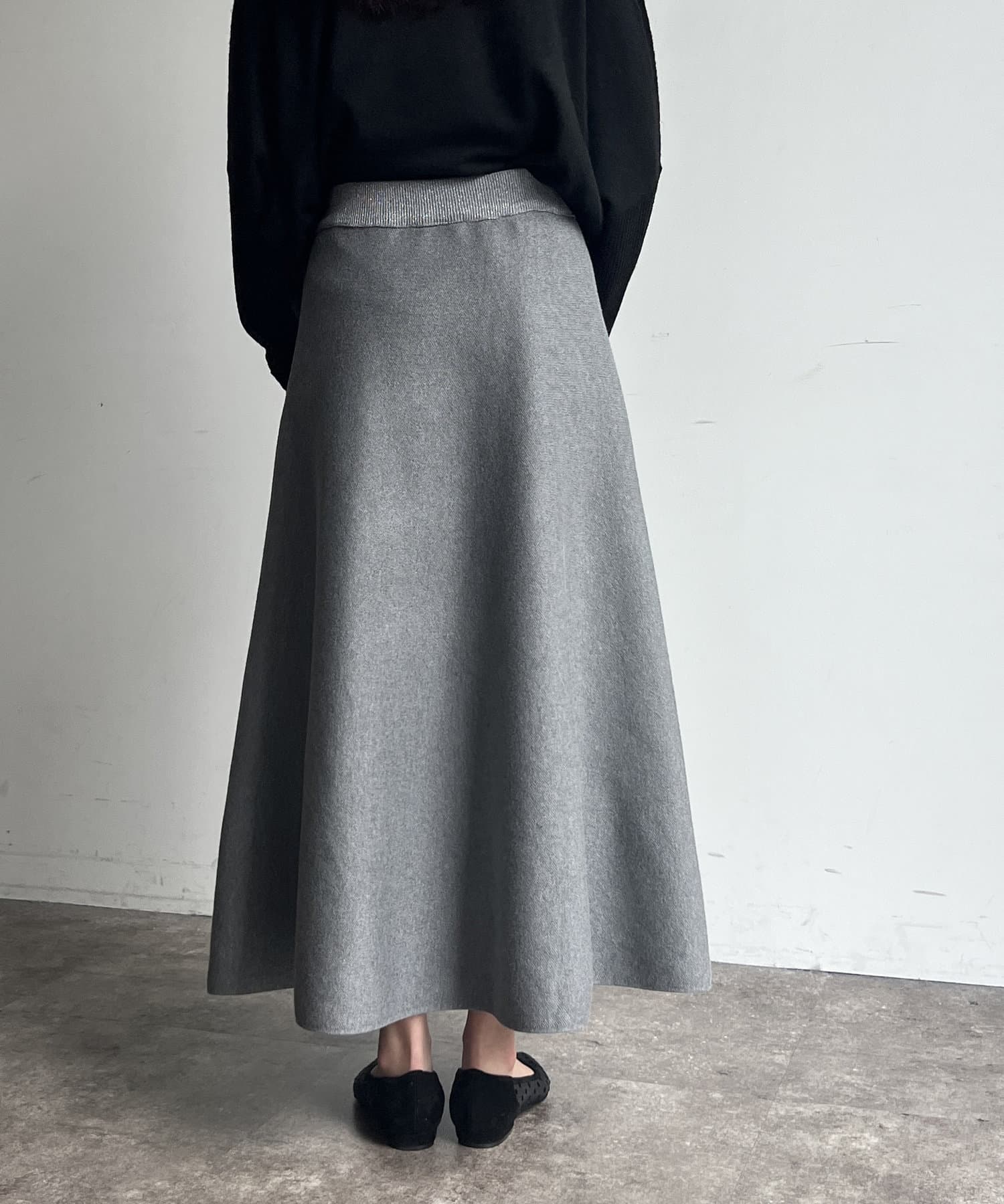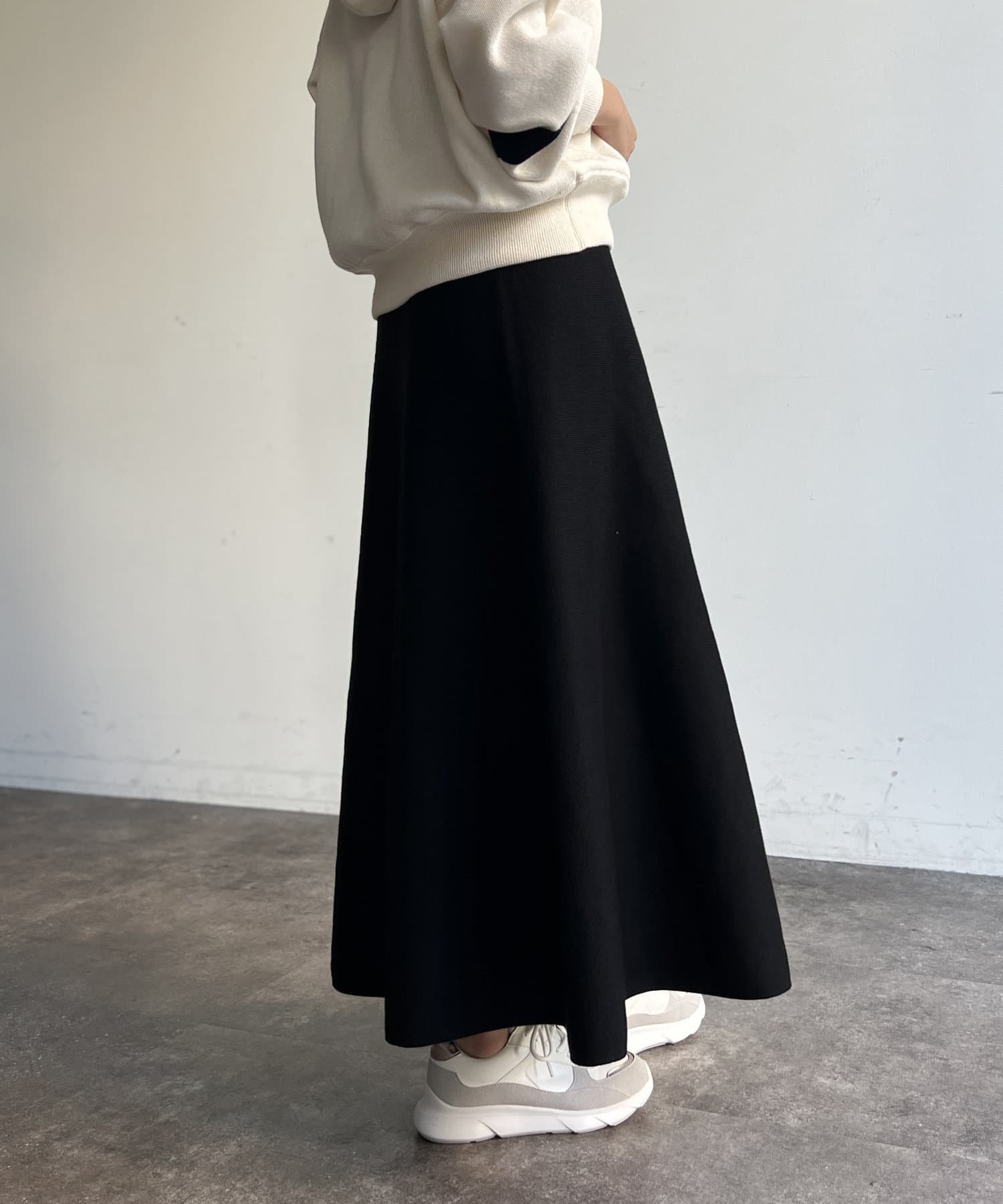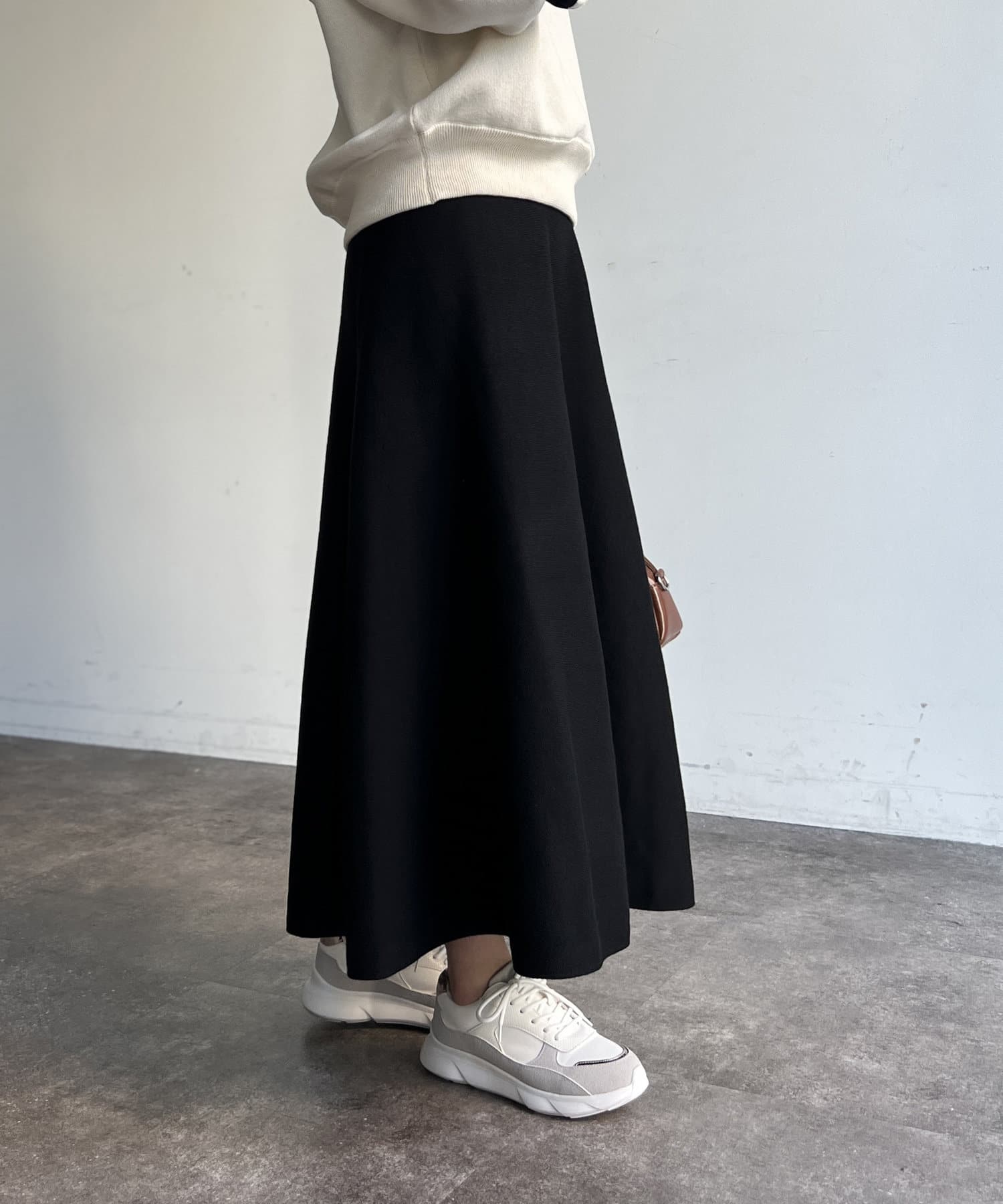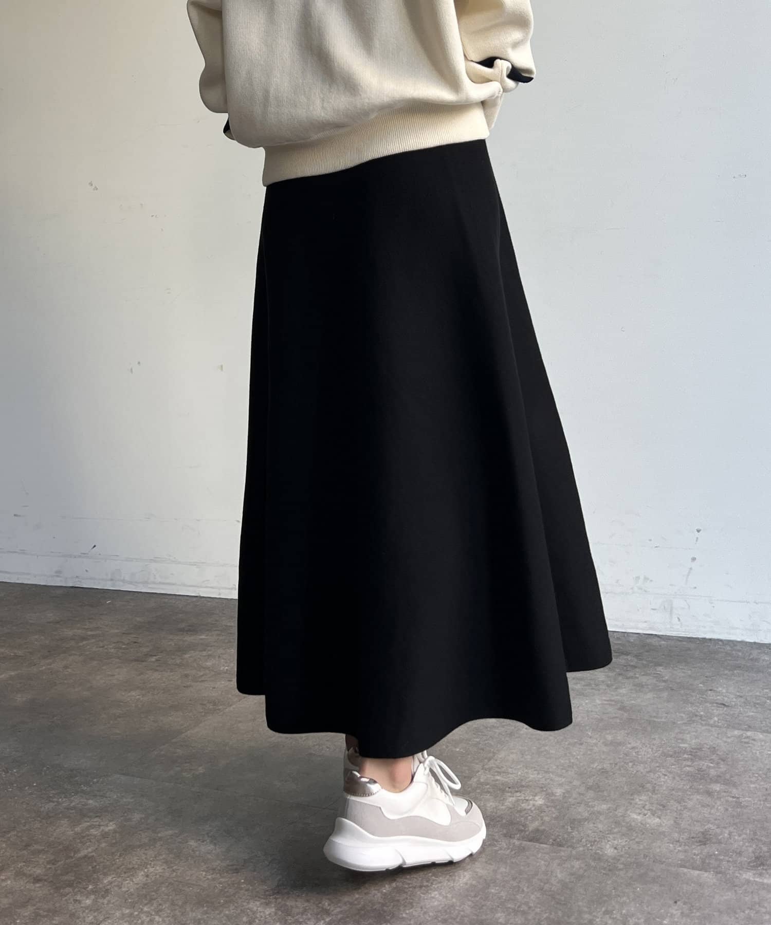 ふんわり広がるニット素材が魅力のフレアスカート。