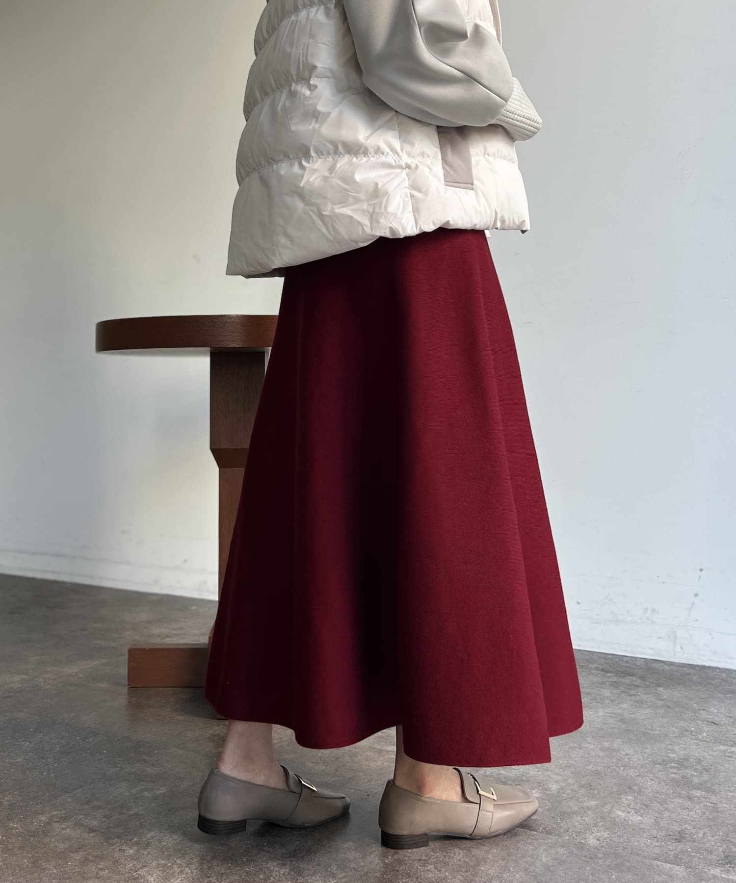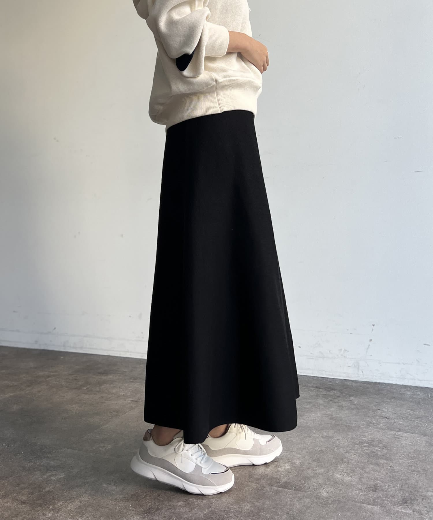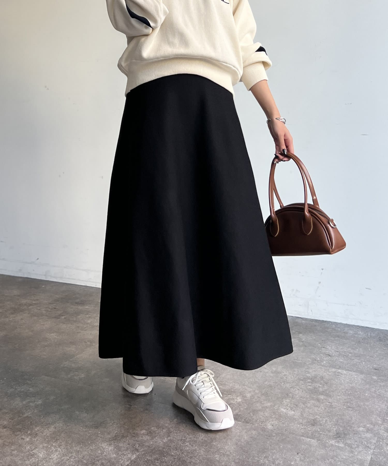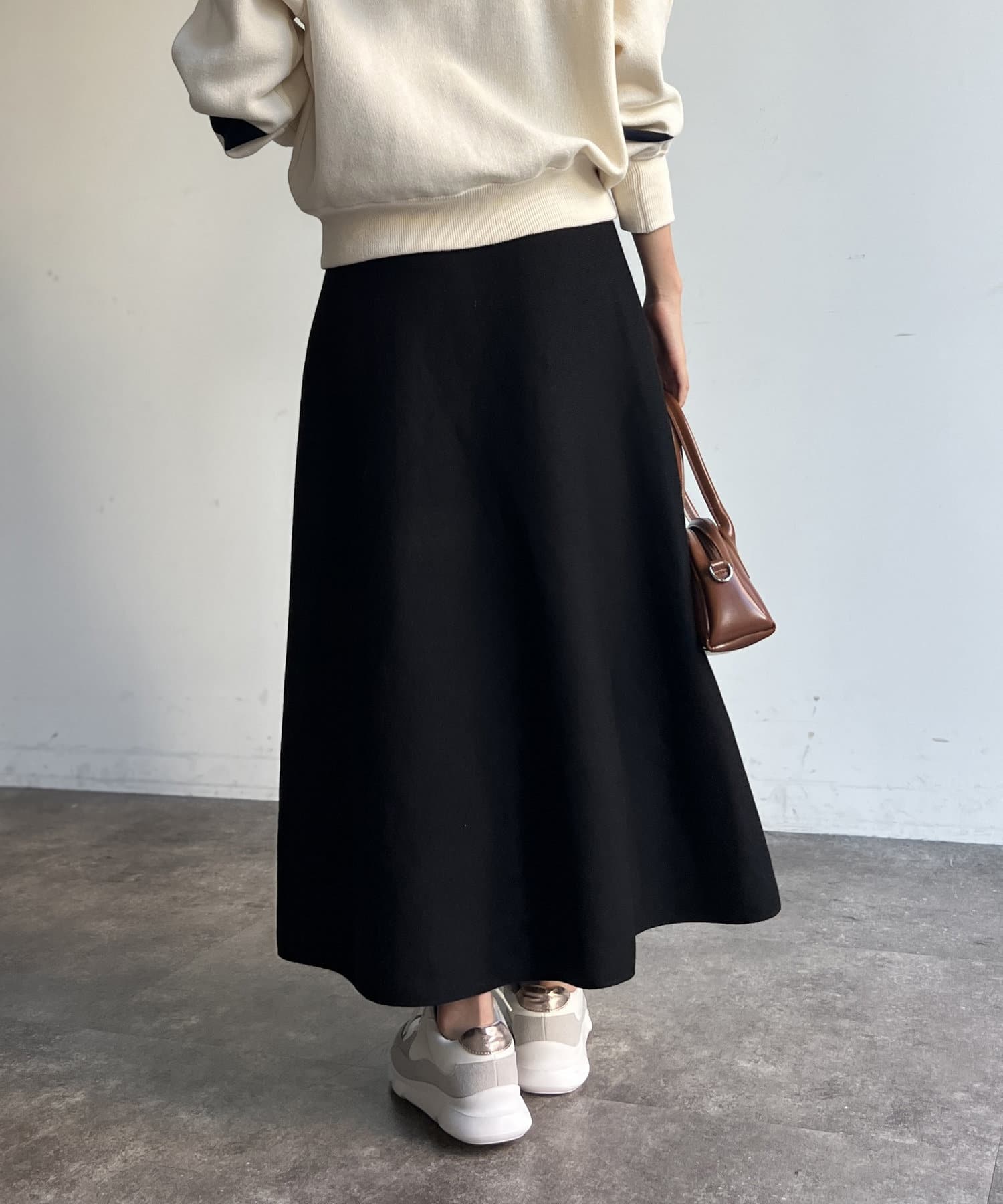 ふんわり広がるニット素材が魅力のフレアスカート。
