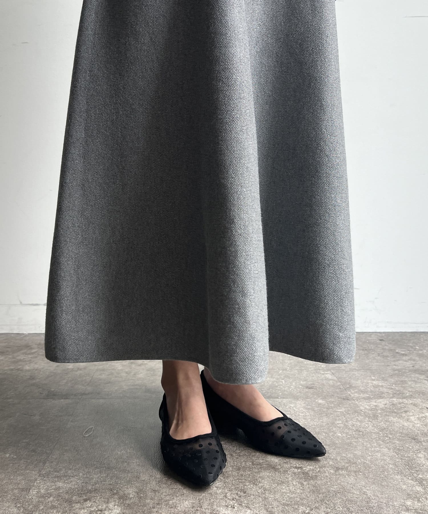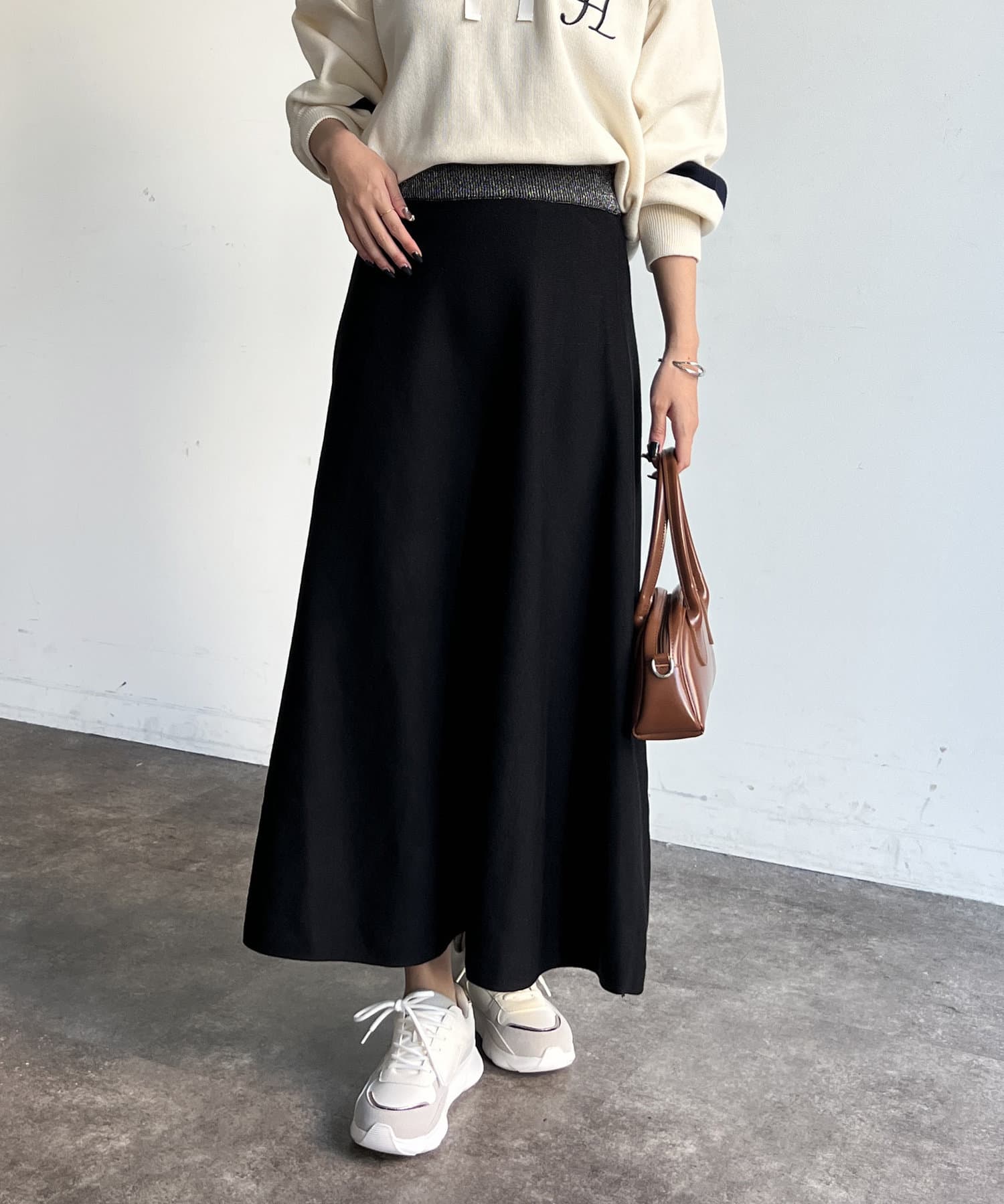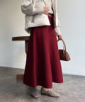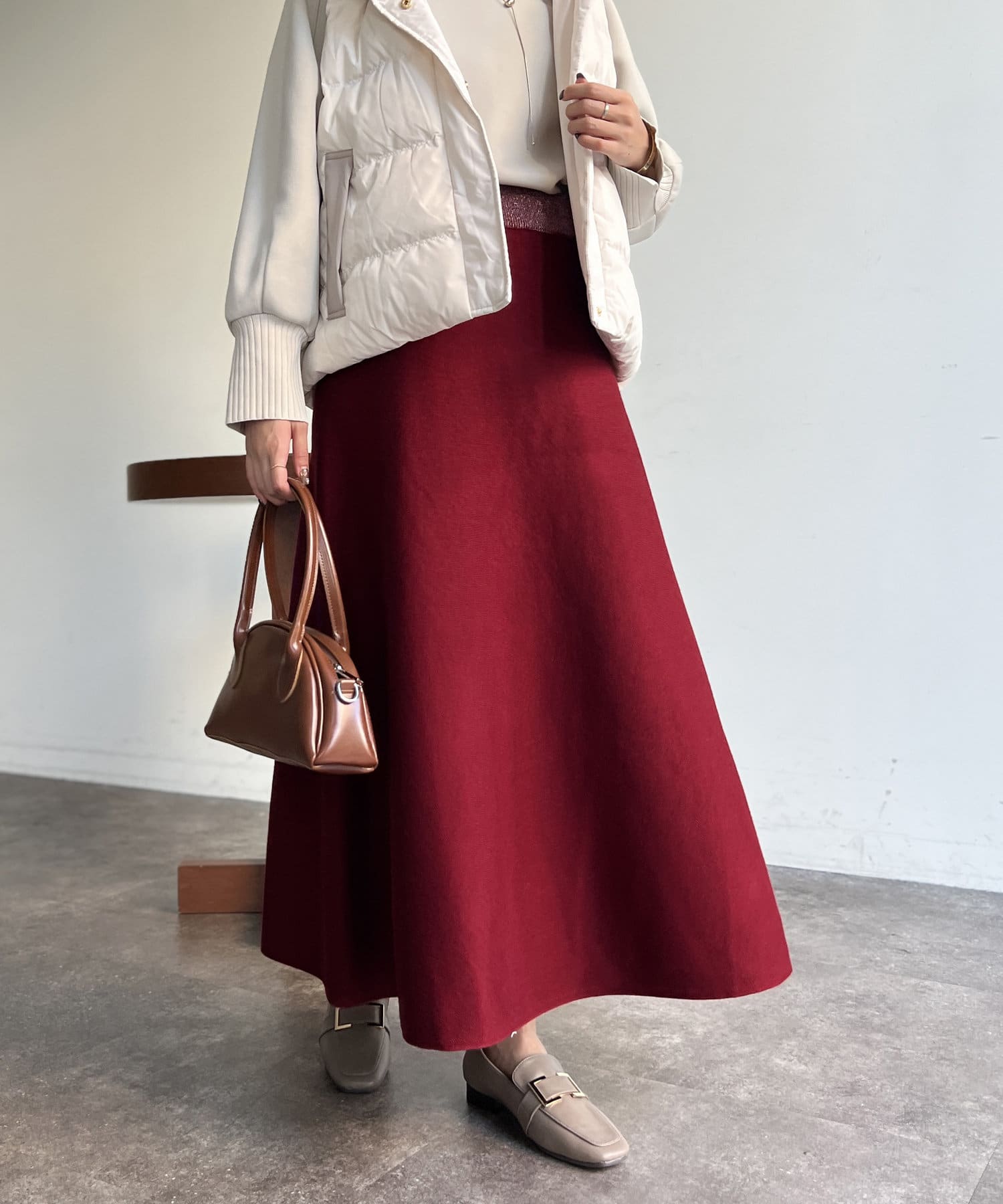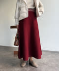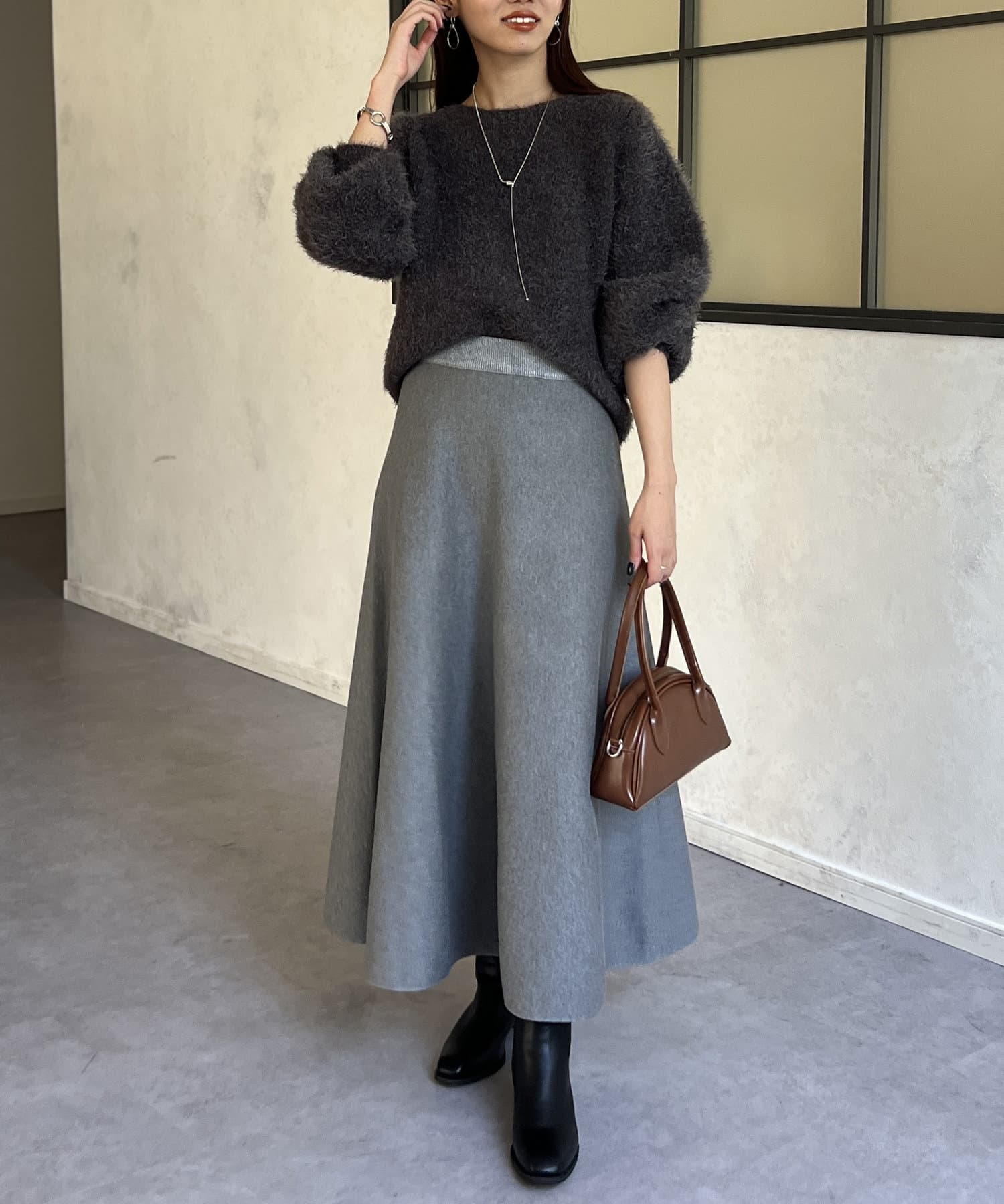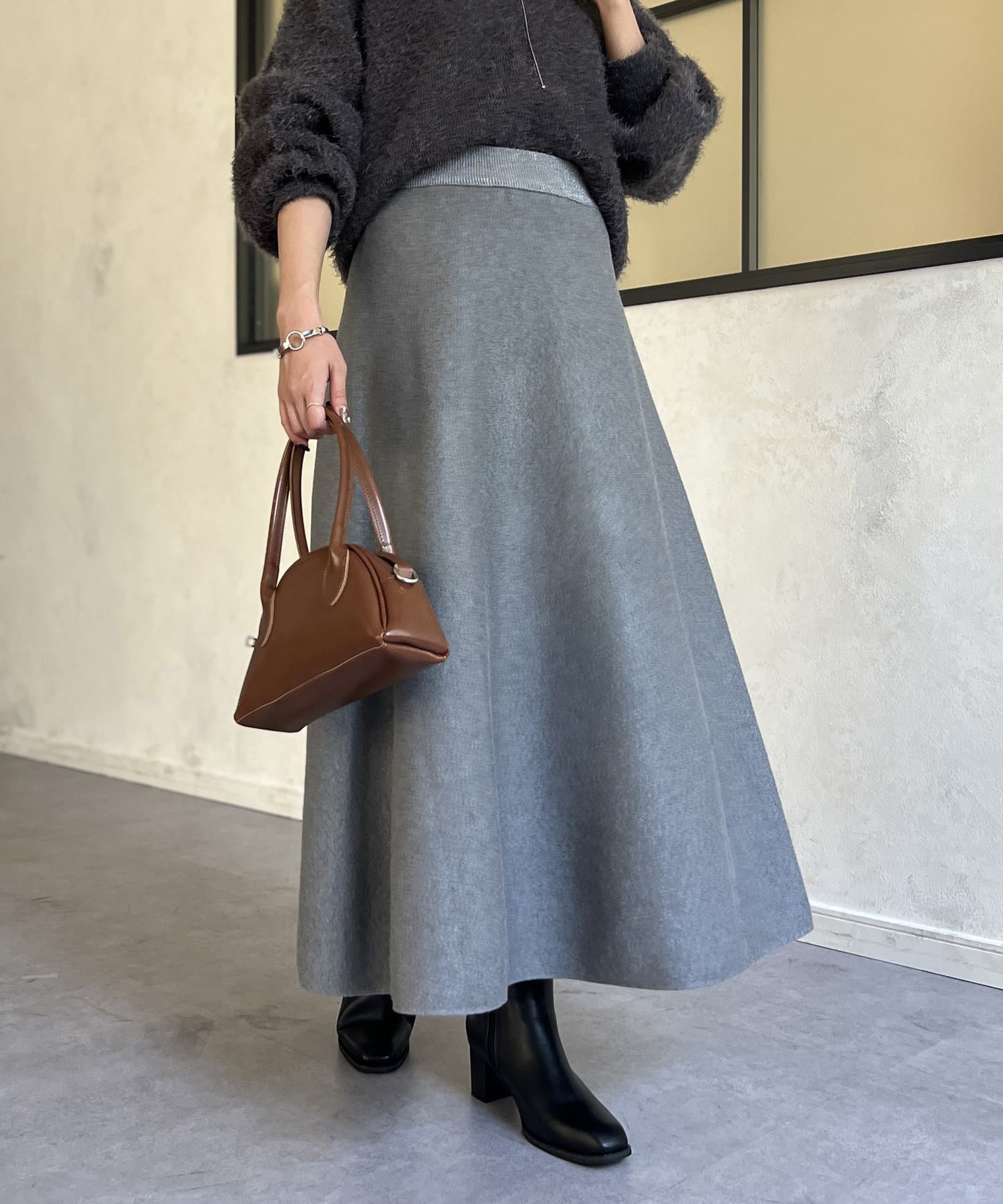 ふんわり広がるニット素材が魅力のフレアスカート。