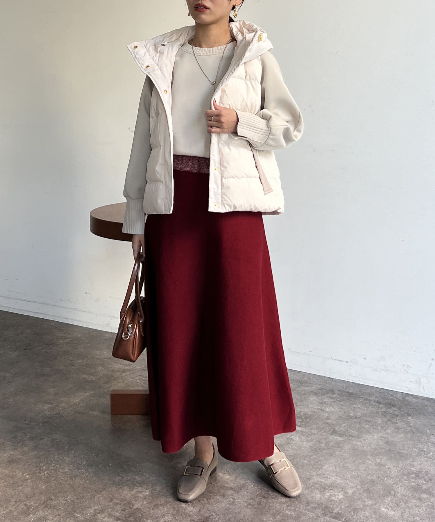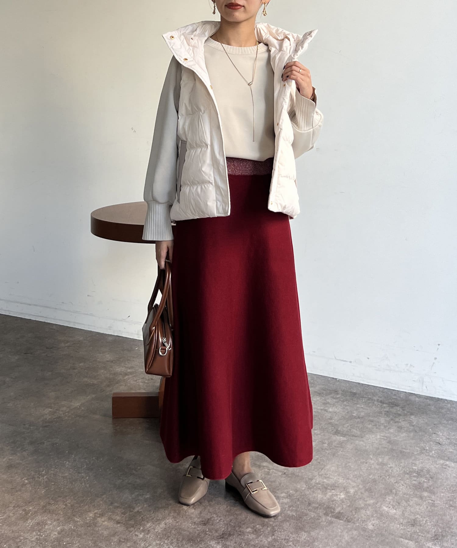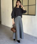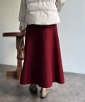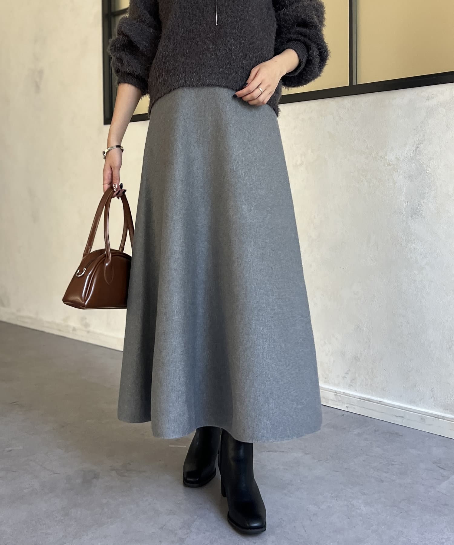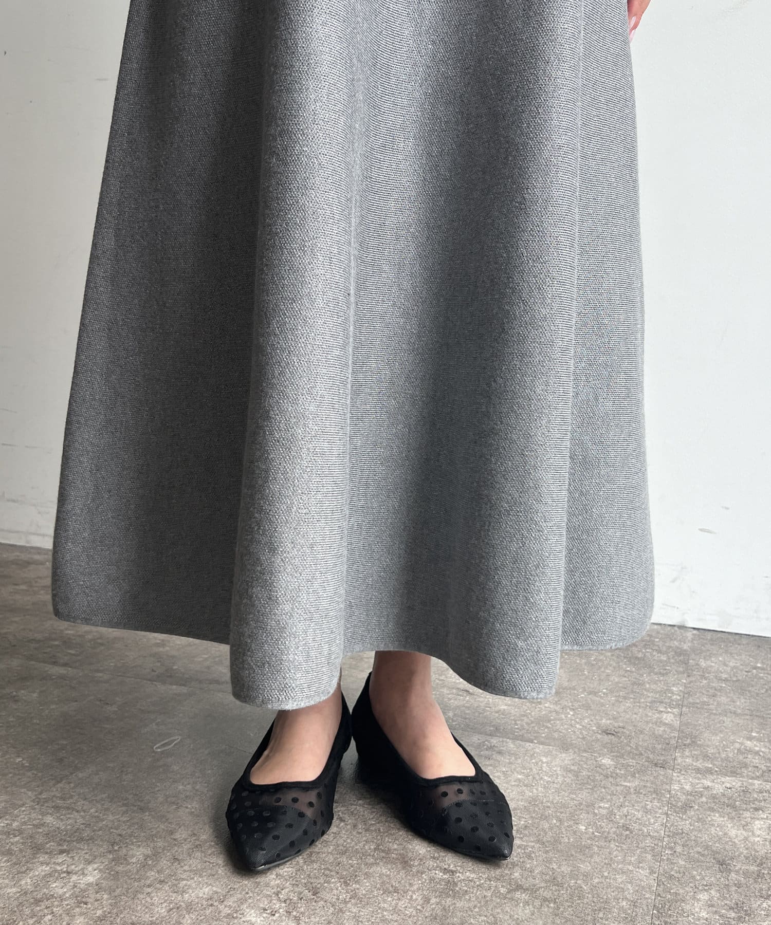 ふんわり広がるニット素材が魅力のフレアスカート。