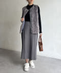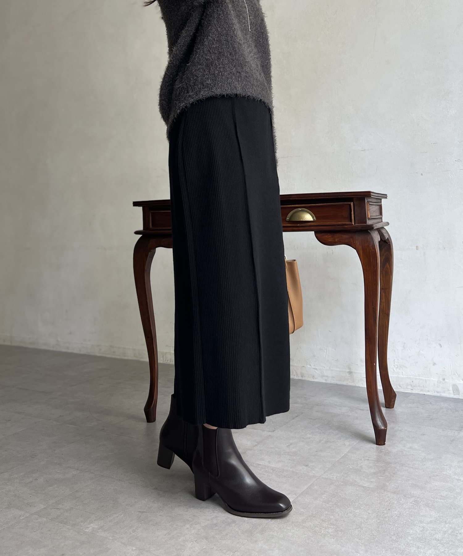 リブの切替を入れアクセントに。また縦に編まれたリブは脚長効果も◎