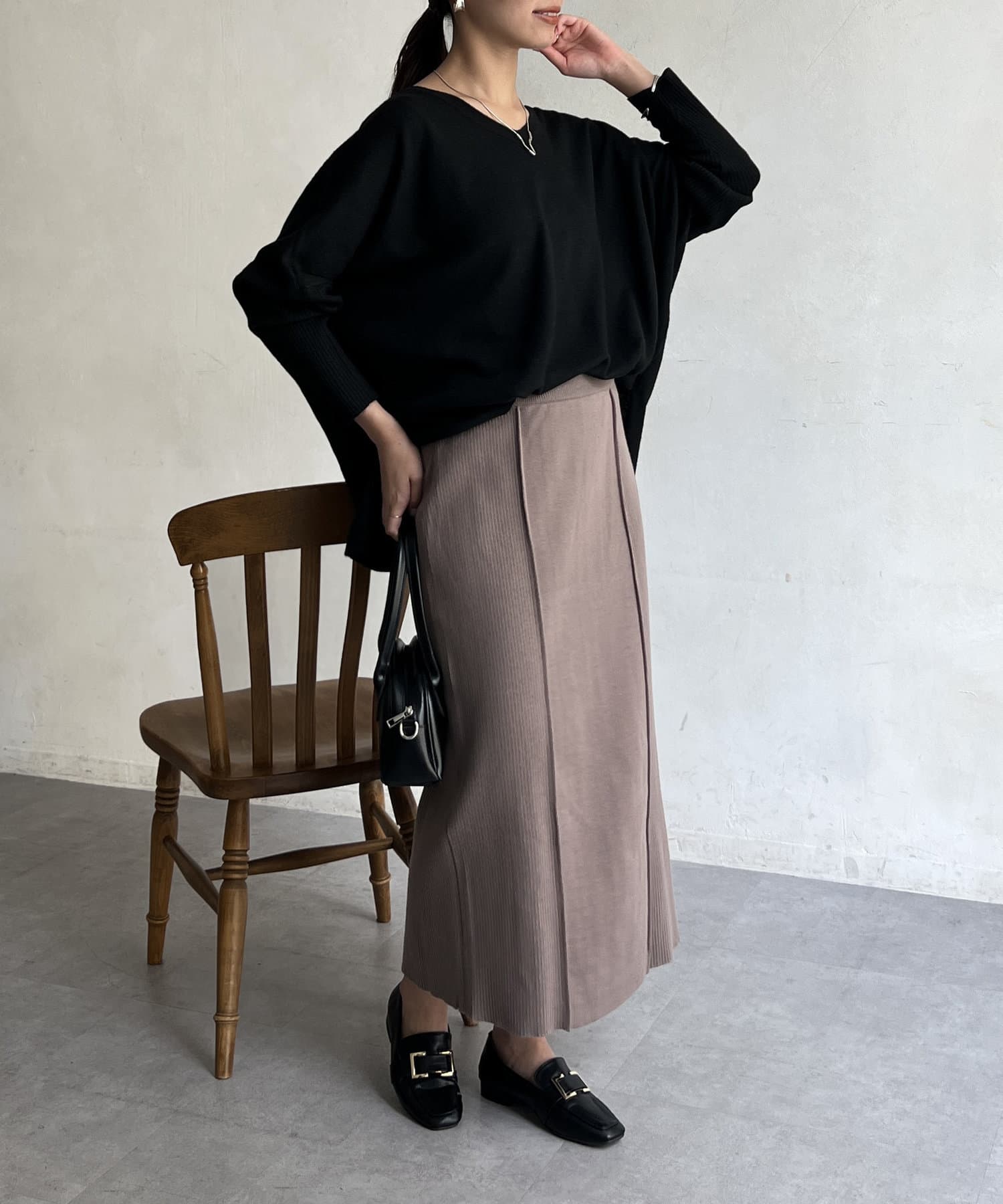 リラクシーな着心地!脚長効果抜群のニットナロースカート
