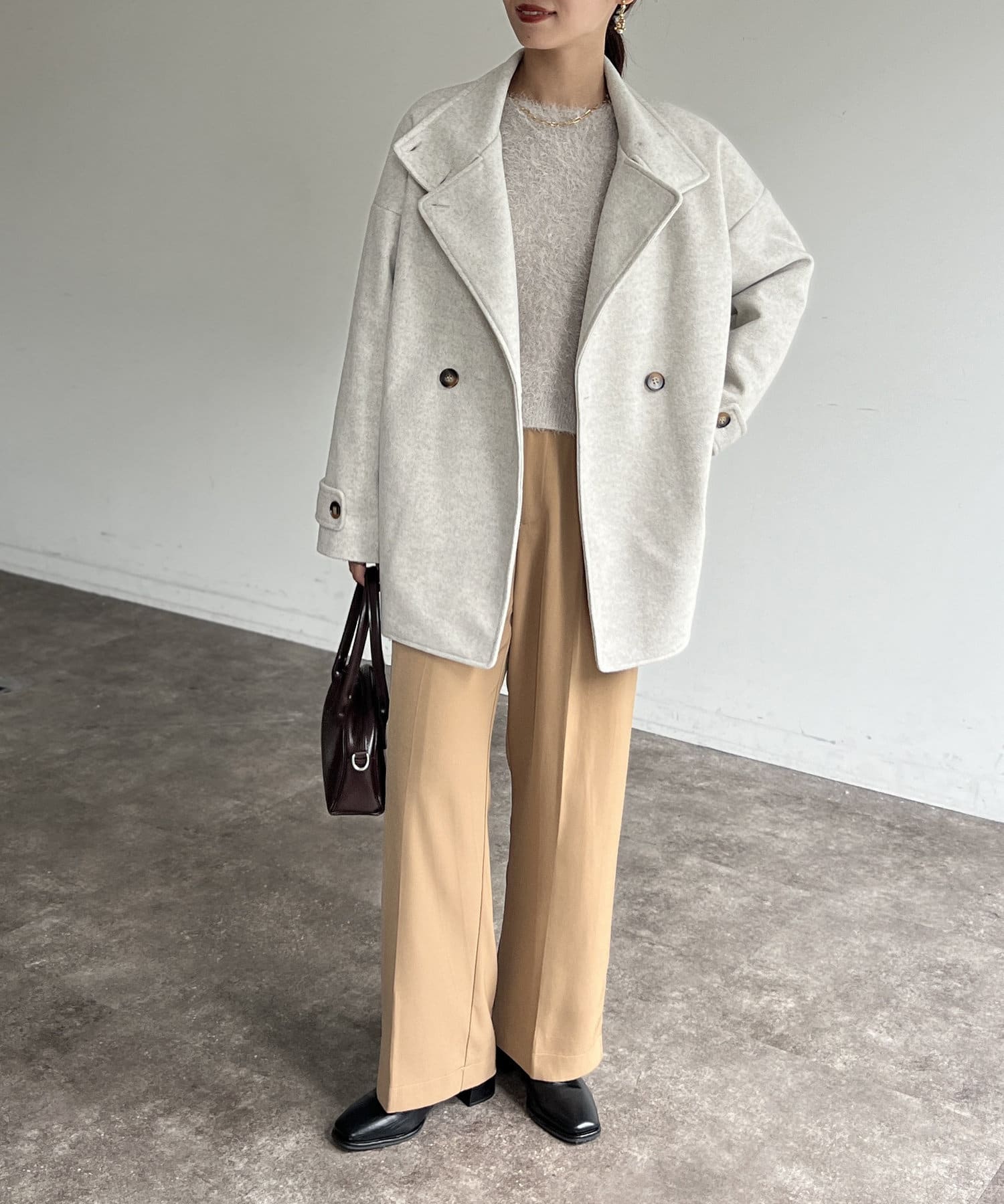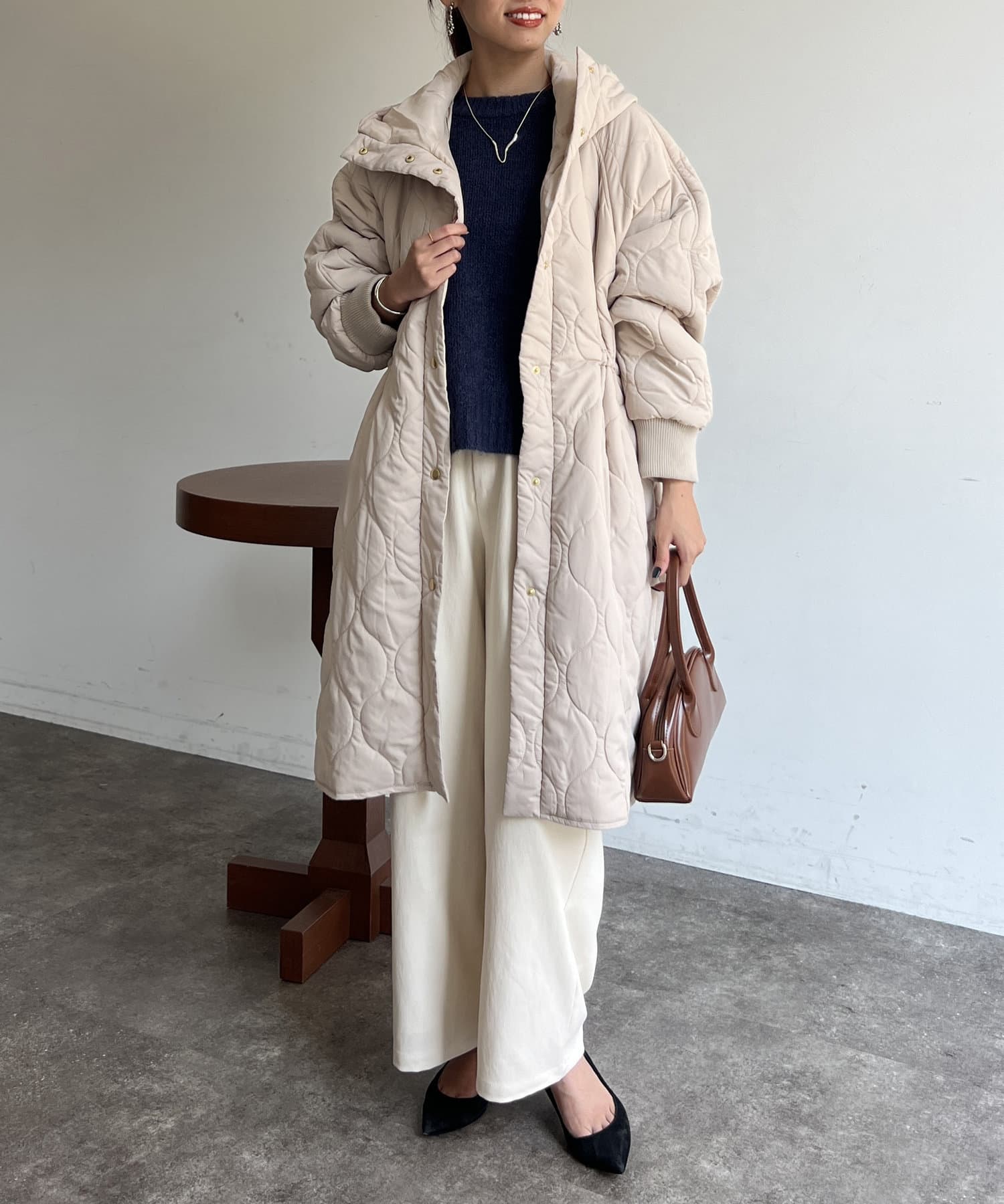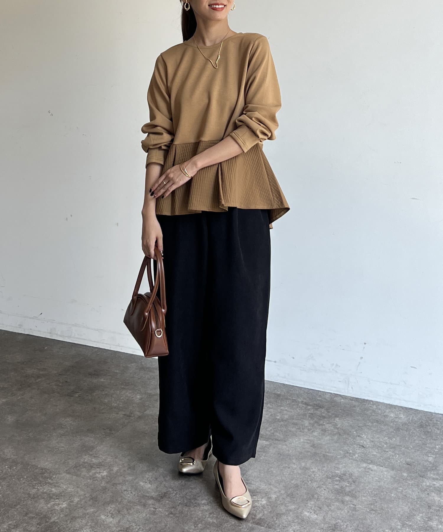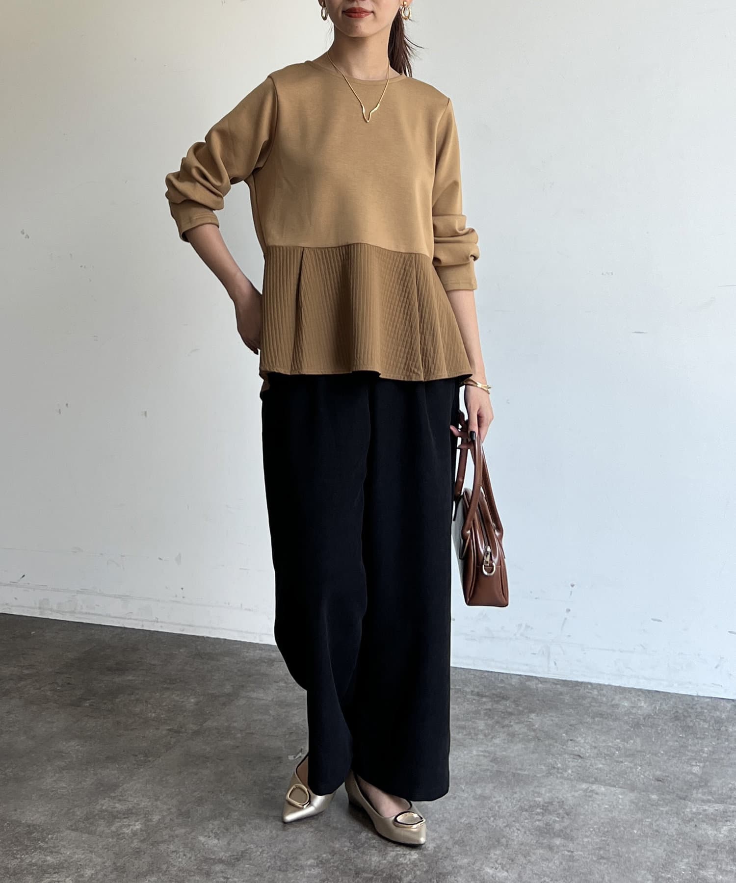 ブラウスやニットなどきれいめなスタイリングから