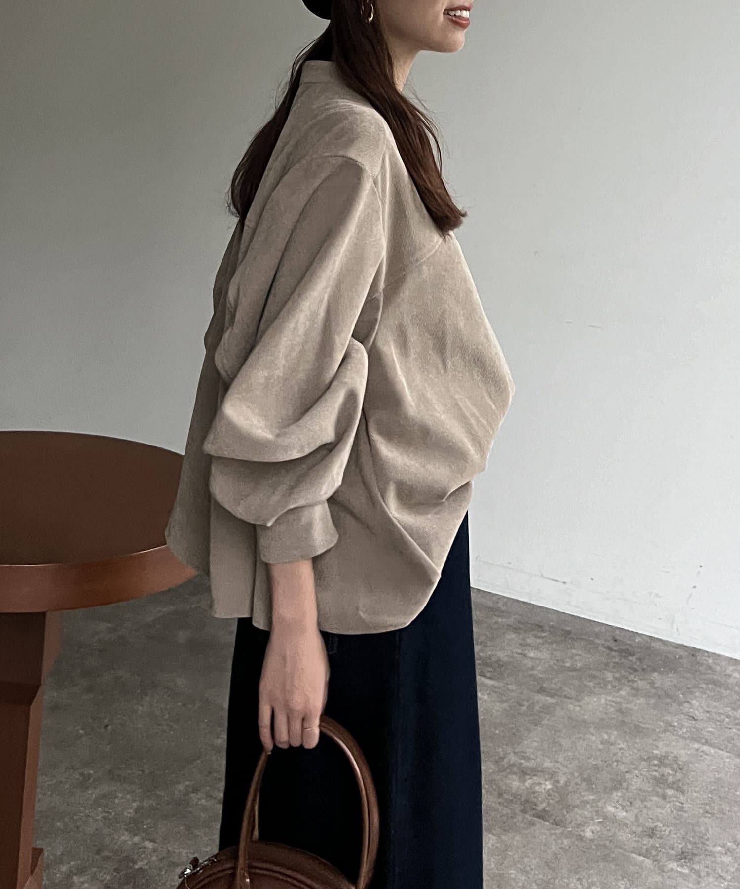 季節の変わりめなどにもさっと羽織れるので重宝する一枚。
