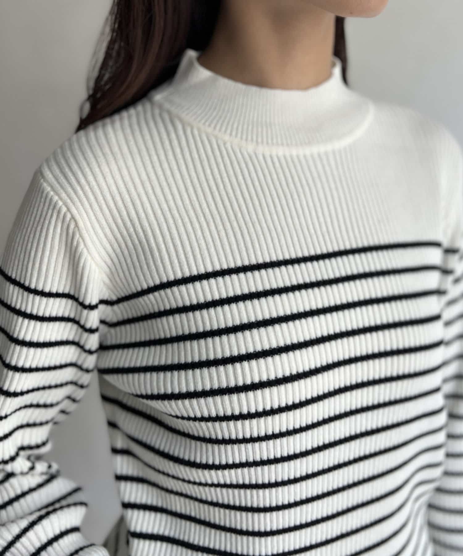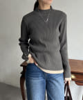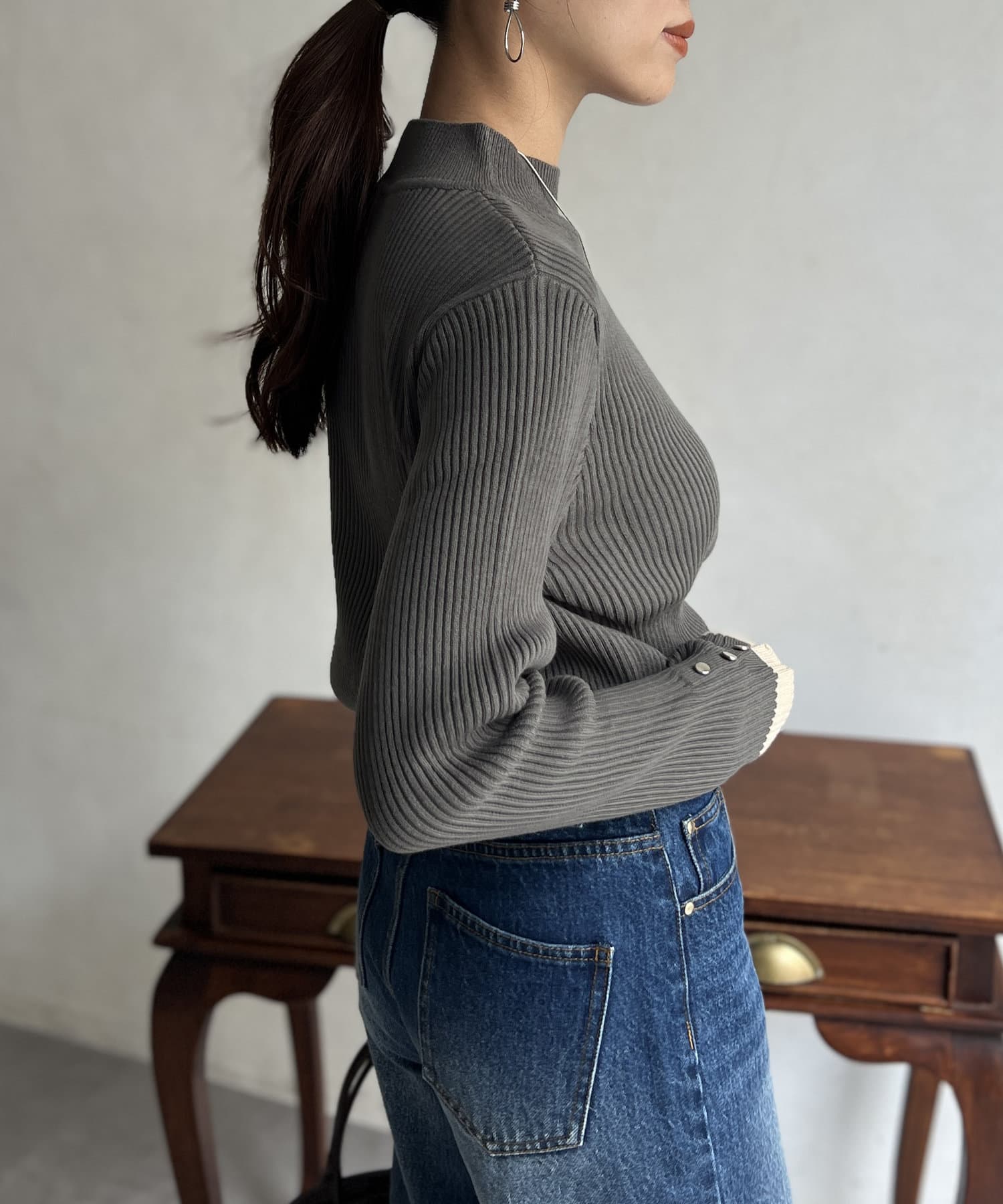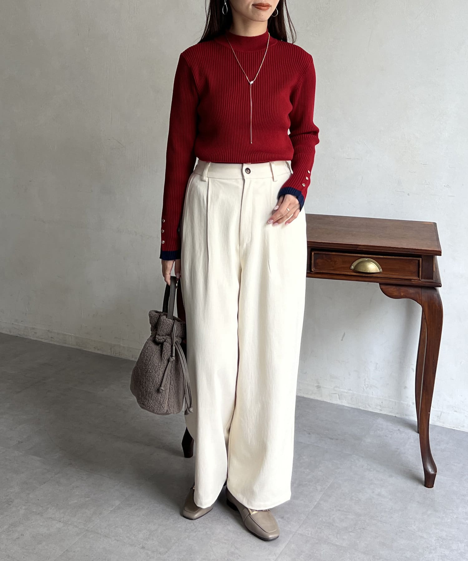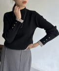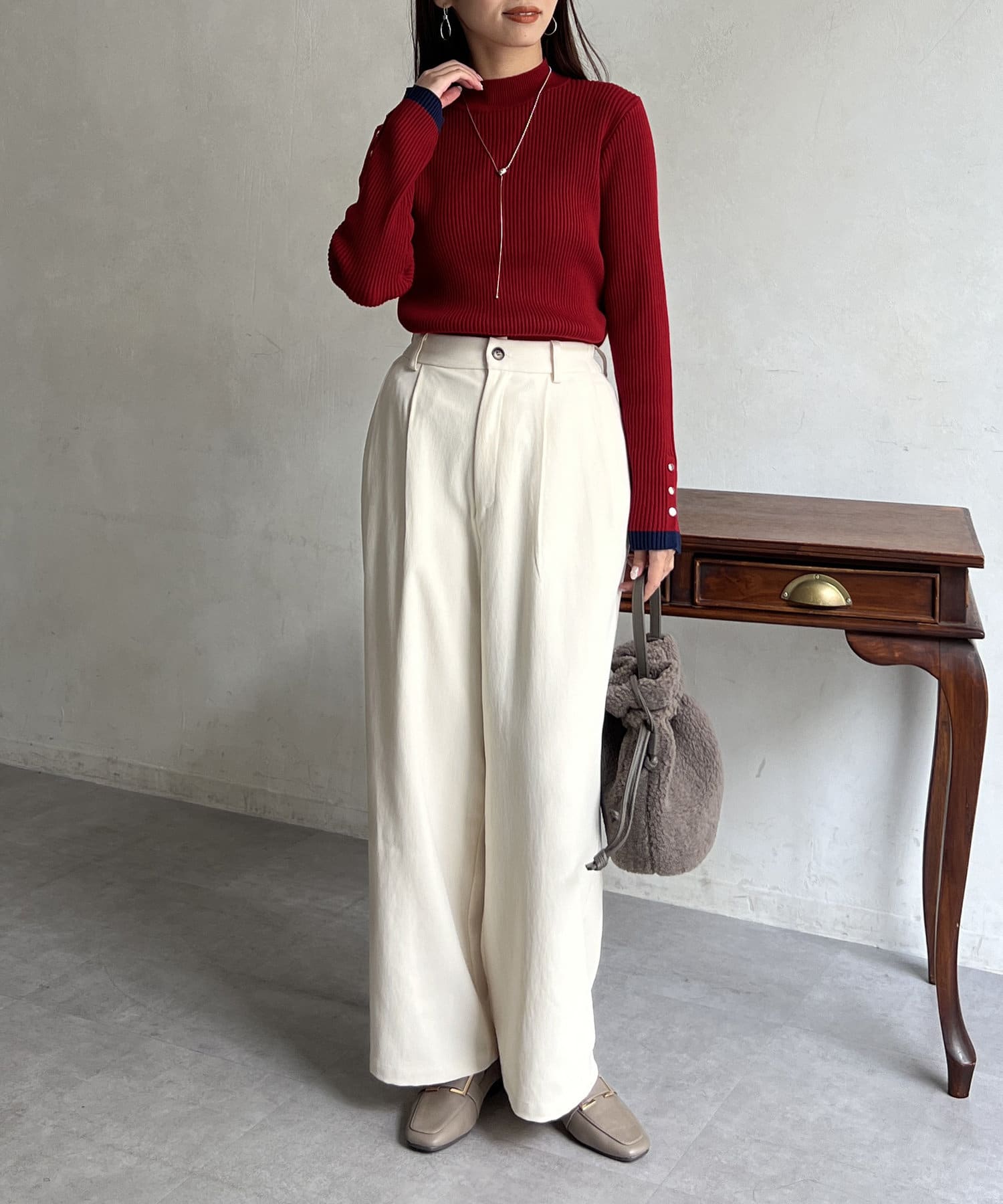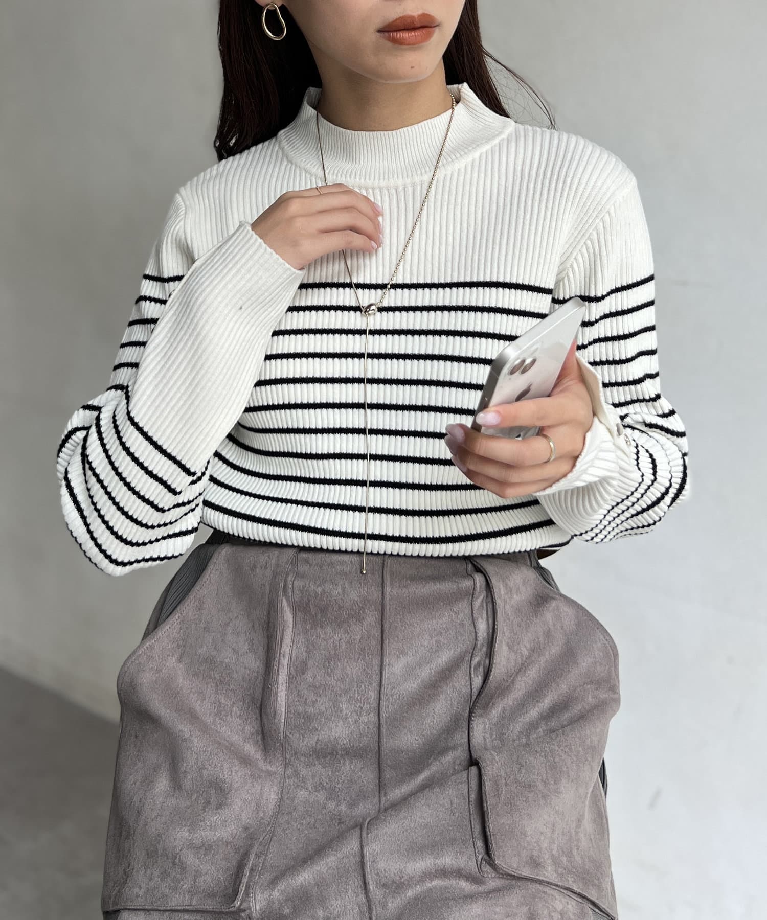 絶妙なプチハイネックのデザインがこなれた印象になり