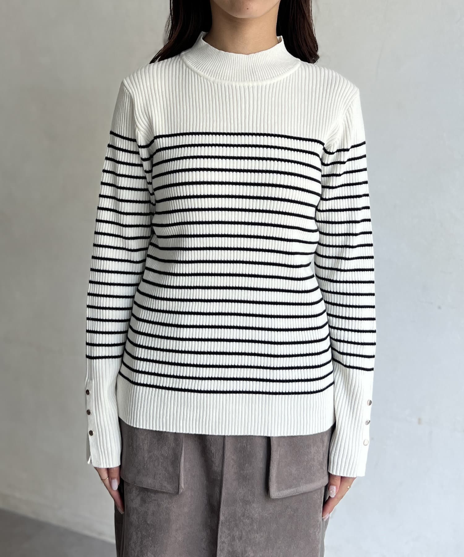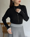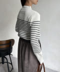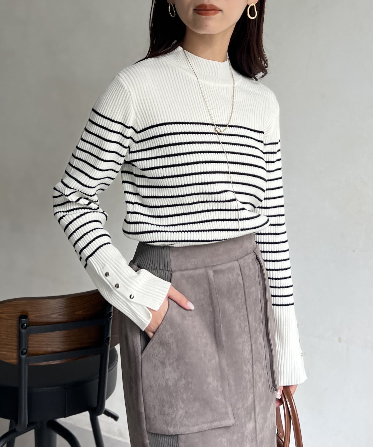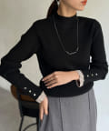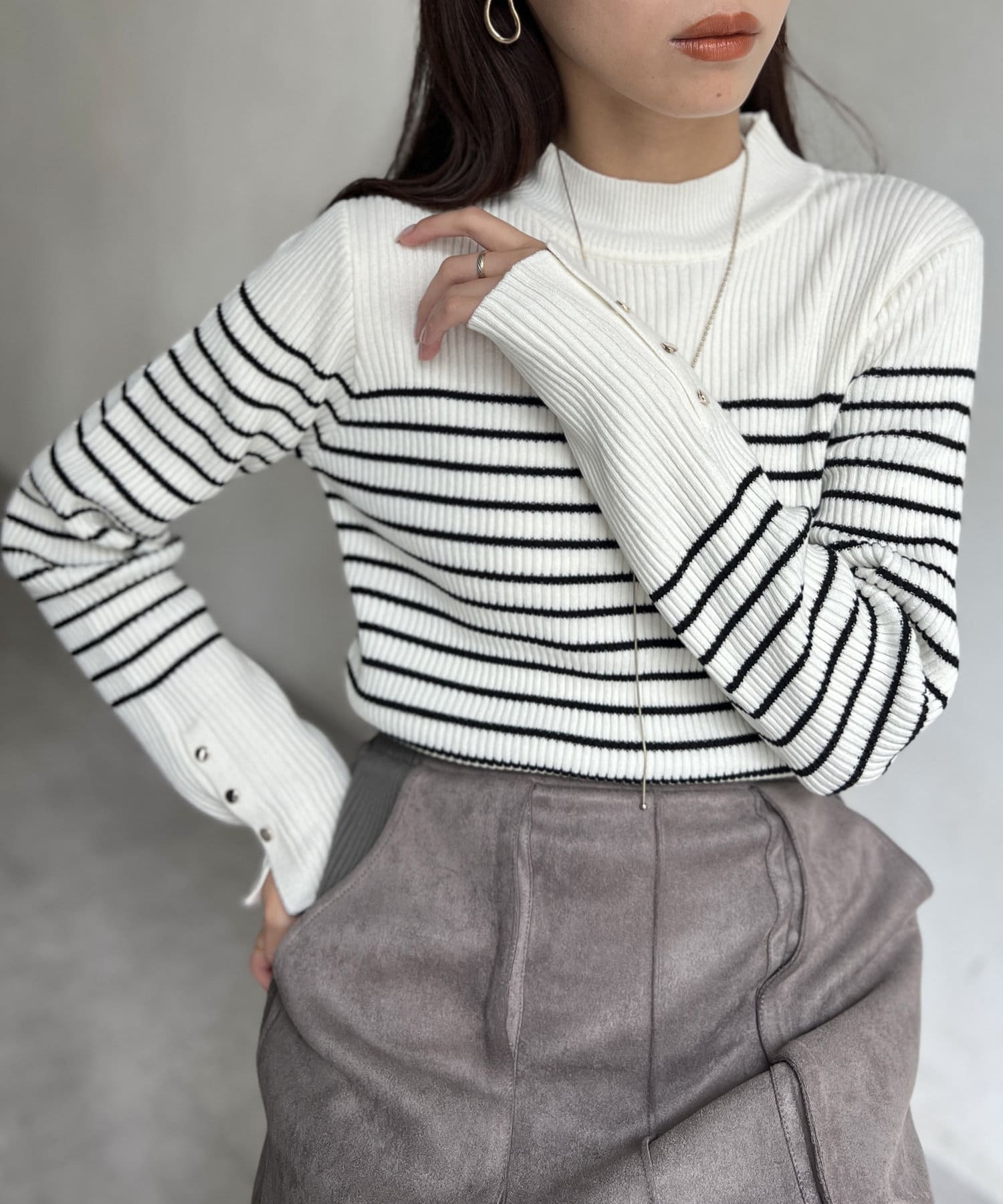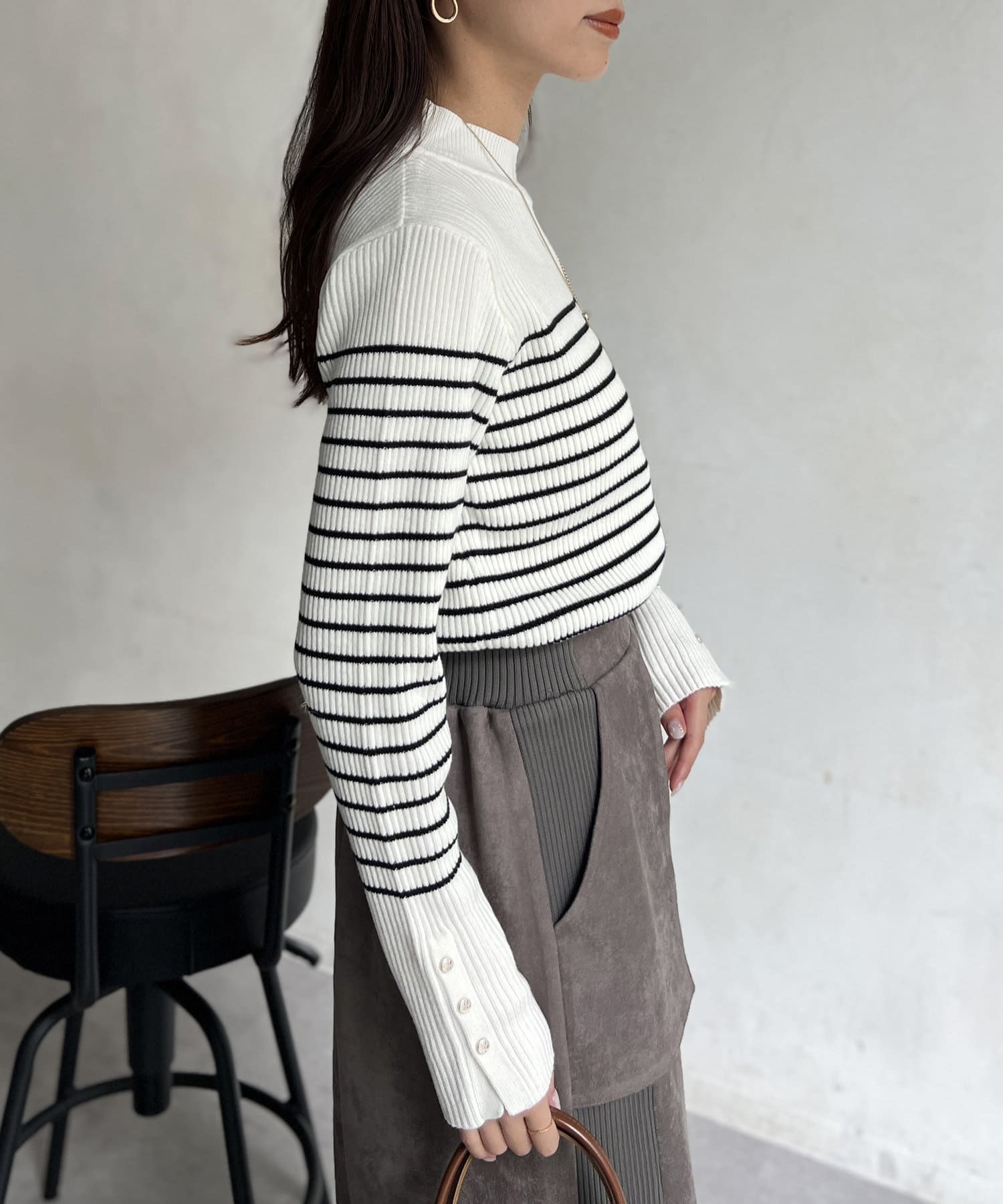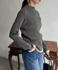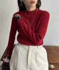 絶妙なプチハイネックのデザインがこなれた印象になり