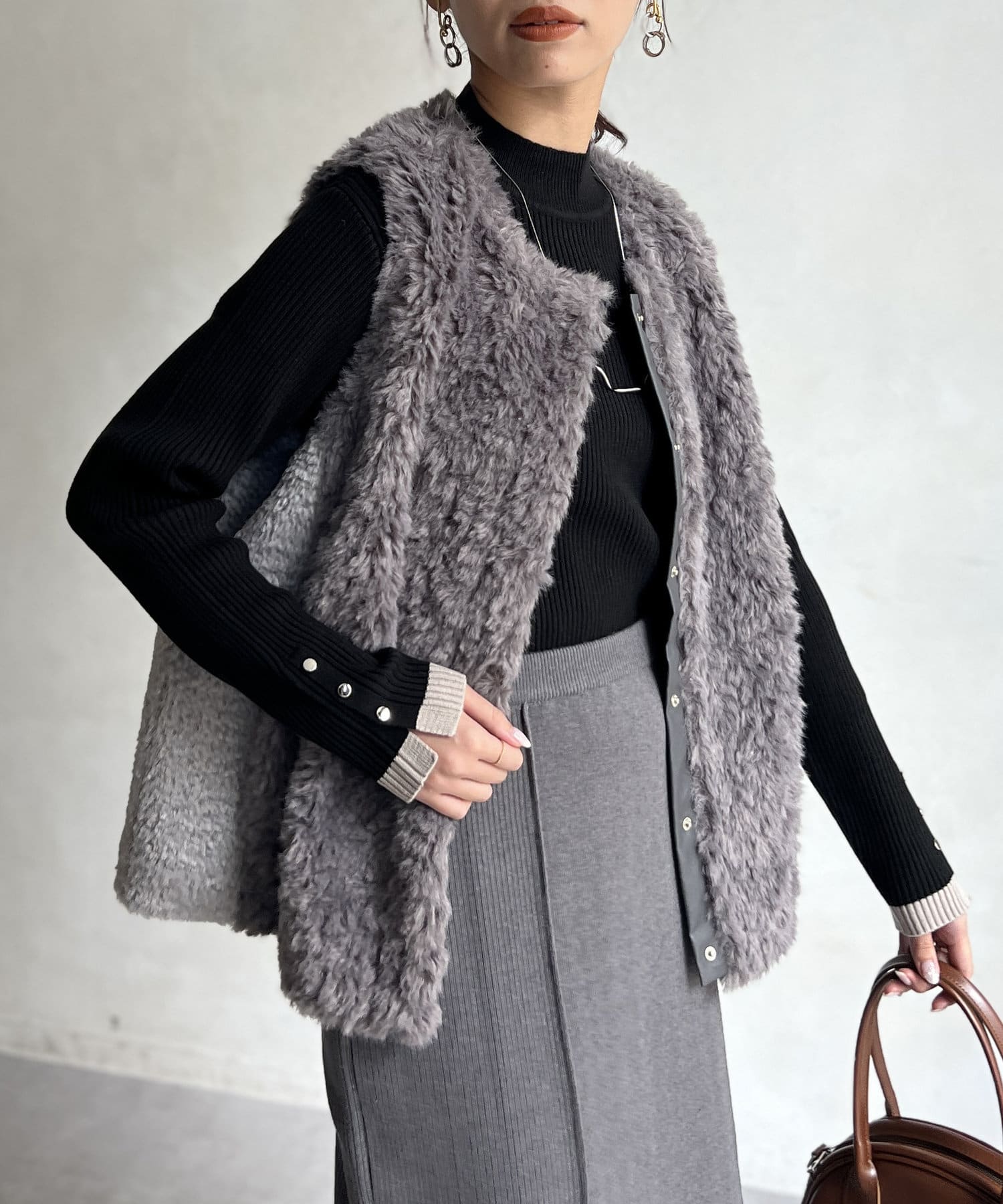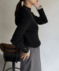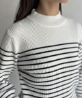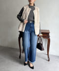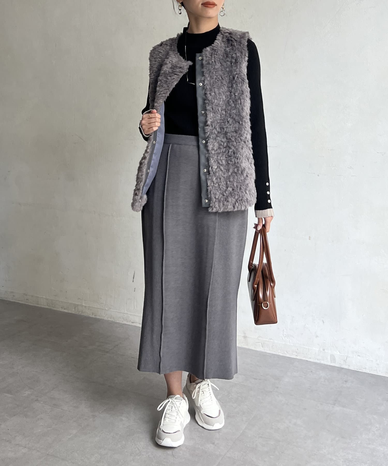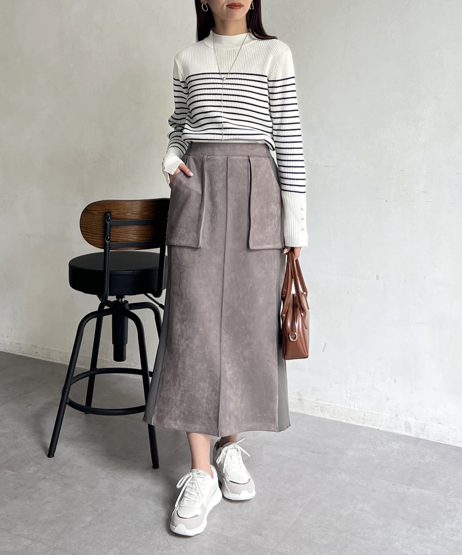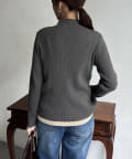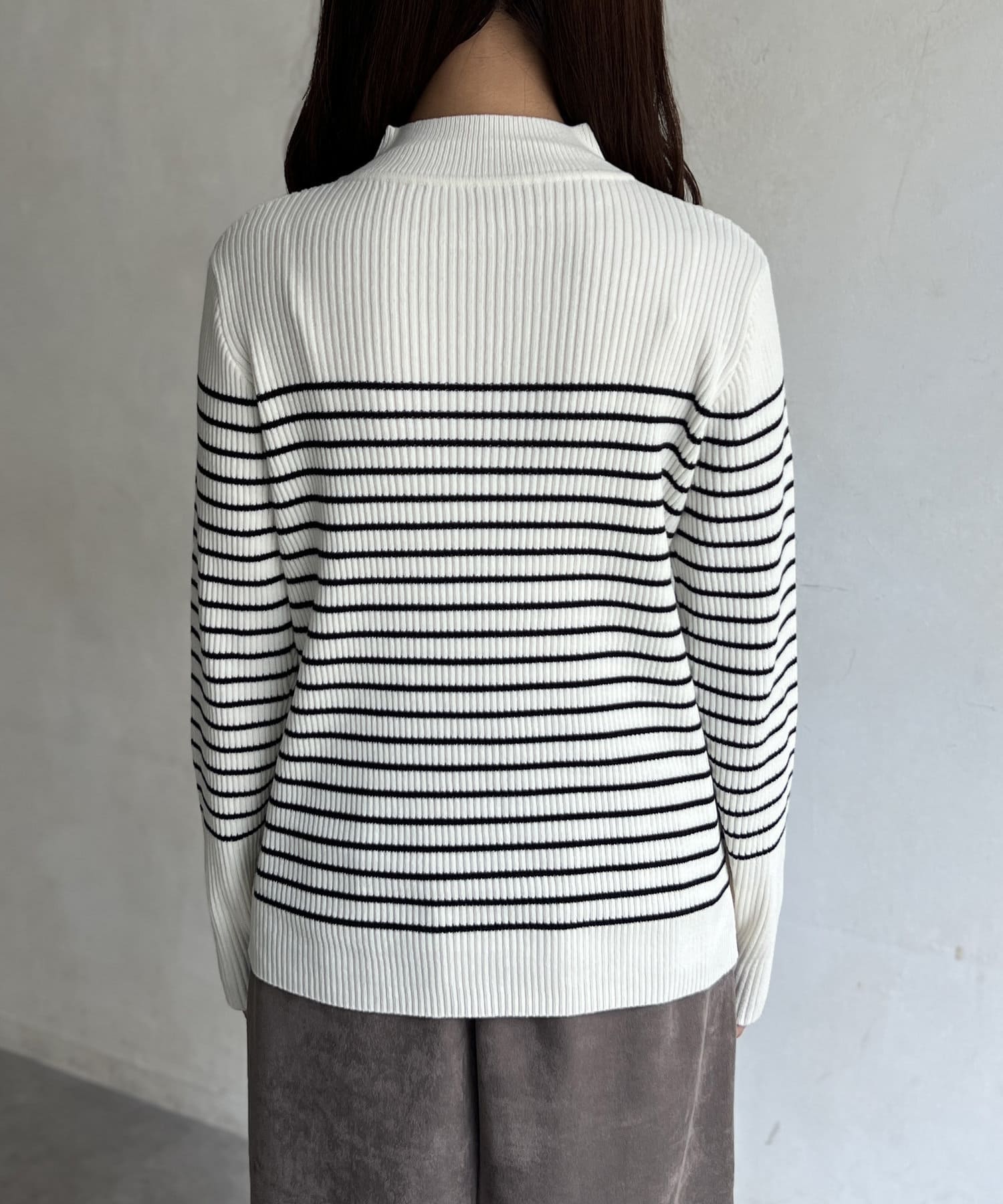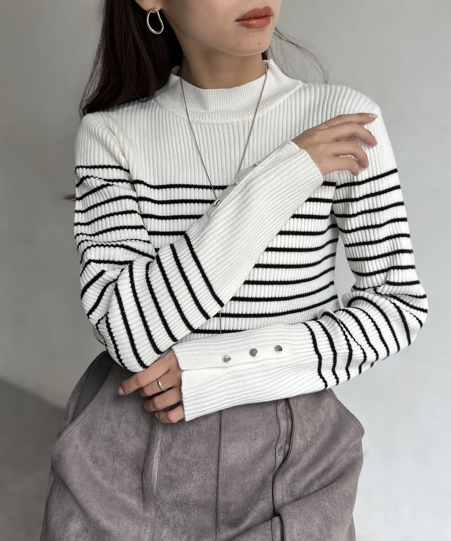 絶妙なプチハイネックのデザインがこなれた印象になり