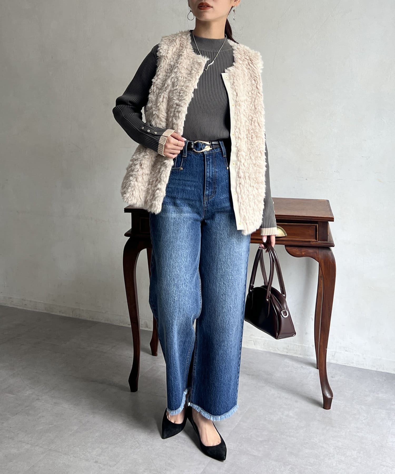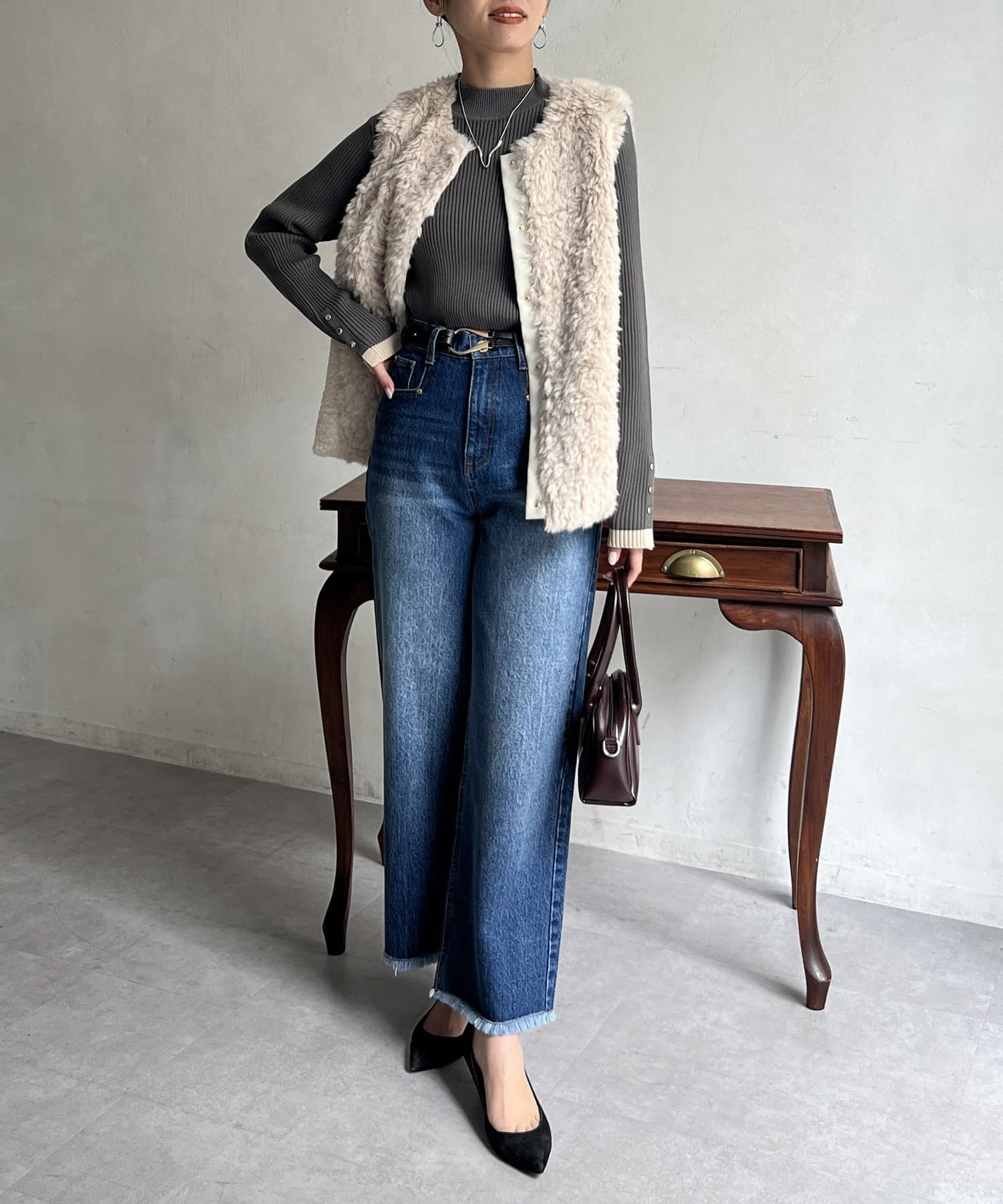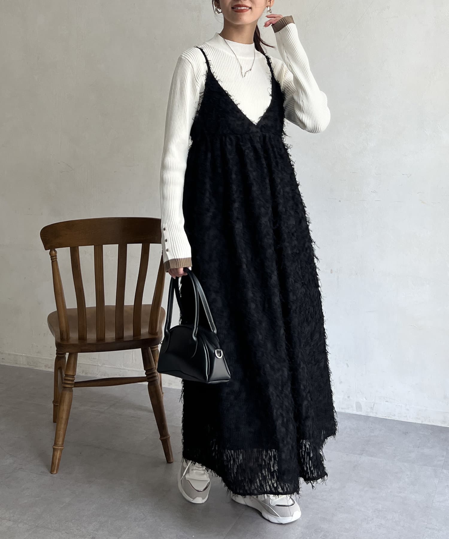 裾の配色がポイントになるのでアウトでもインでもどちらのスタイリングも