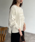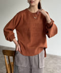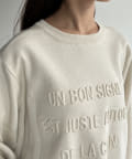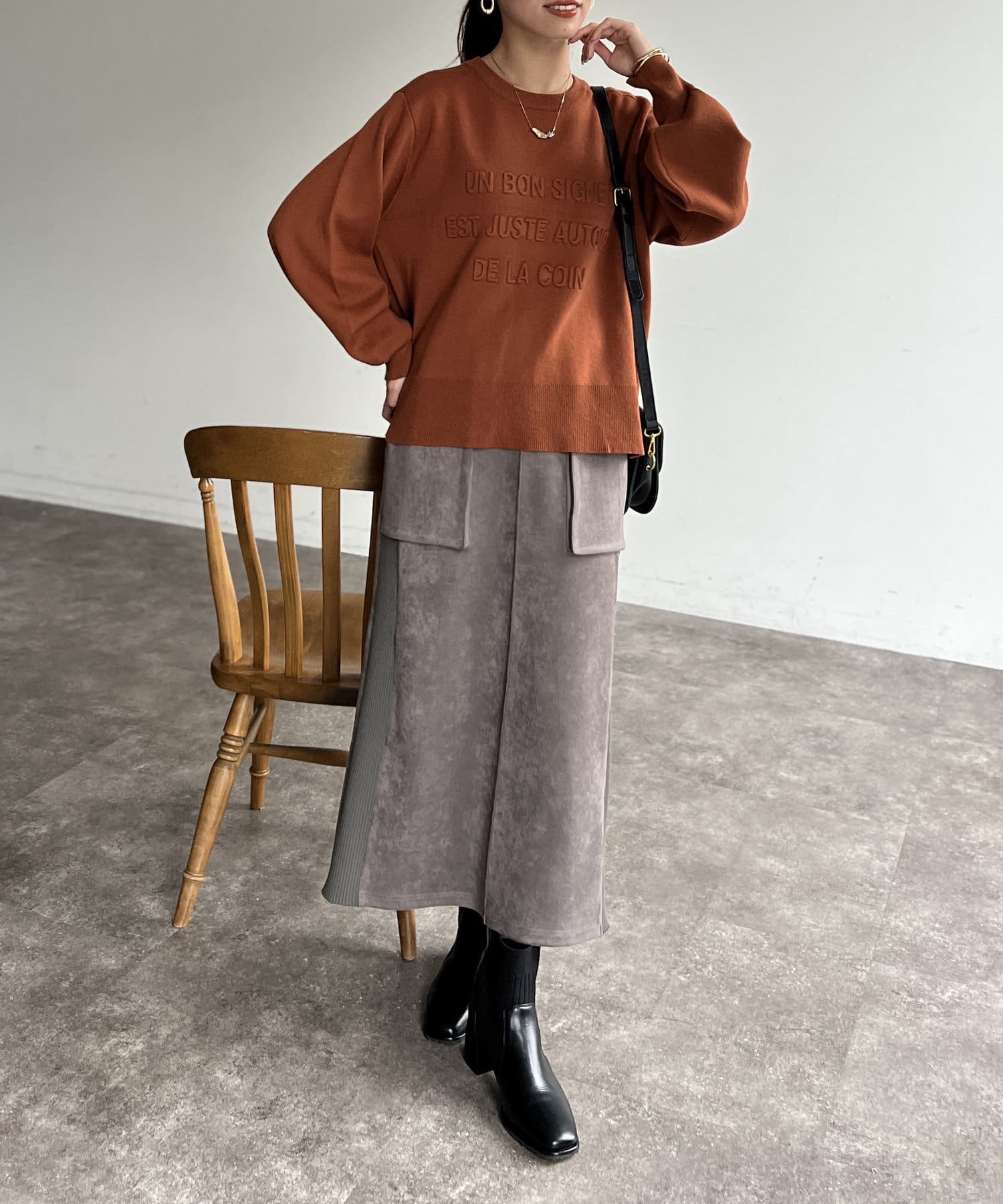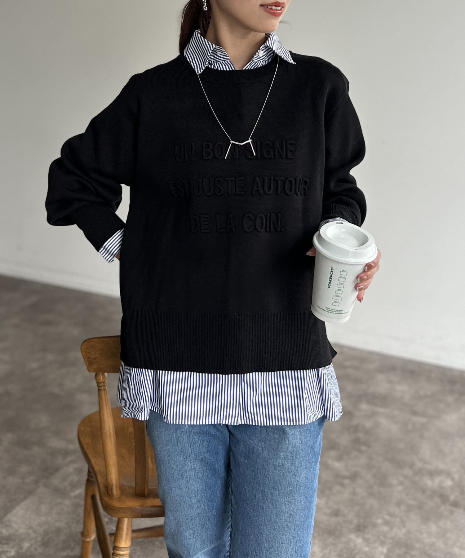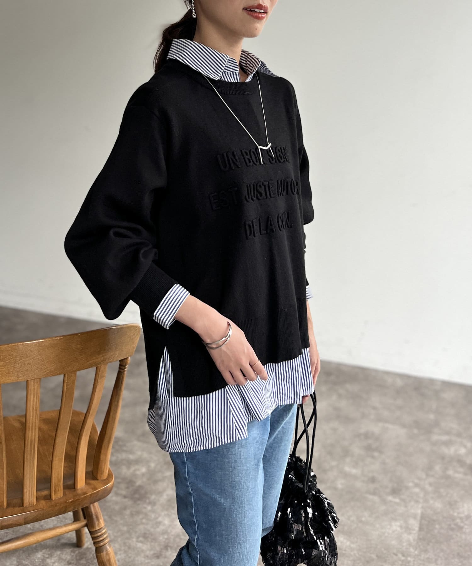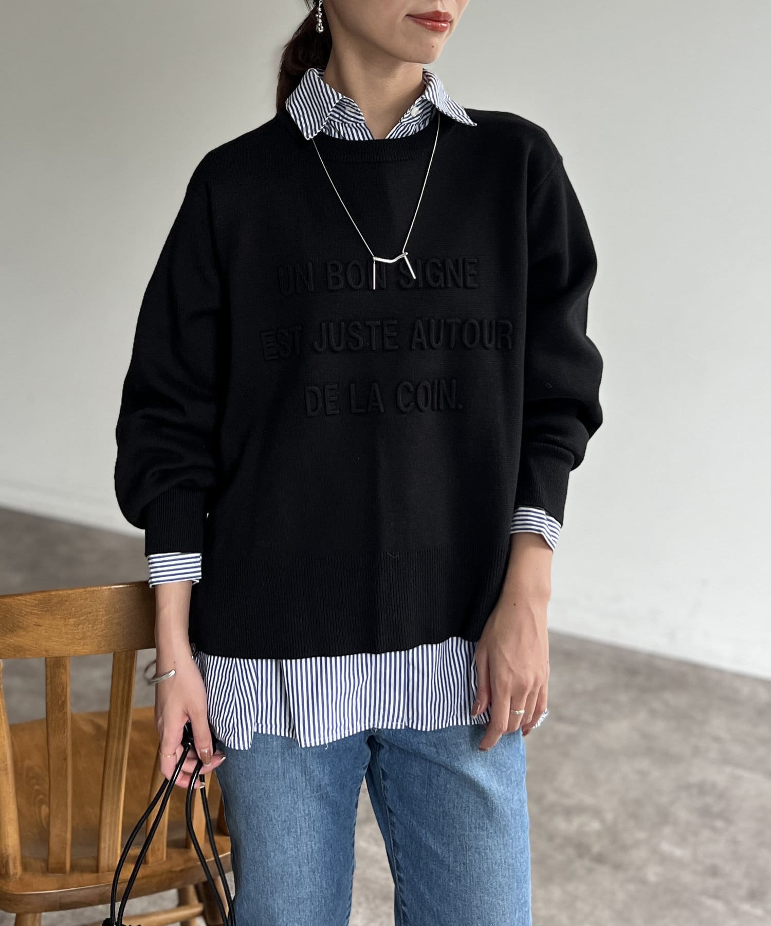 エンボス加工で文字に立体感のある大人カジュアルニット。