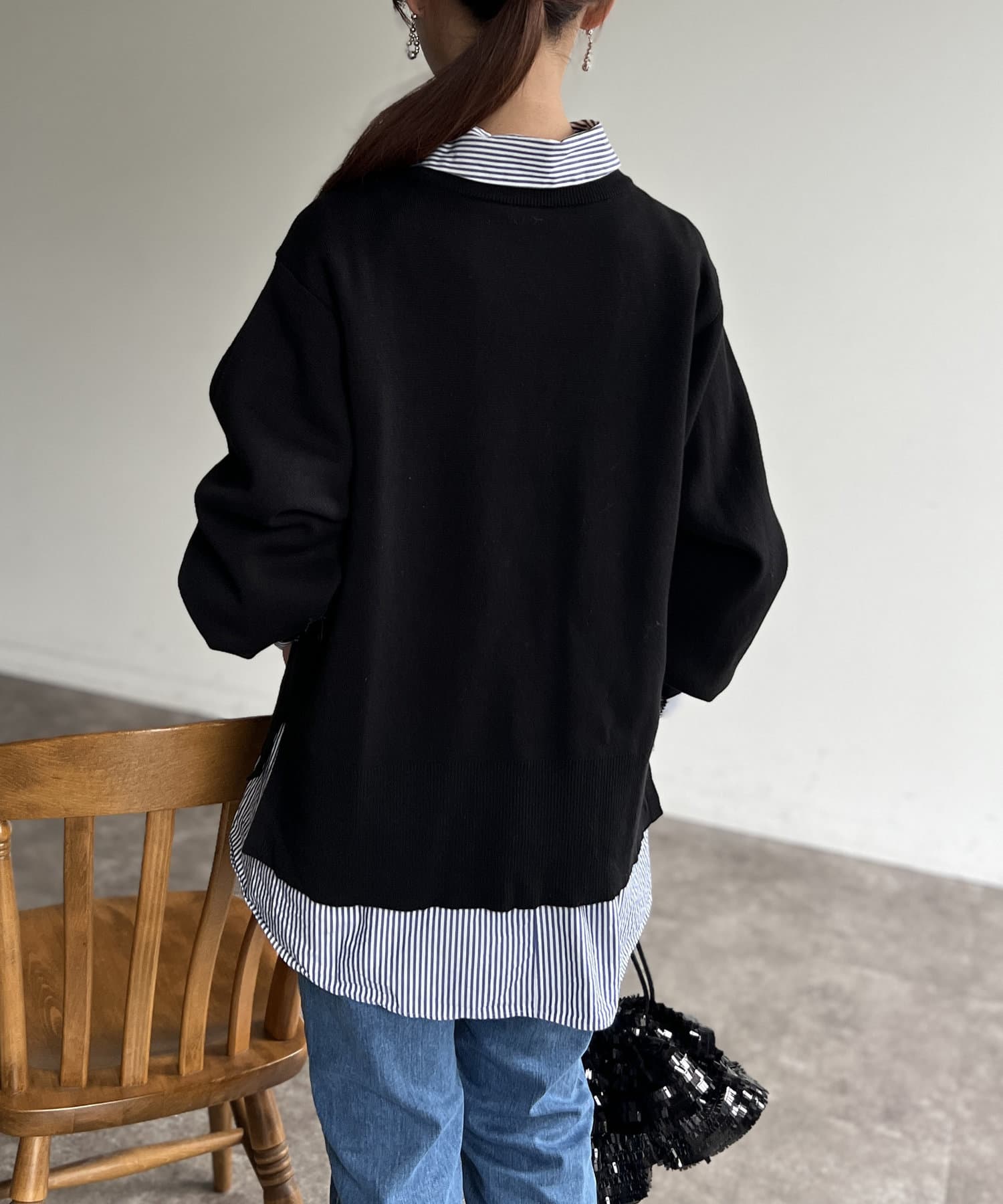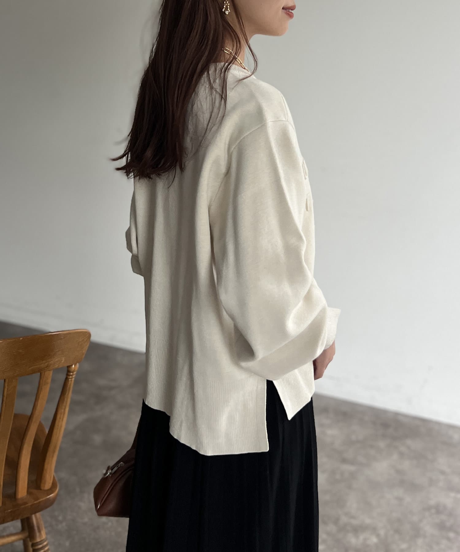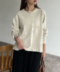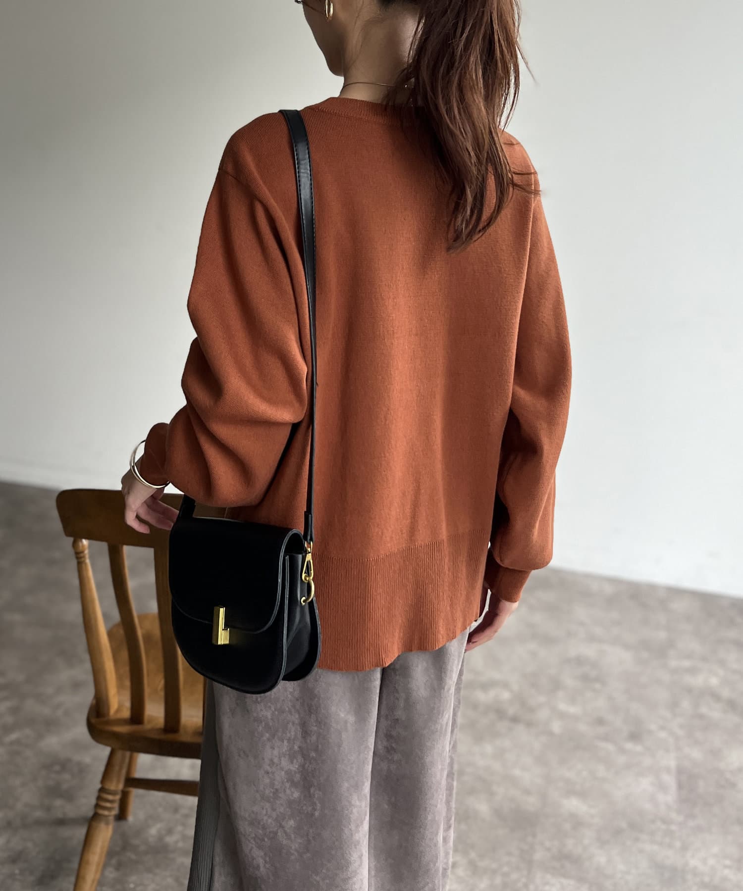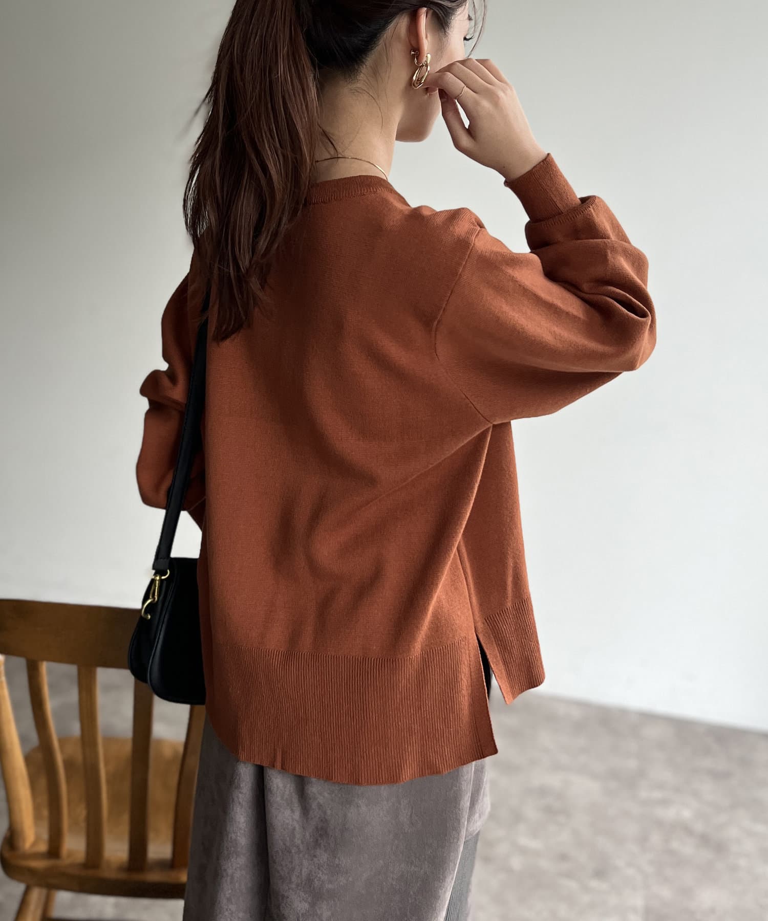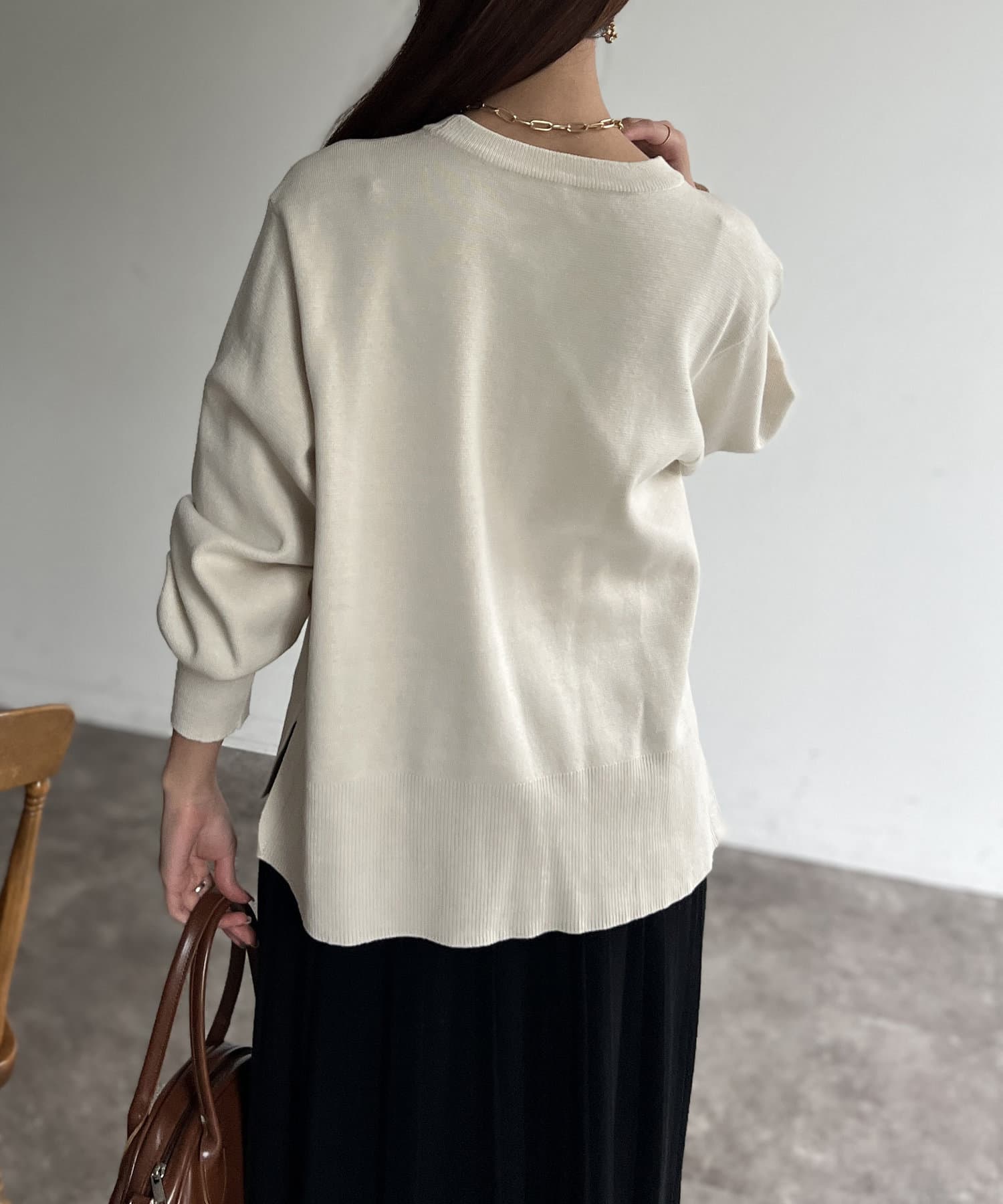 クルーネックで適度に首元も開くのでスッキリとした印象で着用できます。