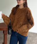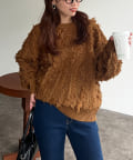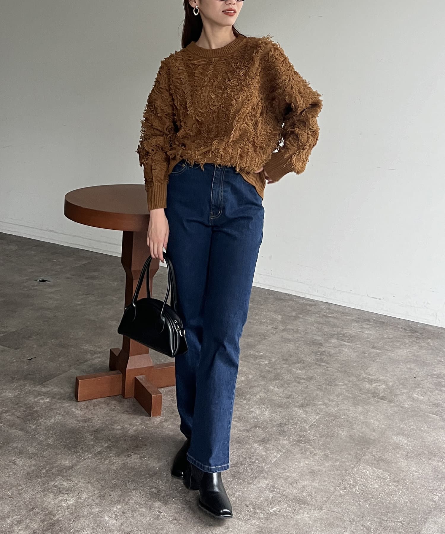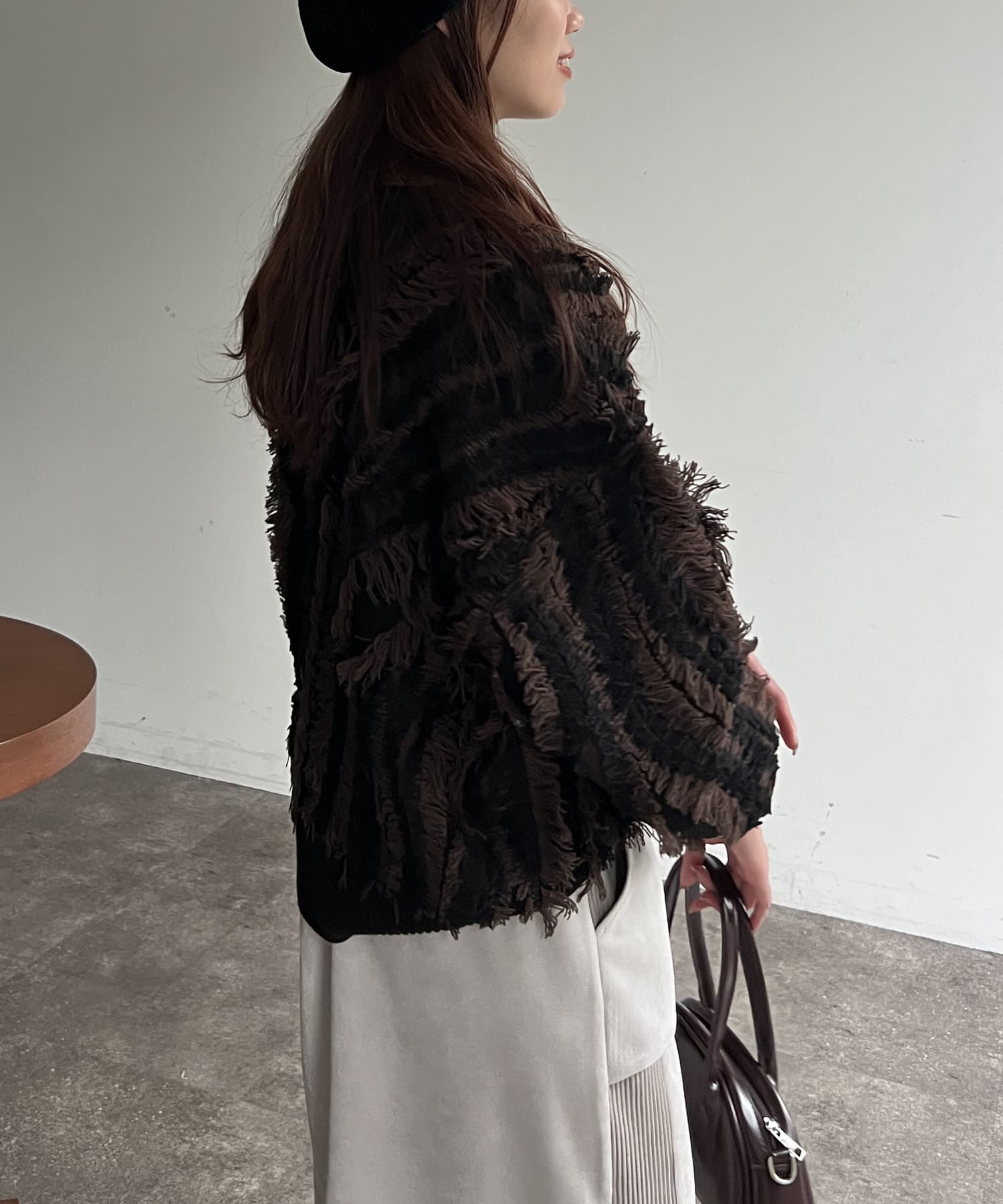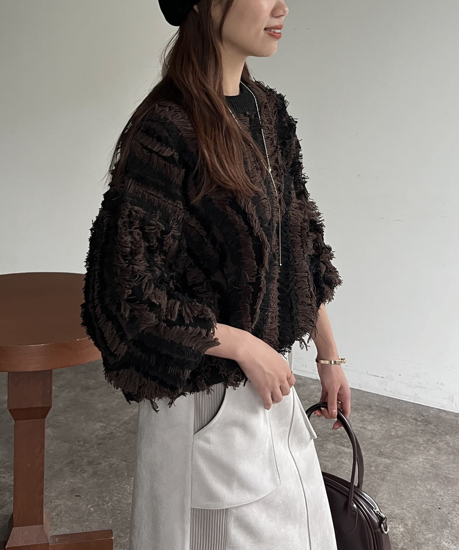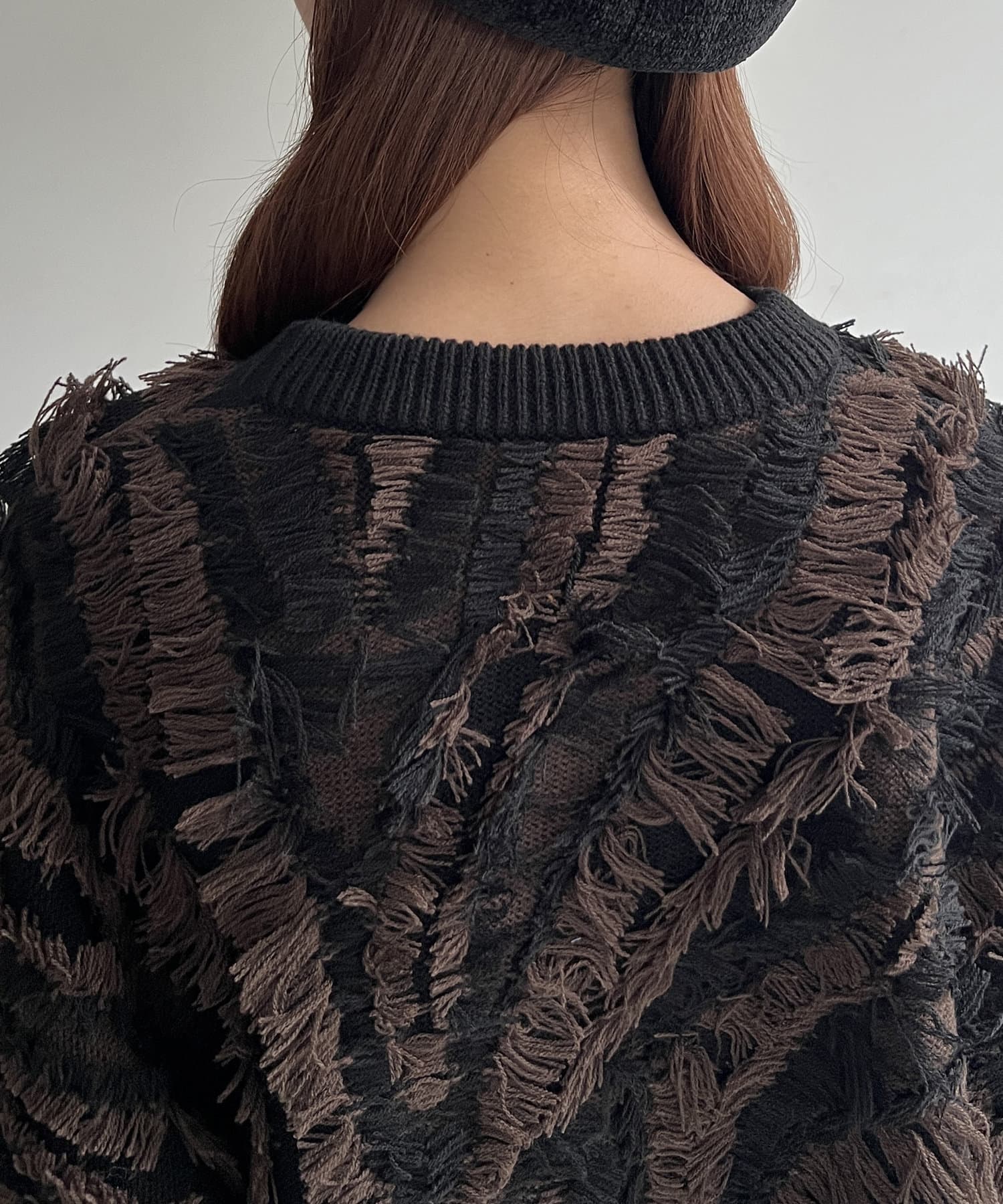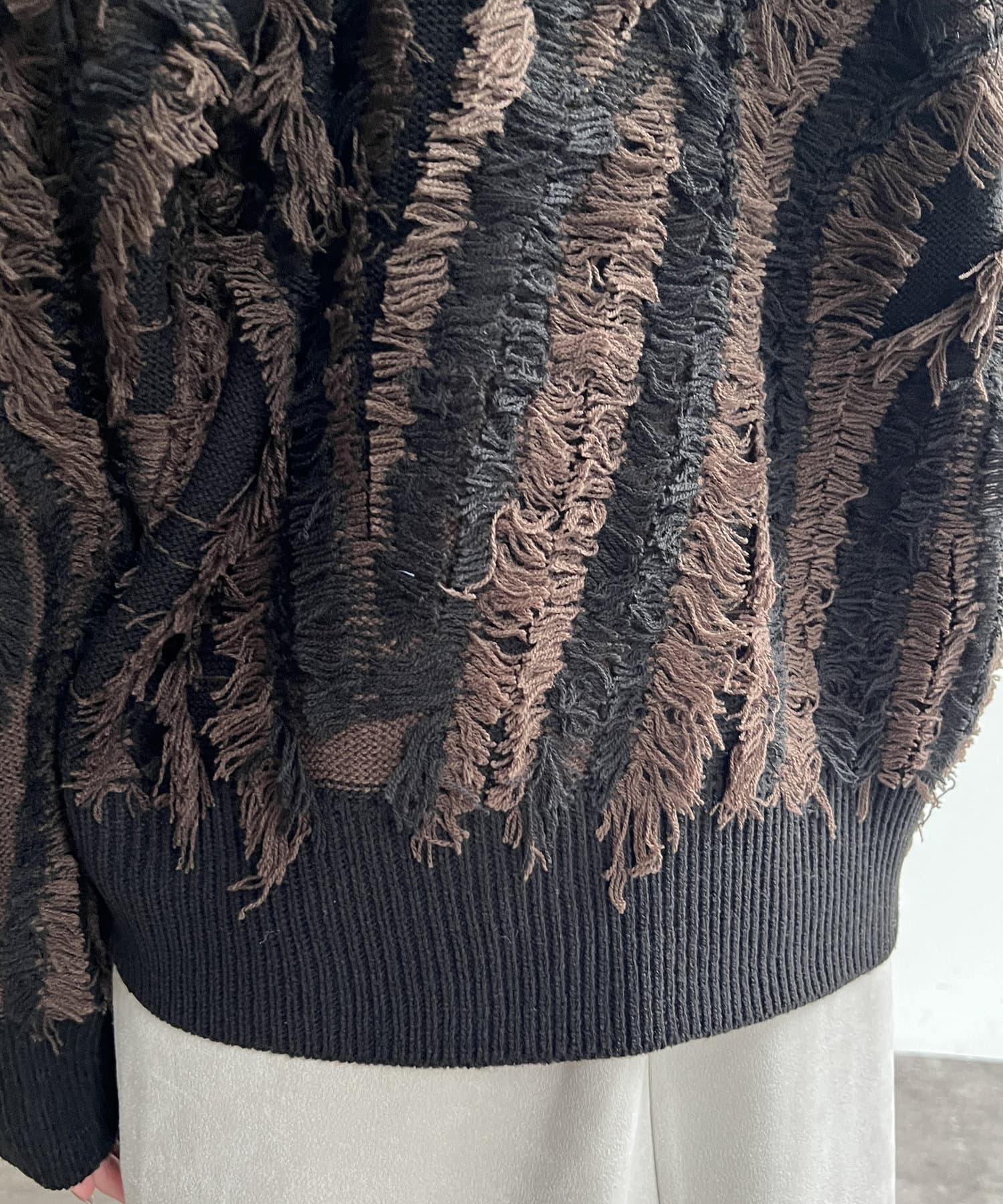 ウェーブを描くフリンジシャギーデザインが印象的なニット。