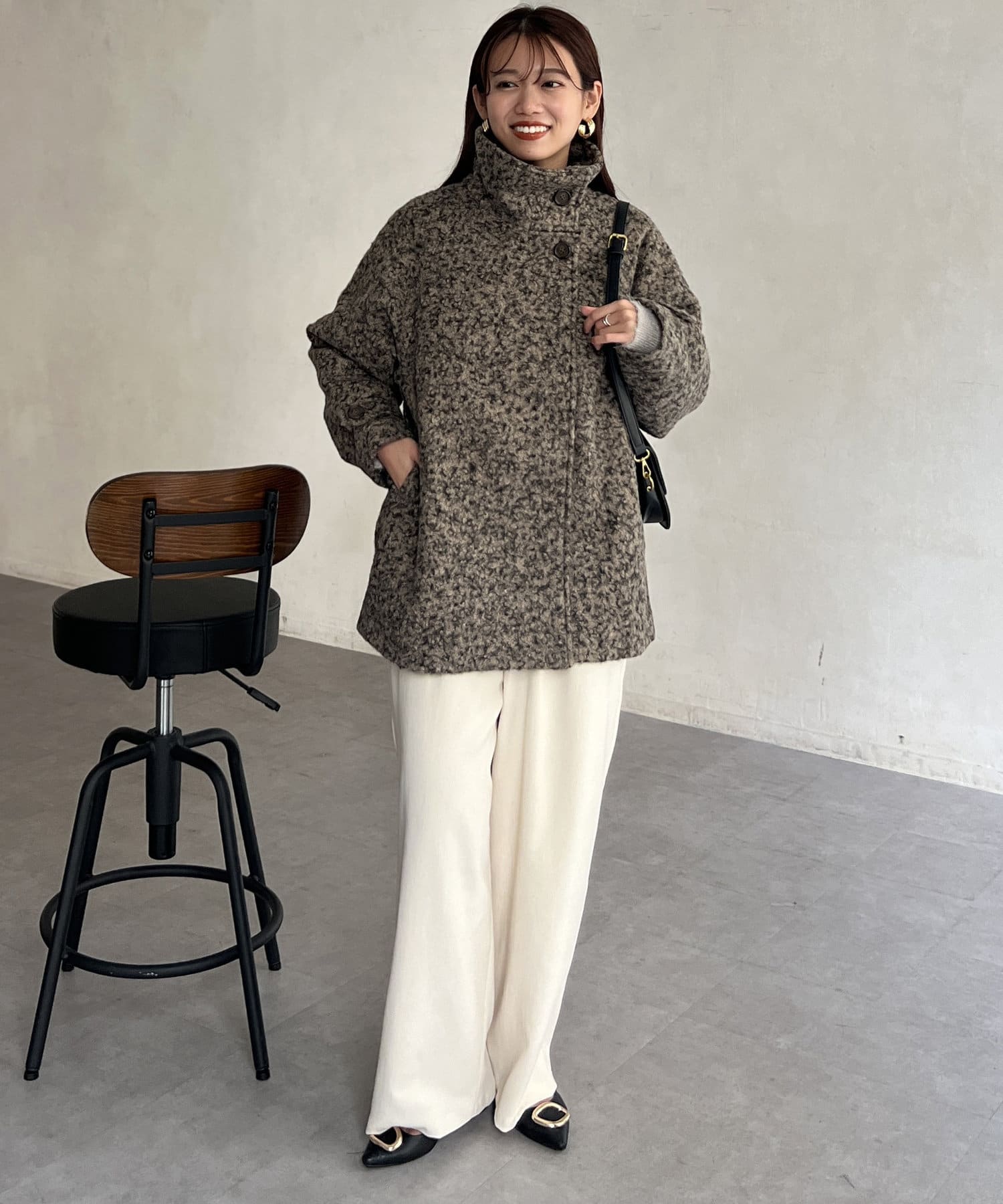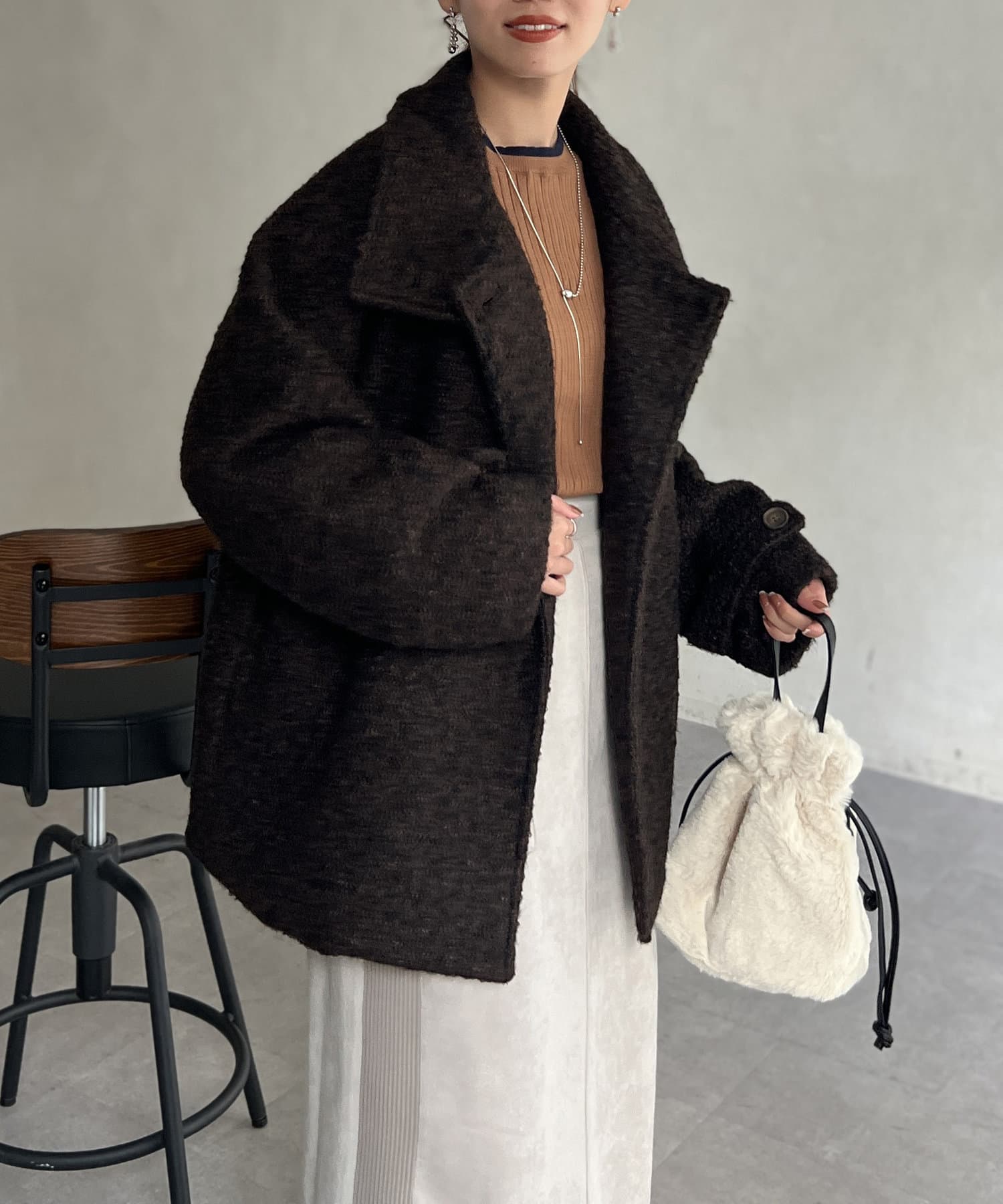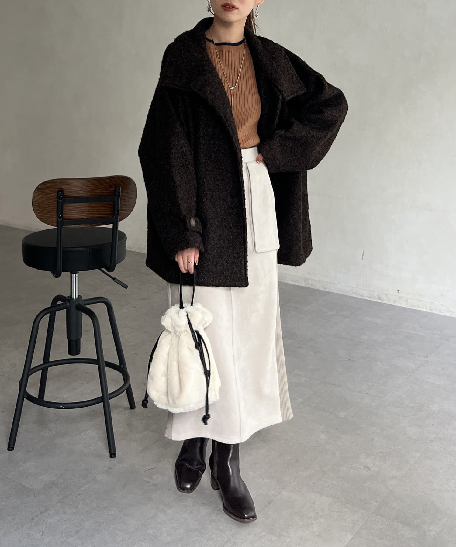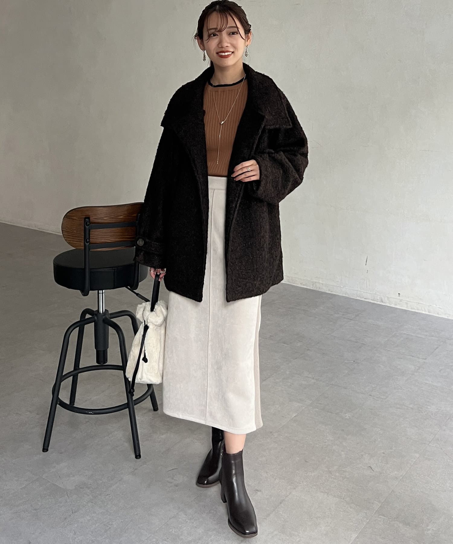 ふわふわのプードルファーが目を惹く大人可愛い印象のコート。