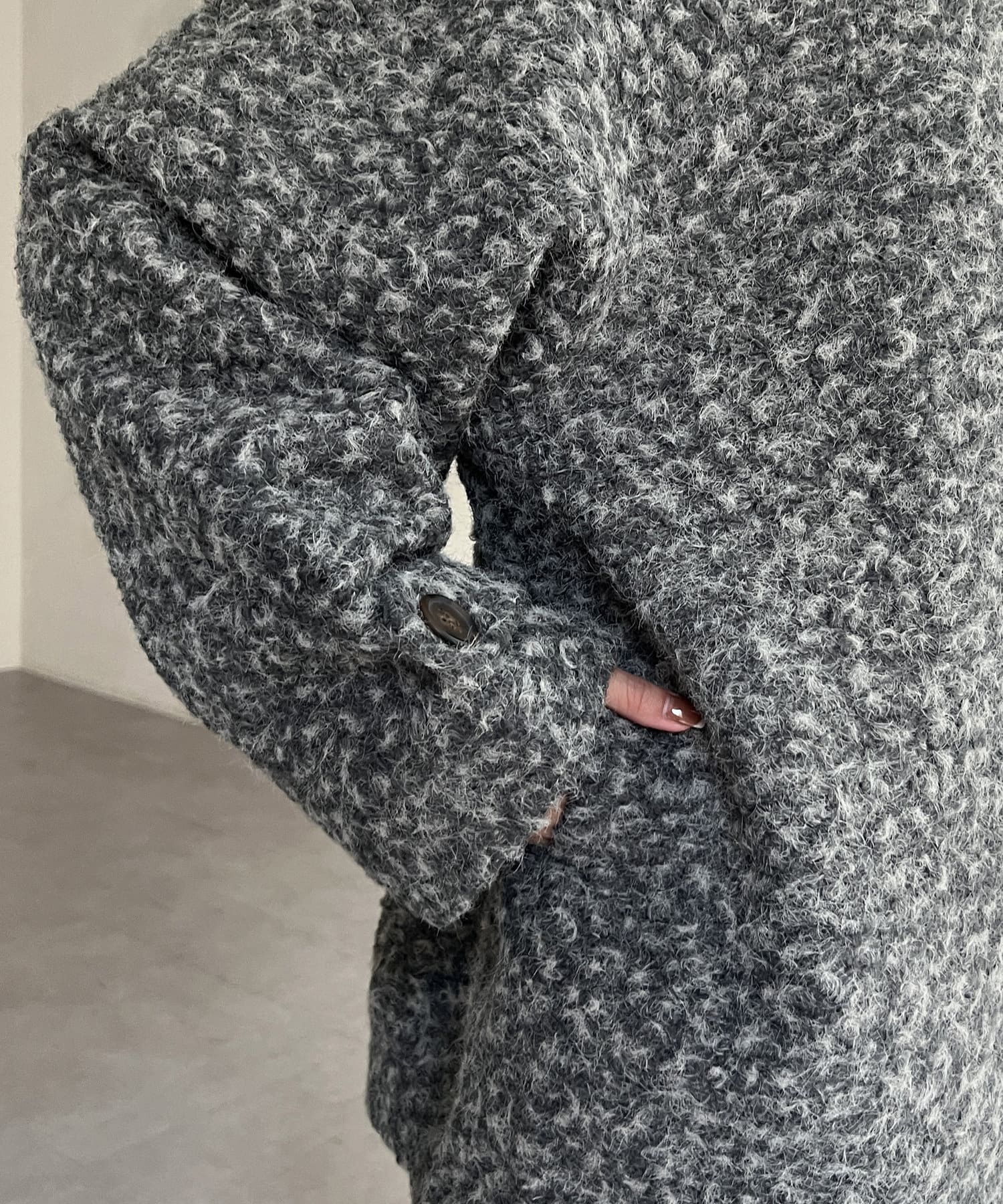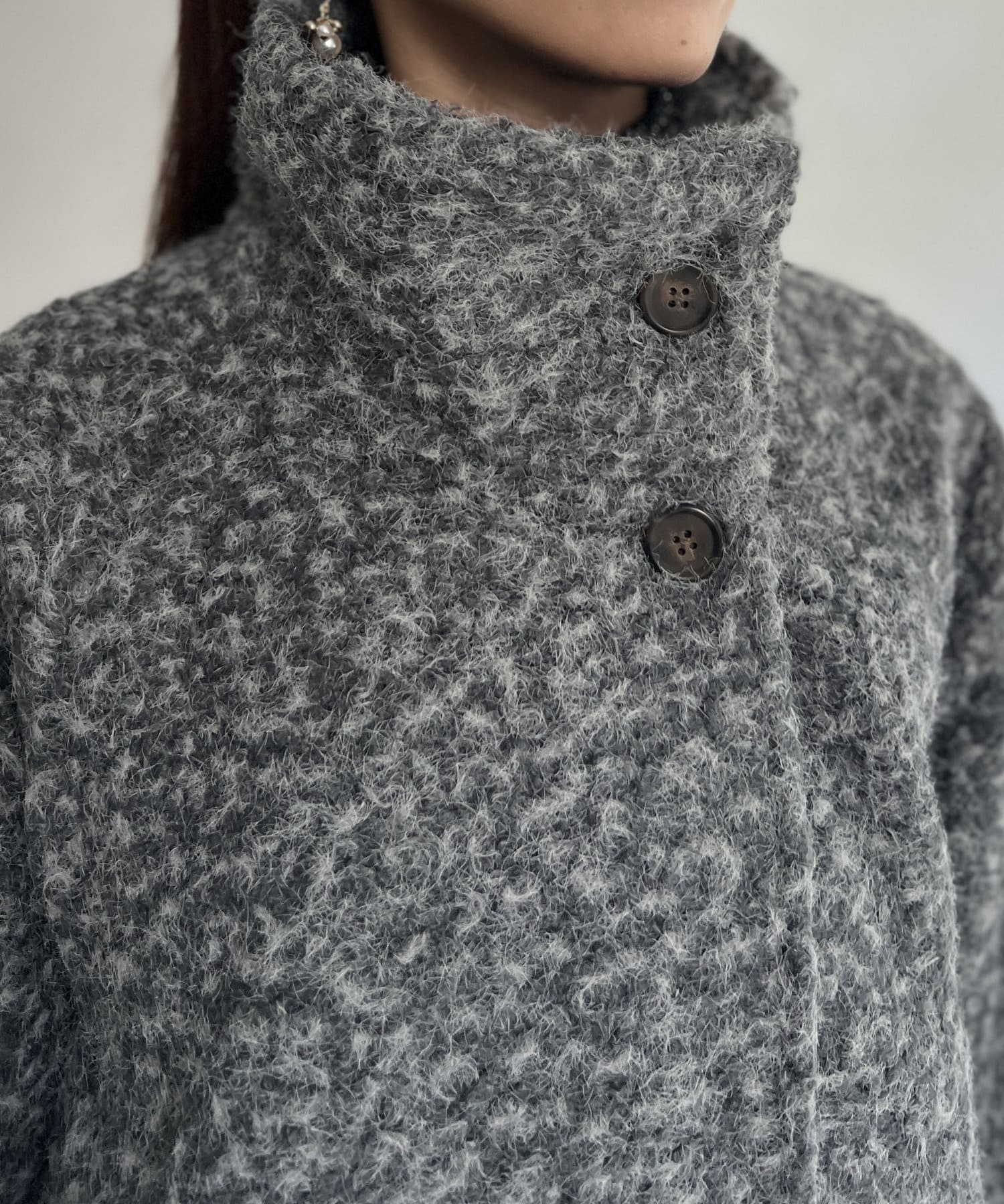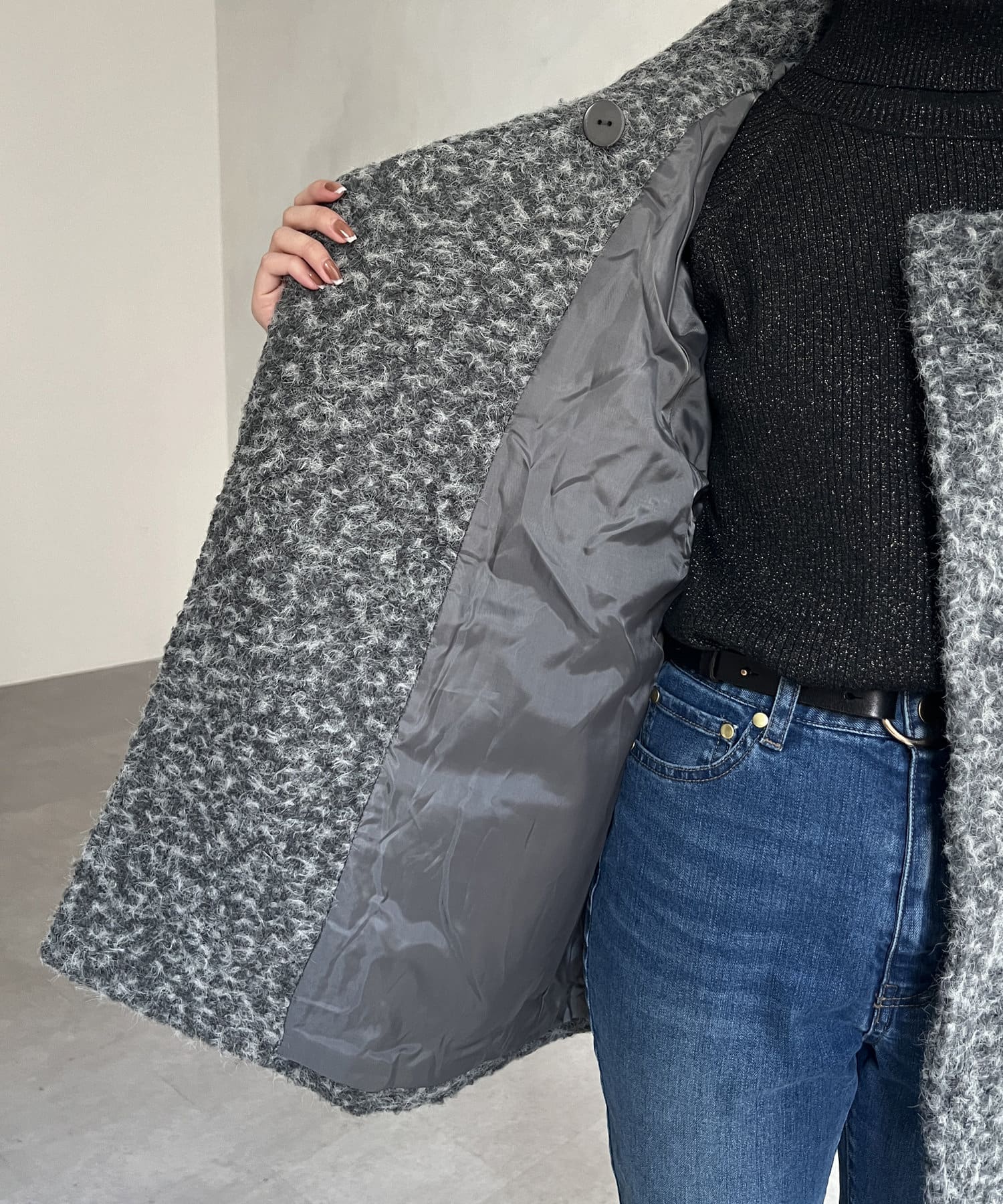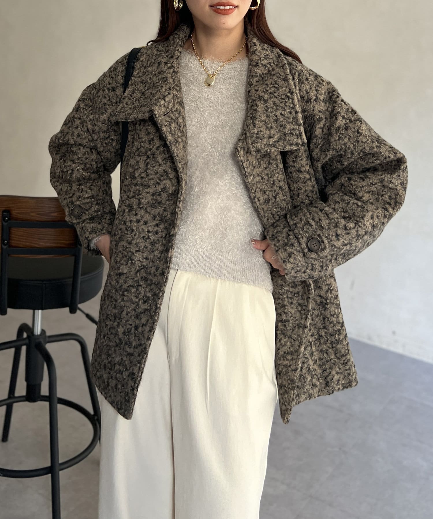 ふわふわのプードルファーが目を惹く大人可愛い印象のコート。