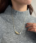 バイカラーの2つの異なる大きさのチャームが首元を華やかに。