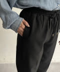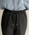 ウエストは総ゴムでラクチンな履き心地。ゴールドのパーツを