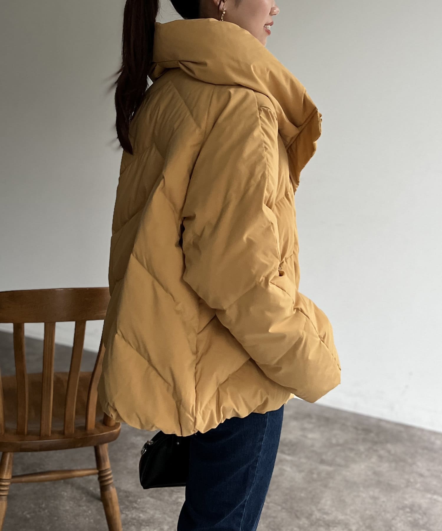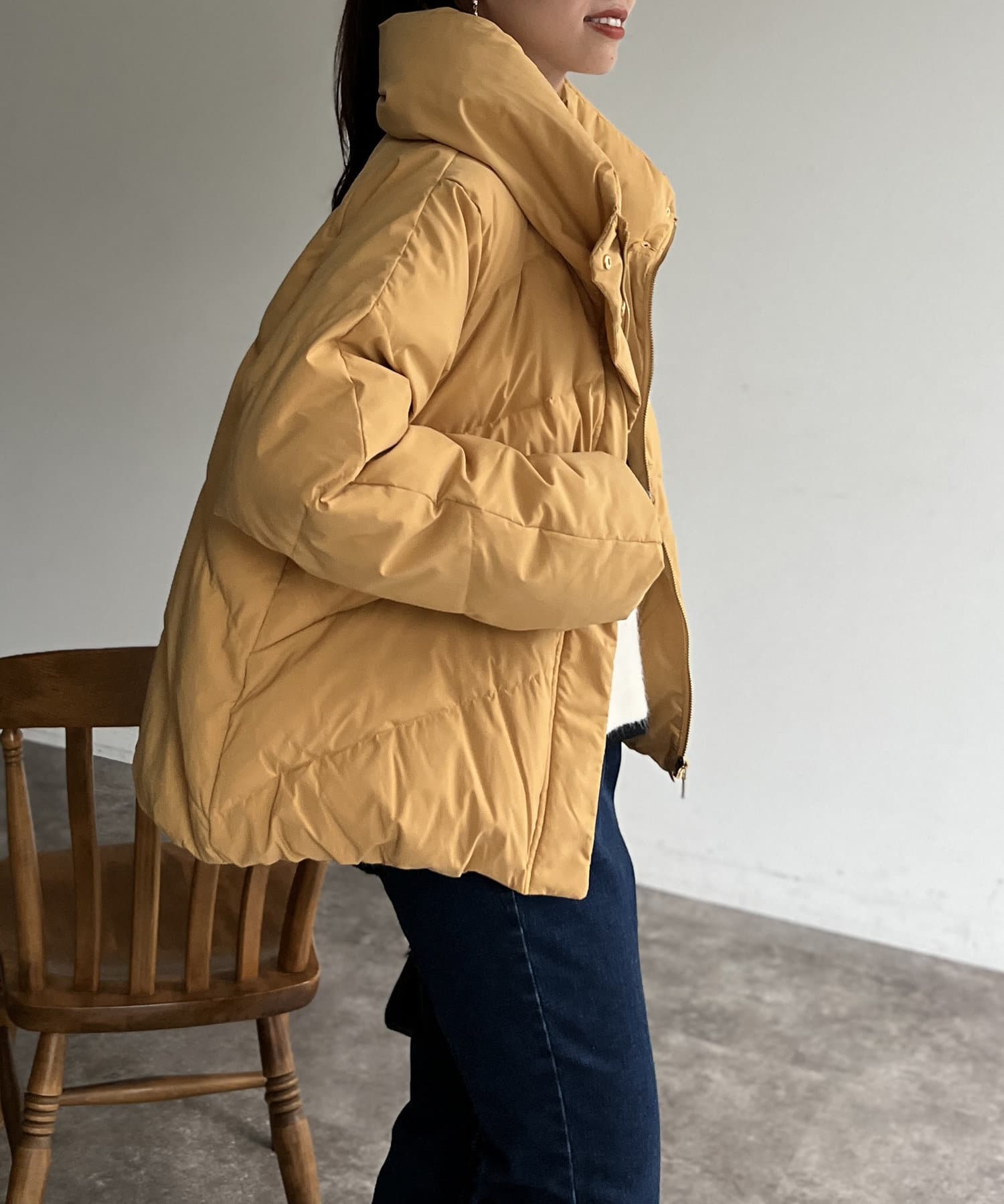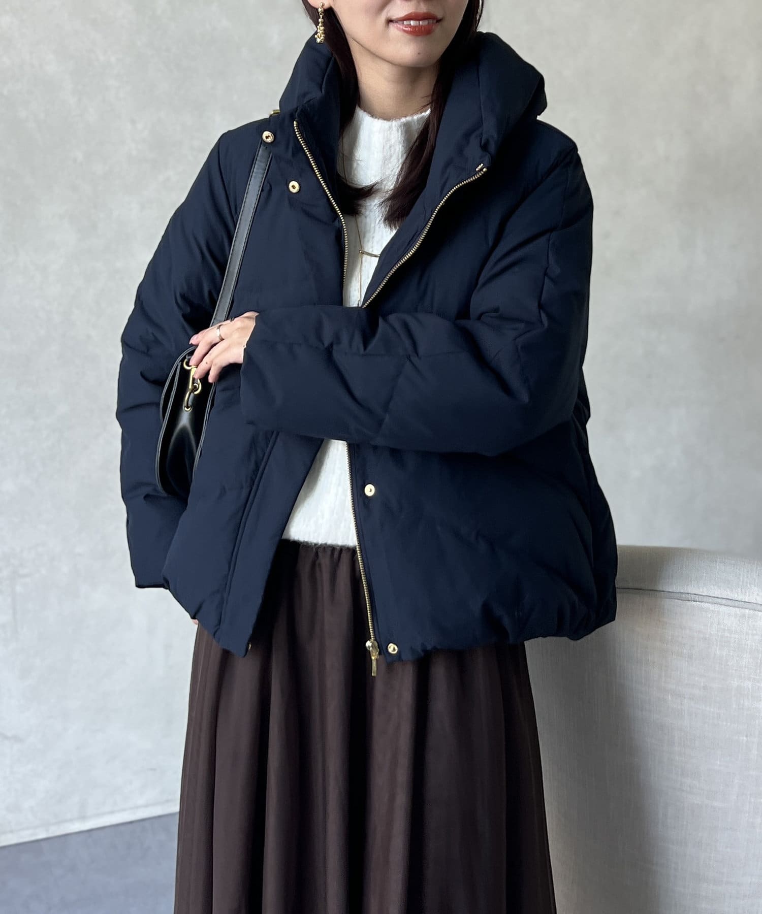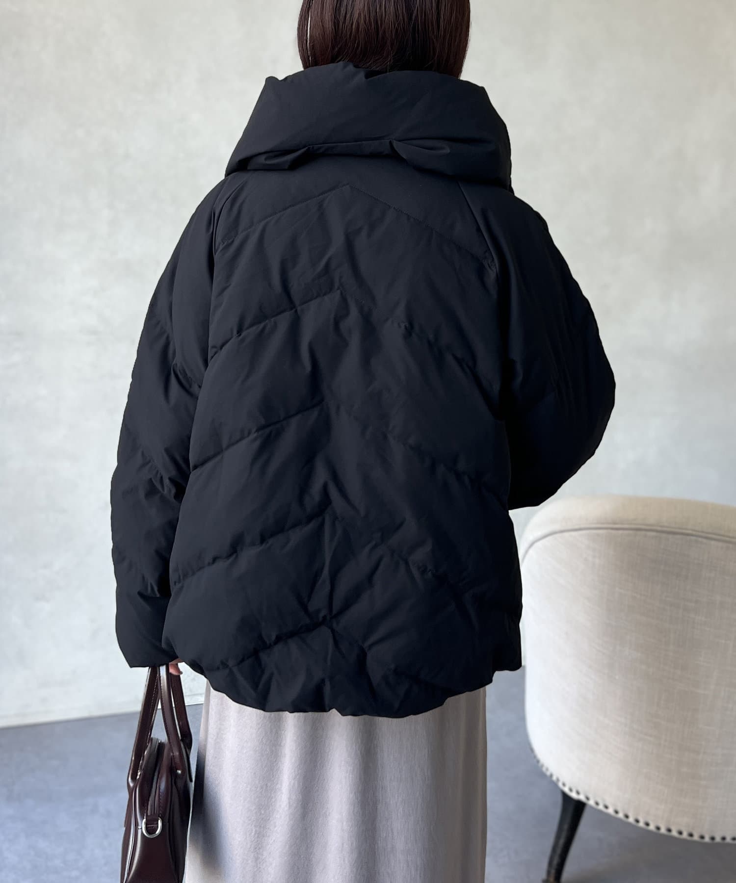 ダウン80%にフェザー20%の温かくて軽い羽織り心地。