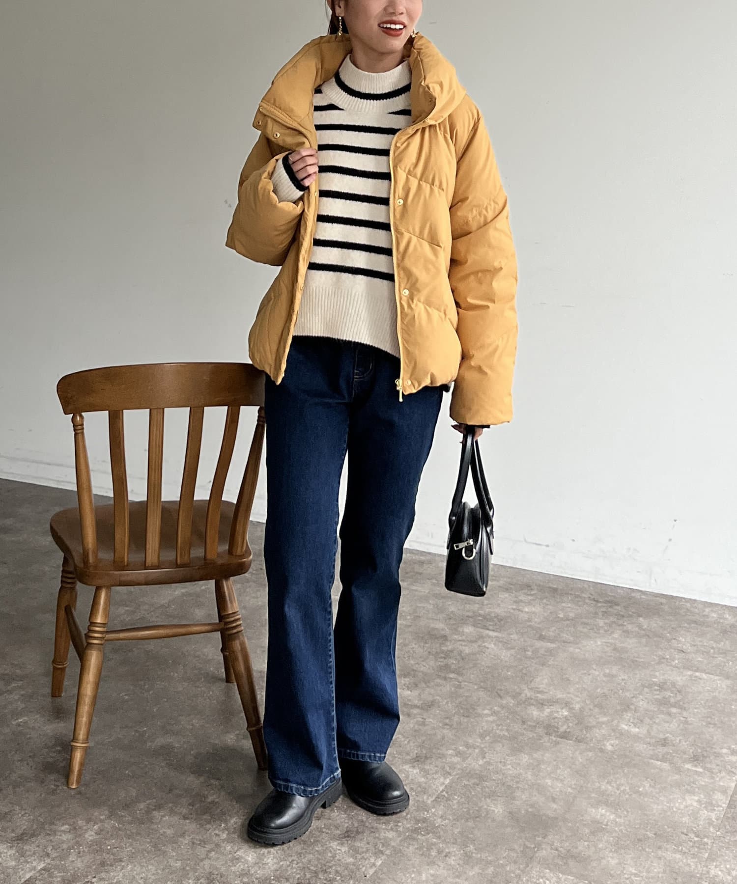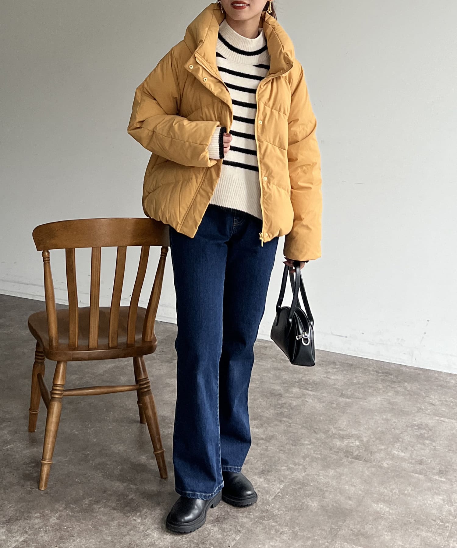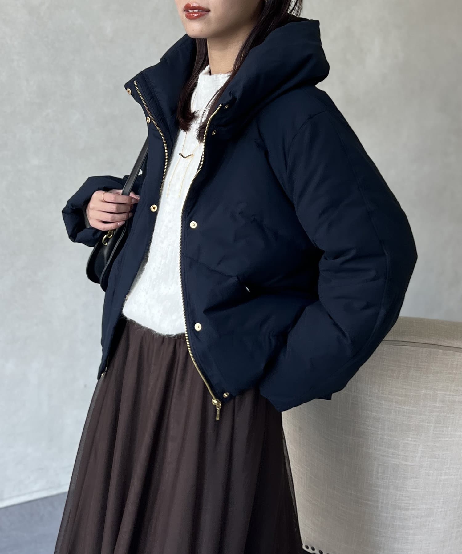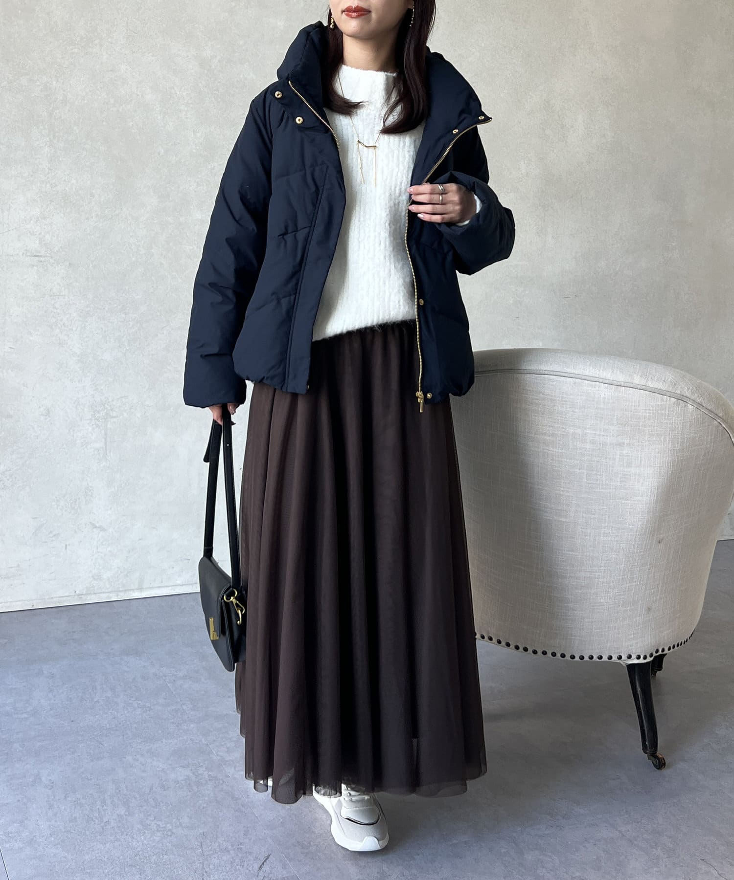 ダウン80%にフェザー20%の温かくて軽い羽織り心地。