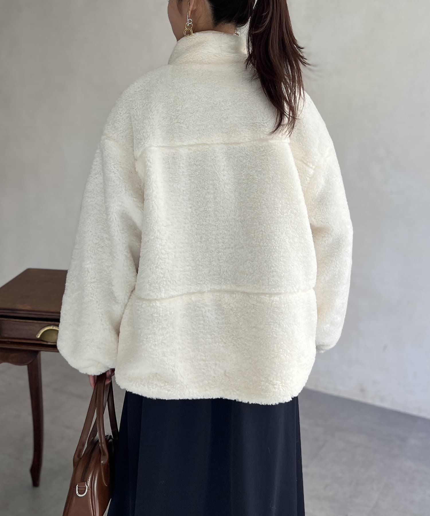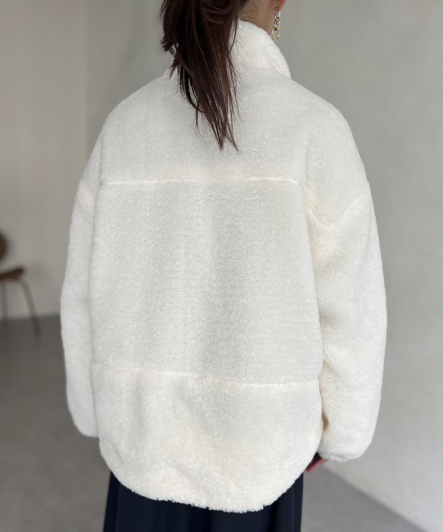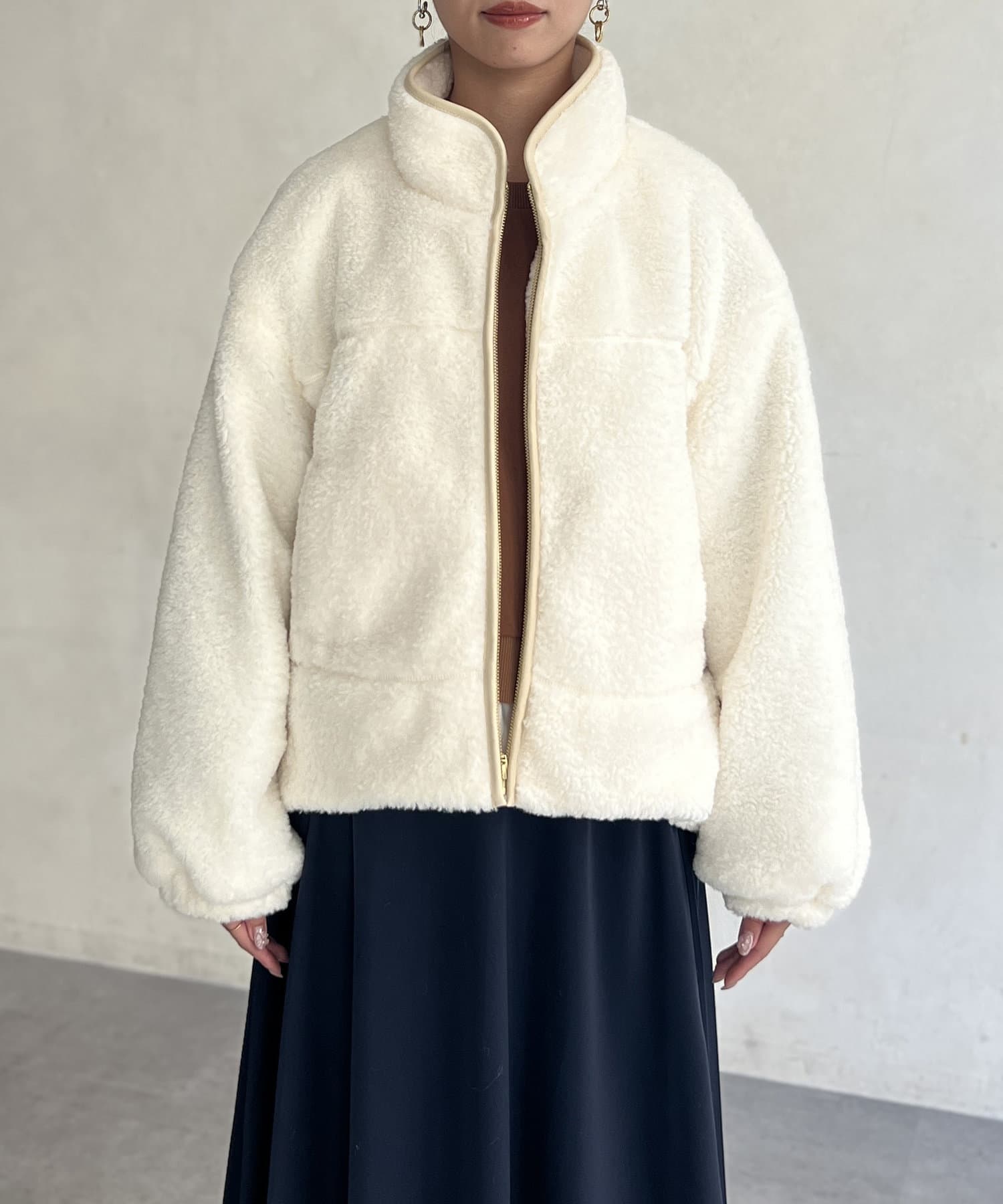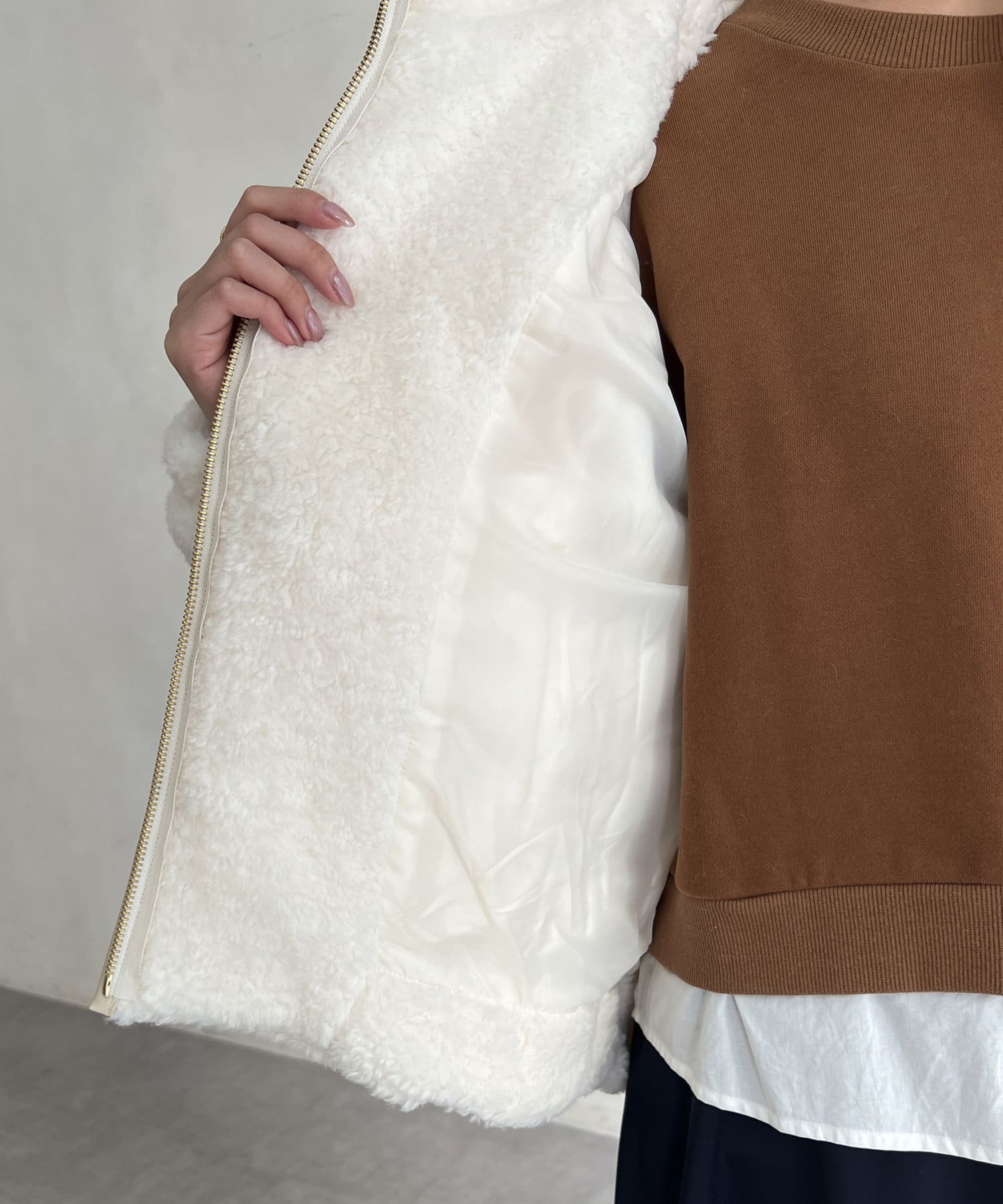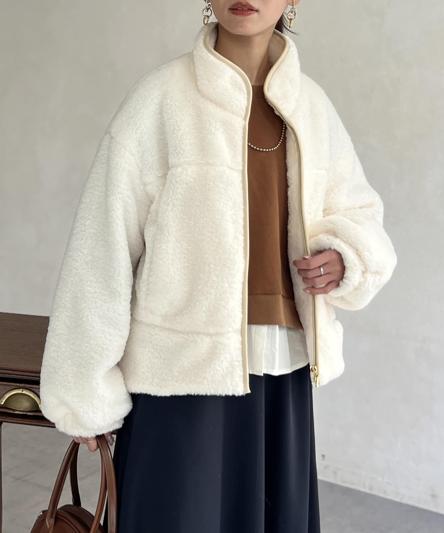 もこもことしたボアが柔らかい着心地のボアブルゾン。