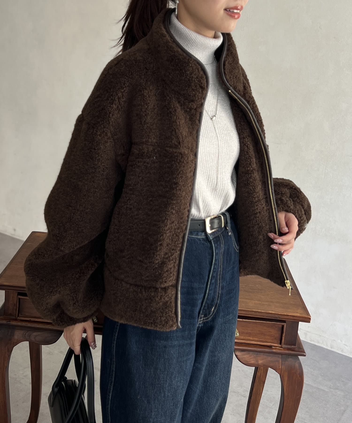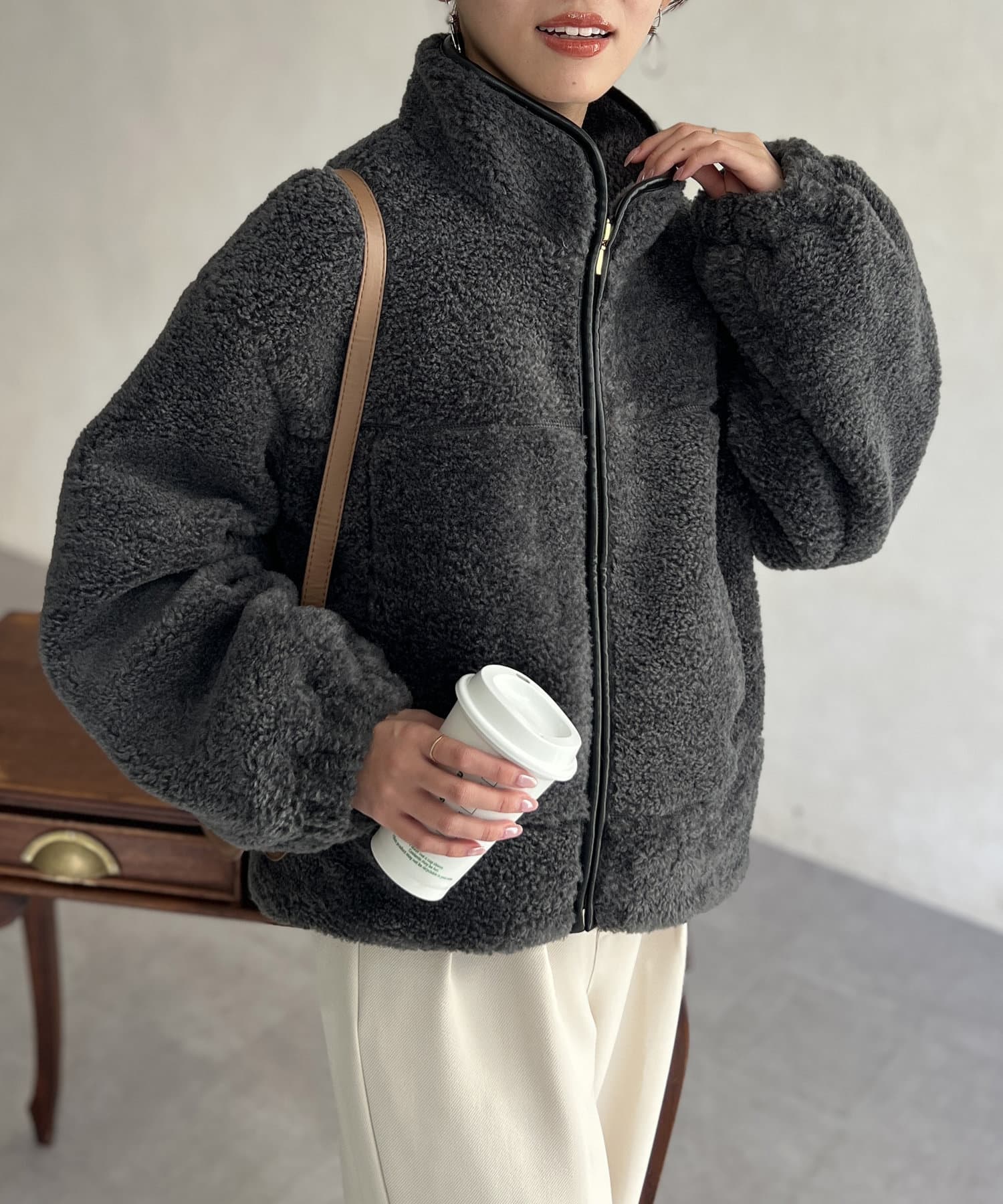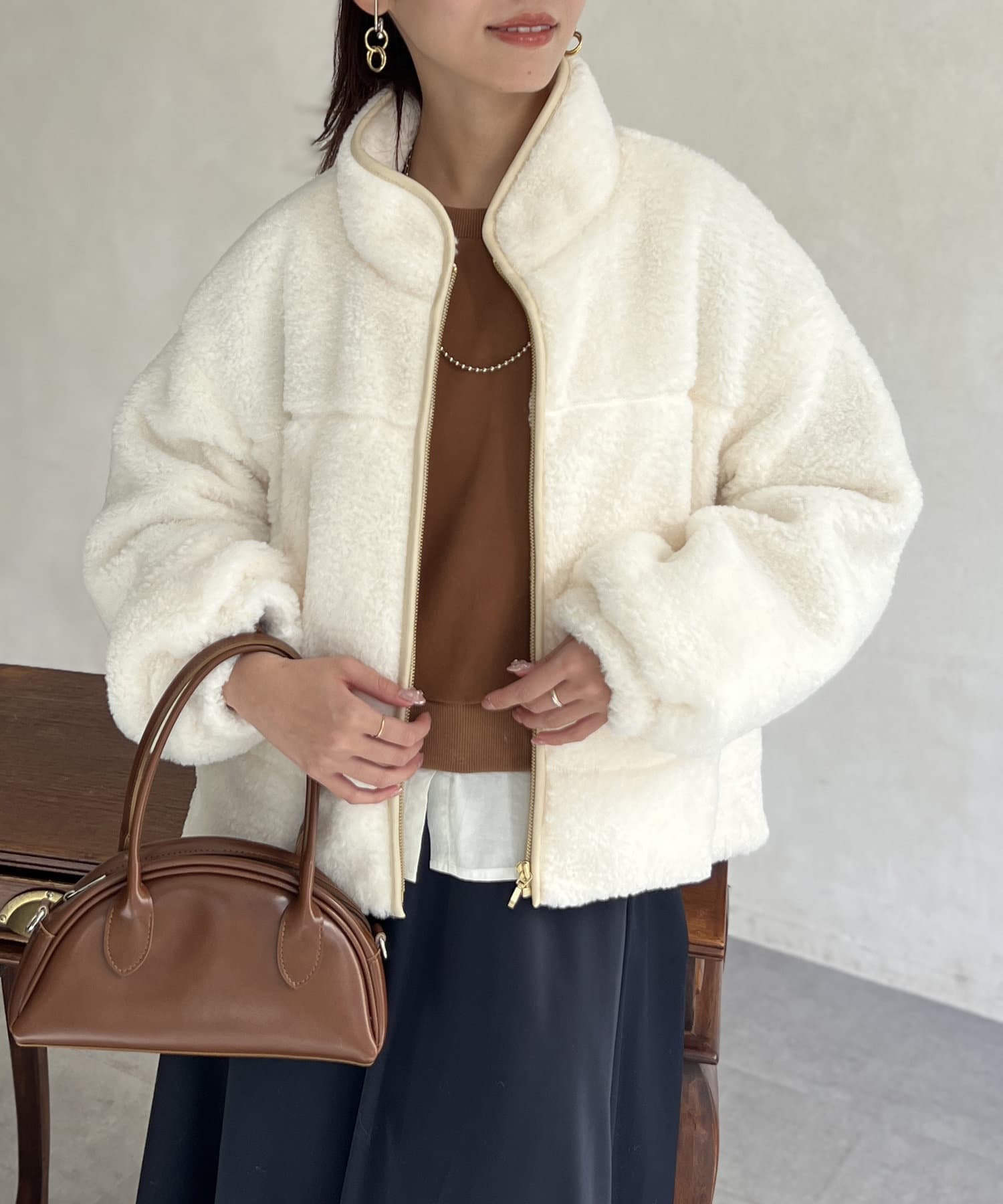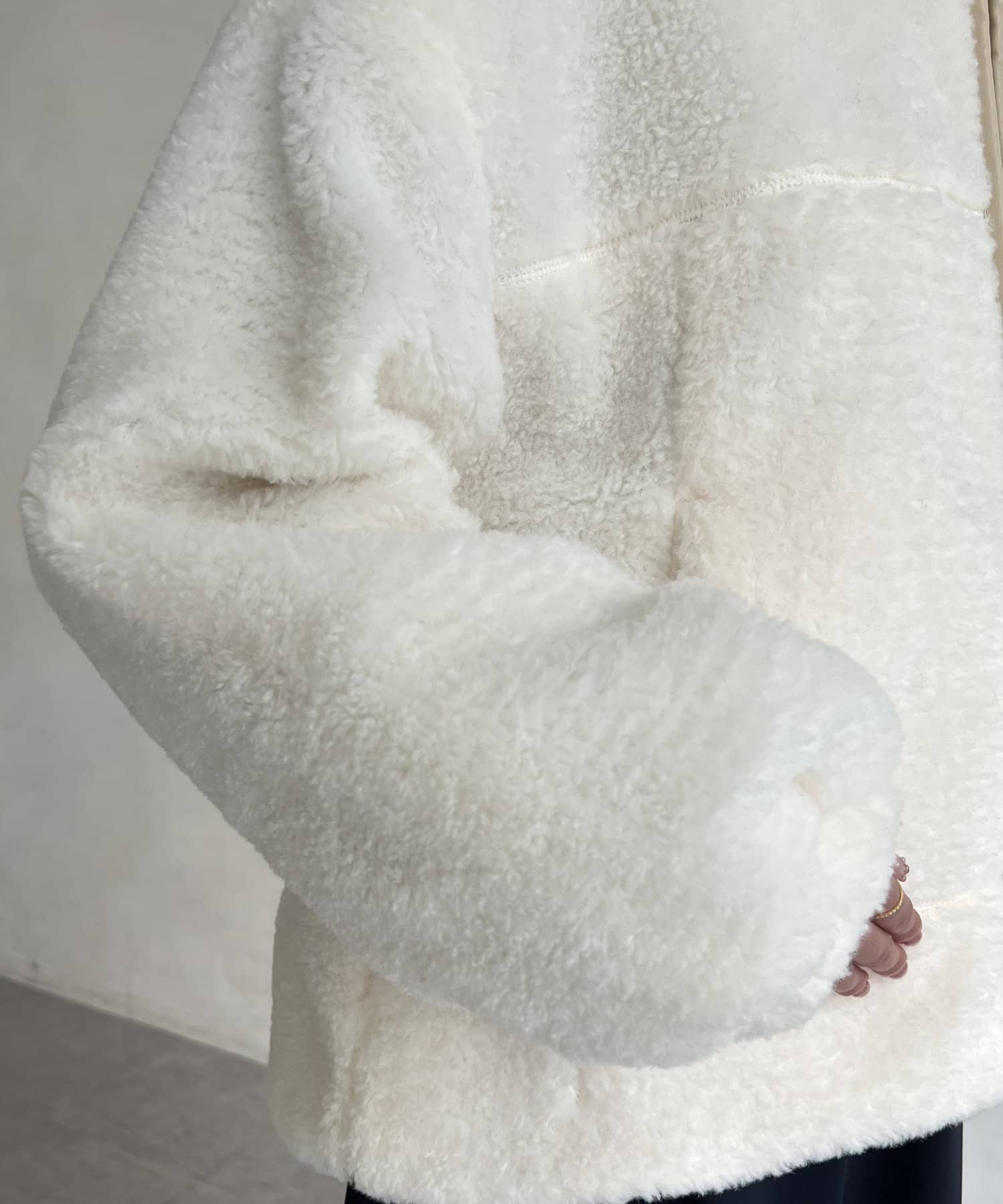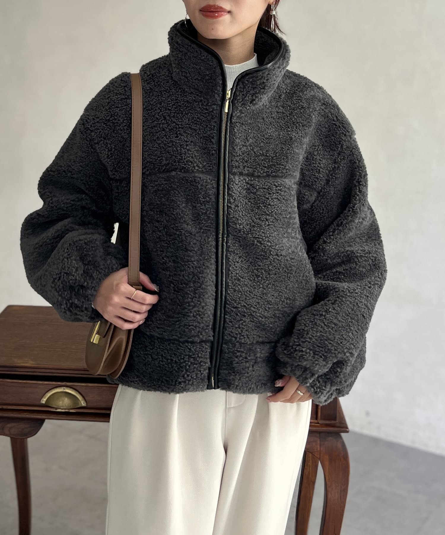もこもことしたボアが柔らかい着心地のボアブルゾン。