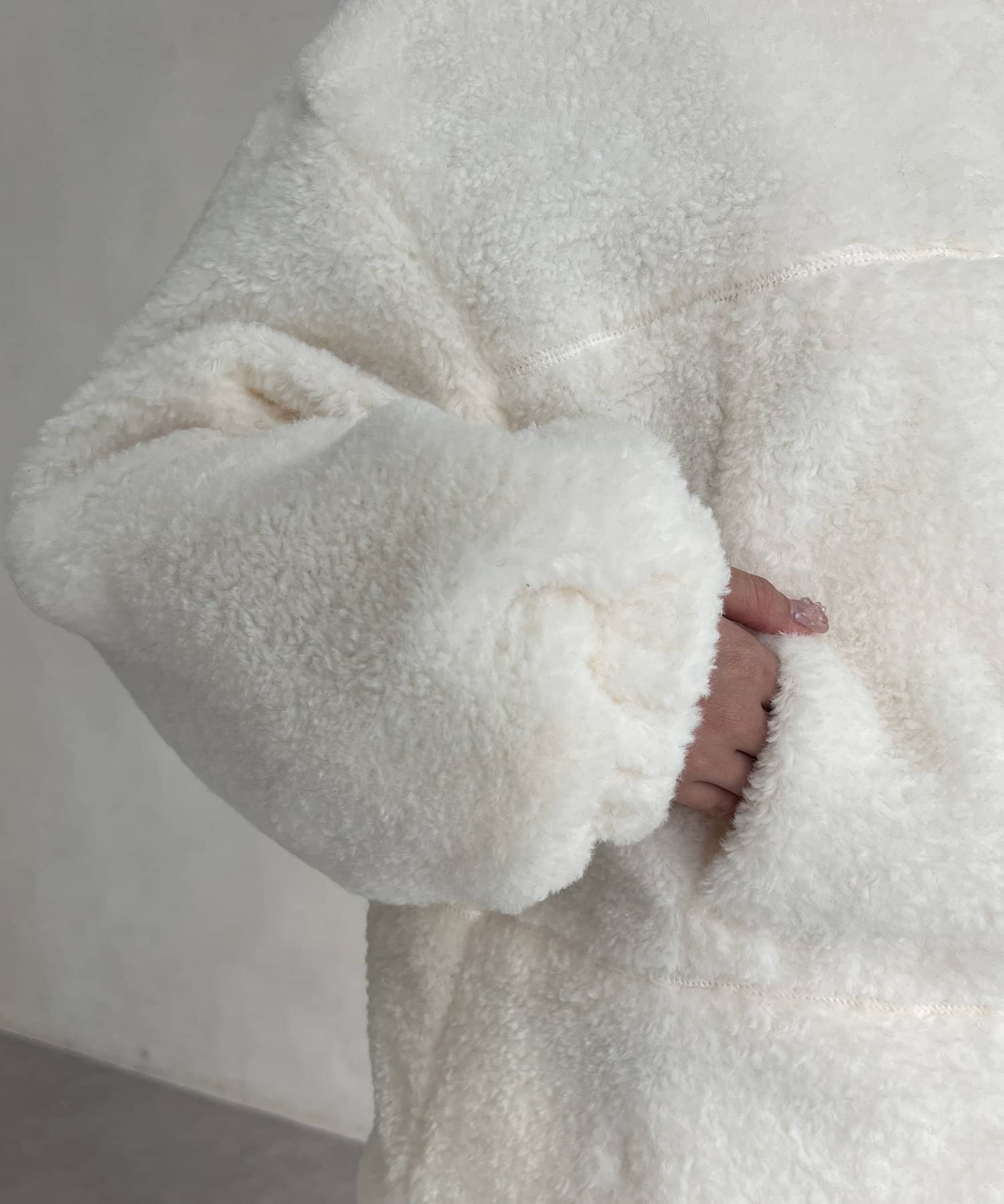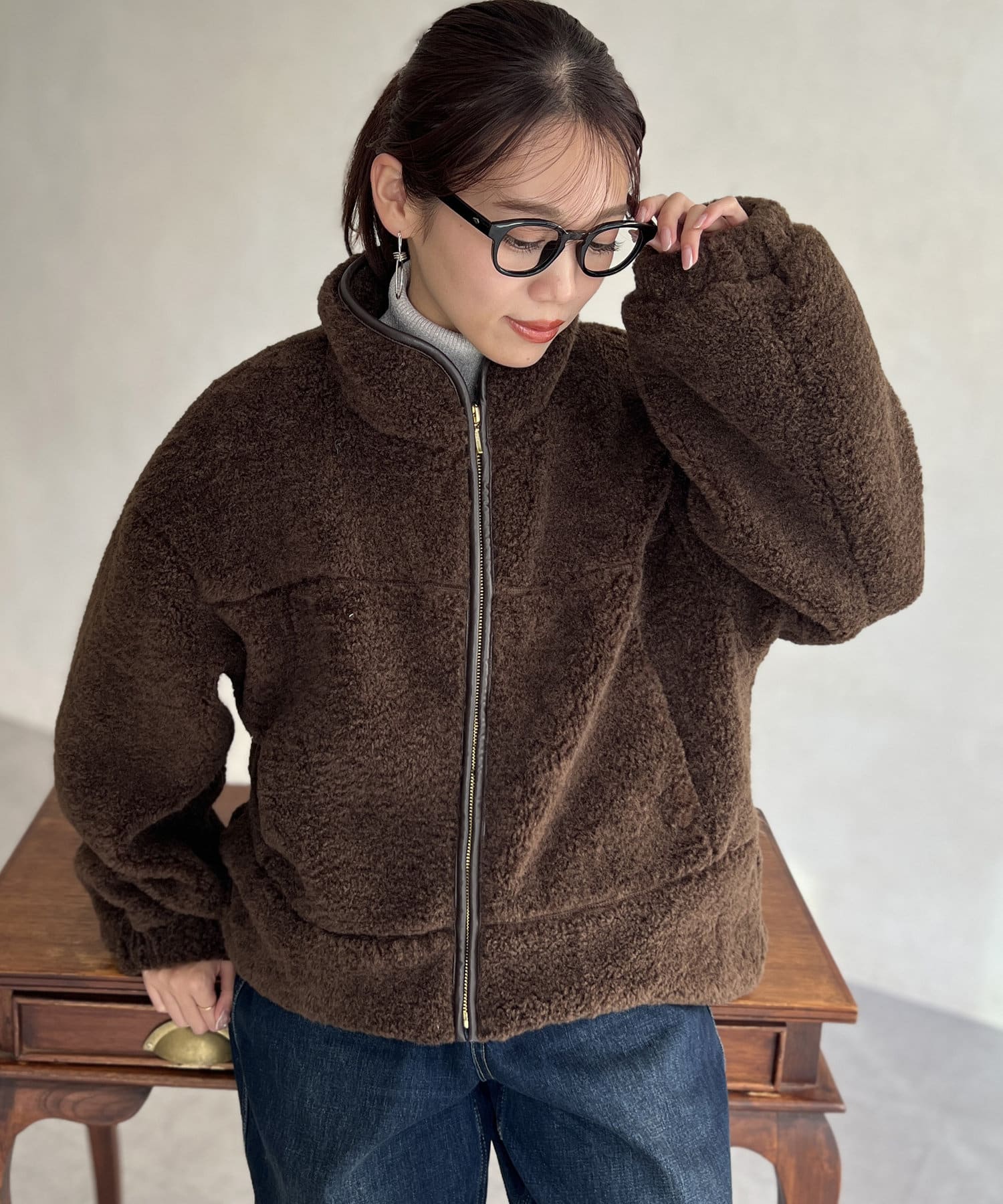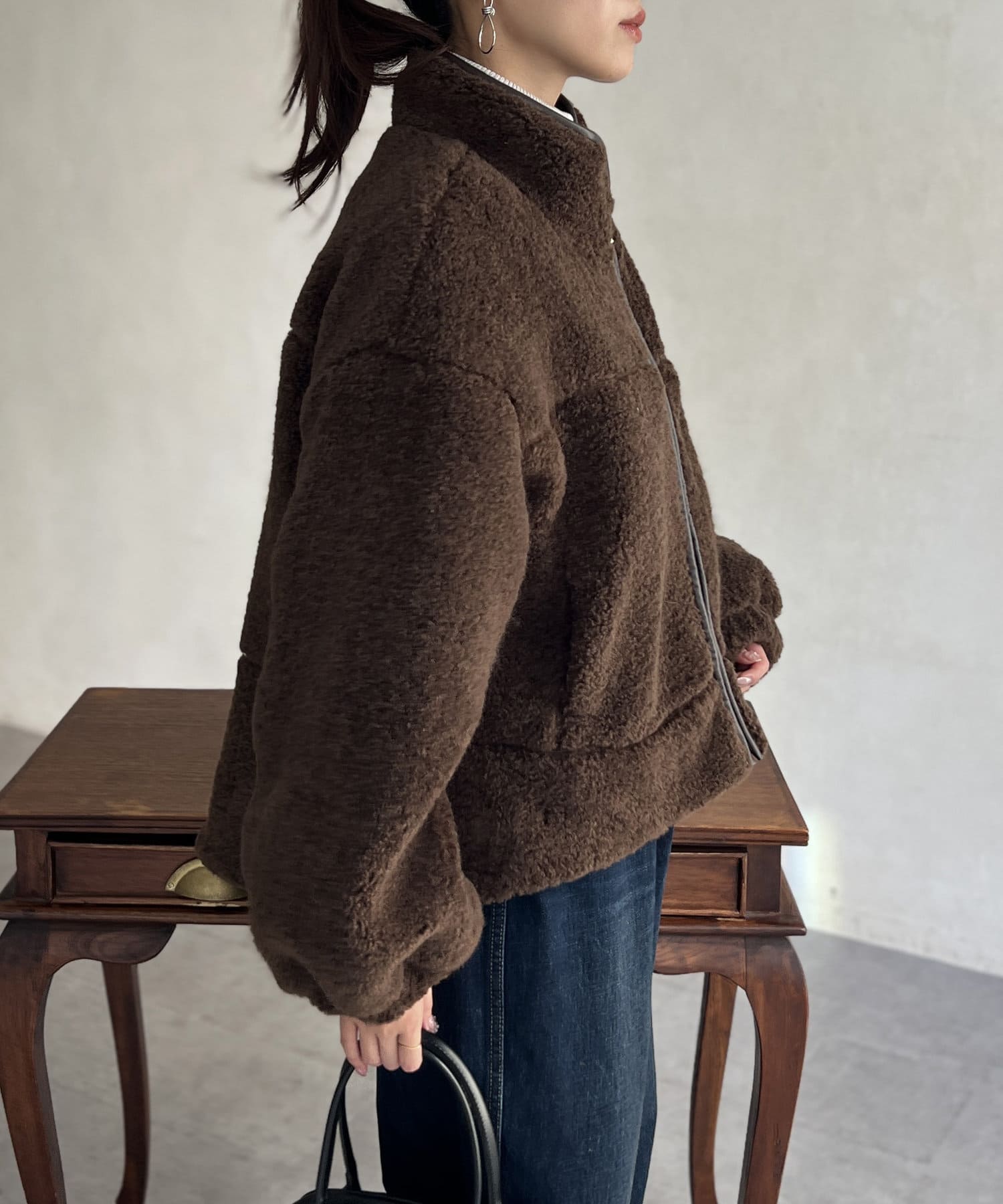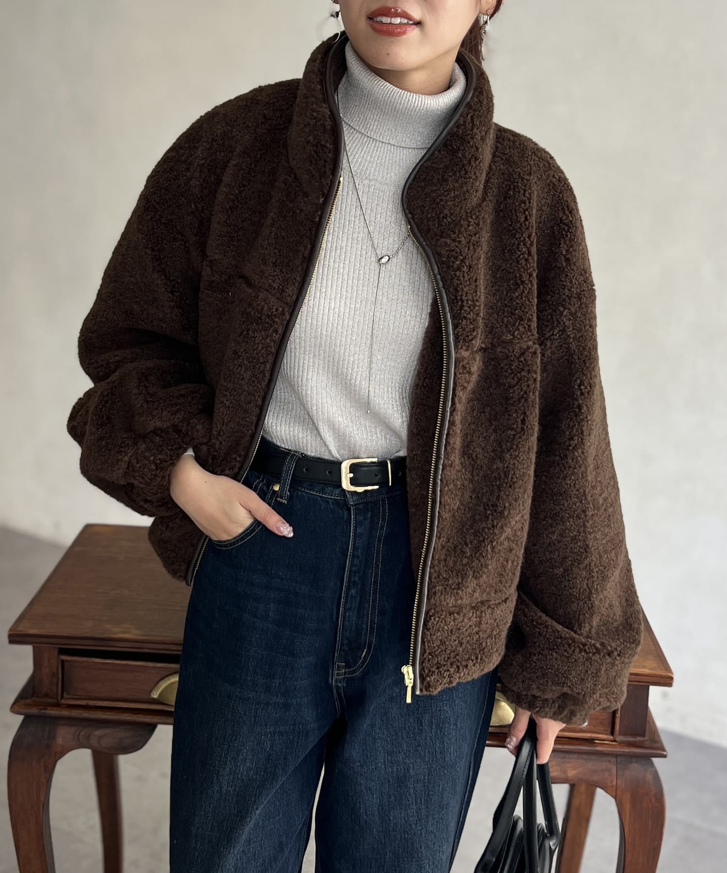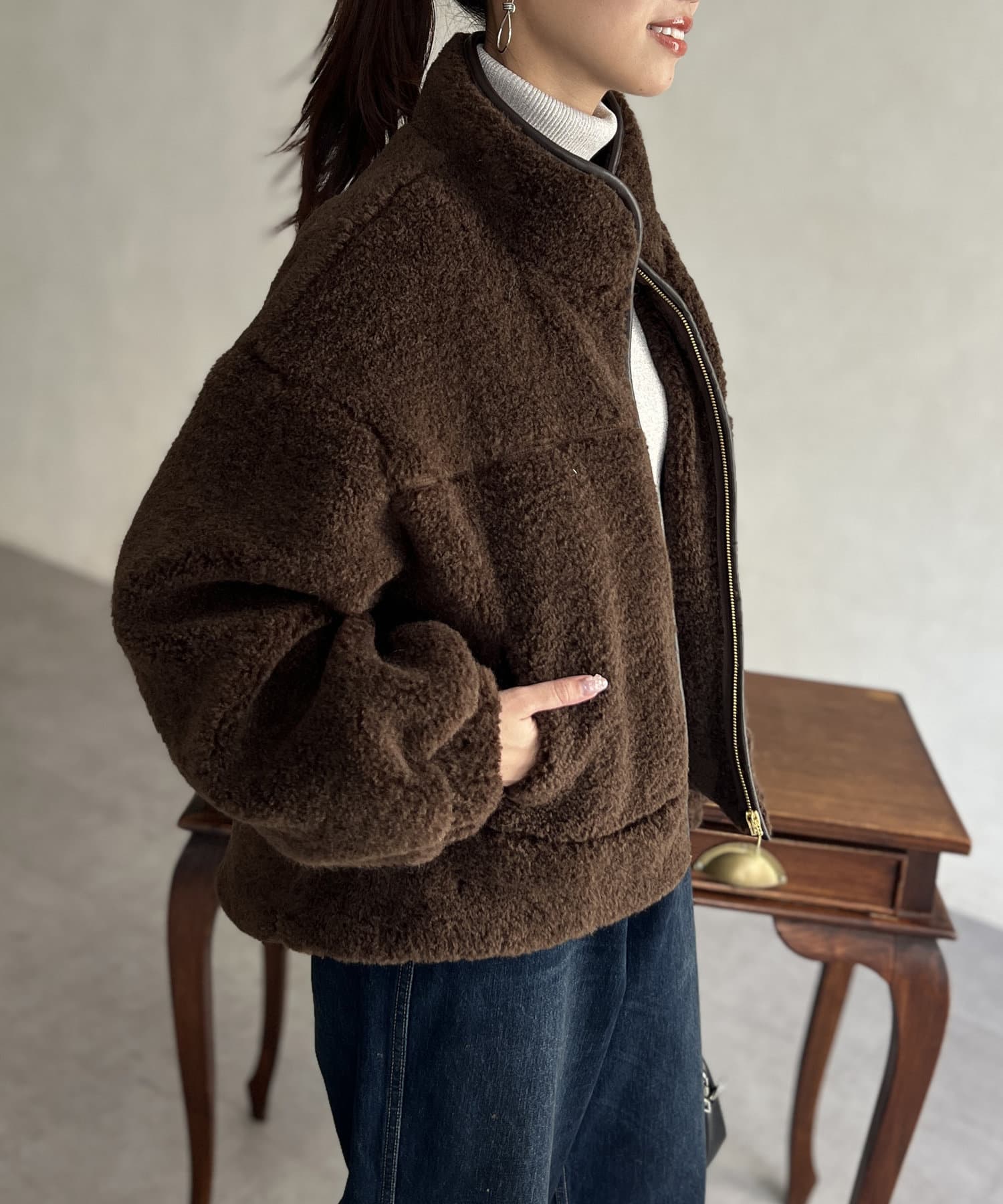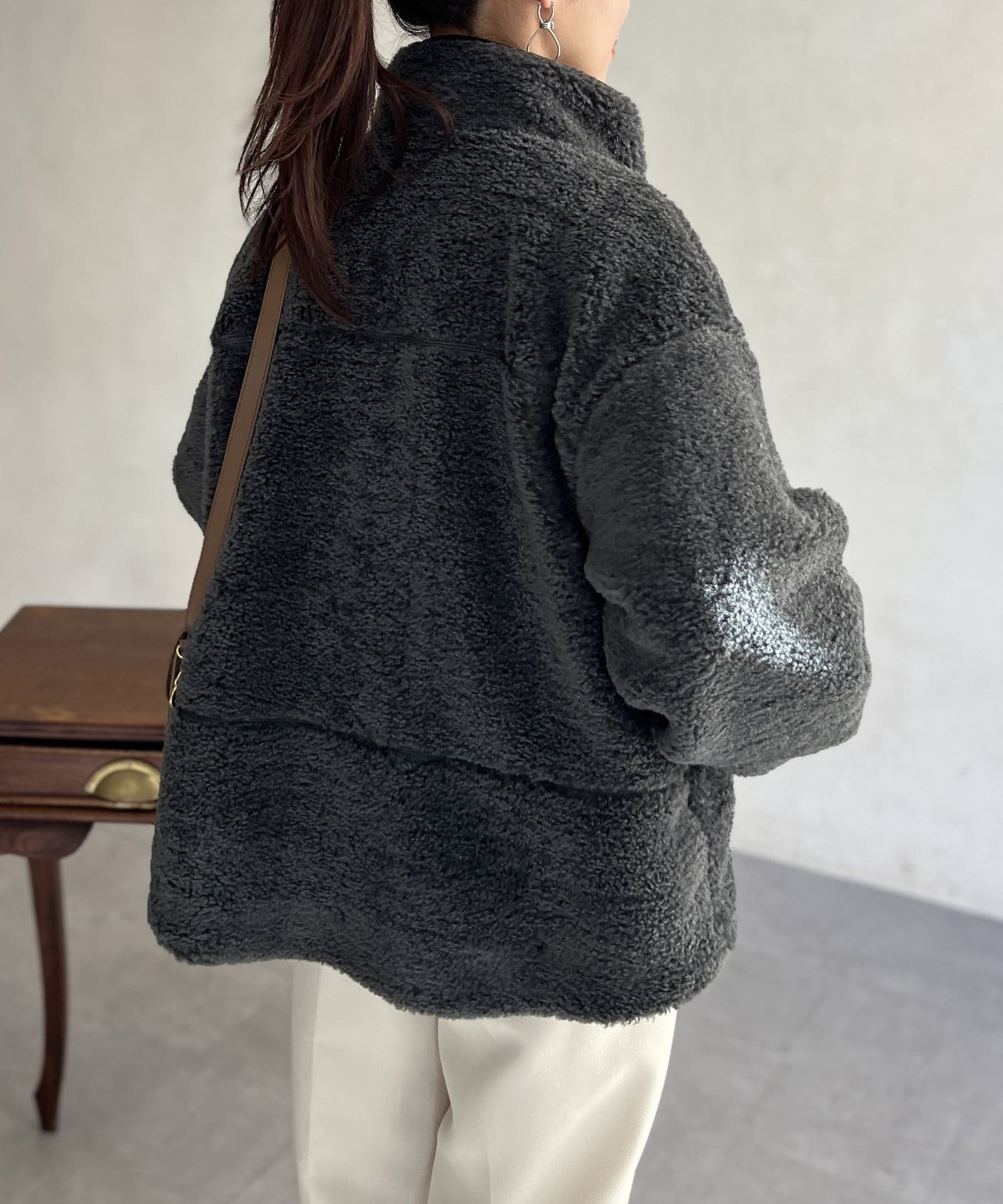もこもことしたボアが柔らかい着心地のボアブルゾン。