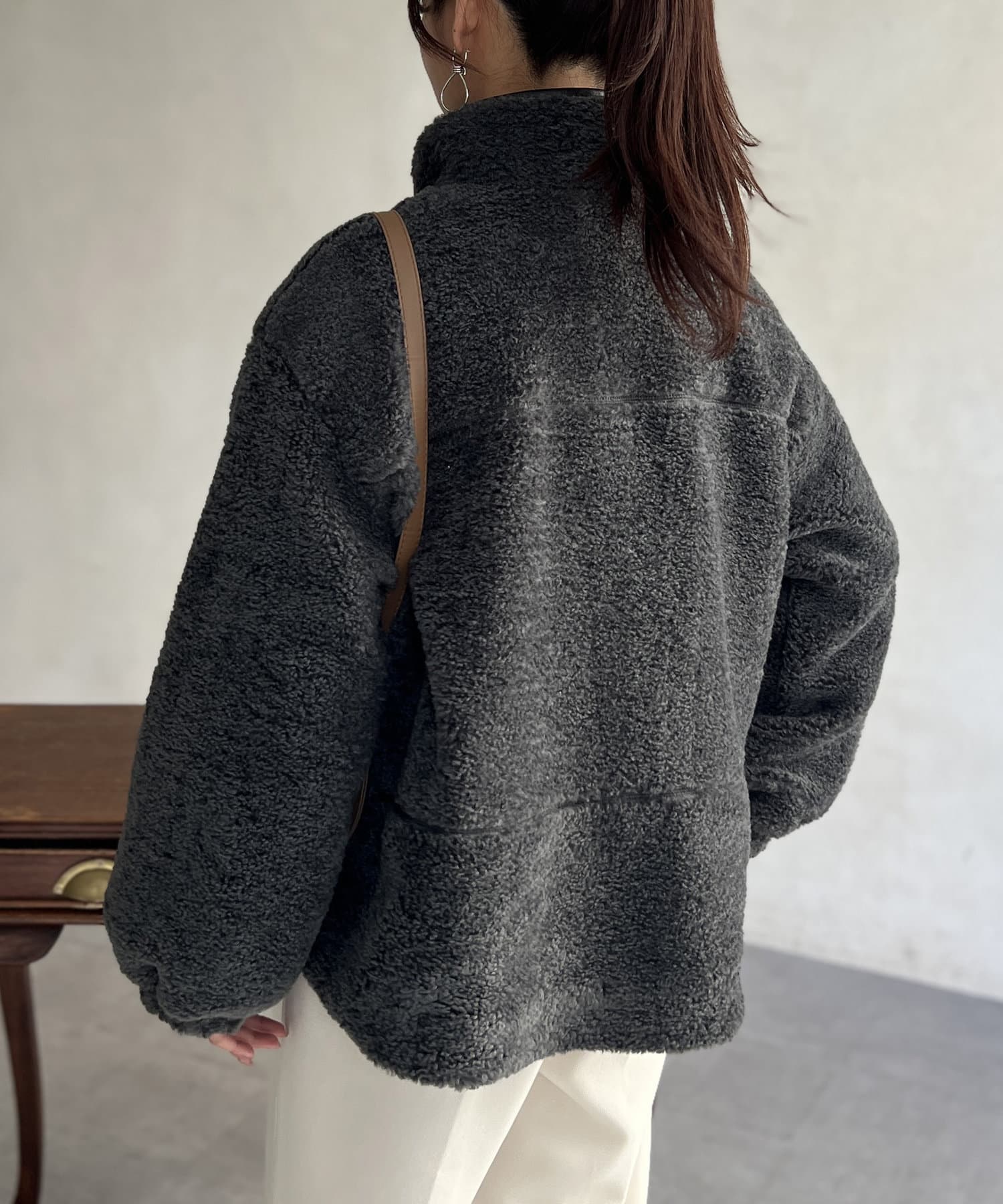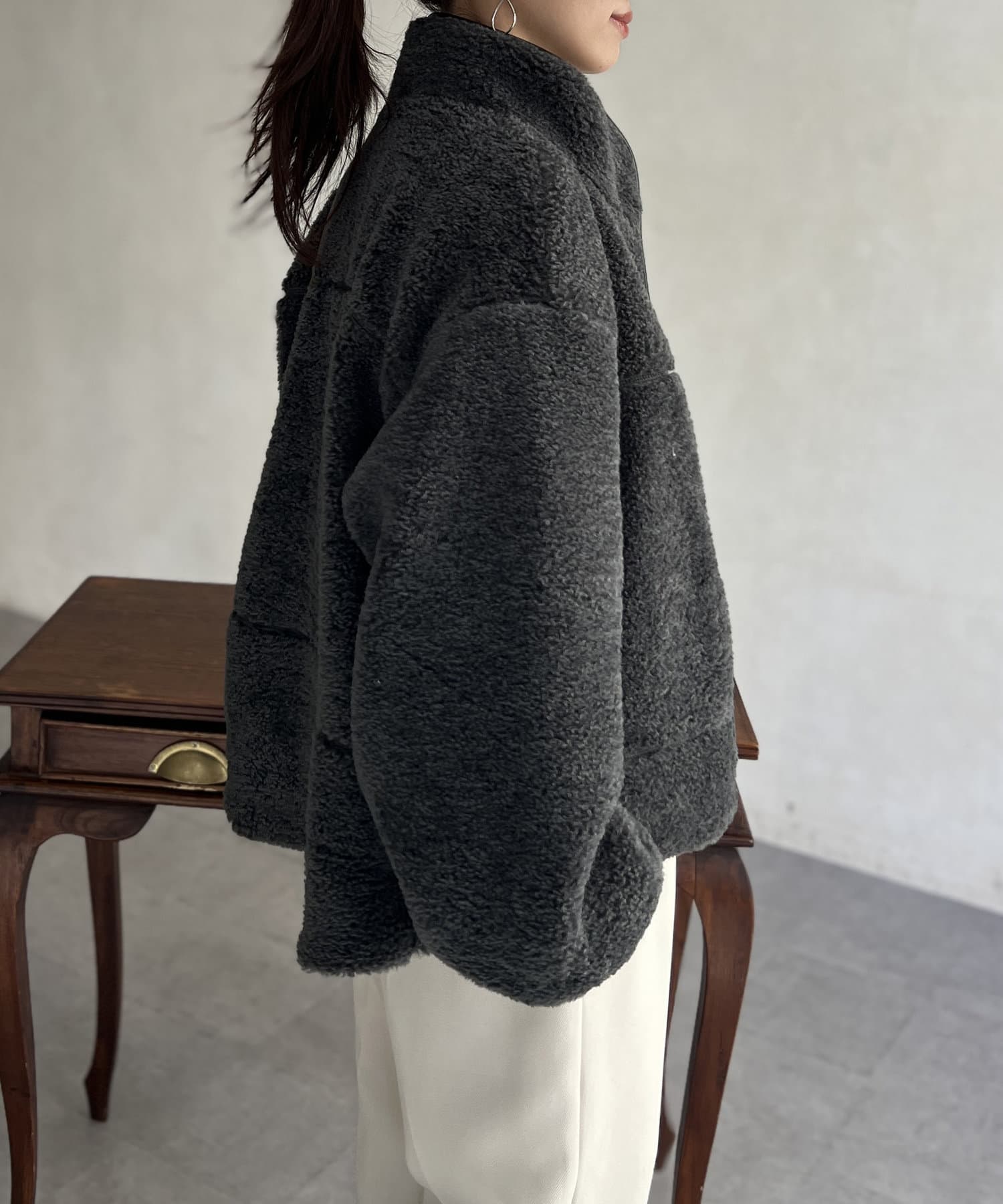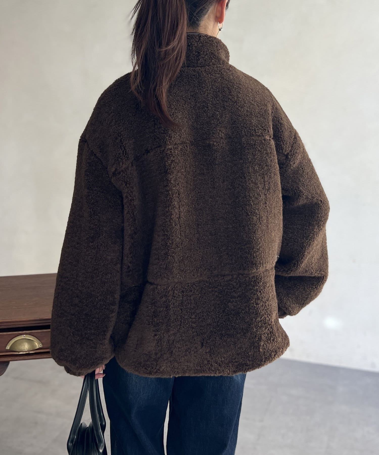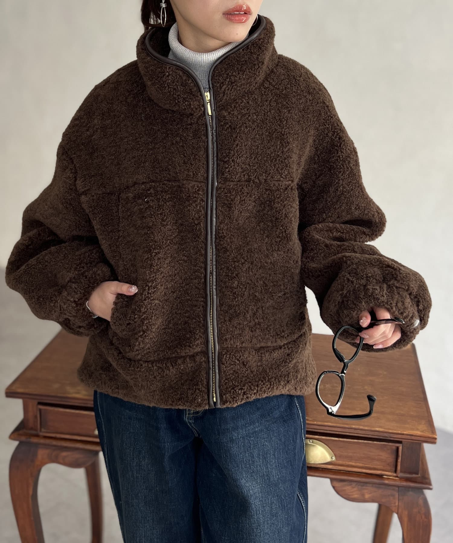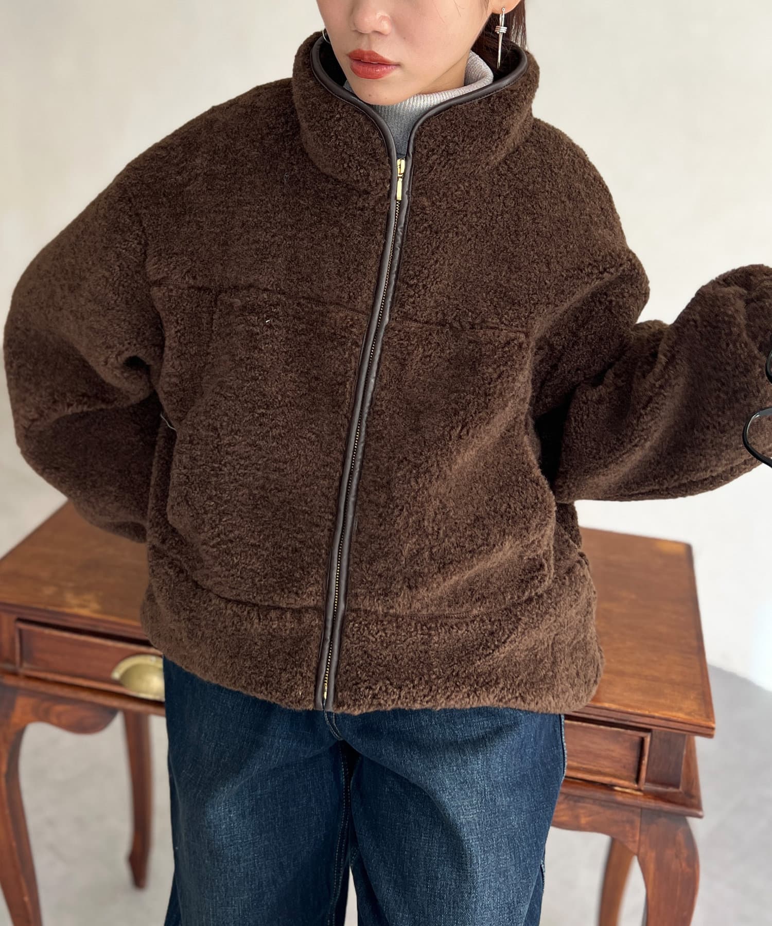 もこもことしたボアが柔らかい着心地のボアブルゾン。