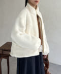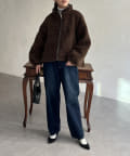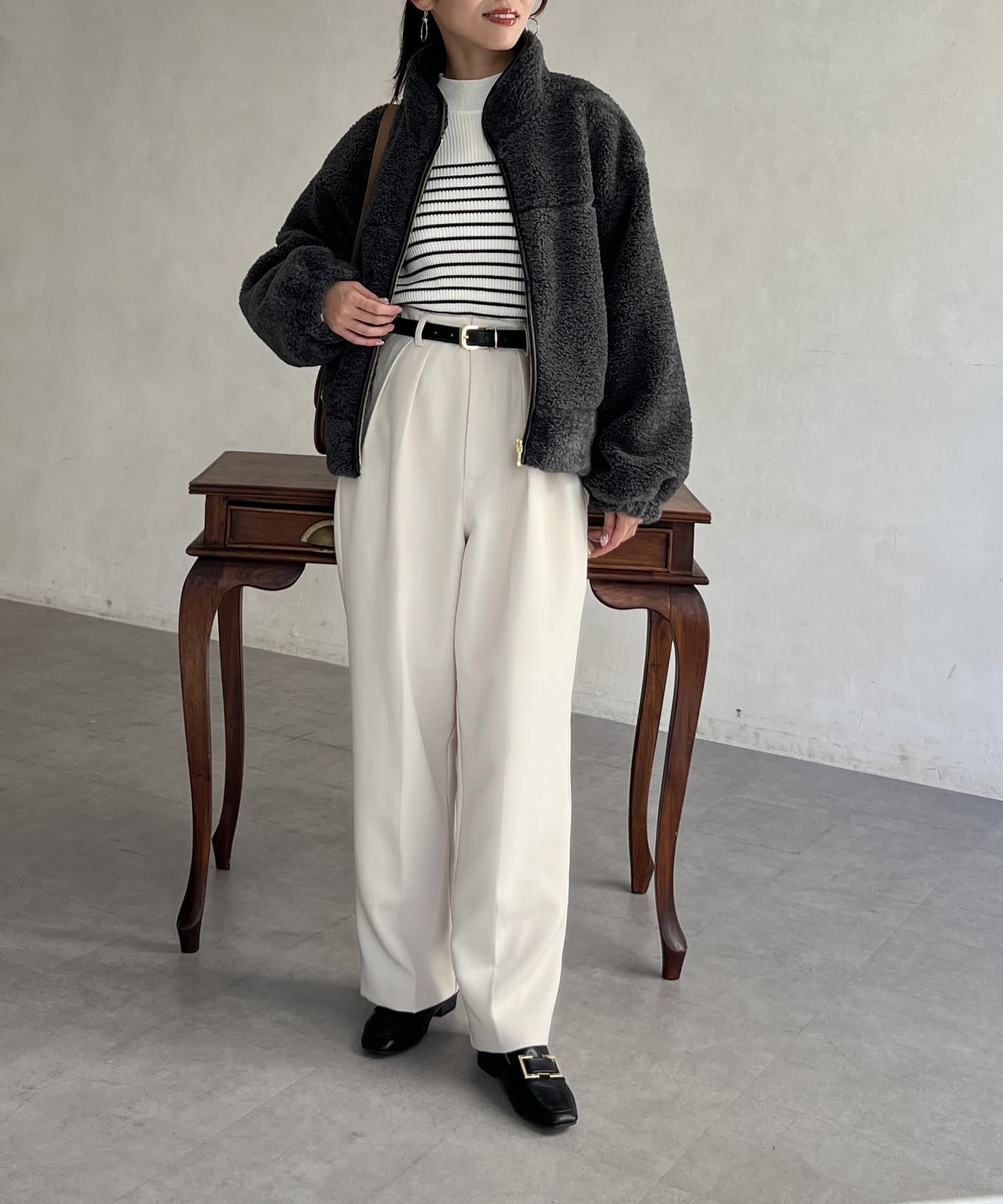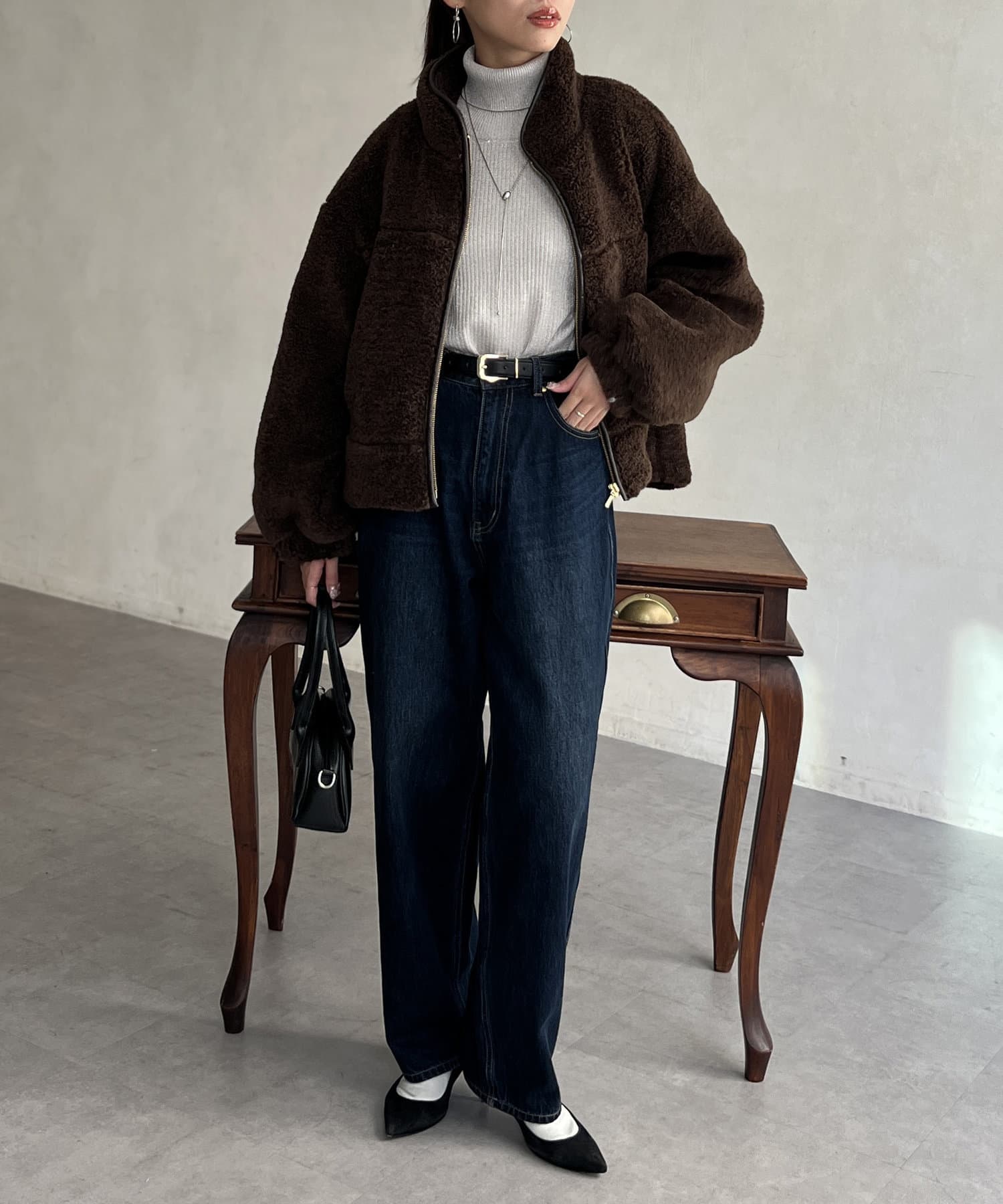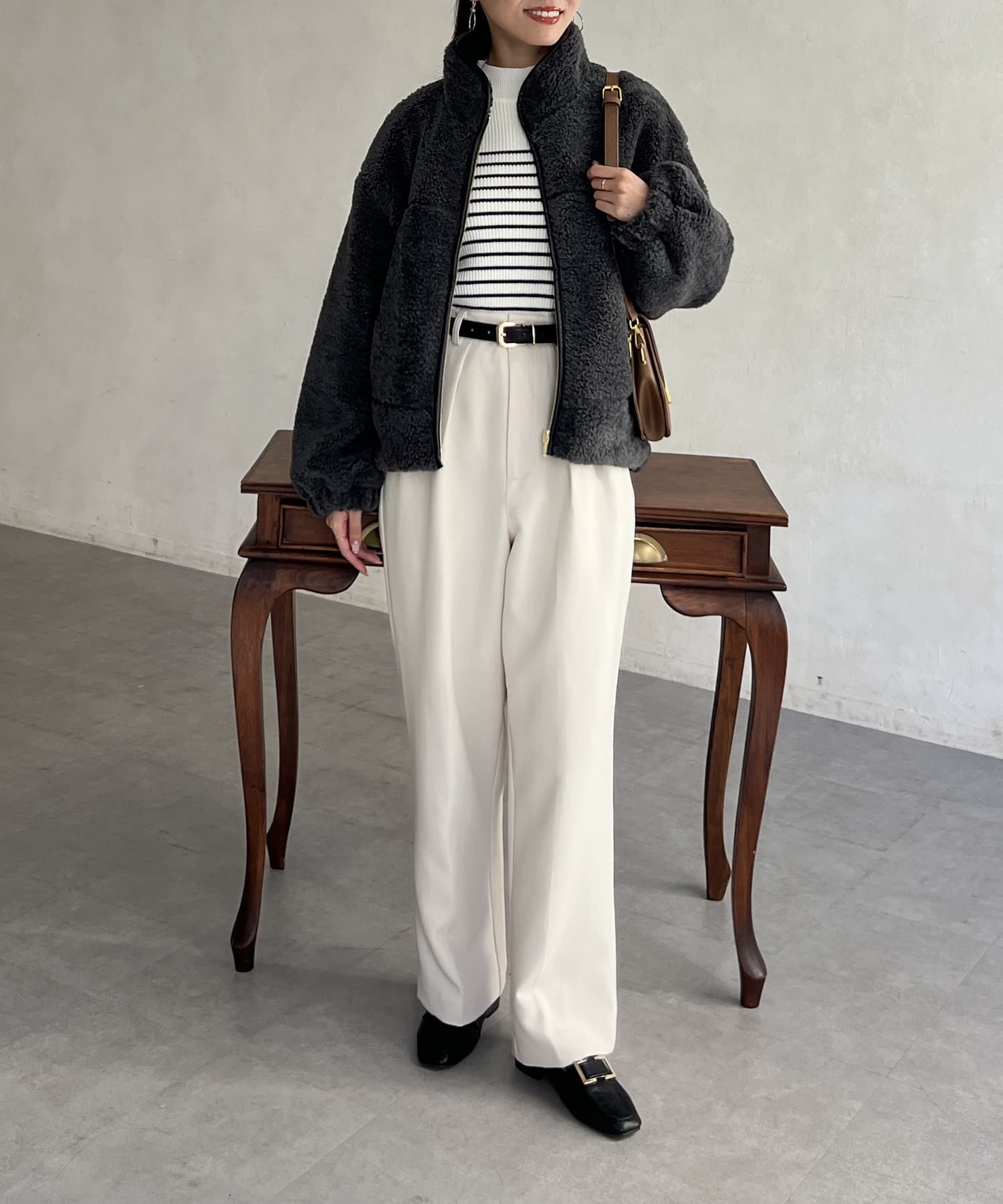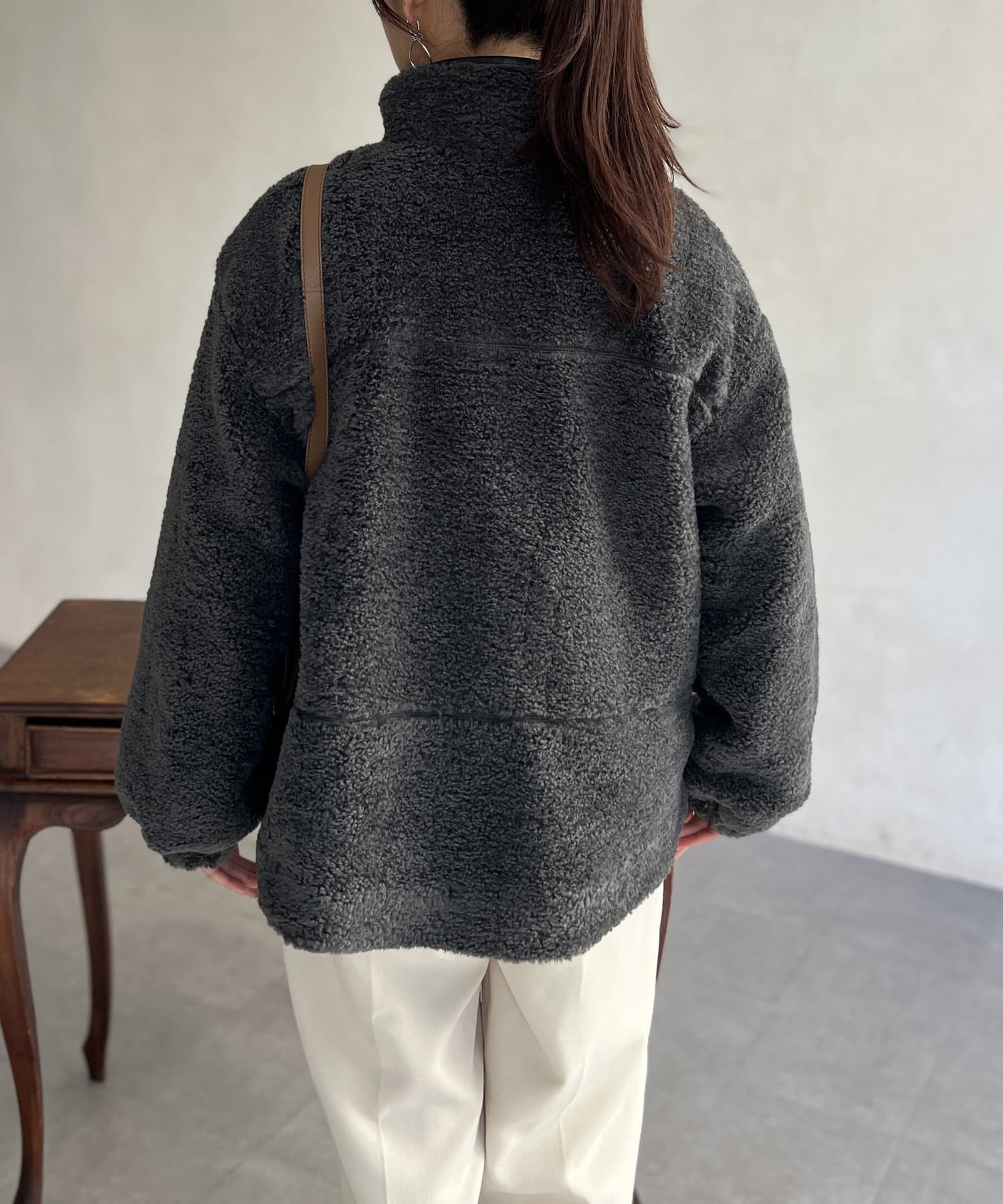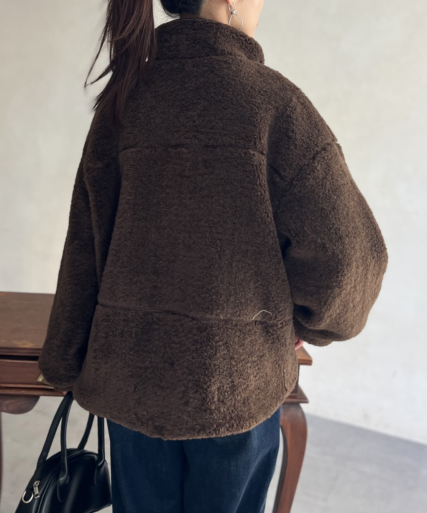 もこもことしたボアが柔らかい着心地のボアブルゾン。