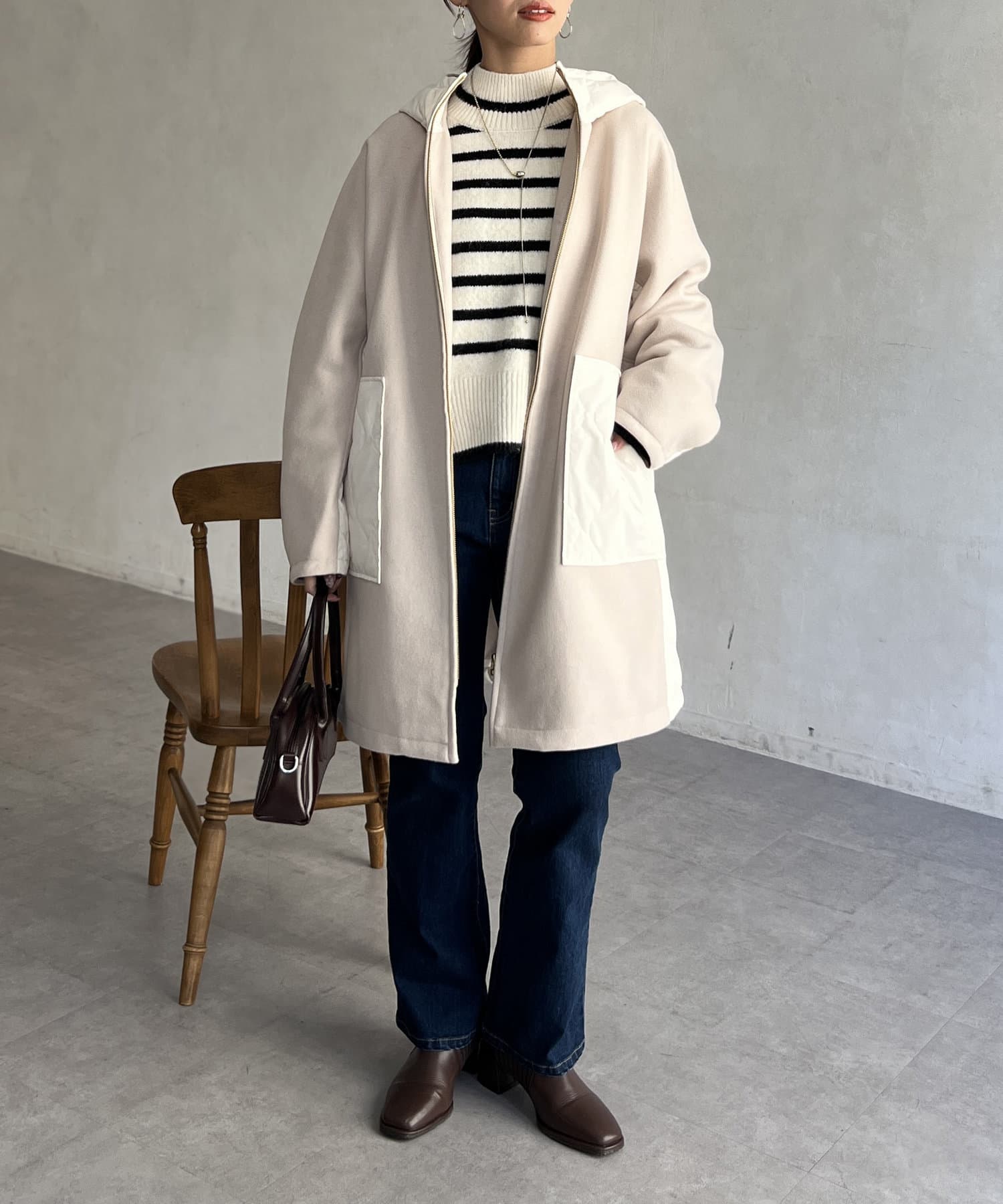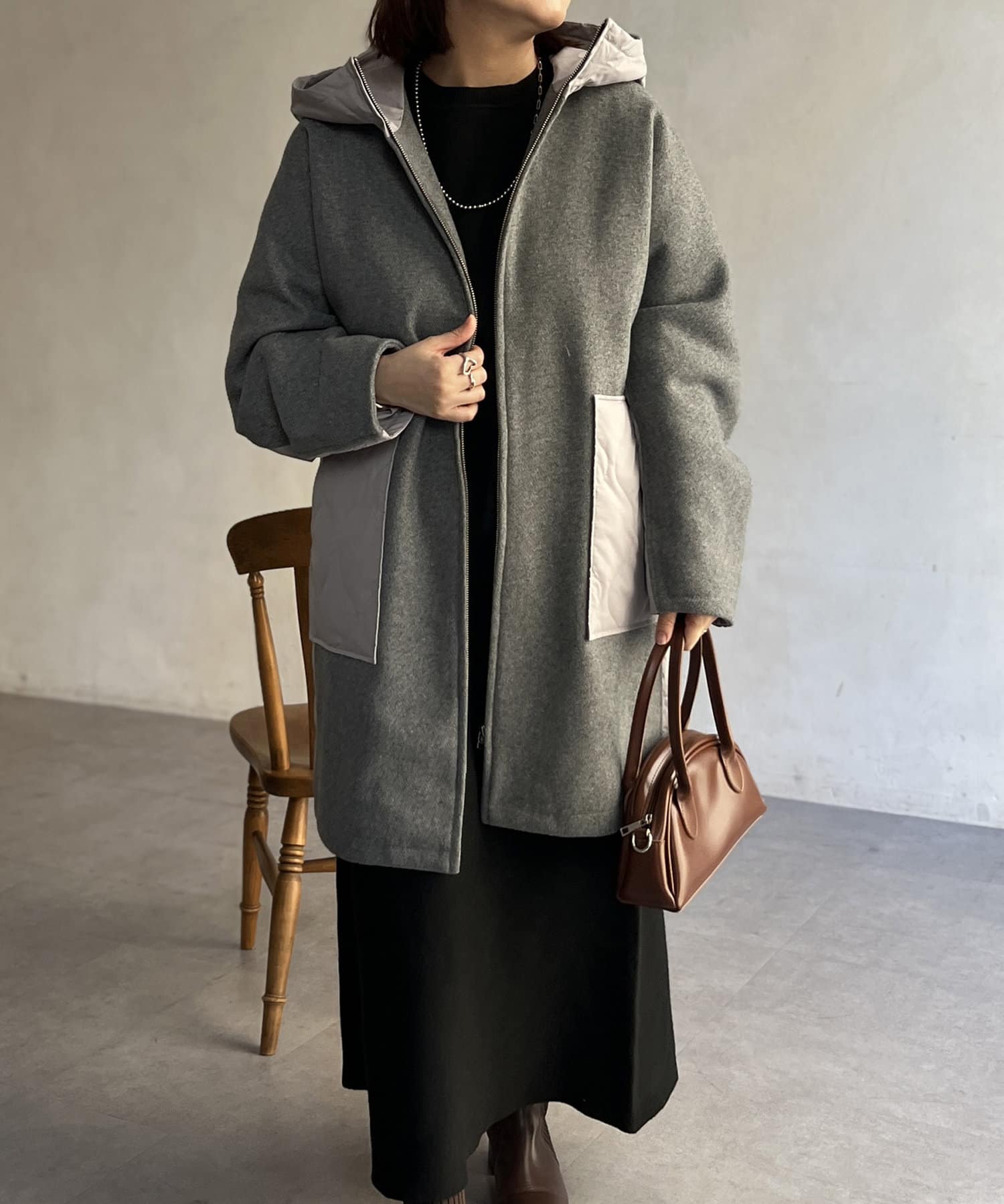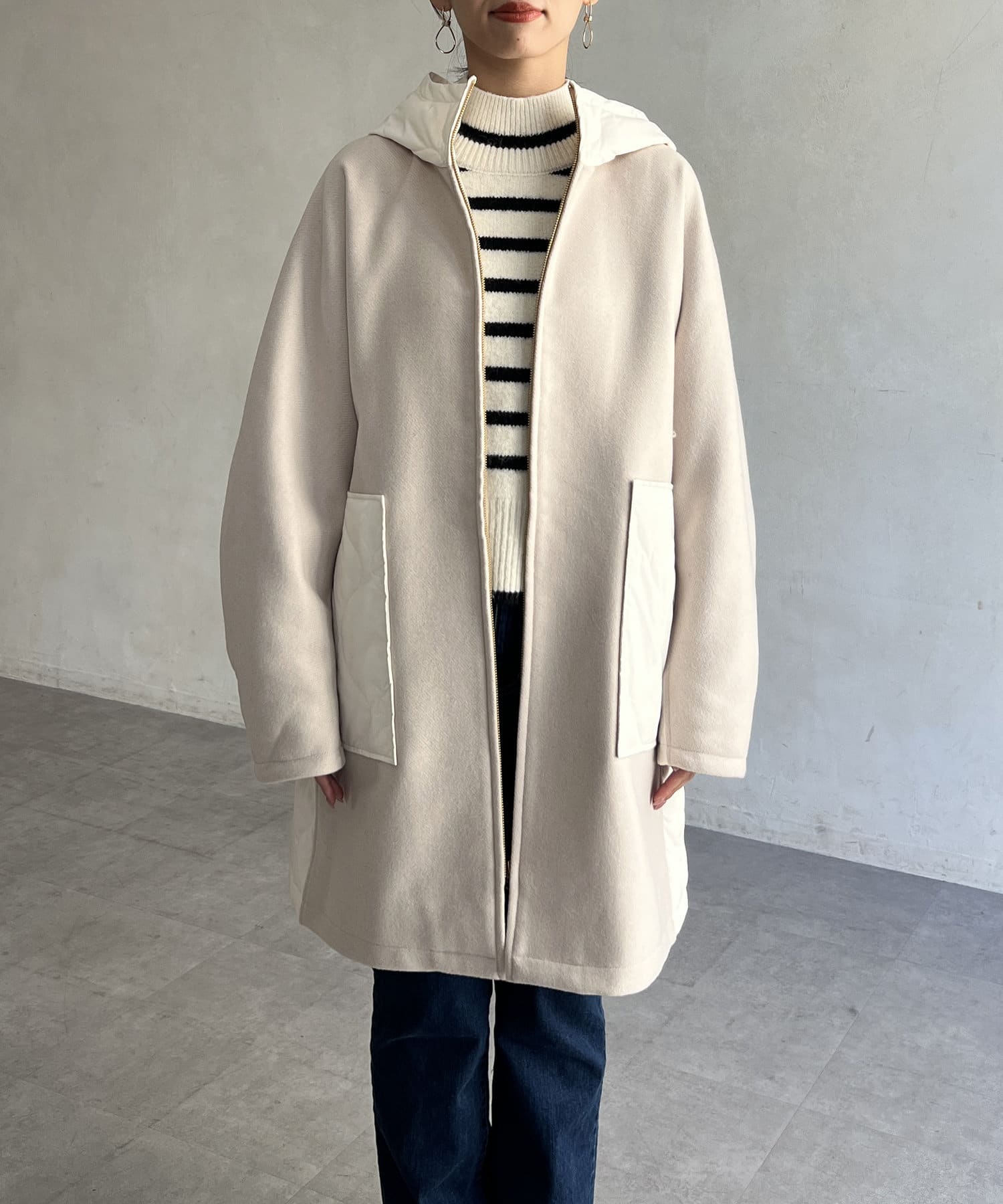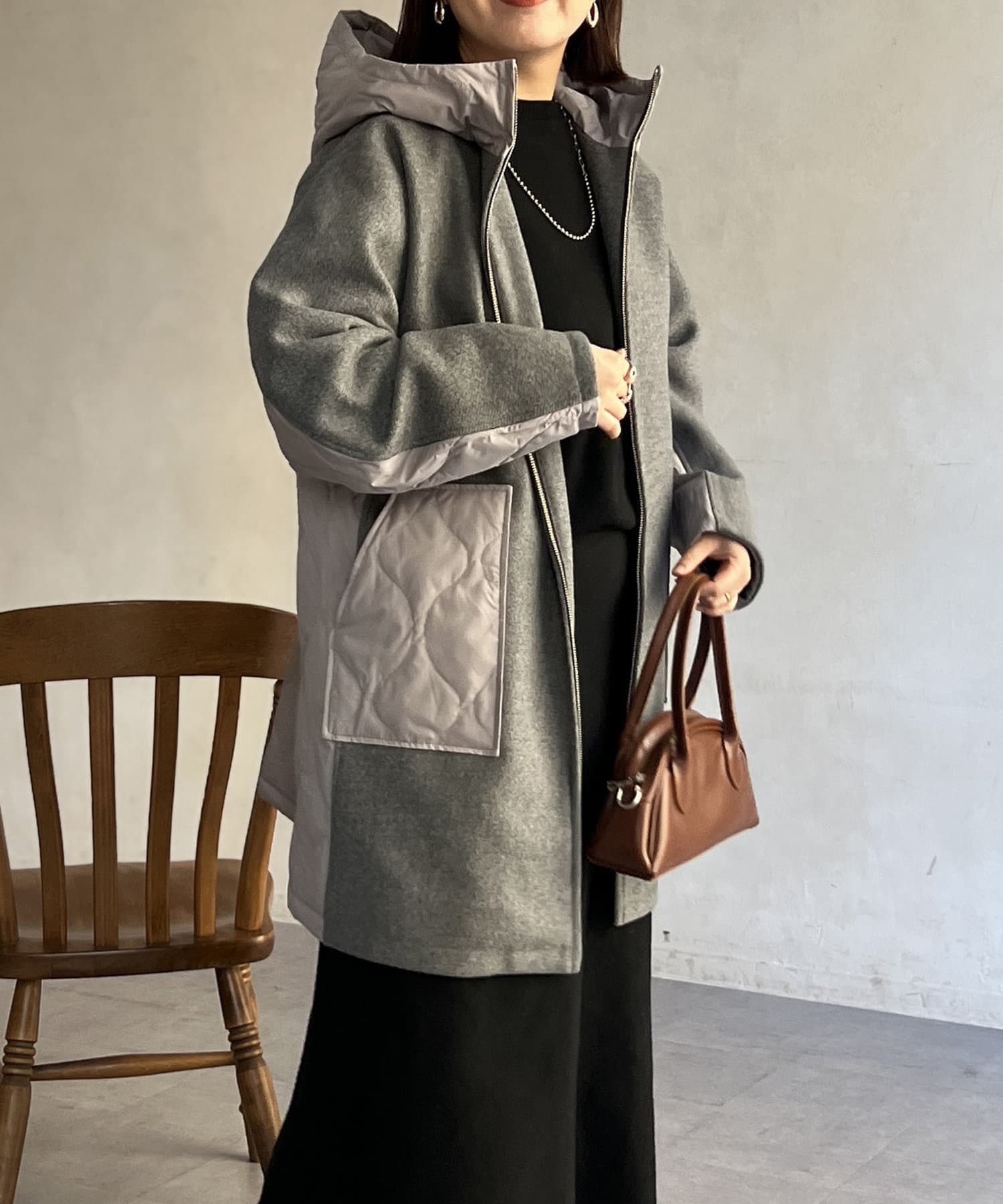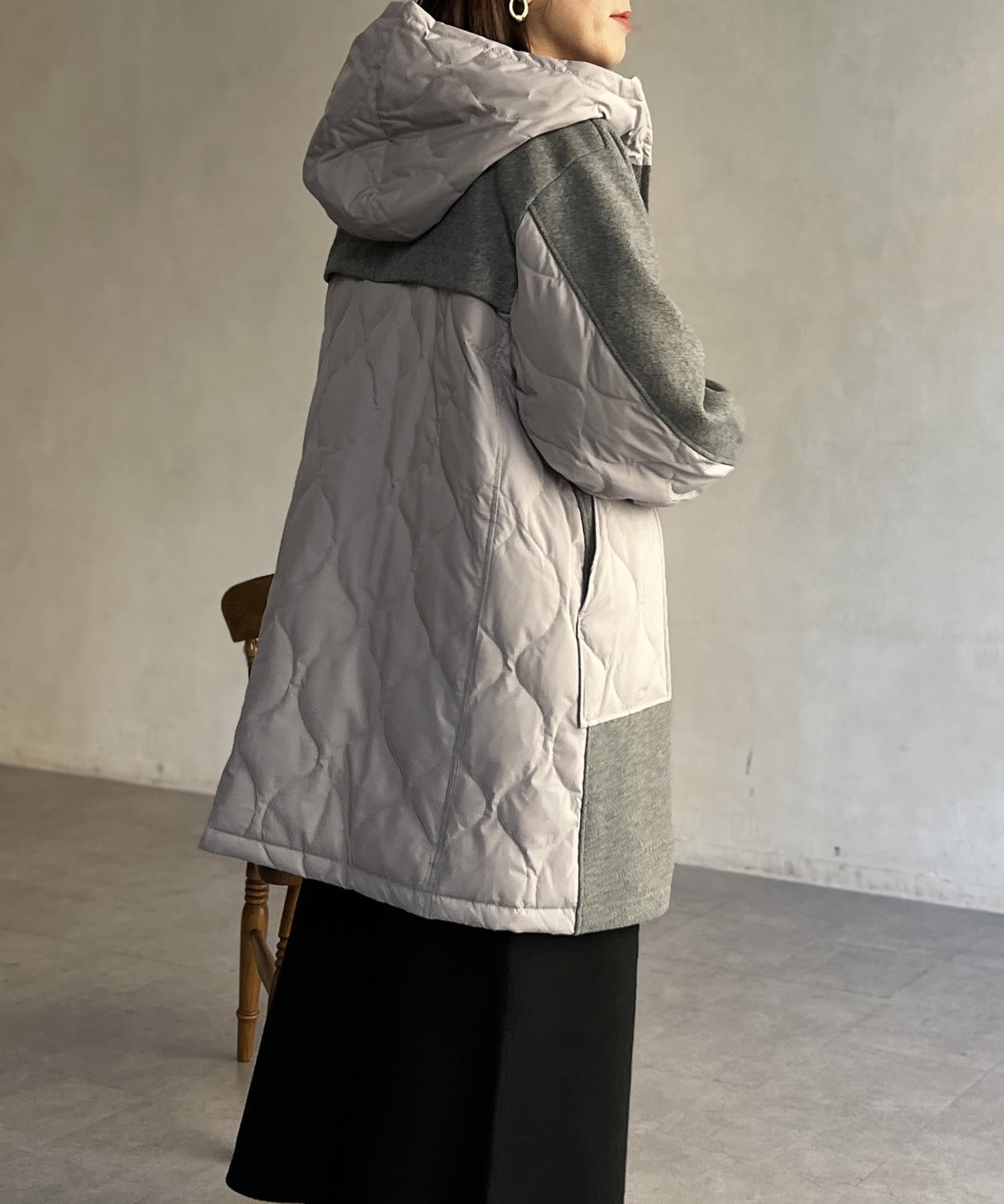 • Chez toi(シェトワ) ウール×ダウンキルティングフードコート