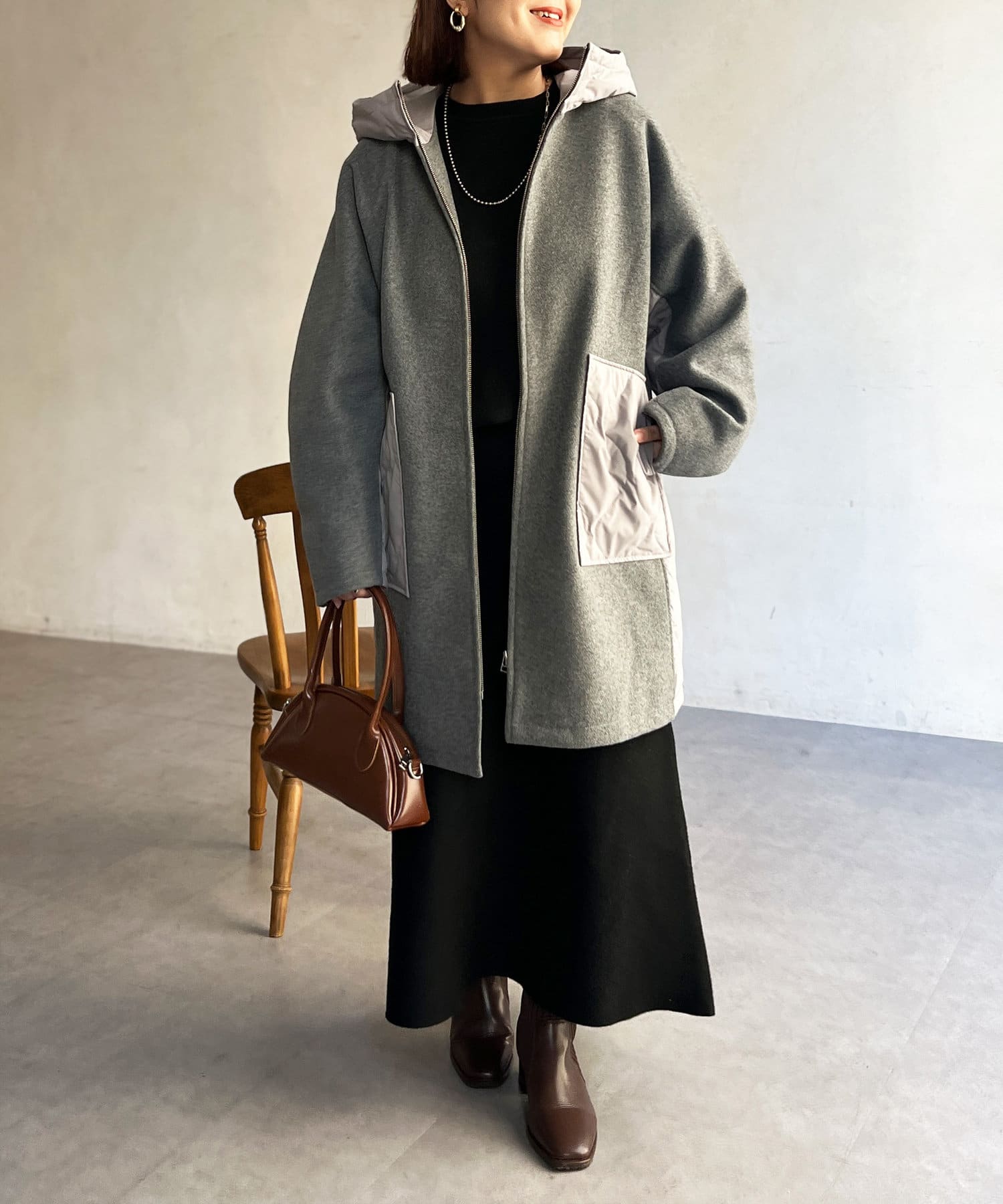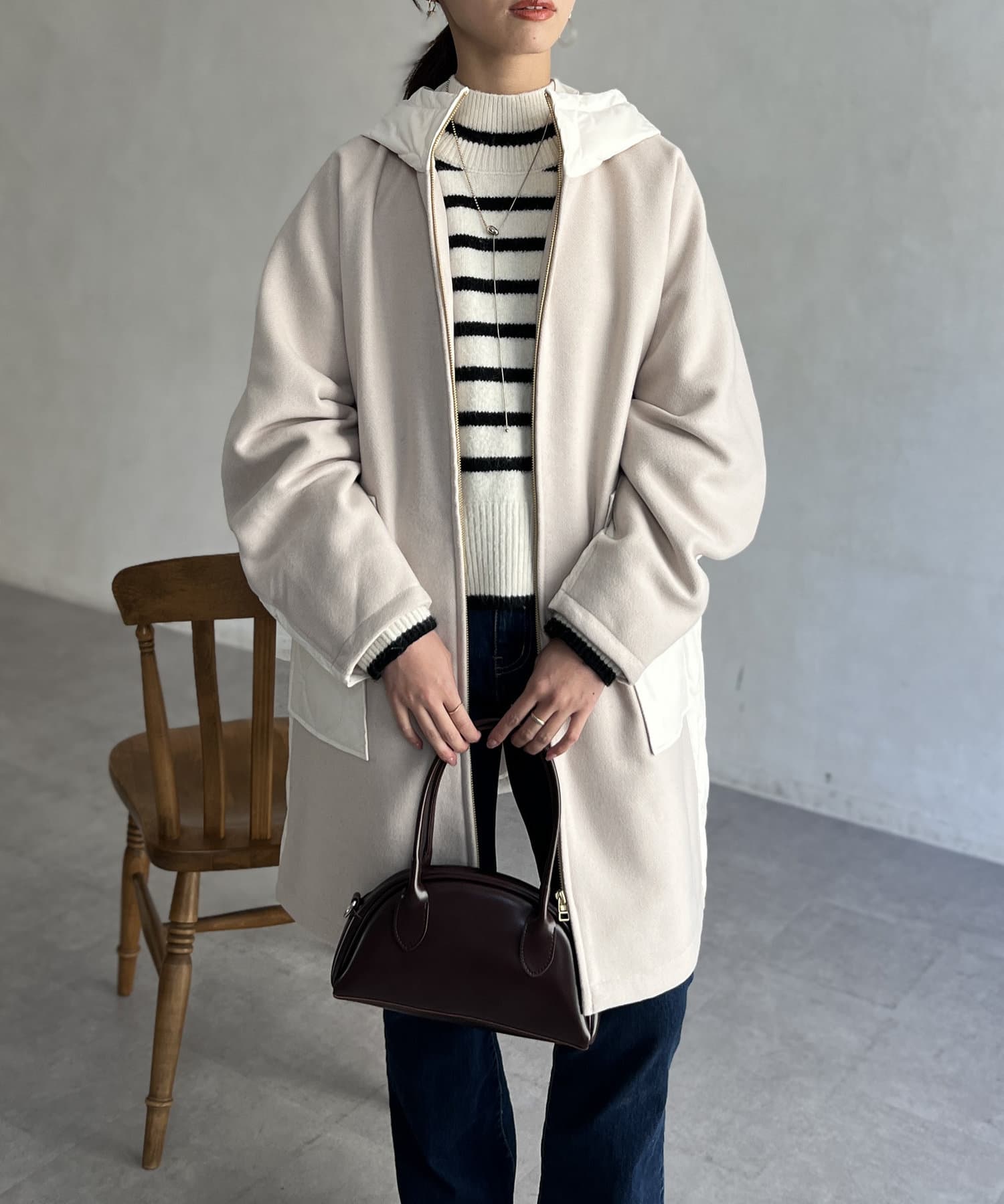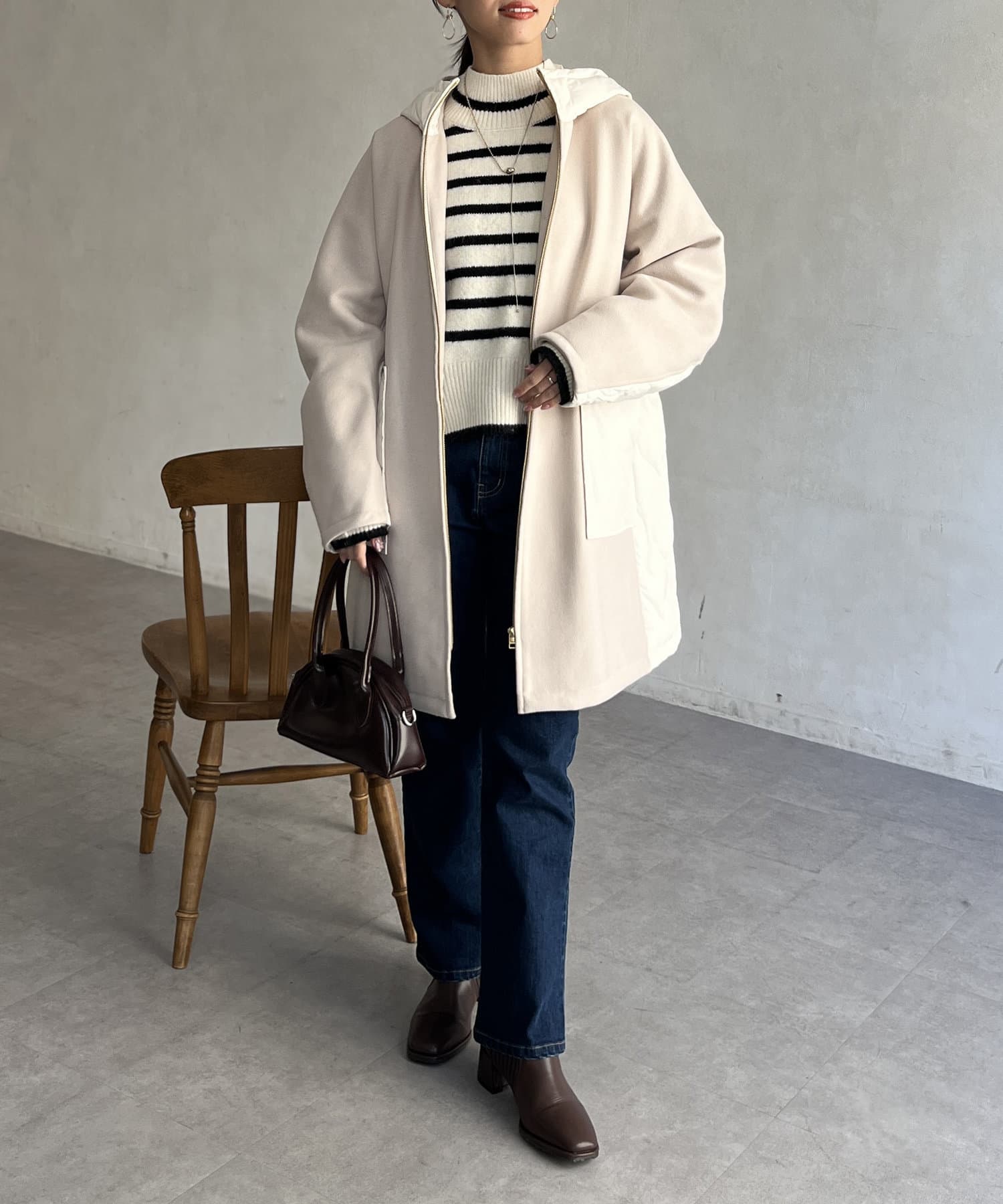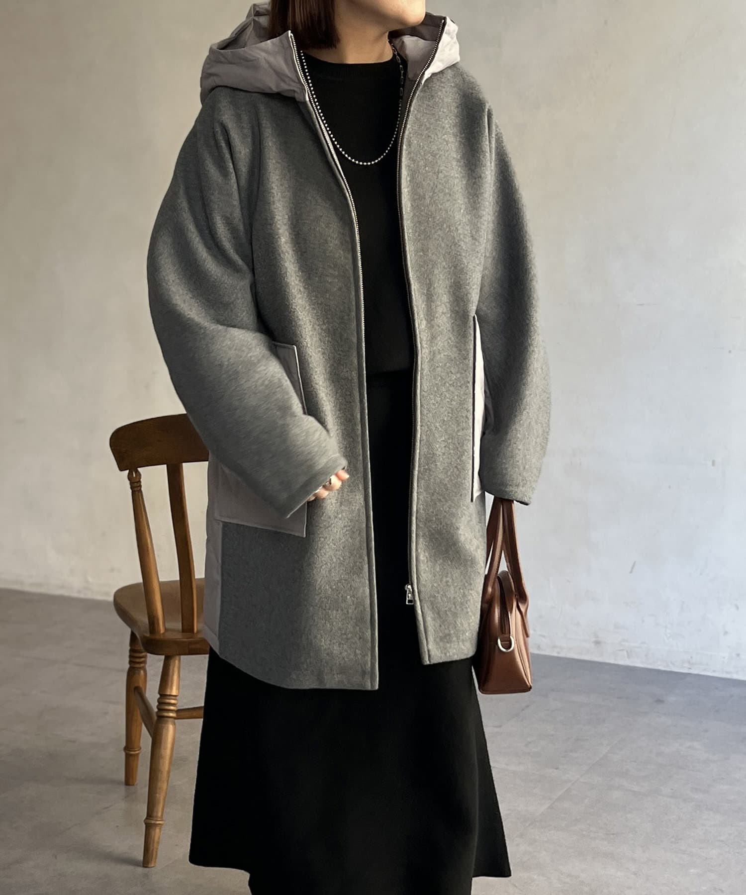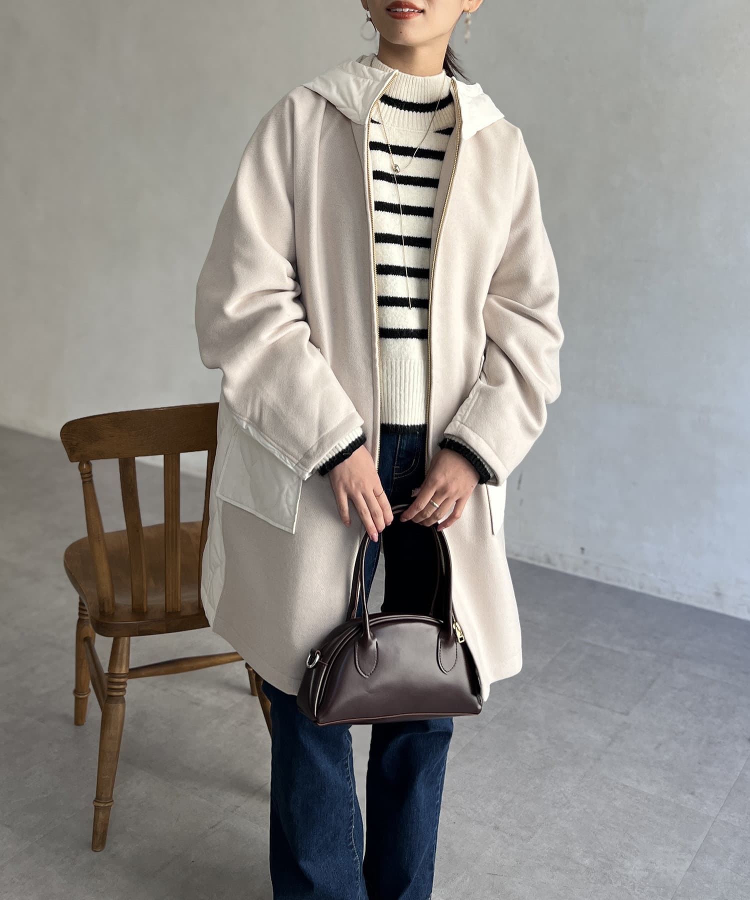 • Chez toi(シェトワ) ウール×ダウンキルティングフードコート