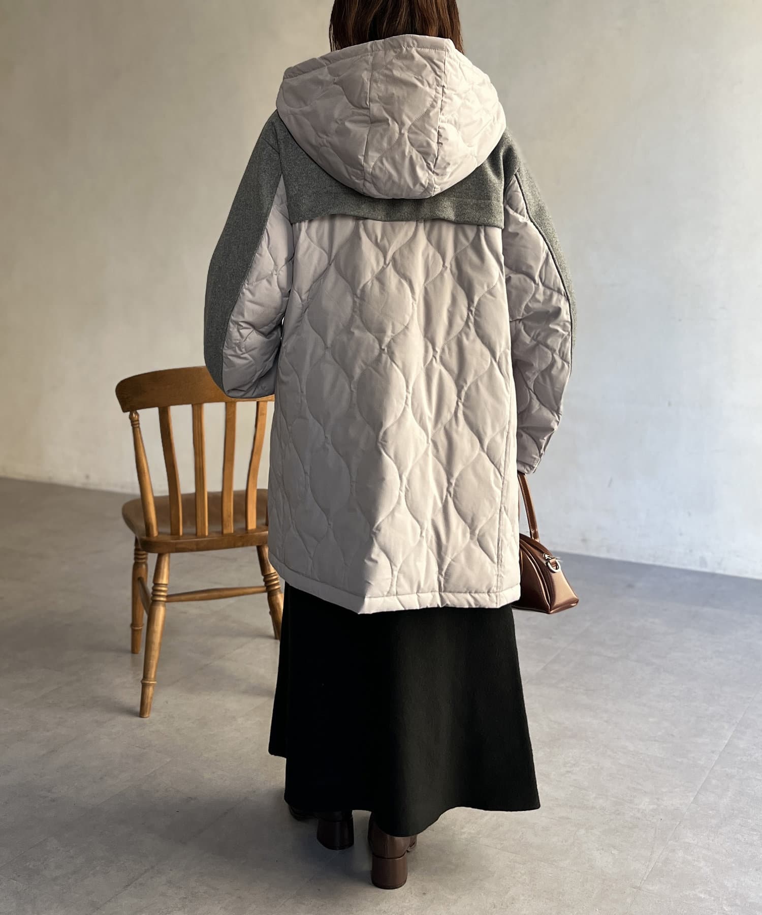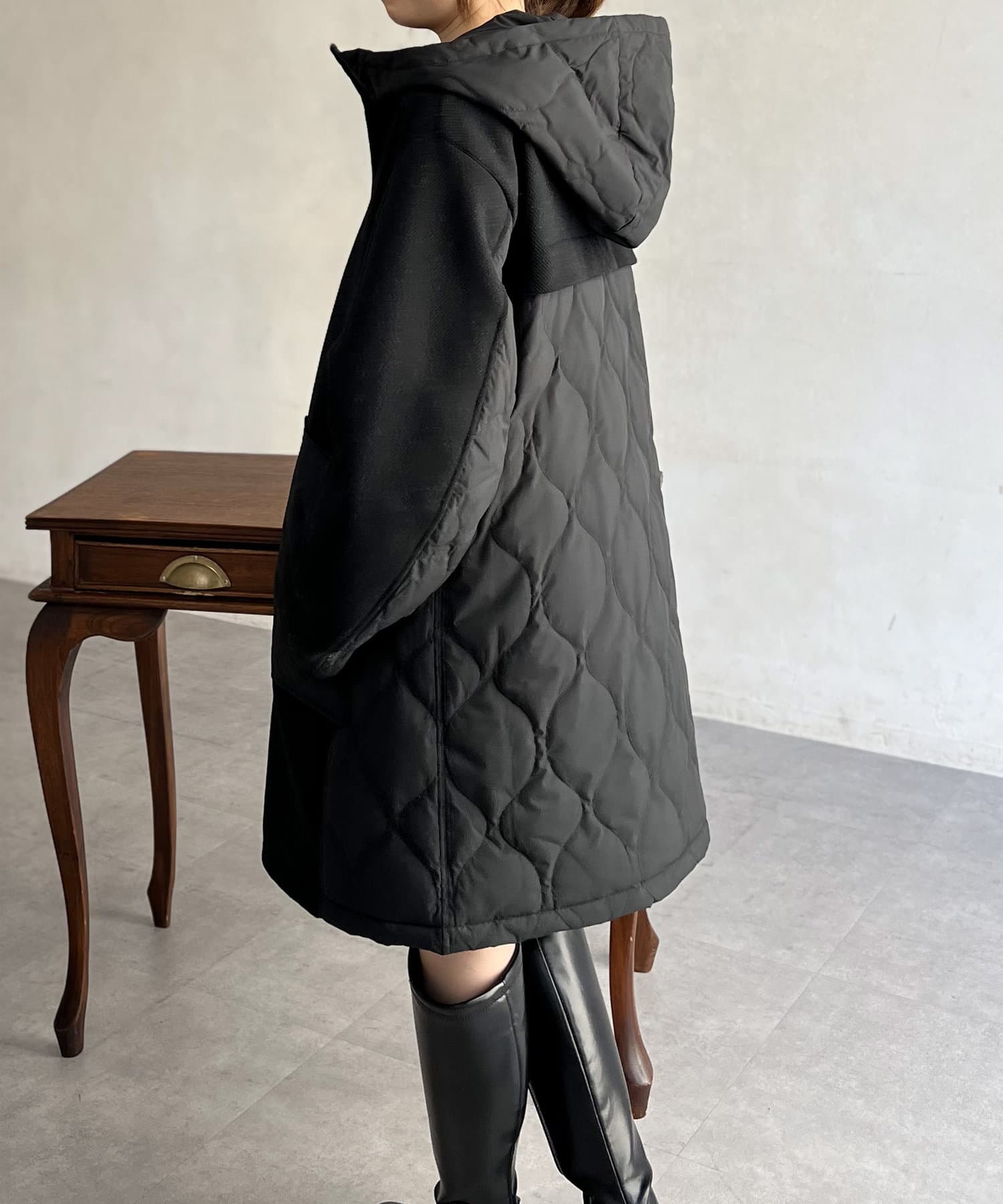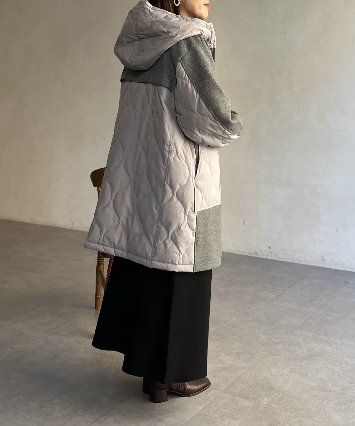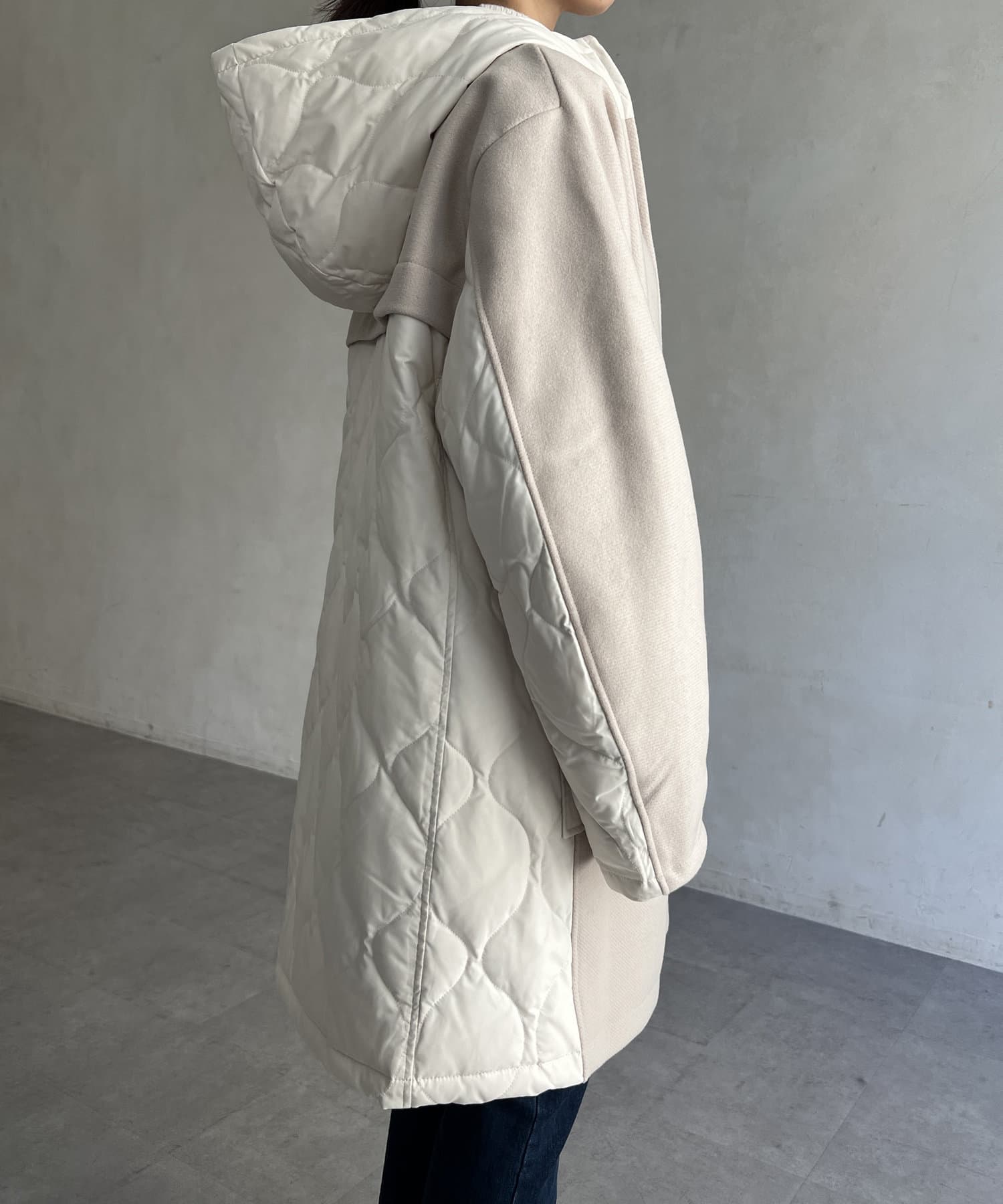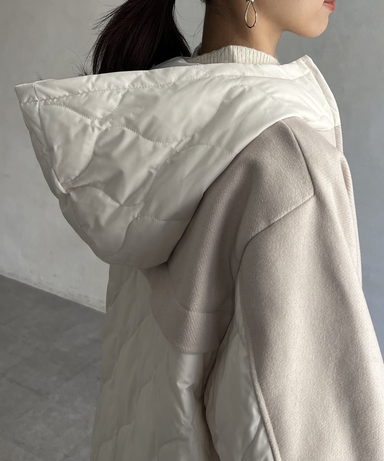 ウール×ダウンキルティングフードコート