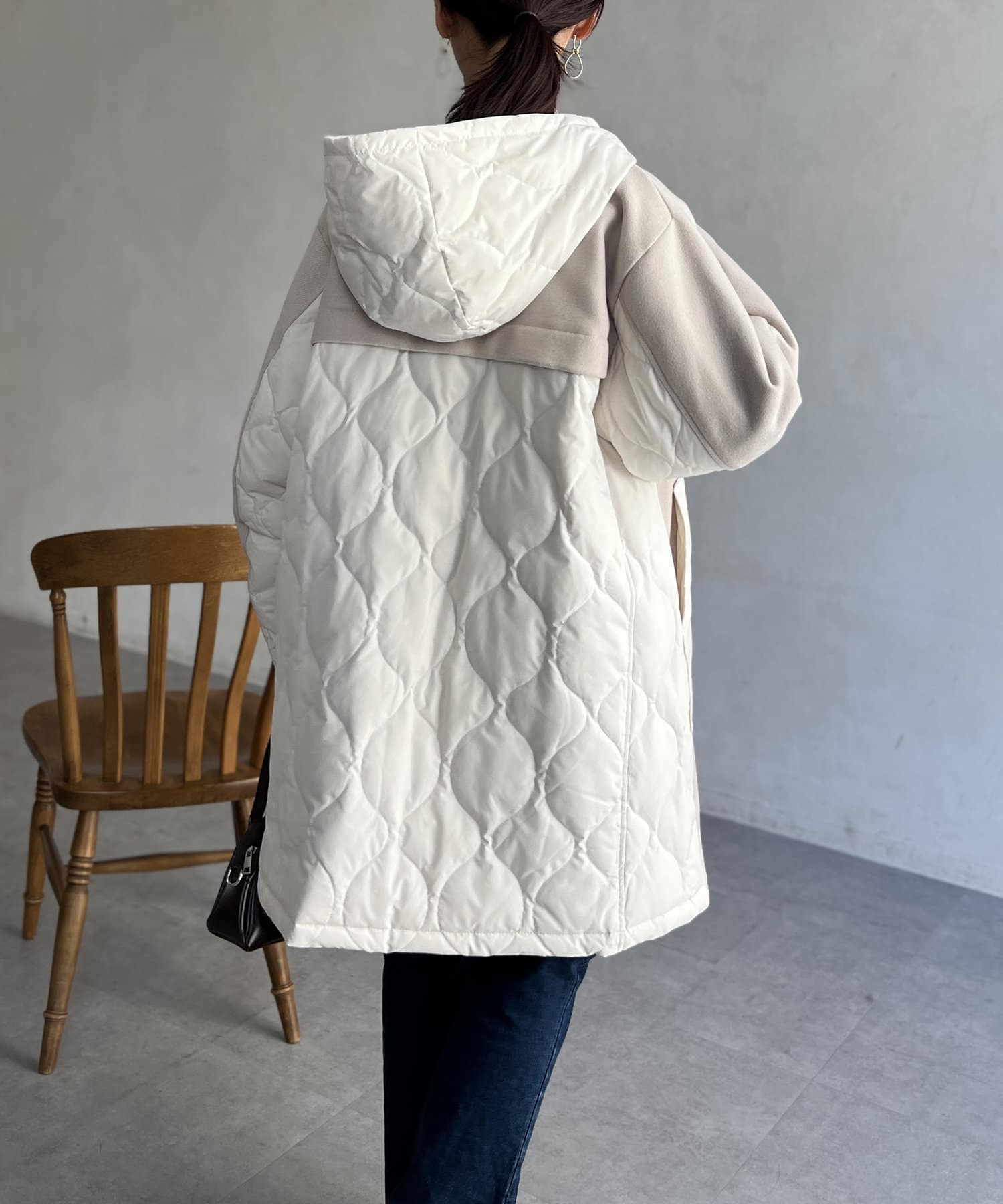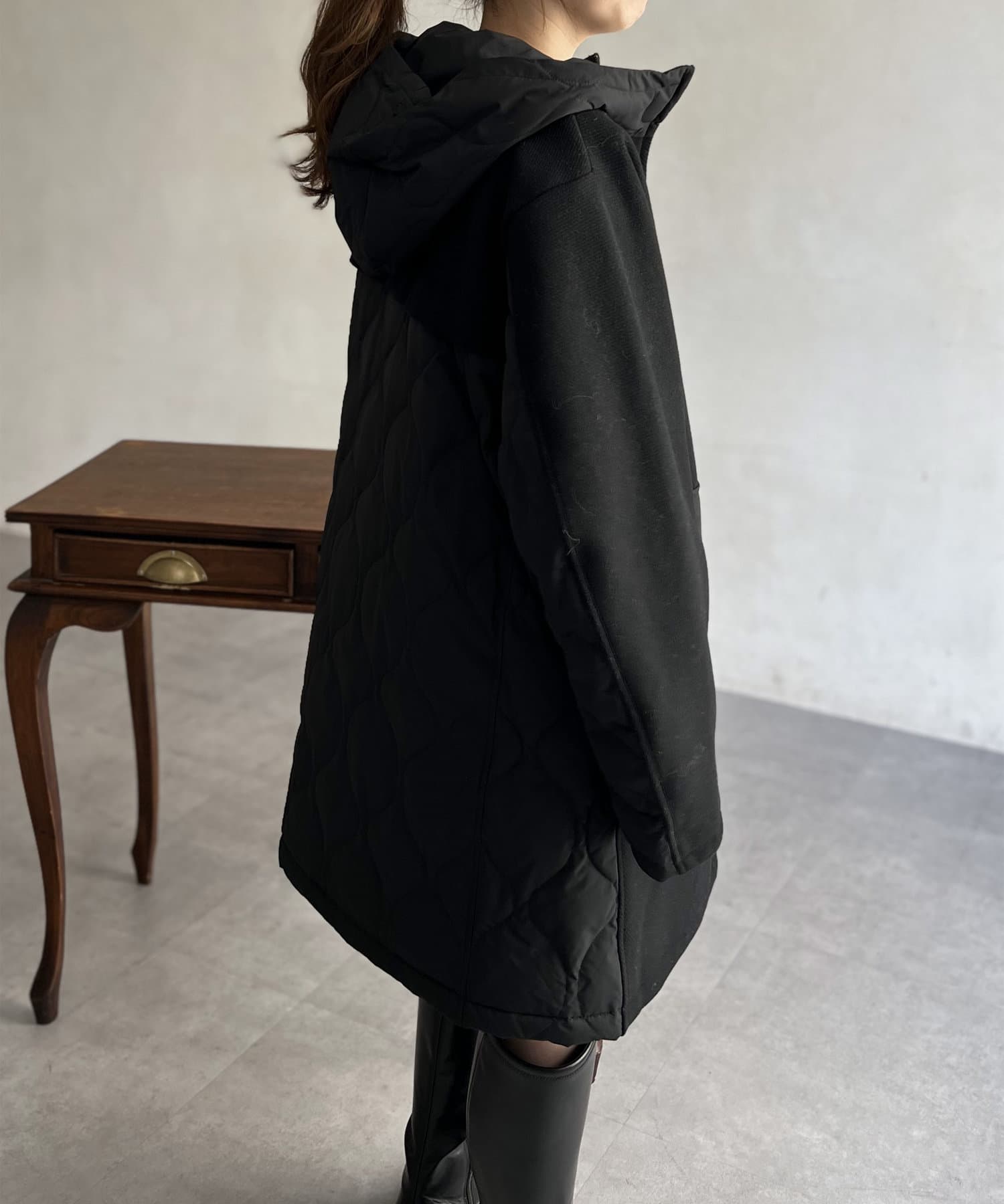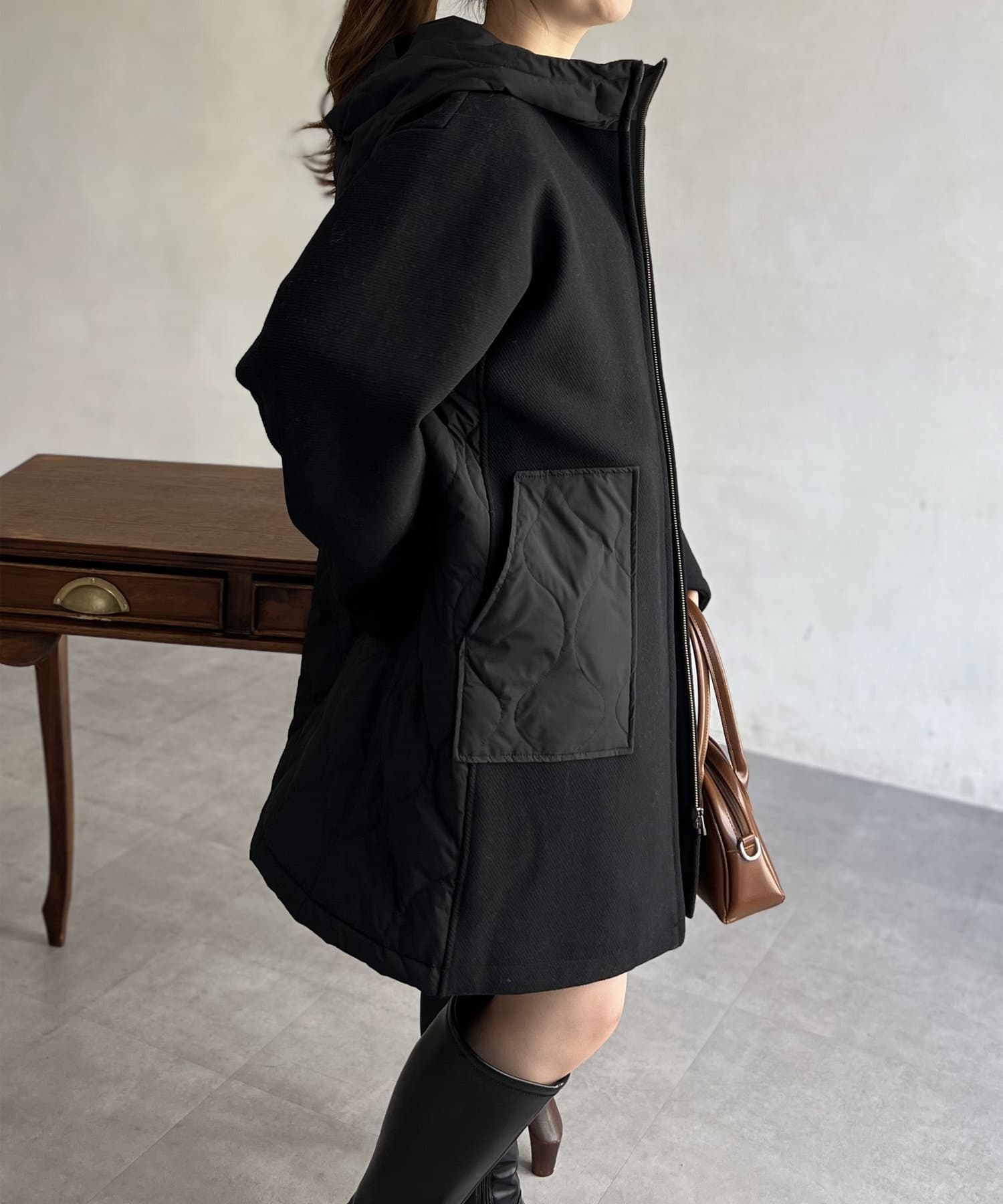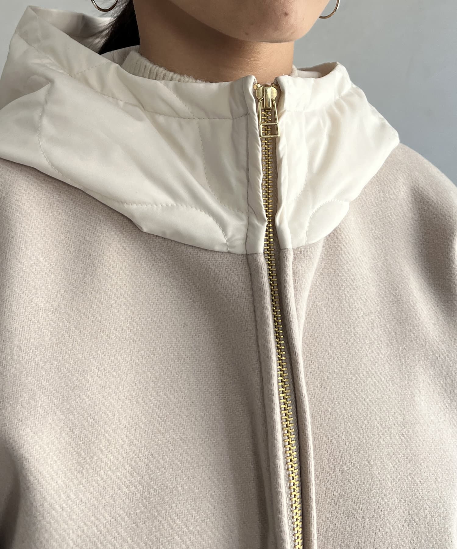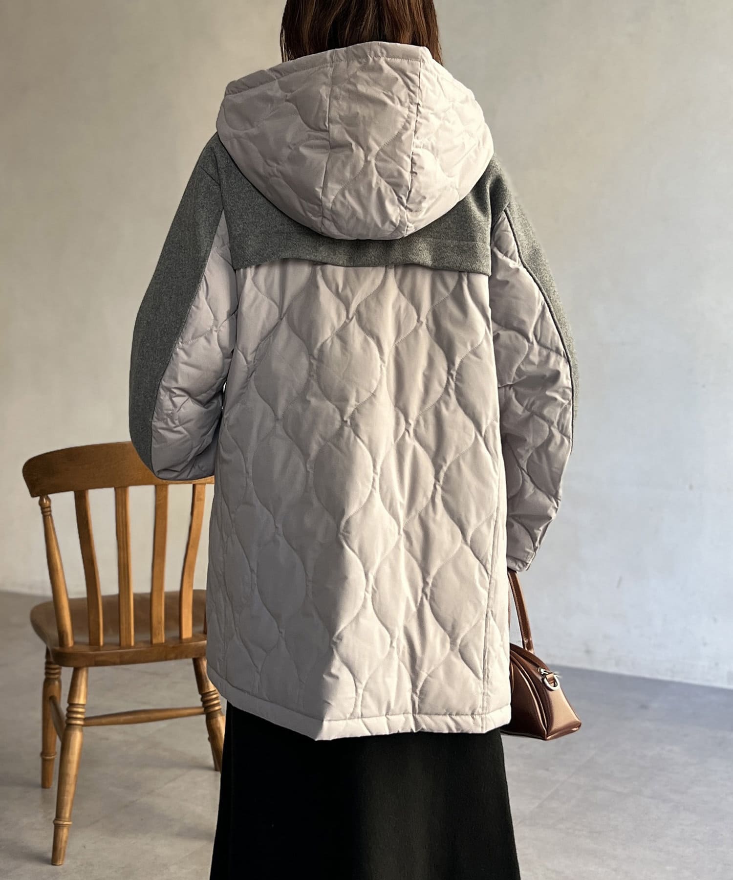 ウール×ダウンキルティングフードコート