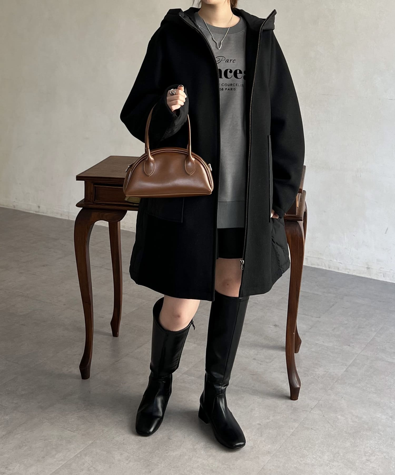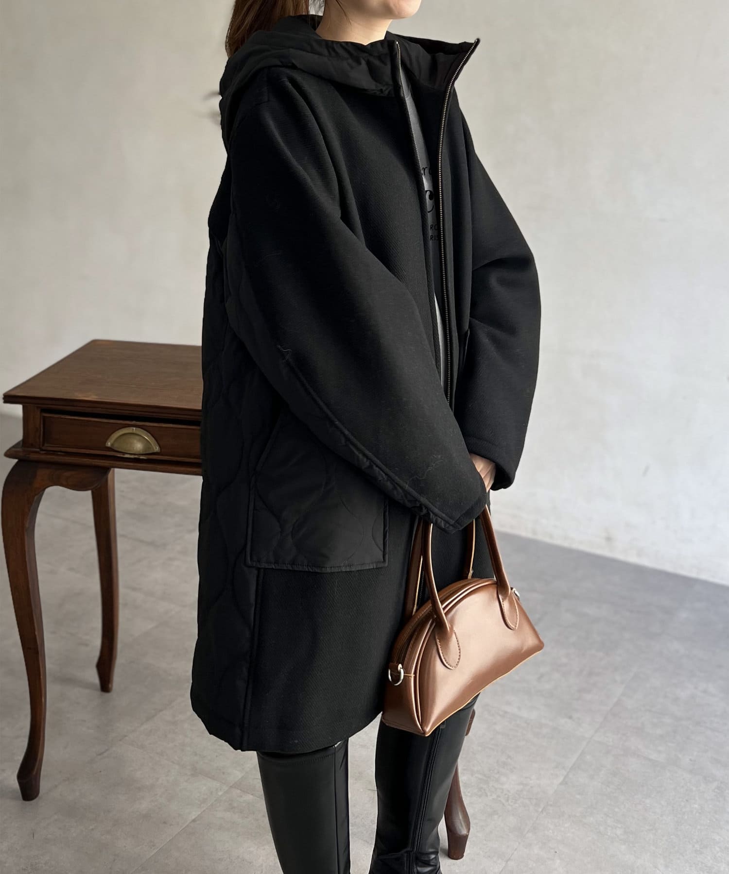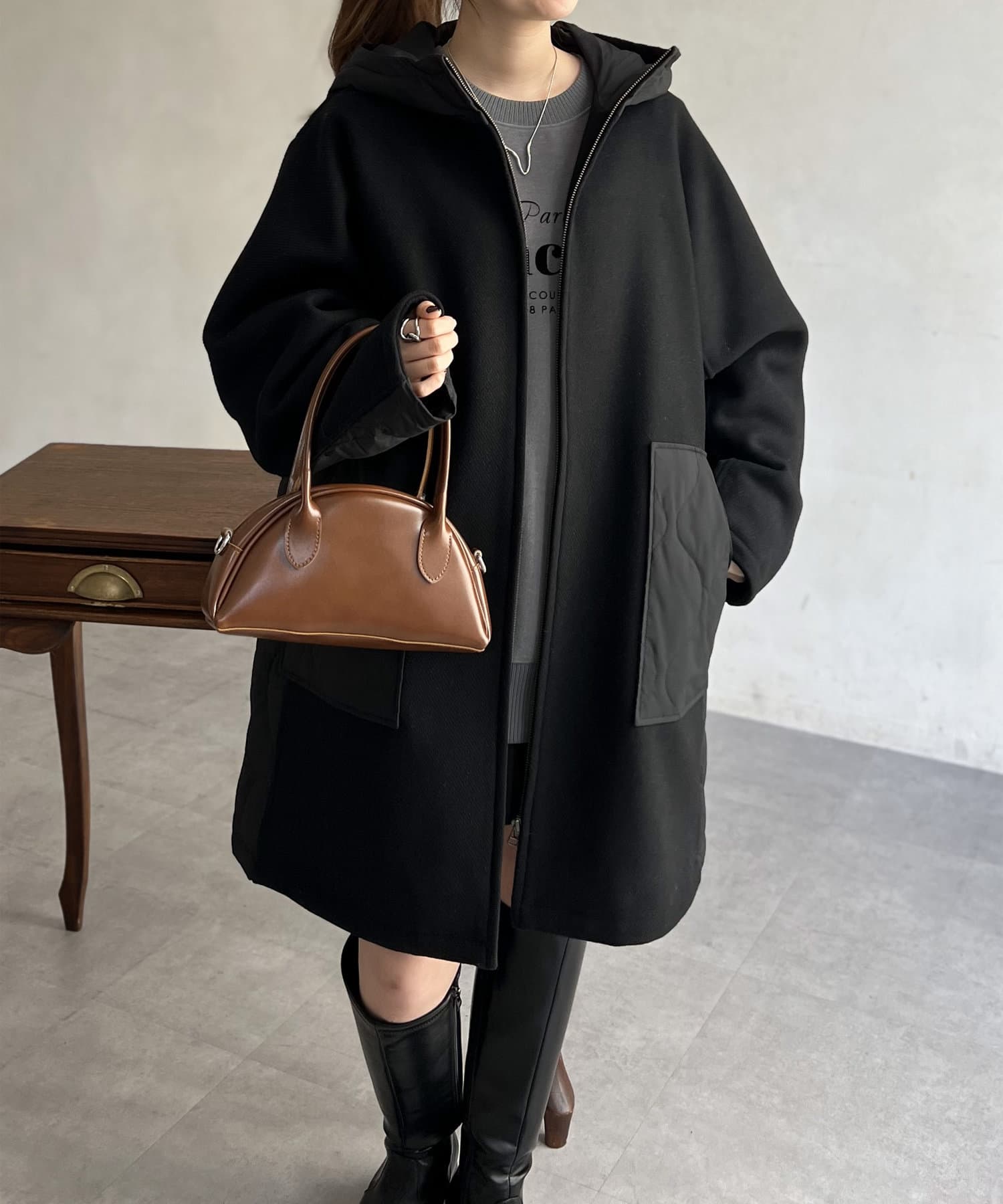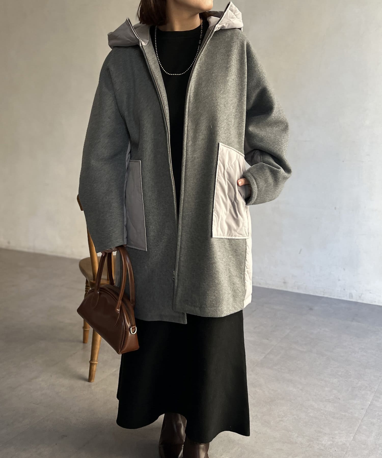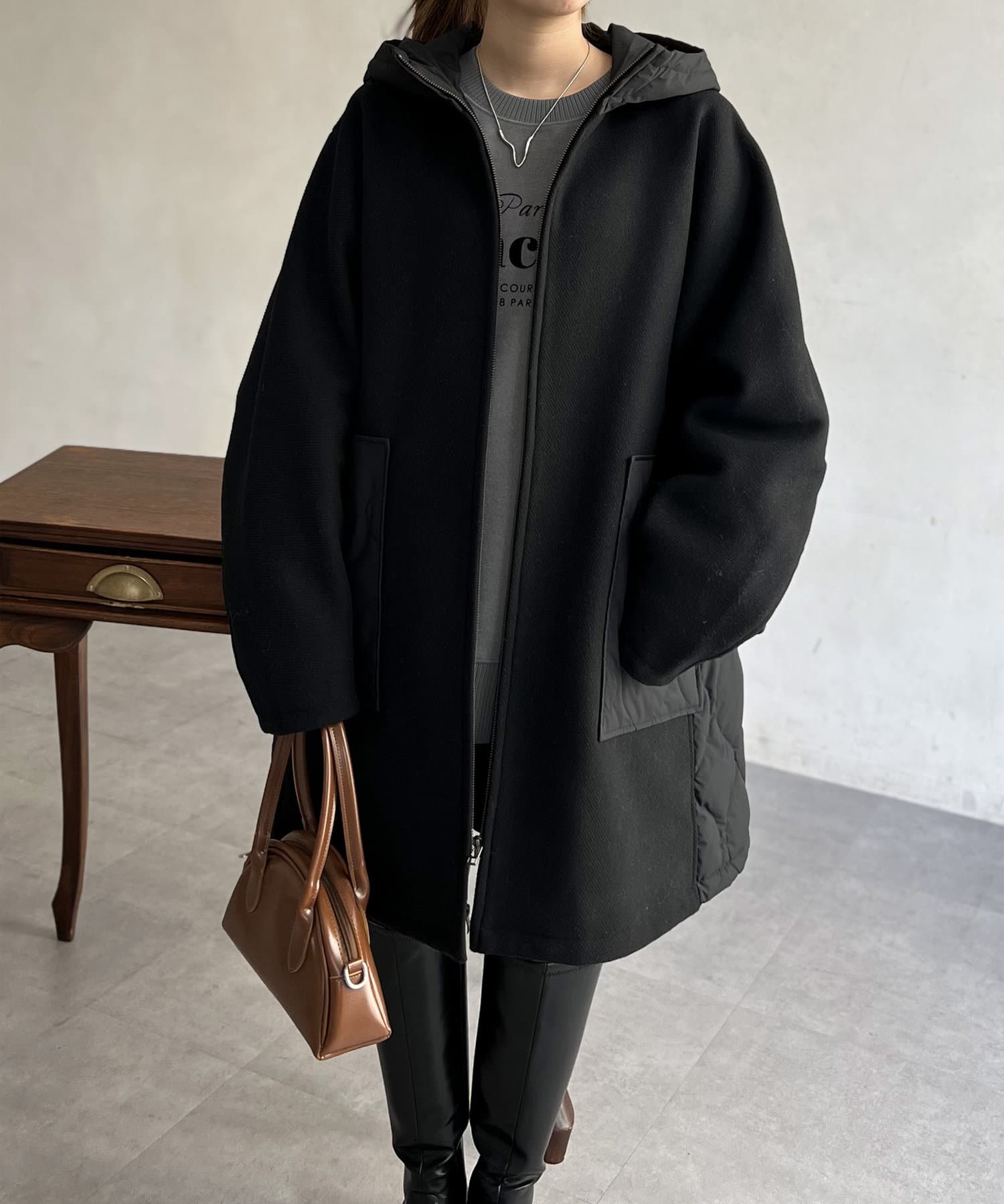 ウール×ダウンキルティングフードコート