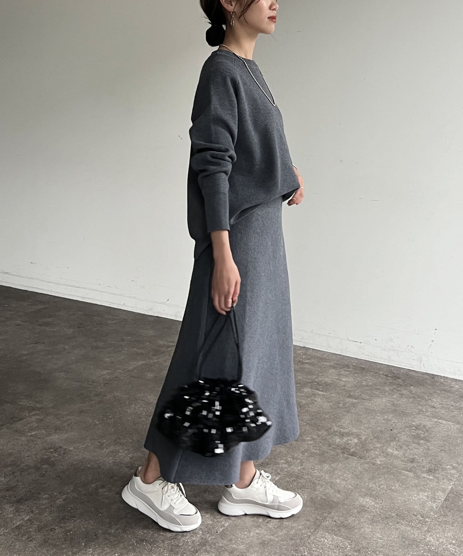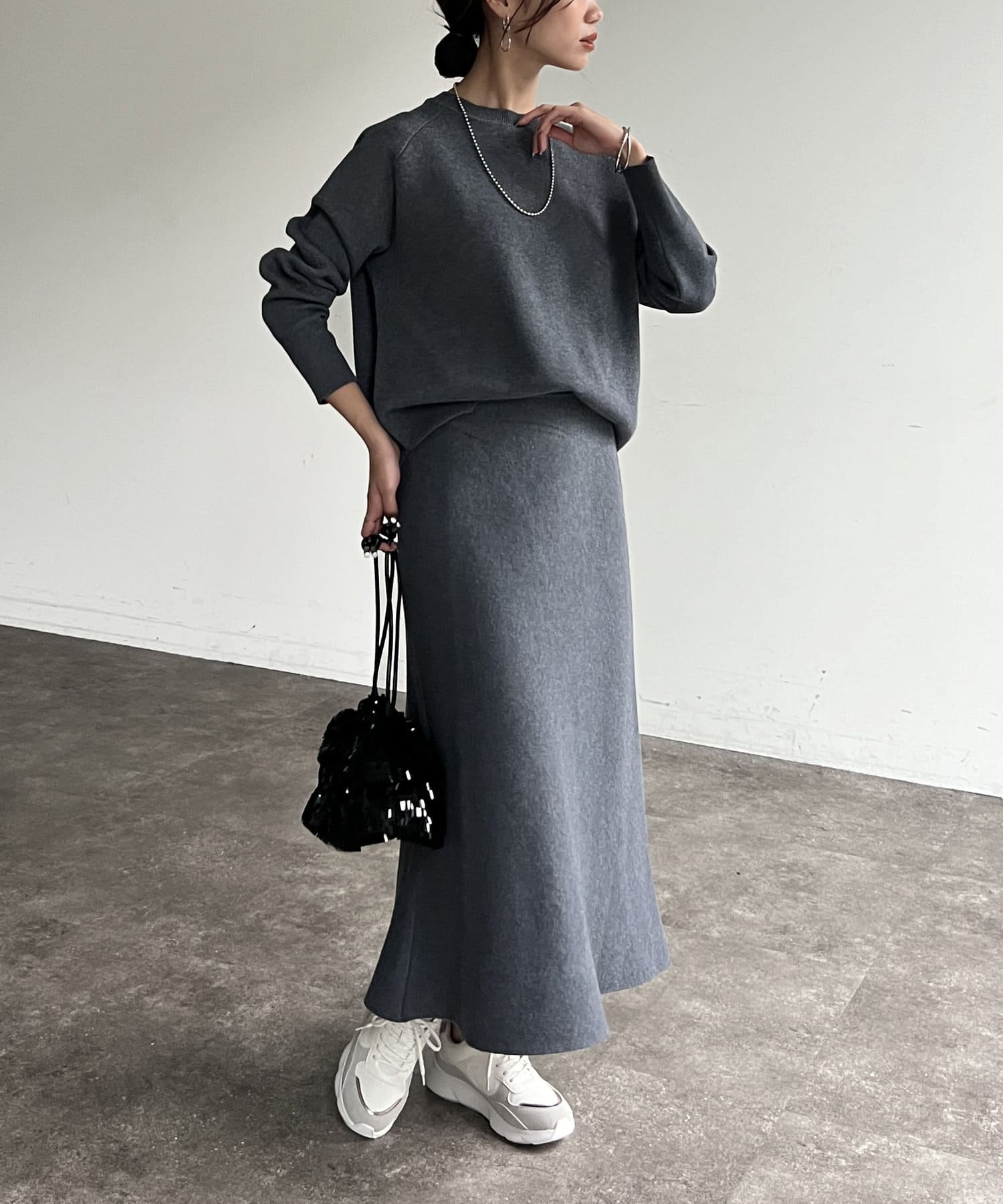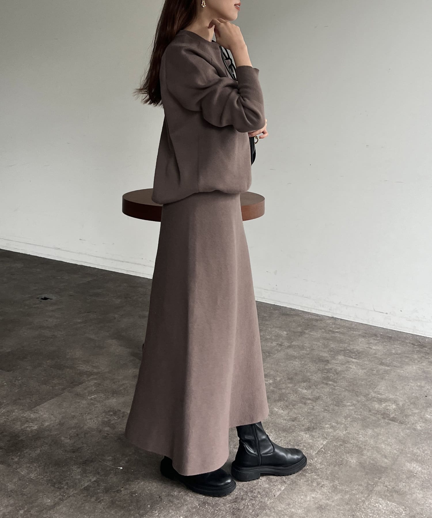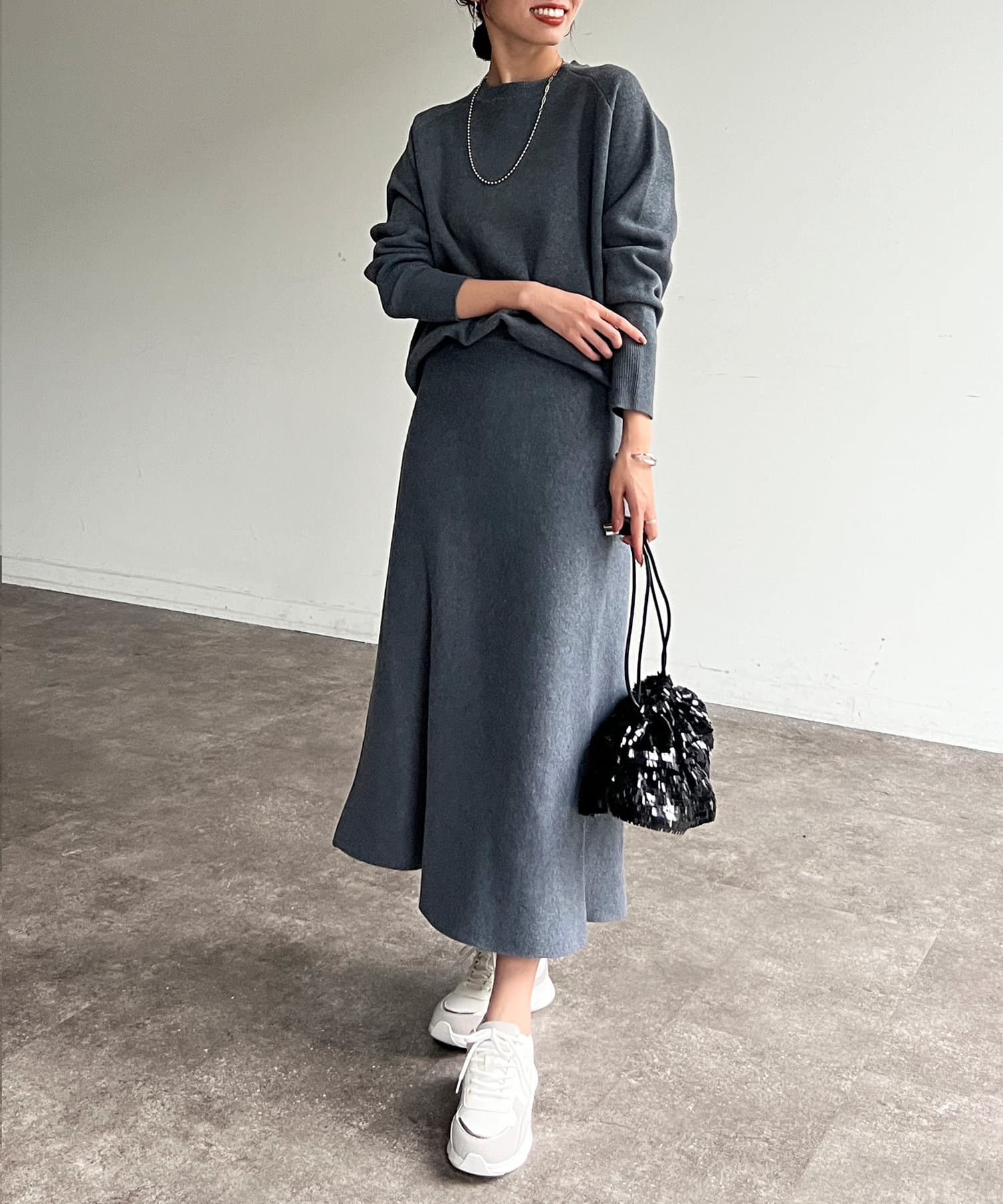 ニットのトップス、スカートのセットアップになったお得なアイテム♪