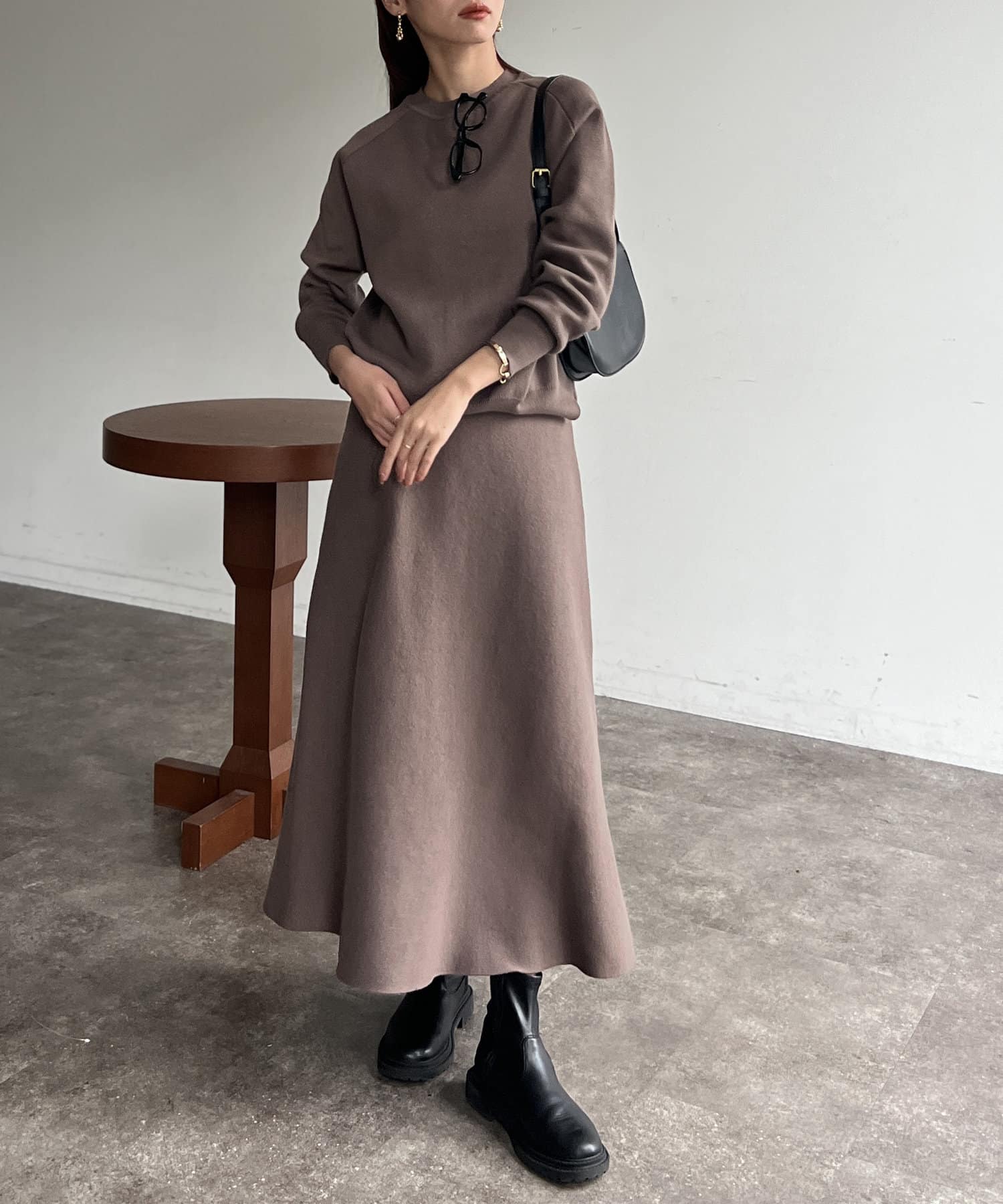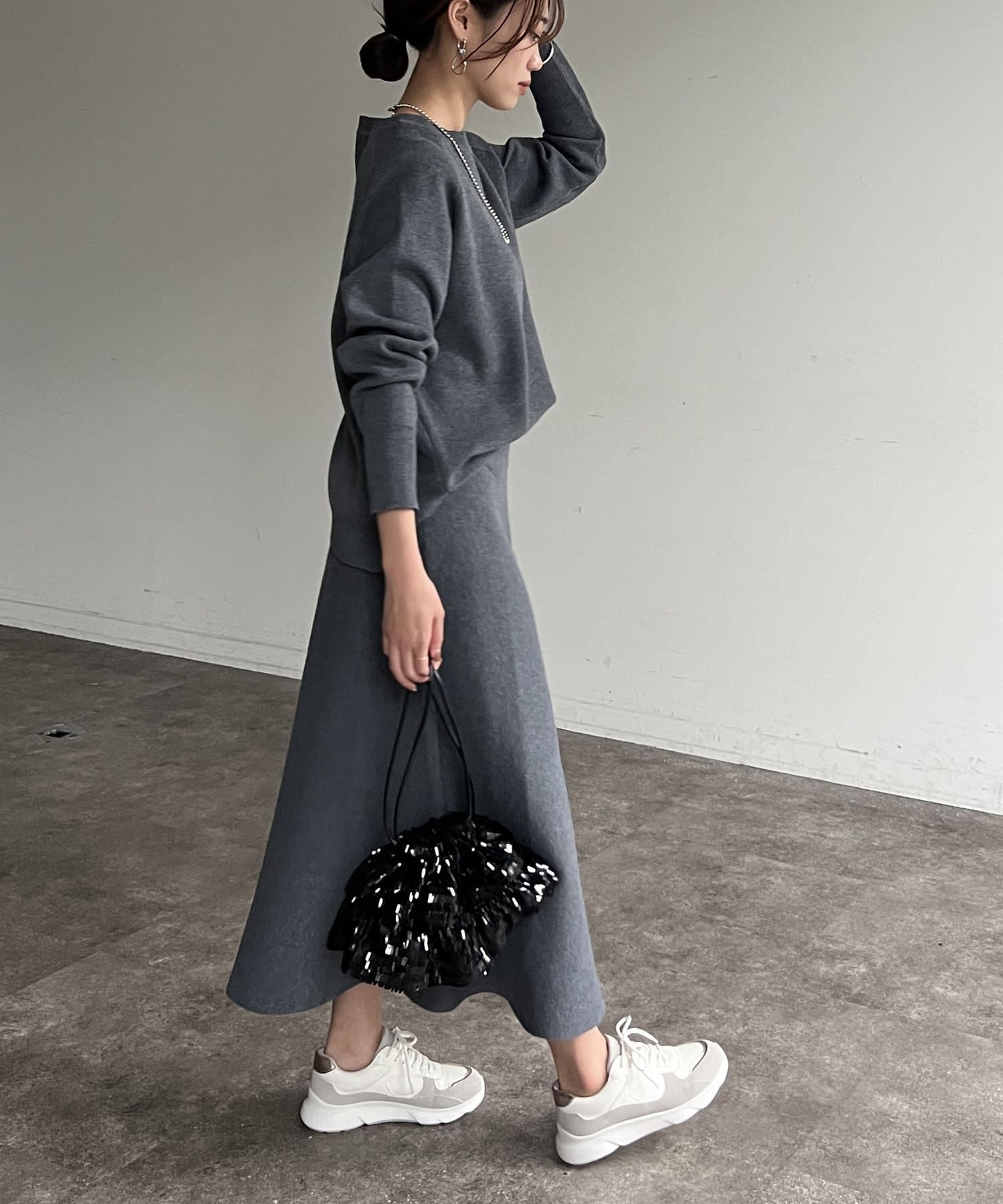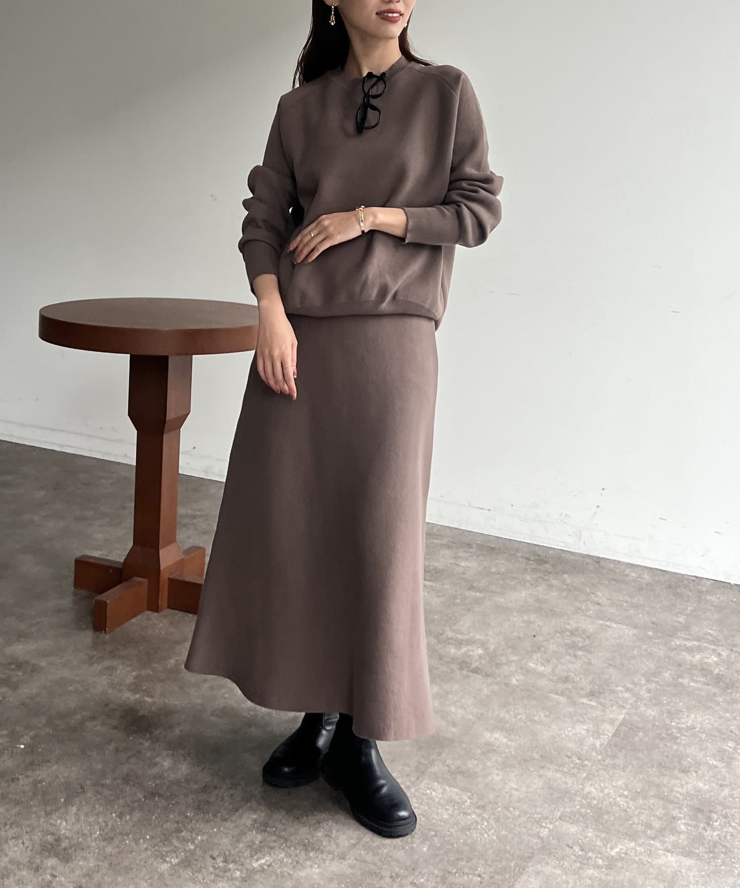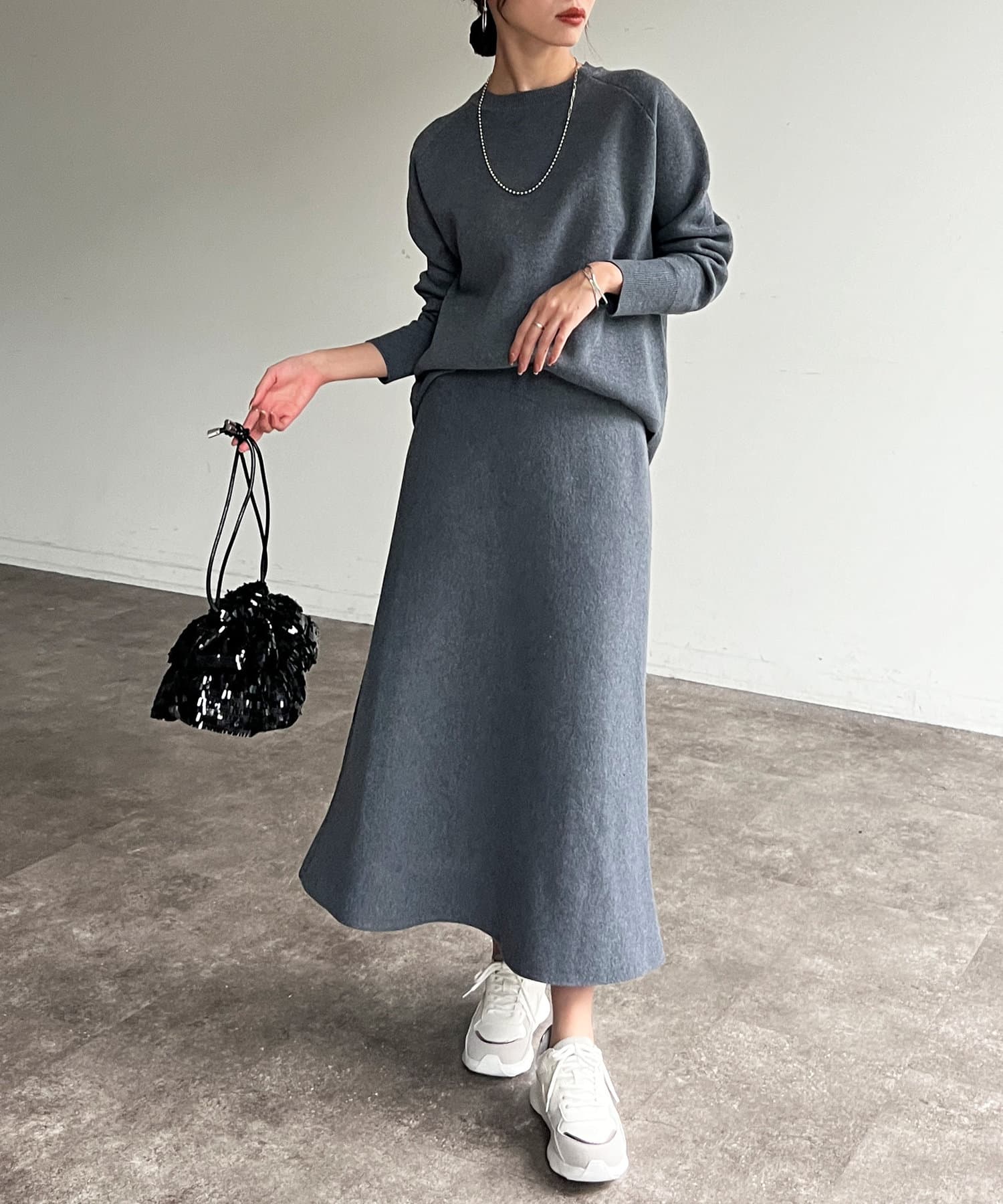 ニットのトップス、スカートのセットアップになったお得なアイテム♪