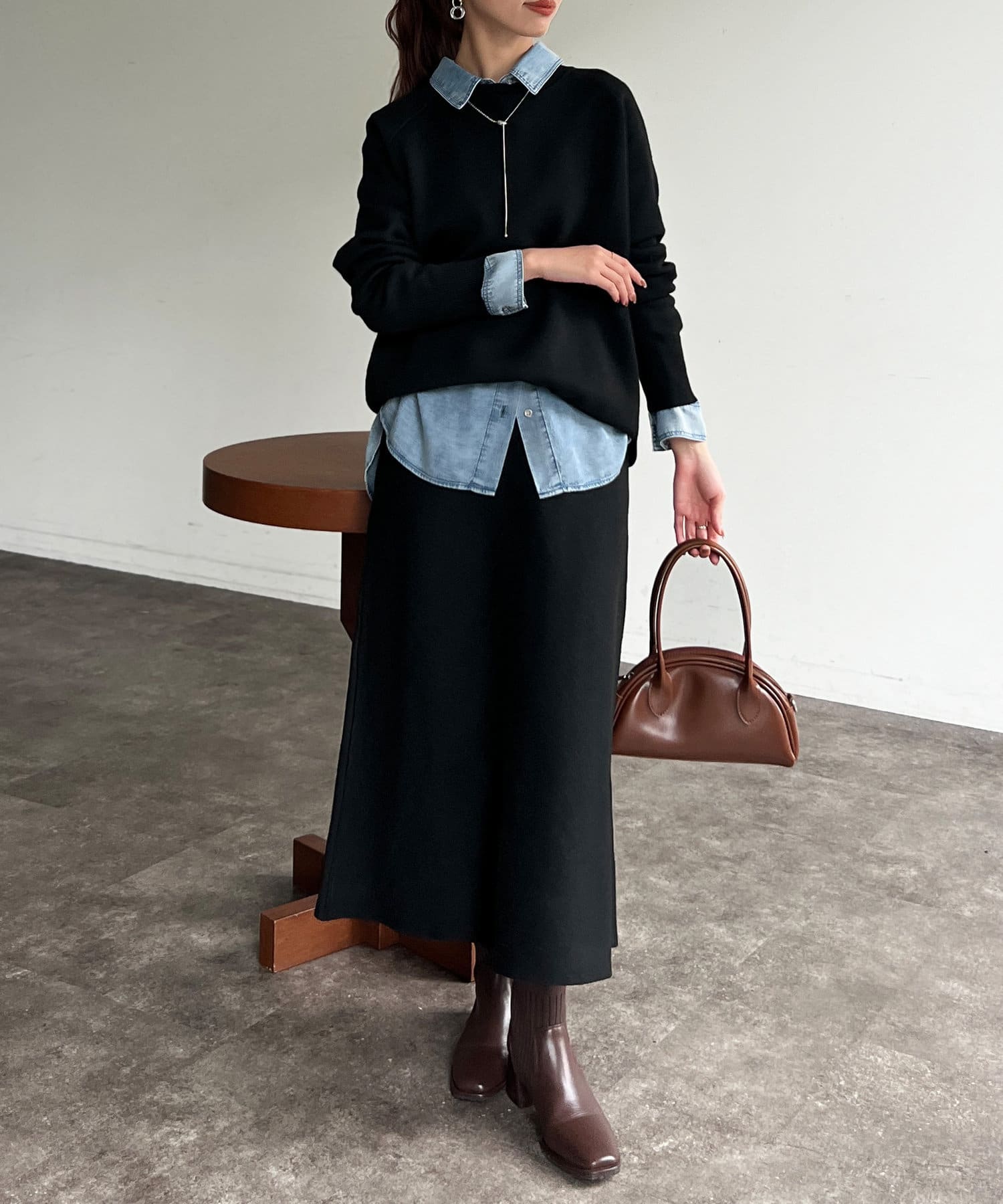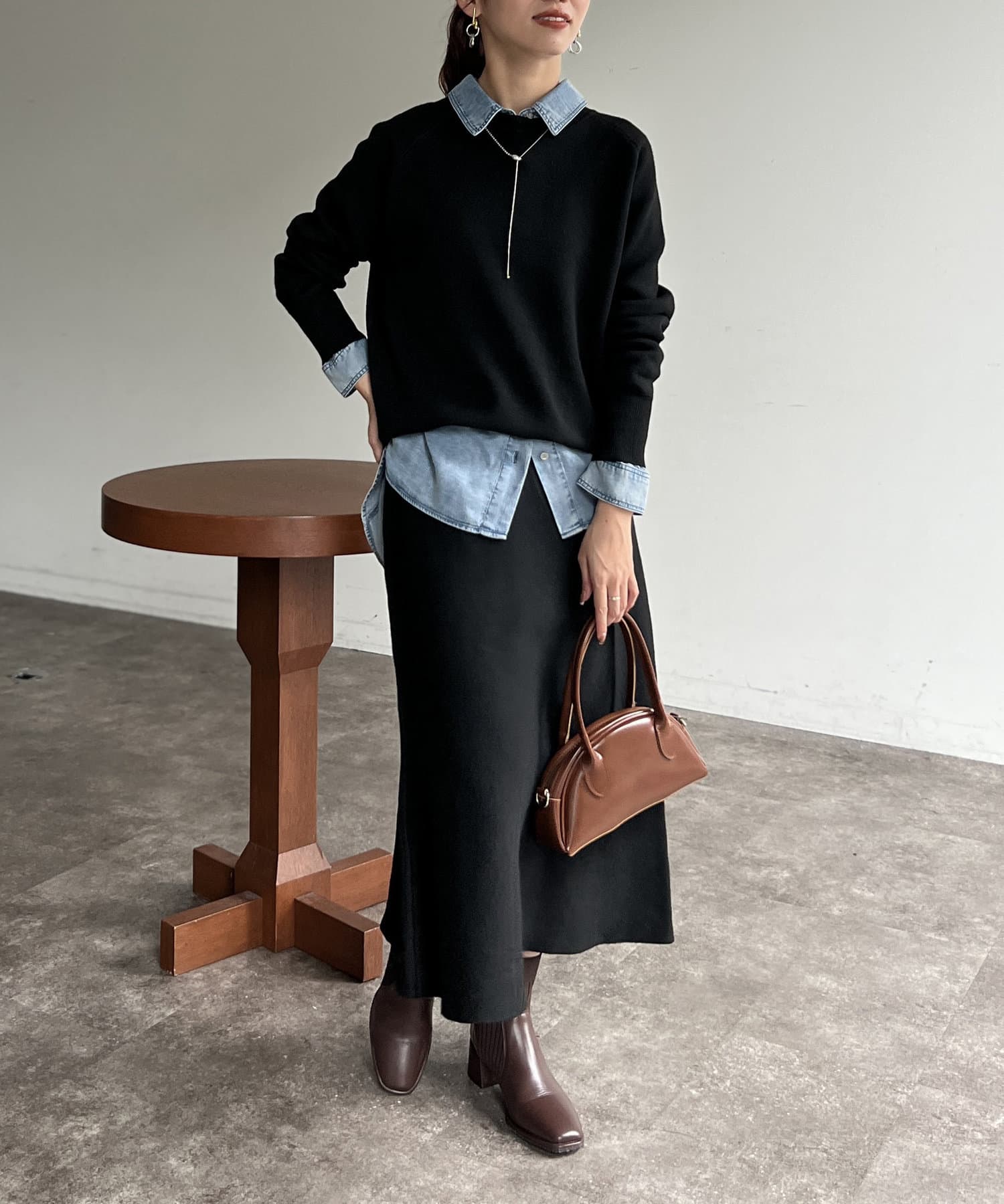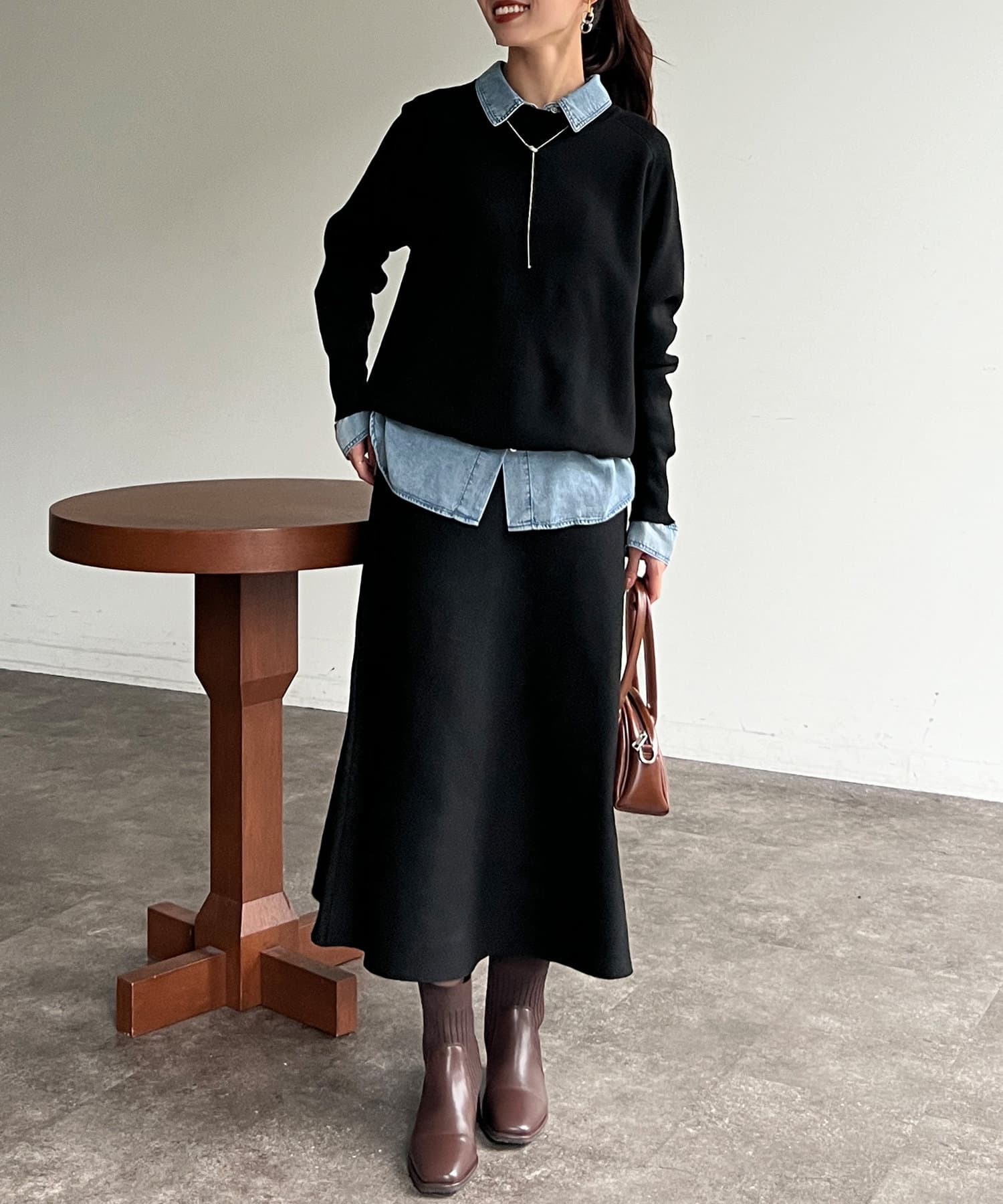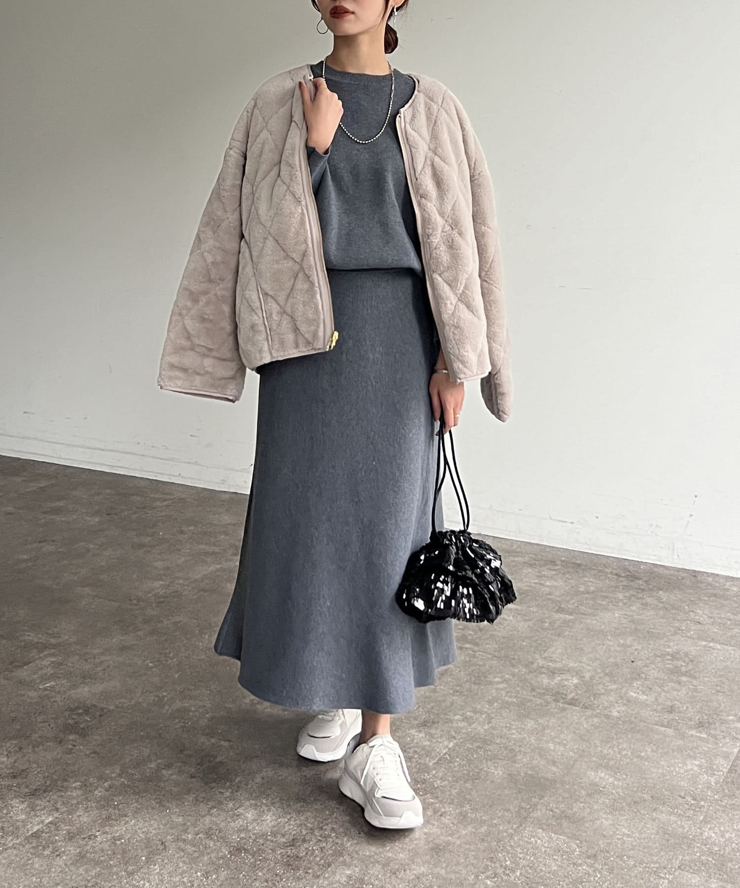 ニットのトップス、スカートのセットアップになったお得なアイテム♪