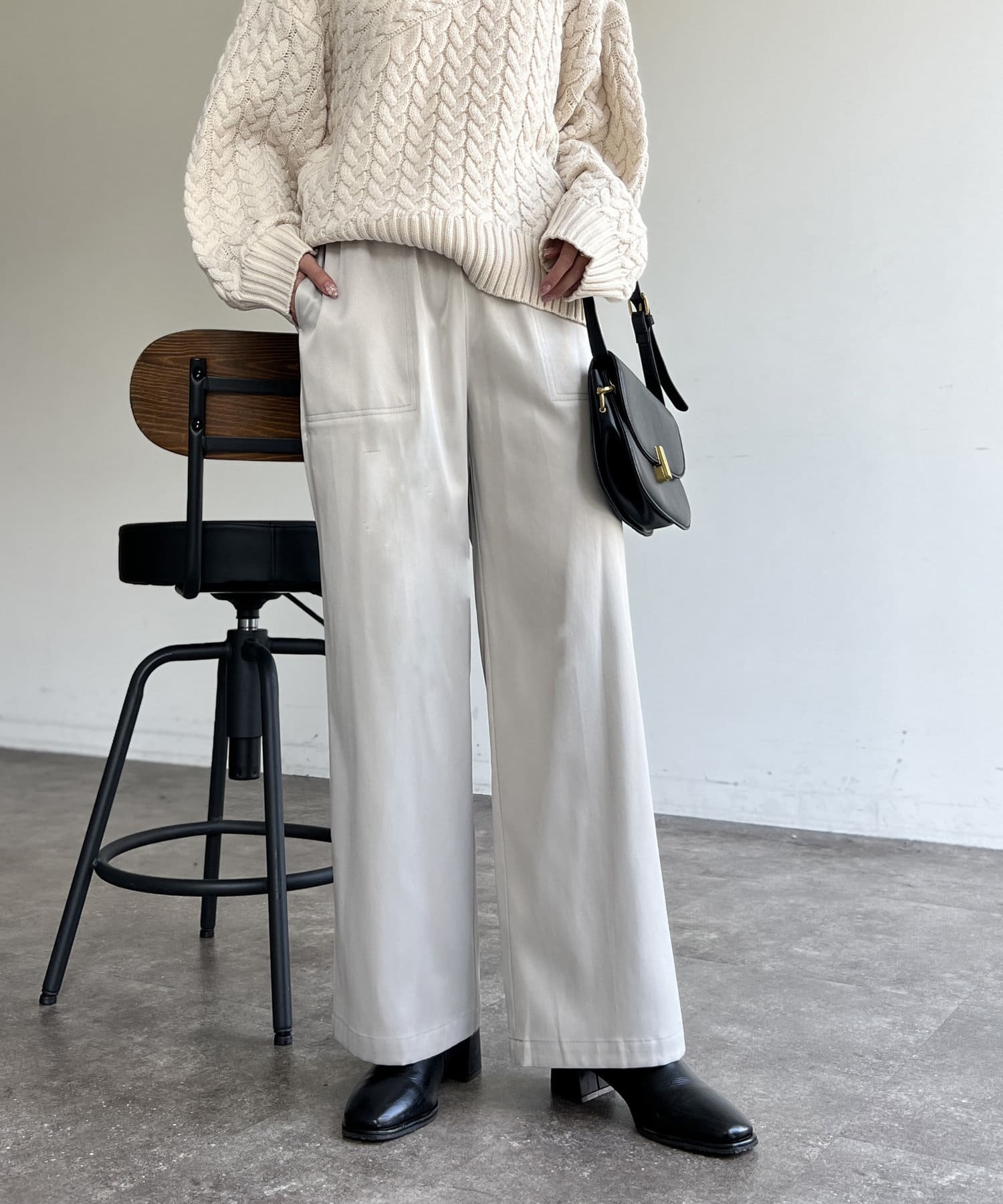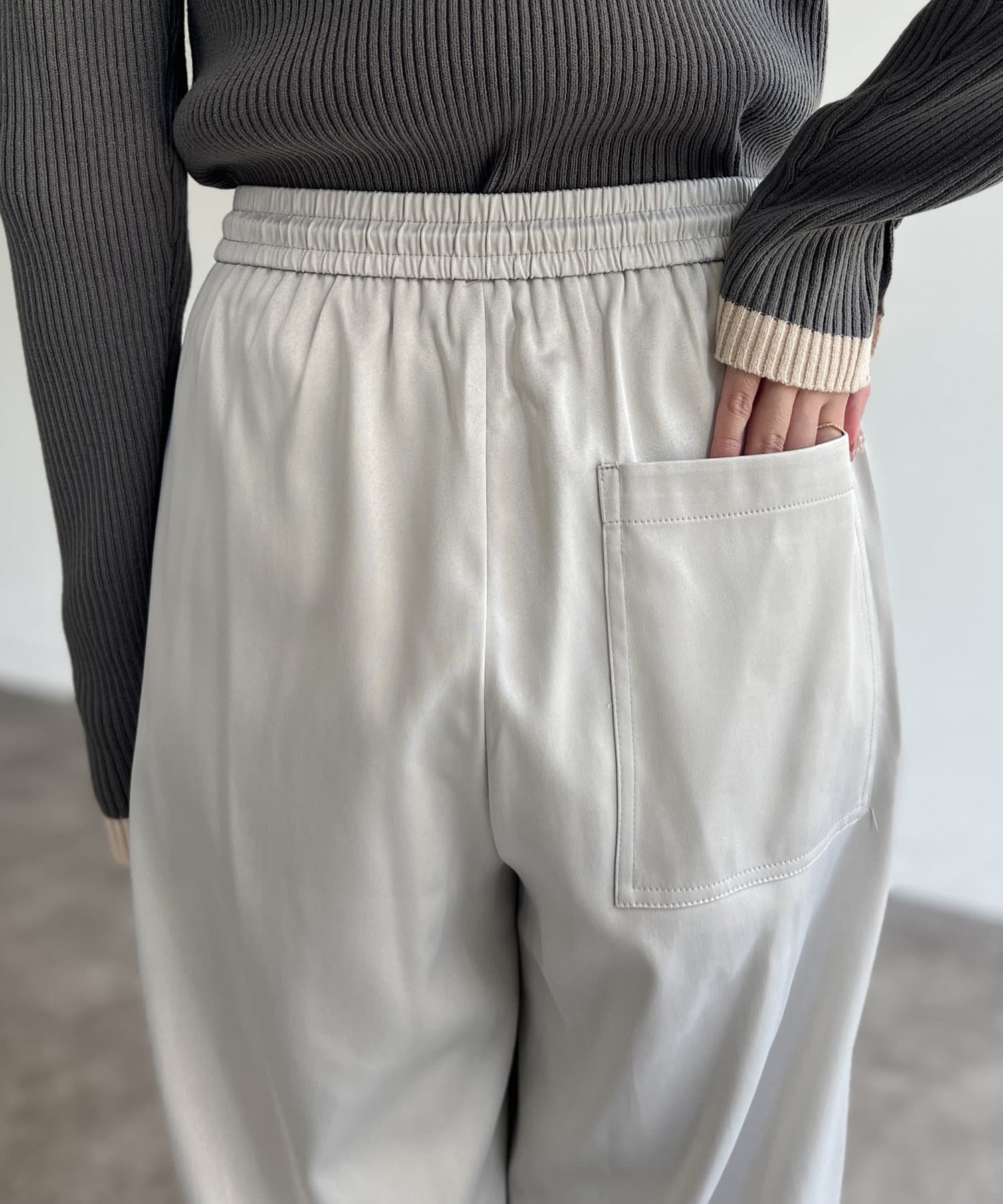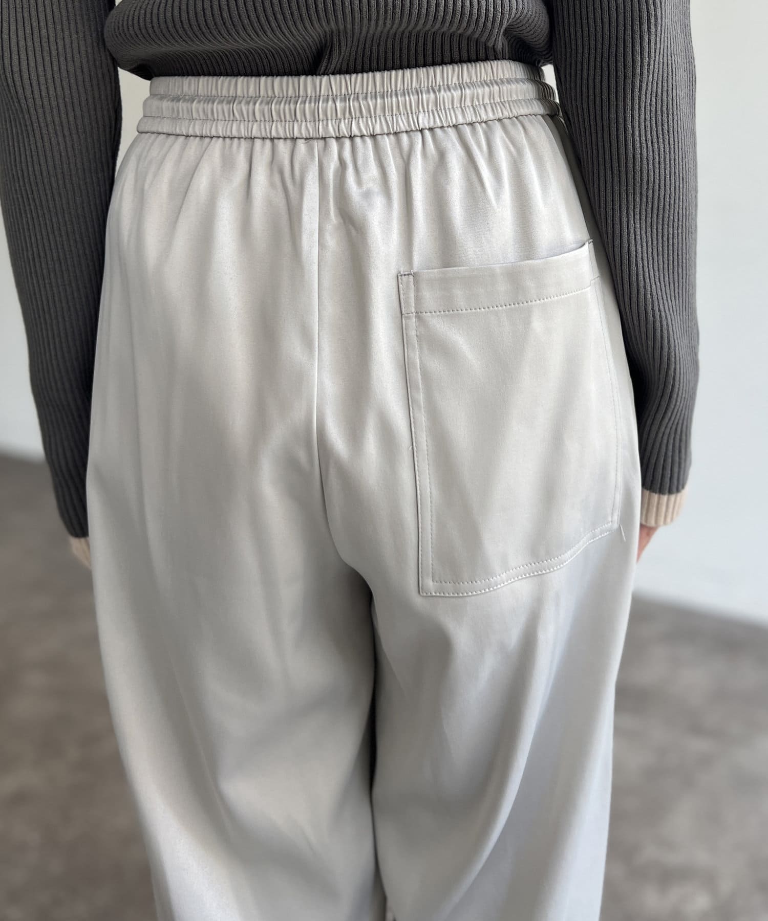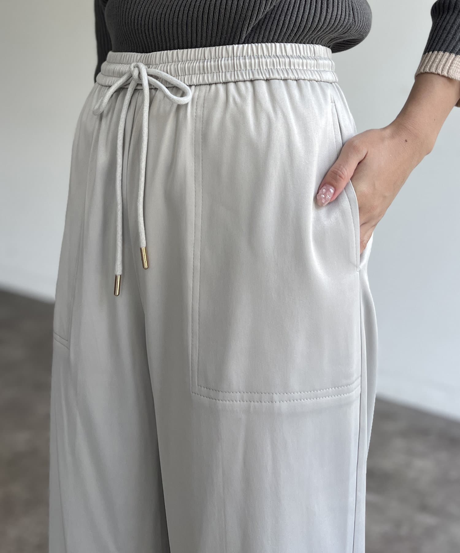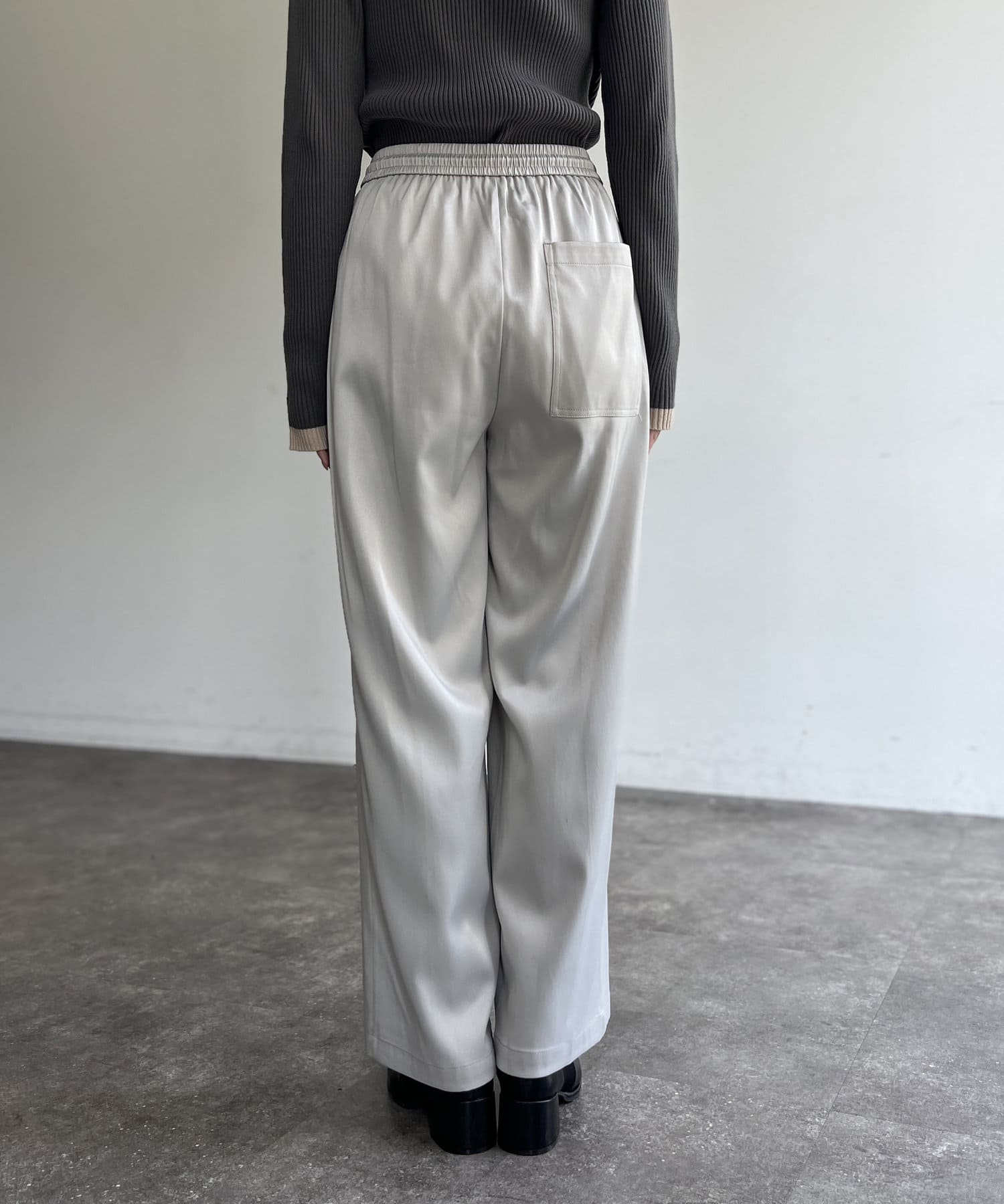 上品に着まわせるサテンイージーパンツ