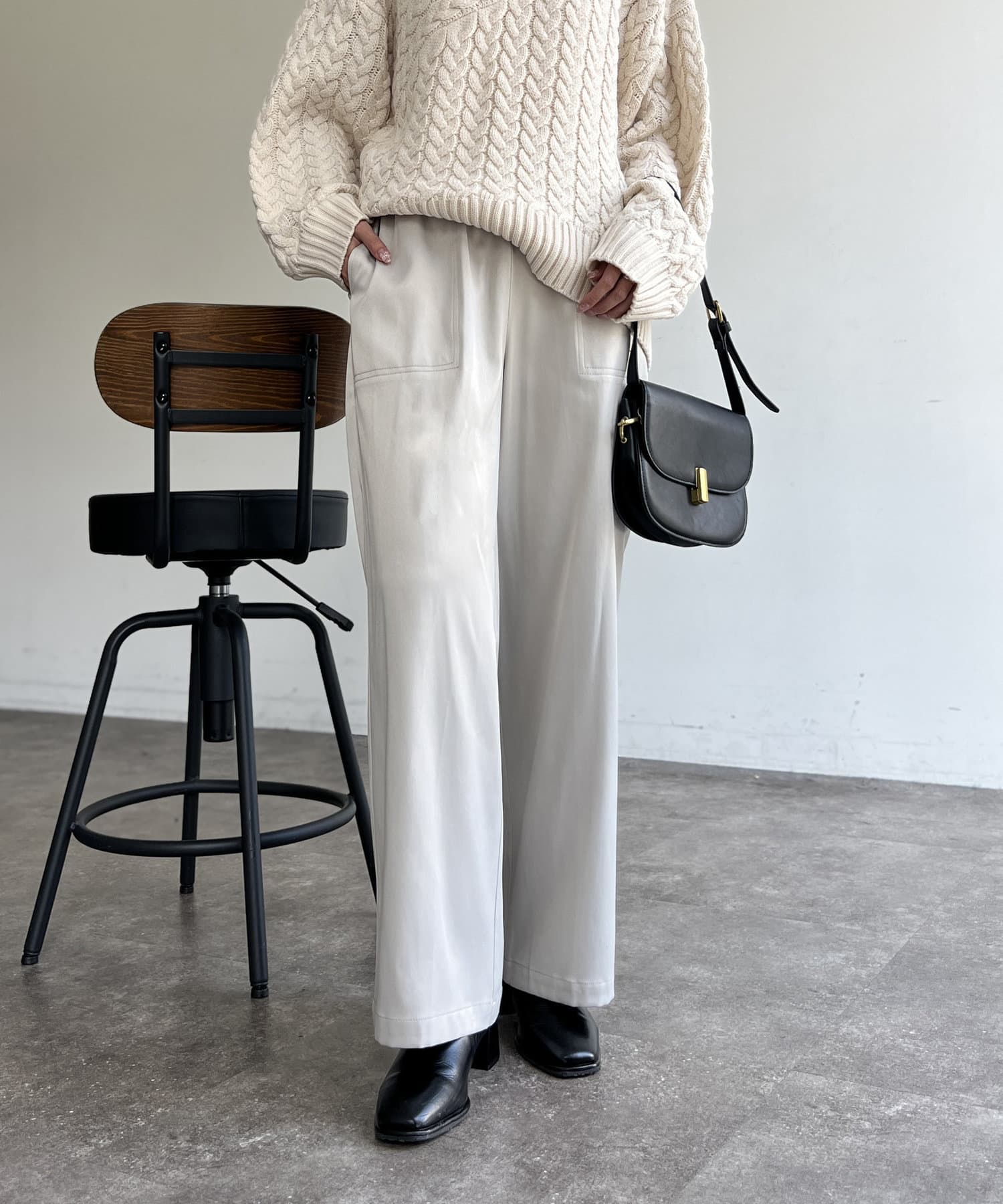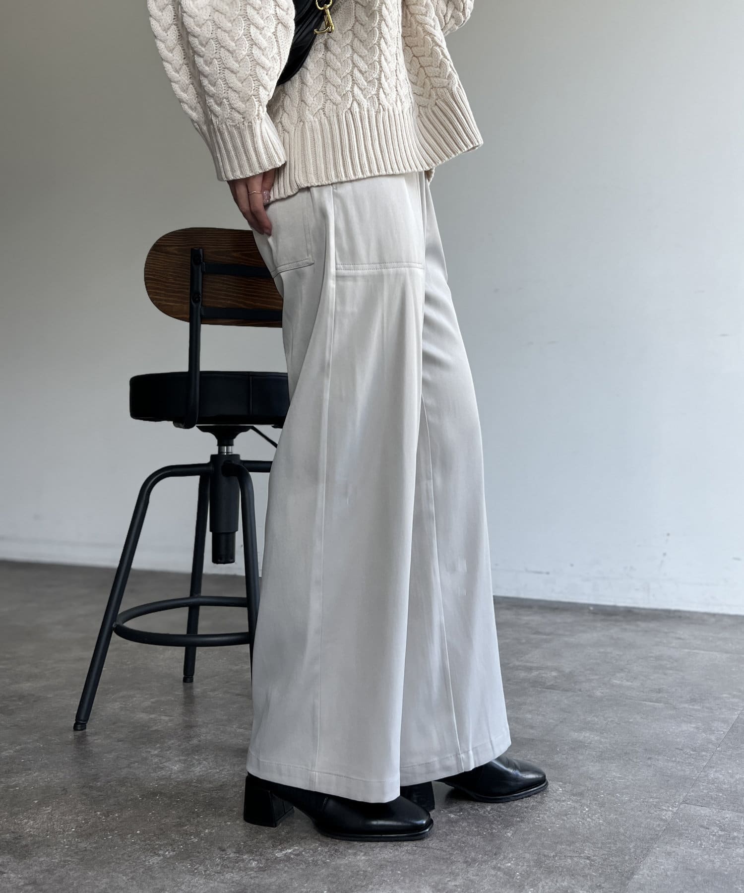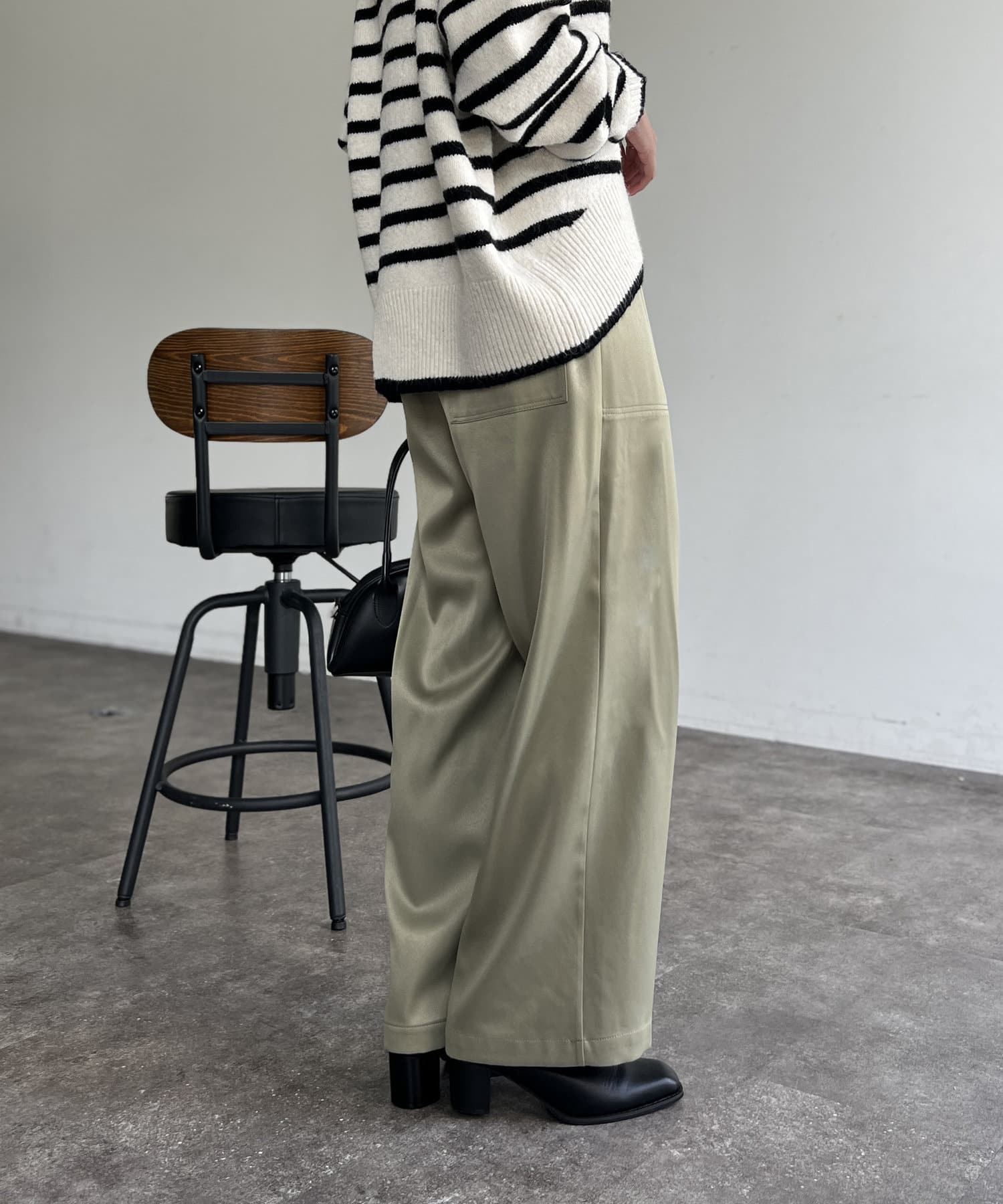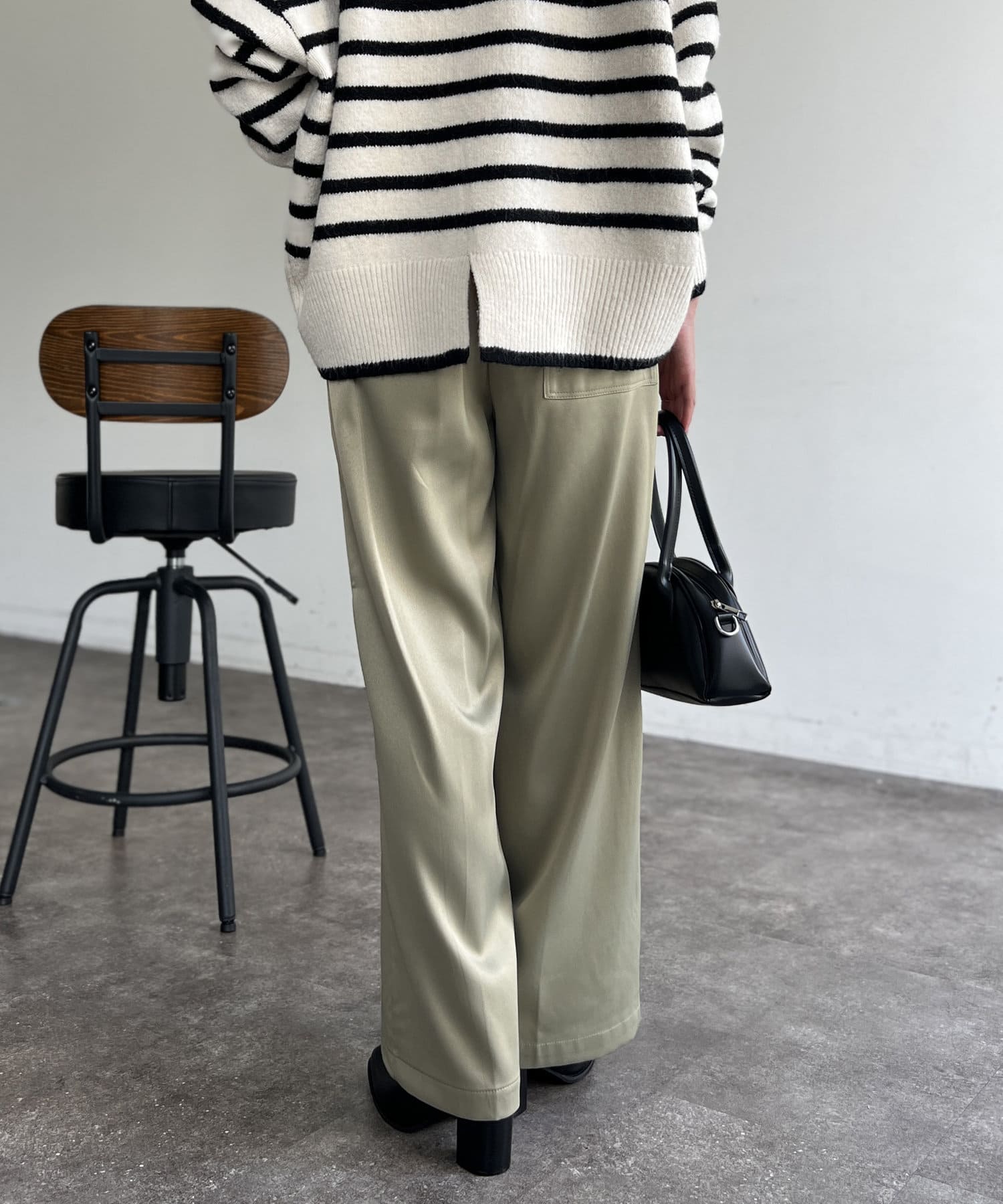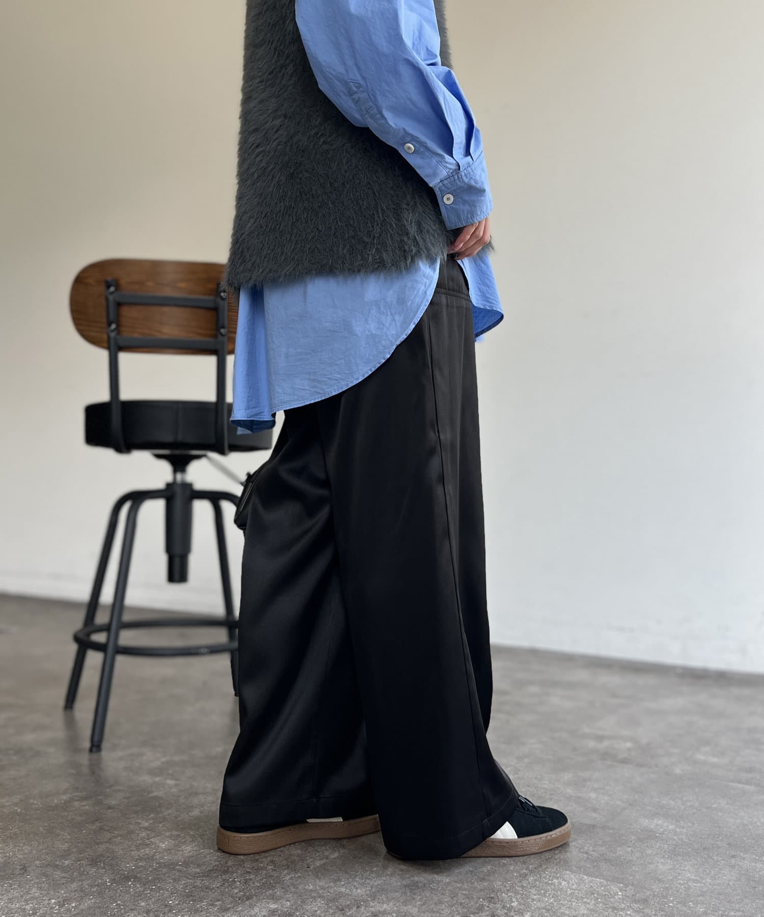 上品に着まわせるサテンイージーパンツ