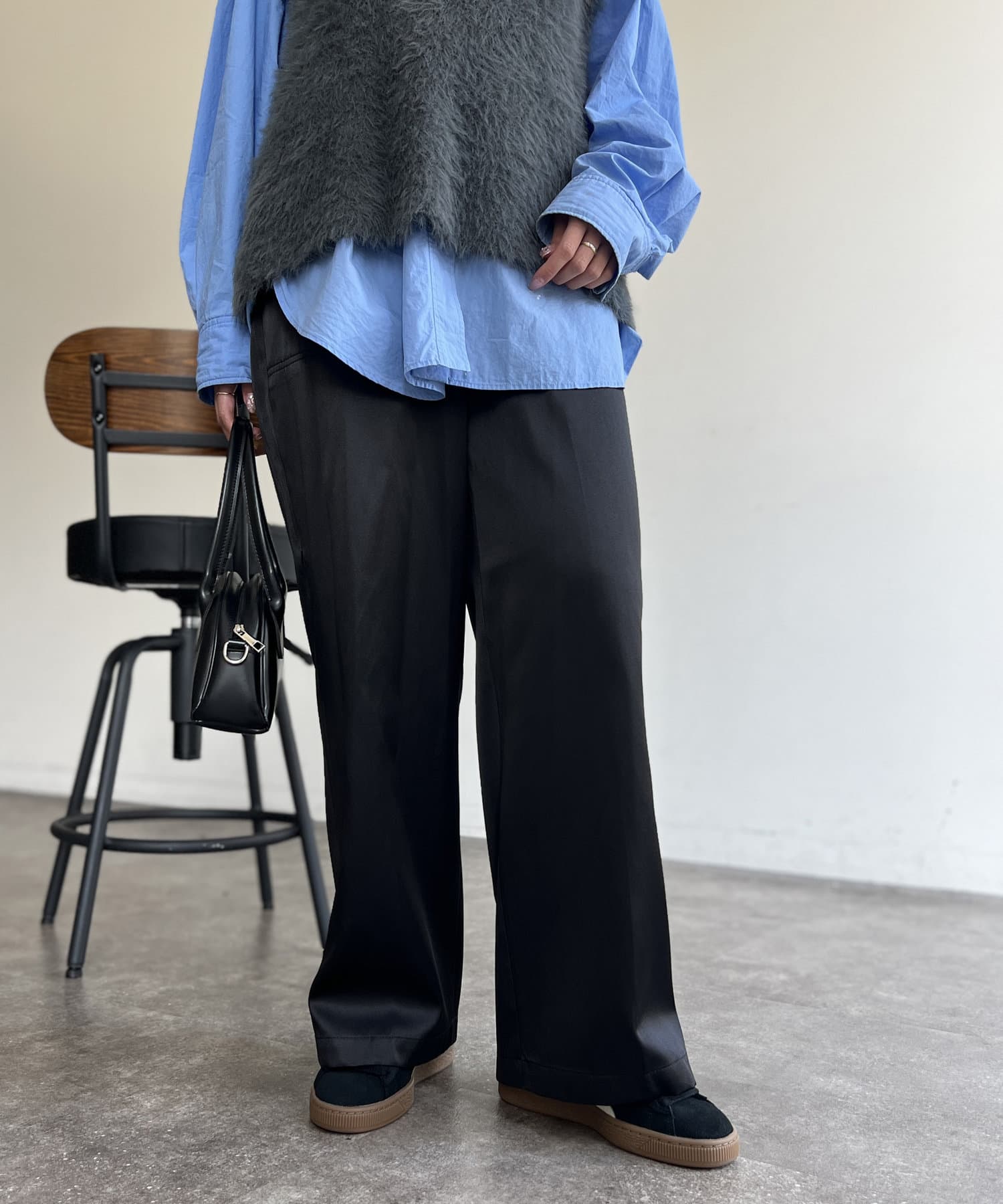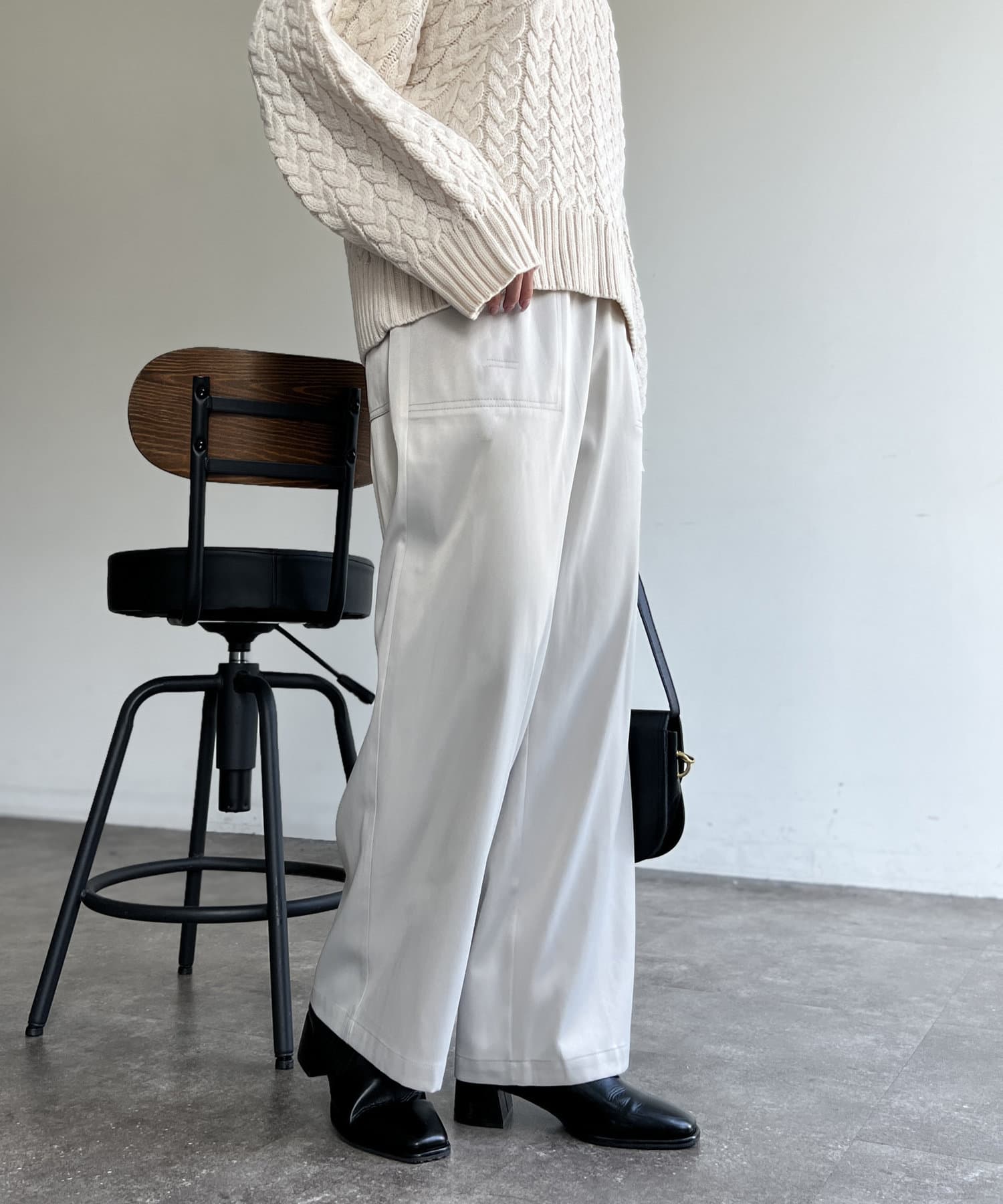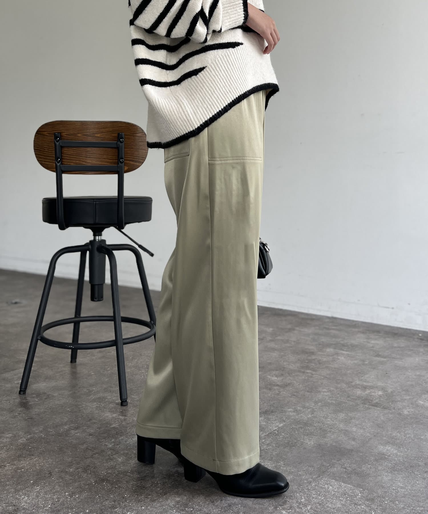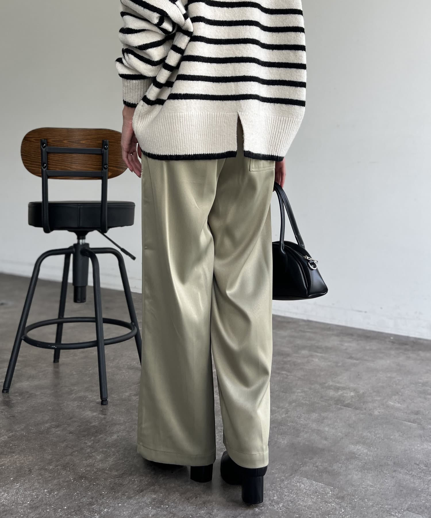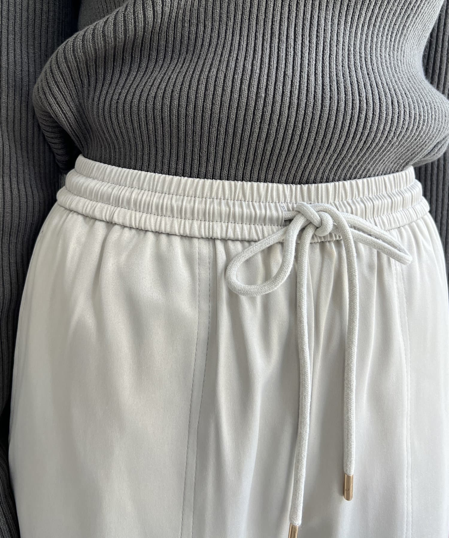 上品に着まわせるサテンイージーパンツ