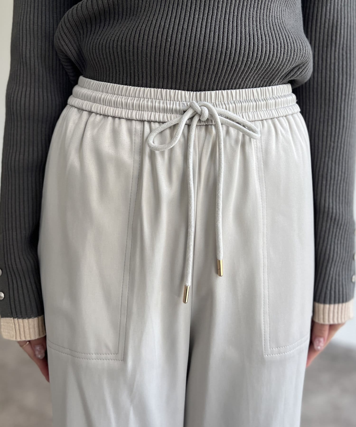 裏微起毛サテンイージーパンツ
